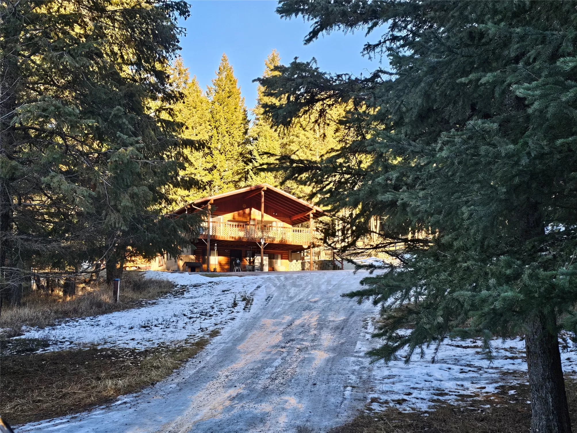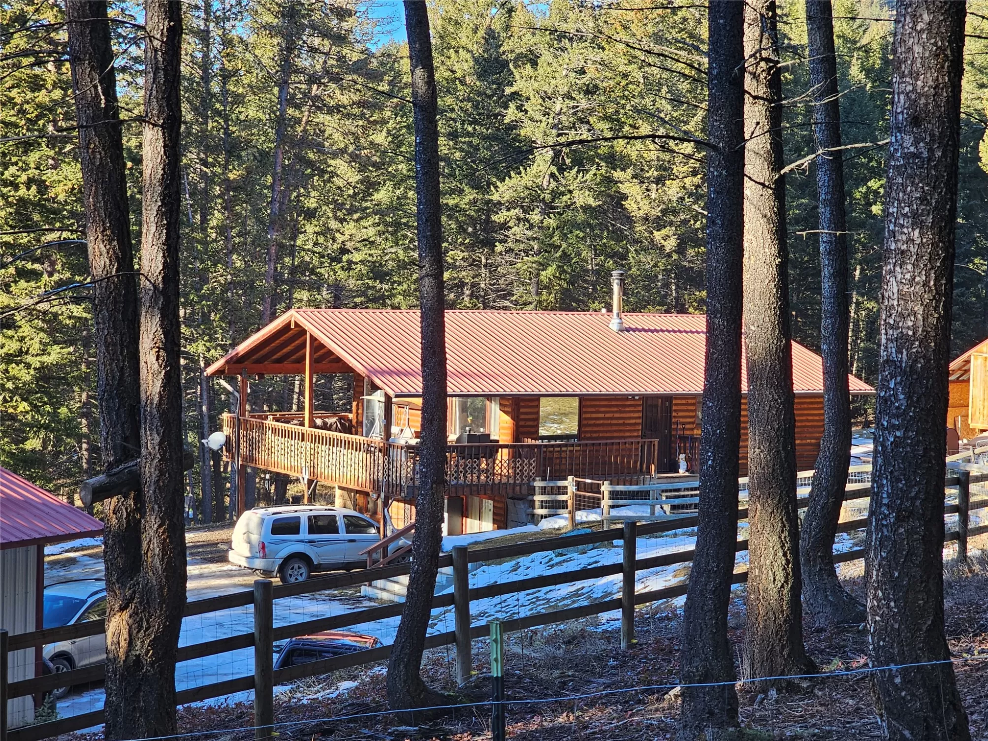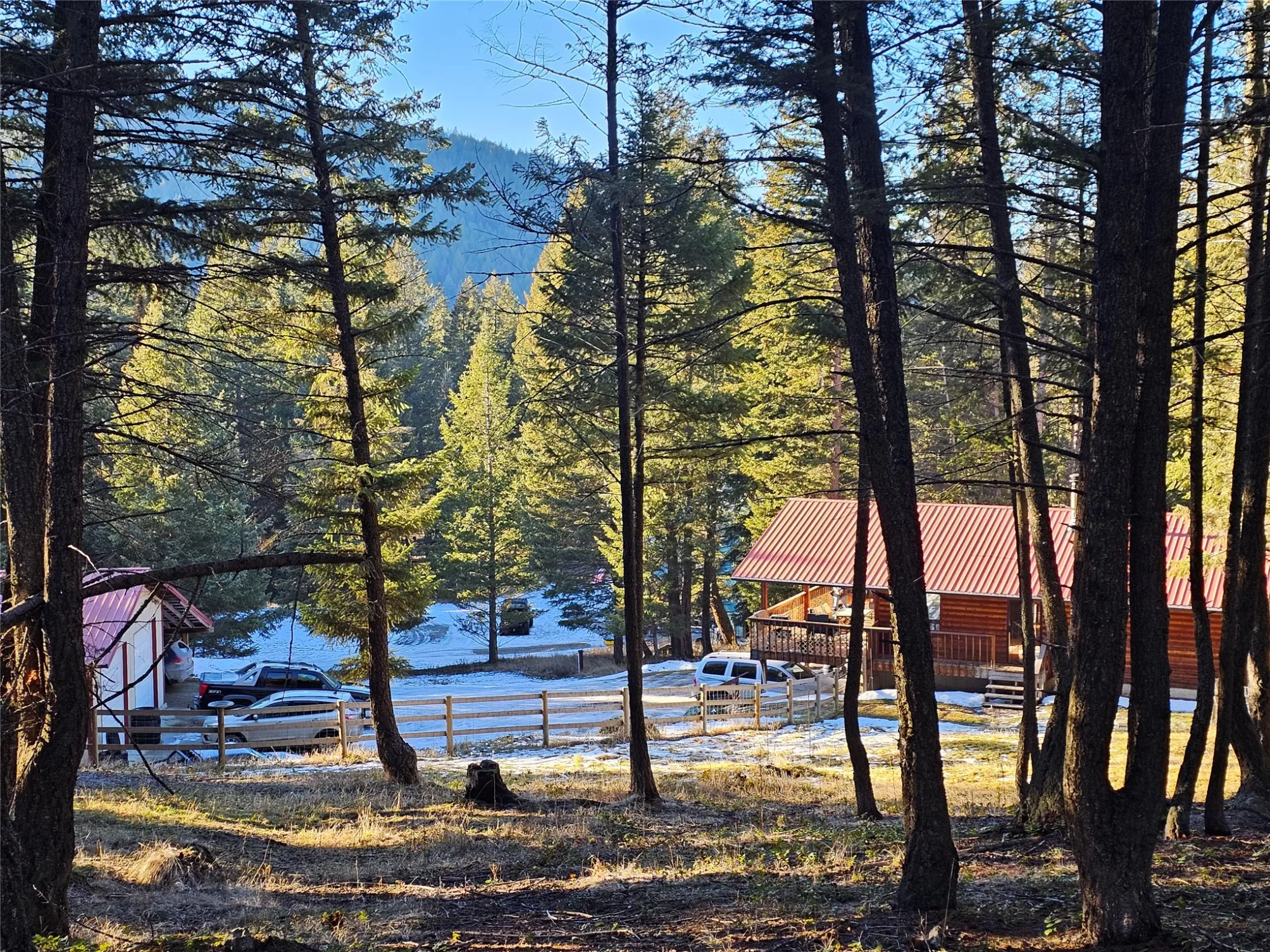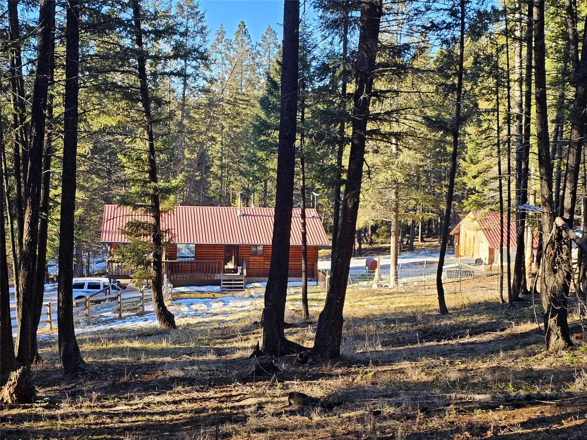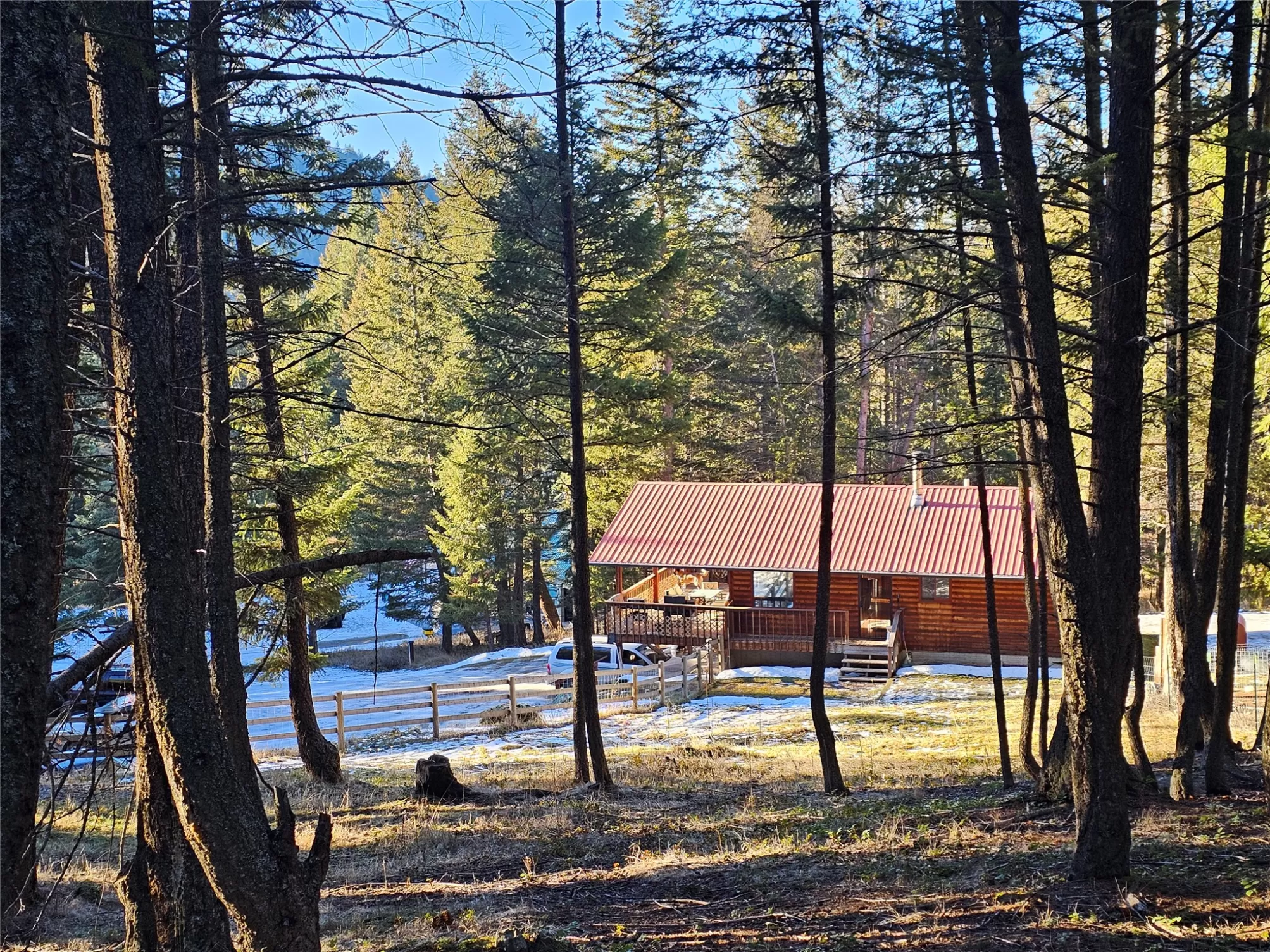 Set on just over six wooded acres near the entrance to Coon Hollow Road, this well-maintained log-sided chalet offers privacy, character, and classic Montana appeal. The property is bordered by approximately 200 feet of seasonal Bales Creek, with mature trees and mountain views creating a peaceful, natural setting. A private, scenic area near the creek offers an excellent potential homesite for a second residence. The land is cross-fenced and includes sheds suitable for animals or additional storage. The home features three bedrooms and two bathrooms, wood floors, and a cozy wood stove. A spacious covered deck provides an ideal place to relax. Outbuildings include a 30x40 garage/shop with 10’ overhead doors and a 12x16 storage building, offering excellent space for vehicles, equipment, or hobbies. Shared well. A great opportunity for those seeking a true Montana lifestyle.