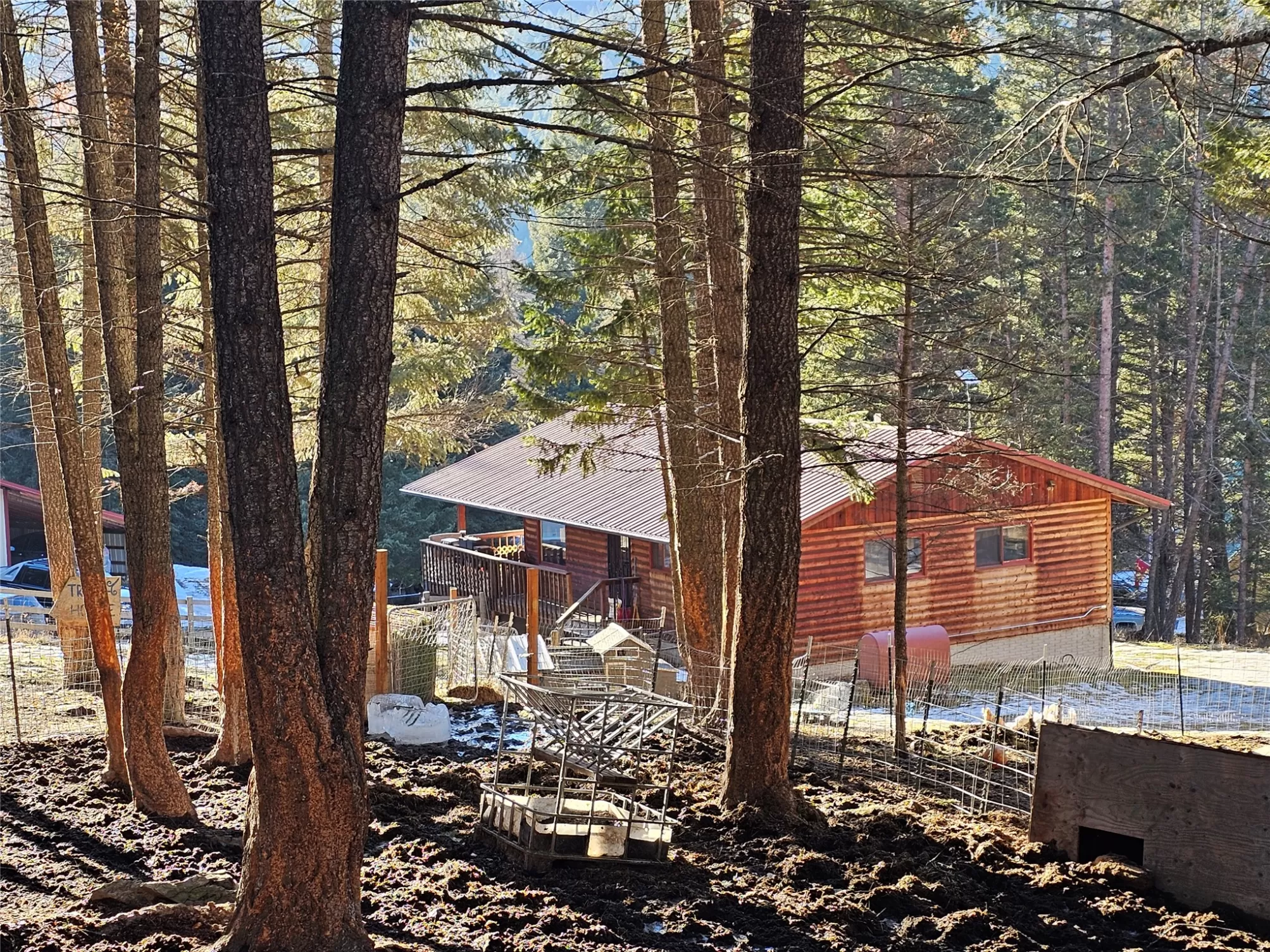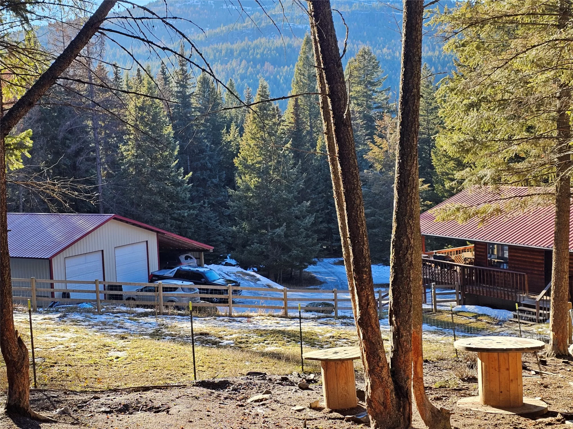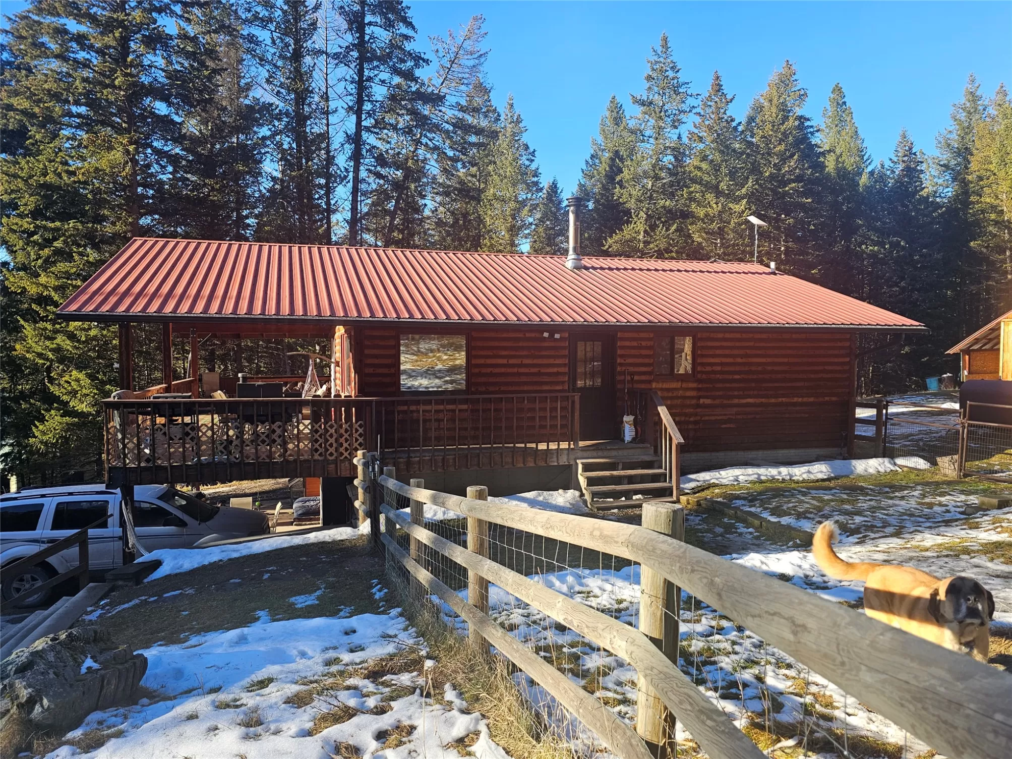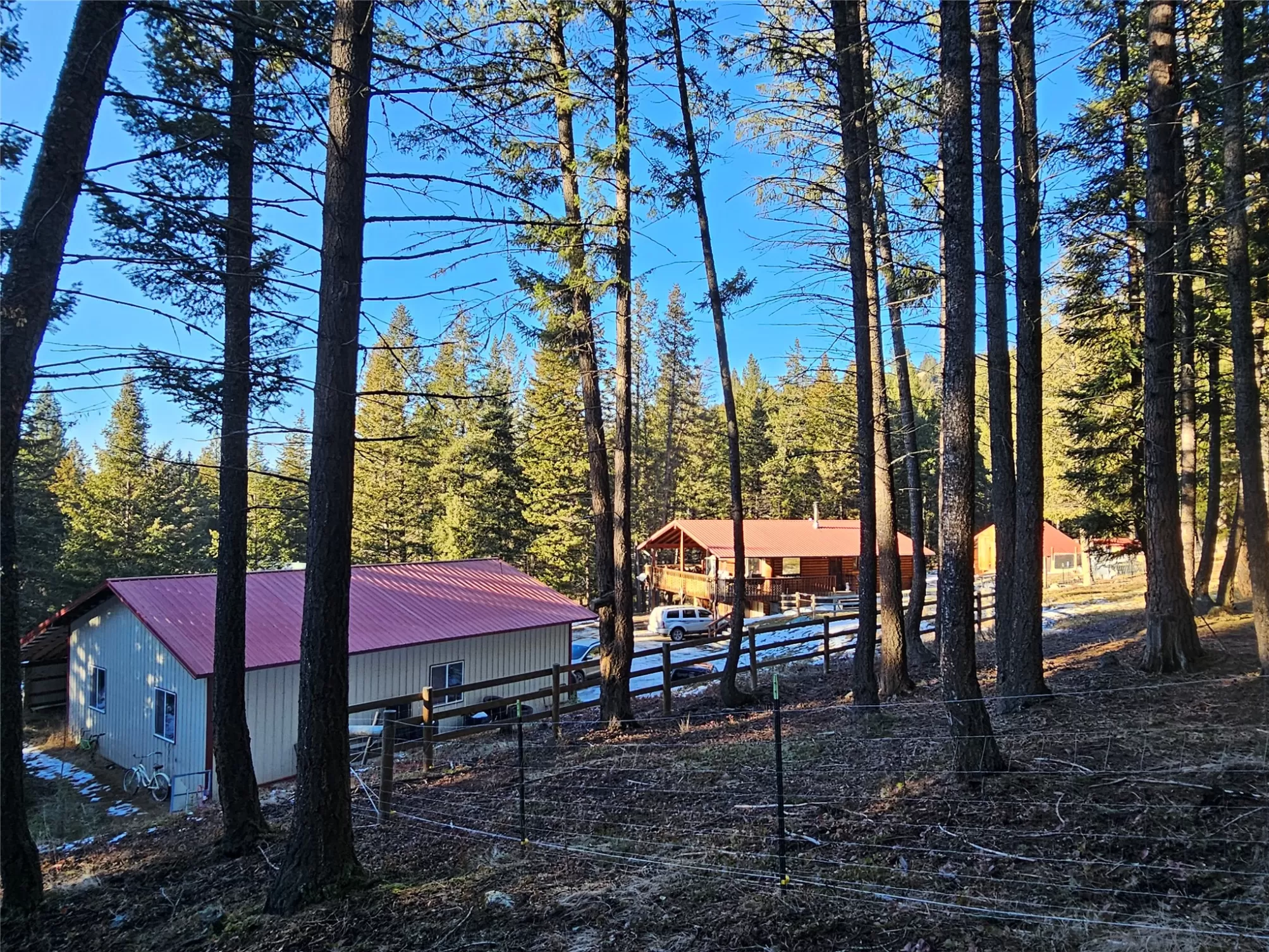 Set on just over six wooded acres near the entrance to Coon Hollow Road, this well-maintained log-sided chalet offers privacy, character, and classic Montana appeal. The property is bordered by approximately 200 feet of seasonal Bales Creek, with mature trees and mountain views creating a peaceful, natural setting. A private, scenic area near the creek offers an excellent potential homesite for a second residence. The land is cross-fenced and includes sheds suitable for animals or additional storage. The home features three bedrooms and two bathrooms, wood floors, and a cozy wood stove. A spacious covered deck provides an ideal place to relax. Outbuildings include a 30x40 garage/shop with 10’ overhead doors and a 12x16 storage building, offering excellent space for vehicles, equipment, or hobbies. Shared well. A great opportunity for those seeking a true Montana lifestyle.