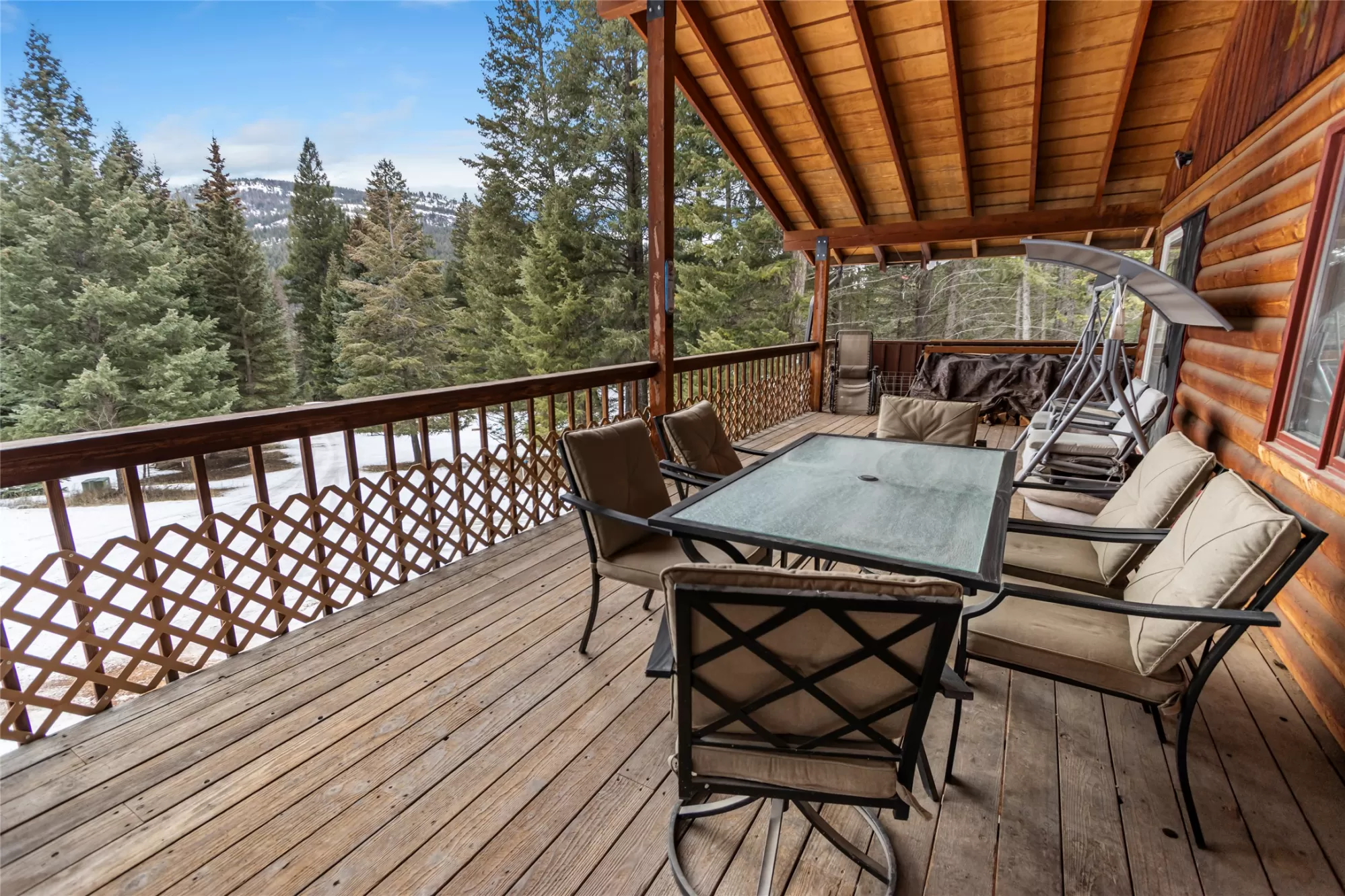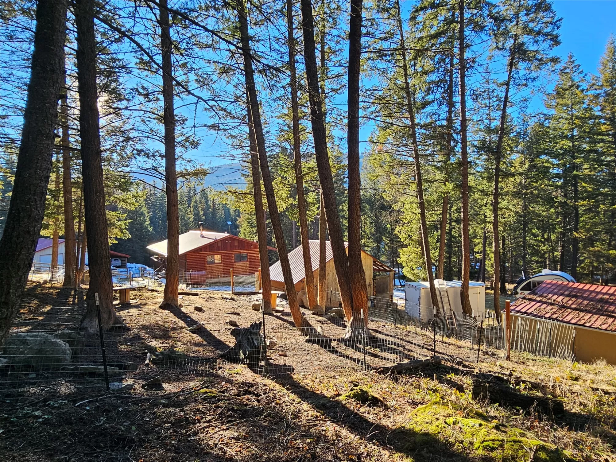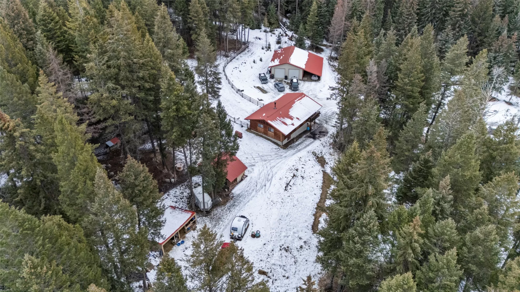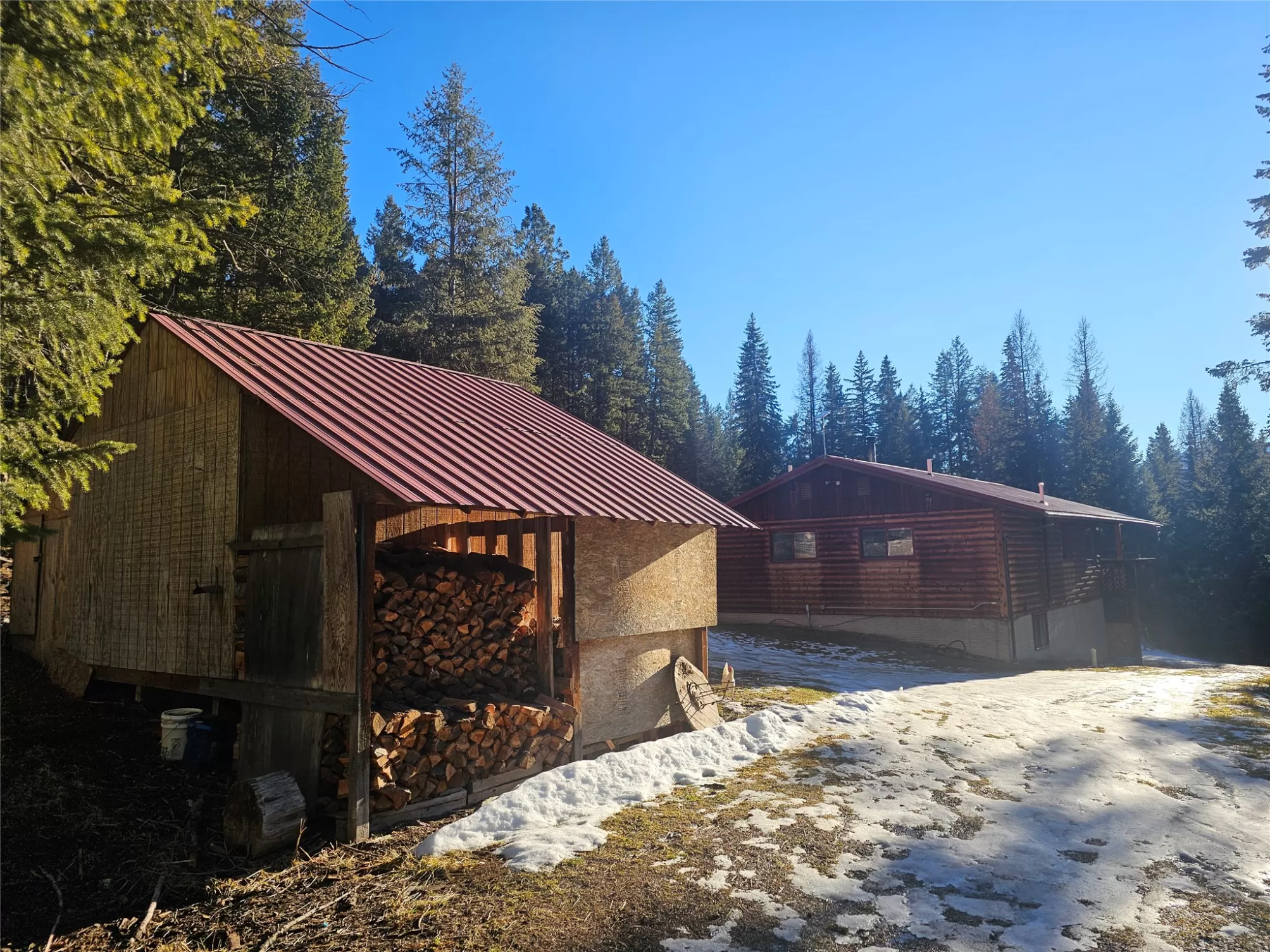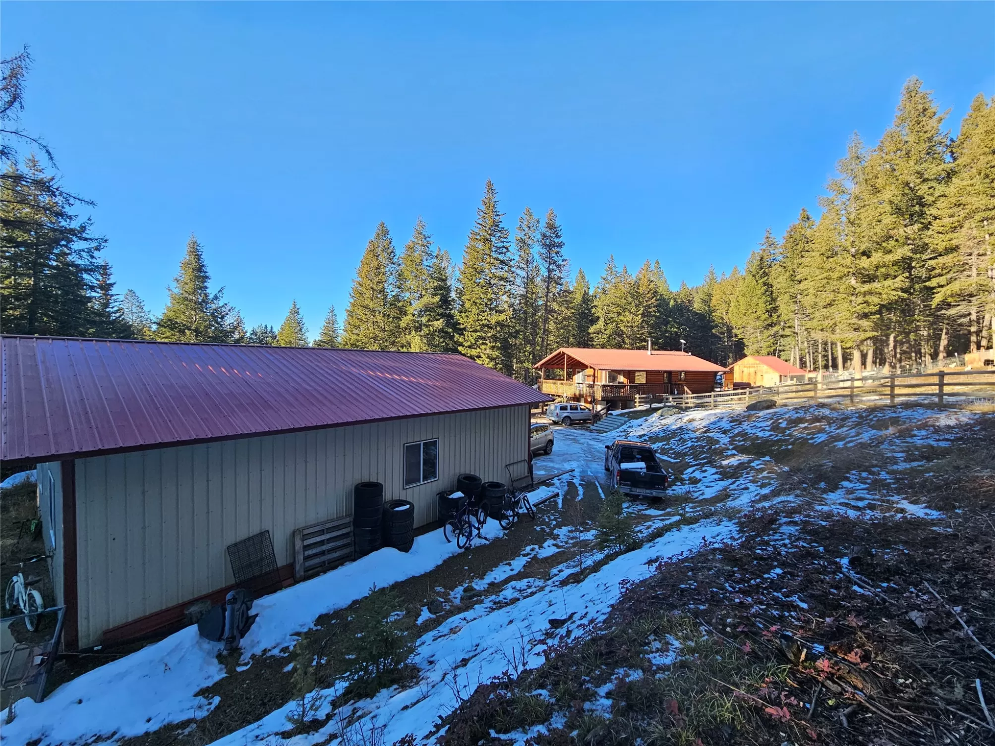 Set on just over six wooded acres near the entrance to Coon Hollow Road, this well-maintained log-sided chalet offers privacy, character, and classic Montana appeal. The property is bordered by approximately 200 feet of seasonal Bales Creek, with mature trees and mountain views creating a peaceful, natural setting. A private, scenic area near the creek offers an excellent potential homesite for a second residence. The land is cross-fenced and includes sheds suitable for animals or additional storage. The home features three bedrooms and two bathrooms, wood floors, and a cozy wood stove. A spacious covered deck provides an ideal place to relax. Outbuildings include a 30x40 garage/shop with 10’ overhead doors and a 12x16 storage building, offering excellent space for vehicles, equipment, or hobbies. Shared well. A great opportunity for those seeking a true Montana lifestyle.
