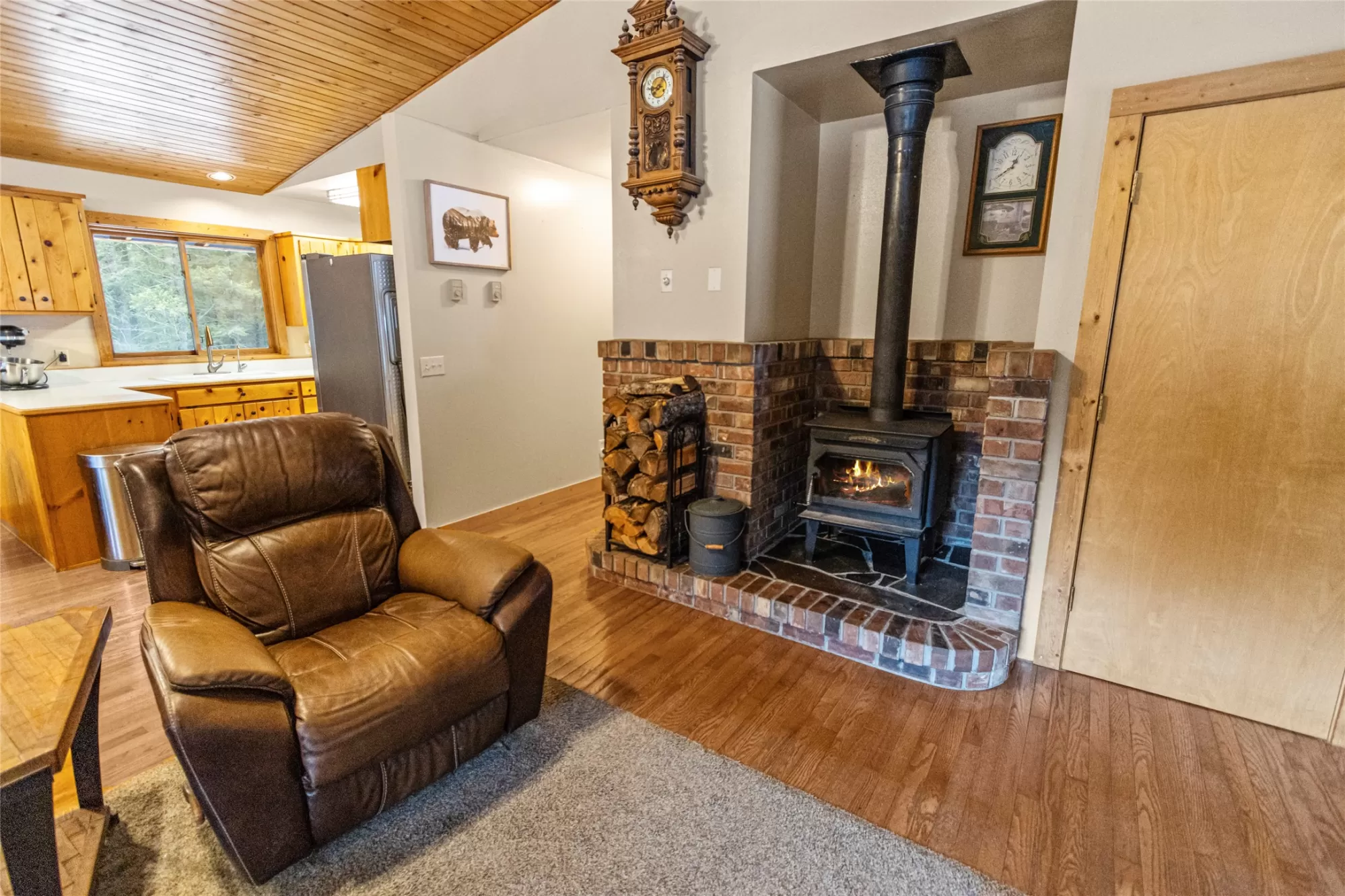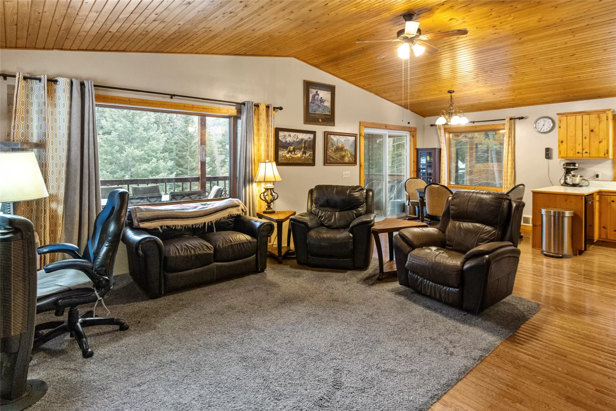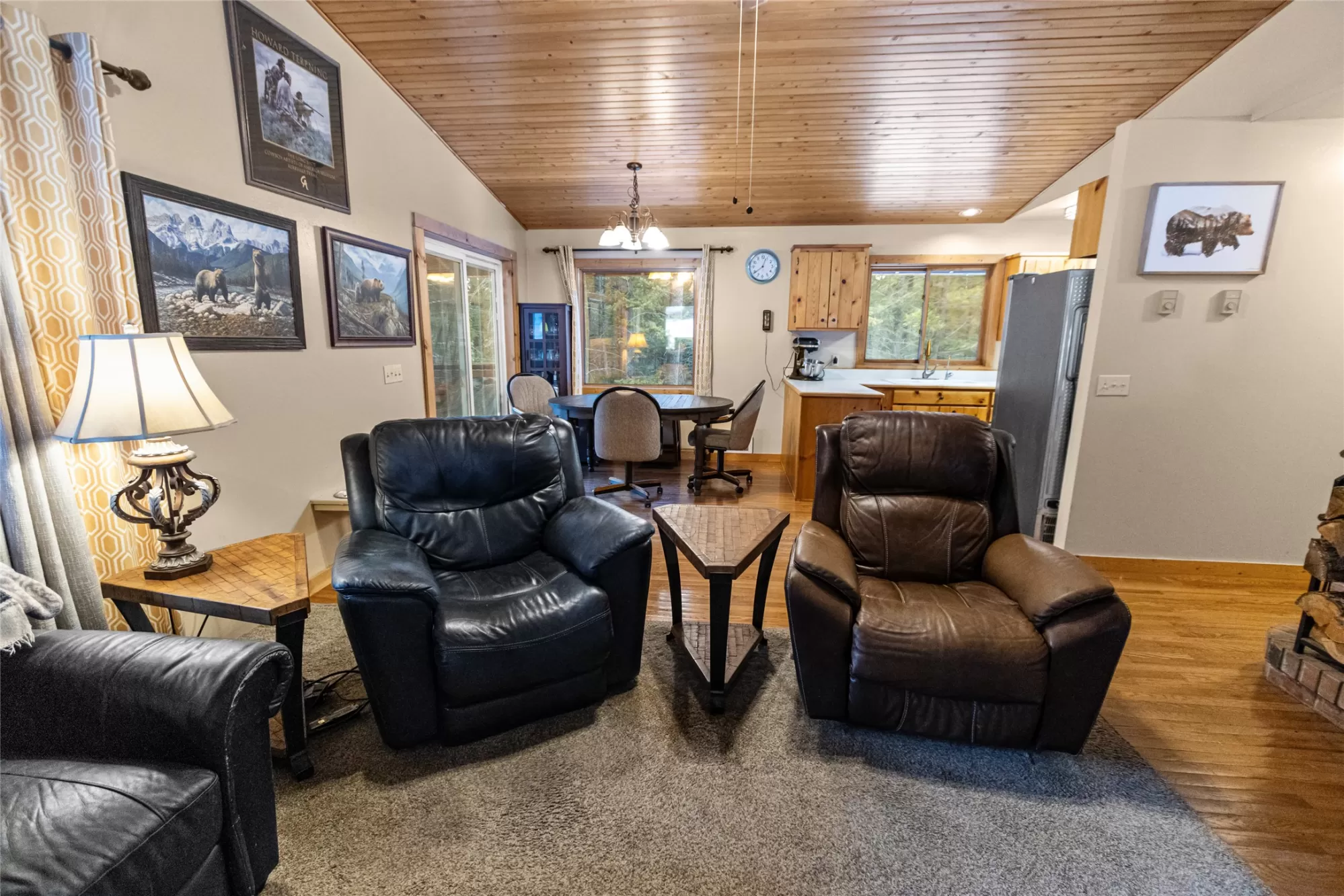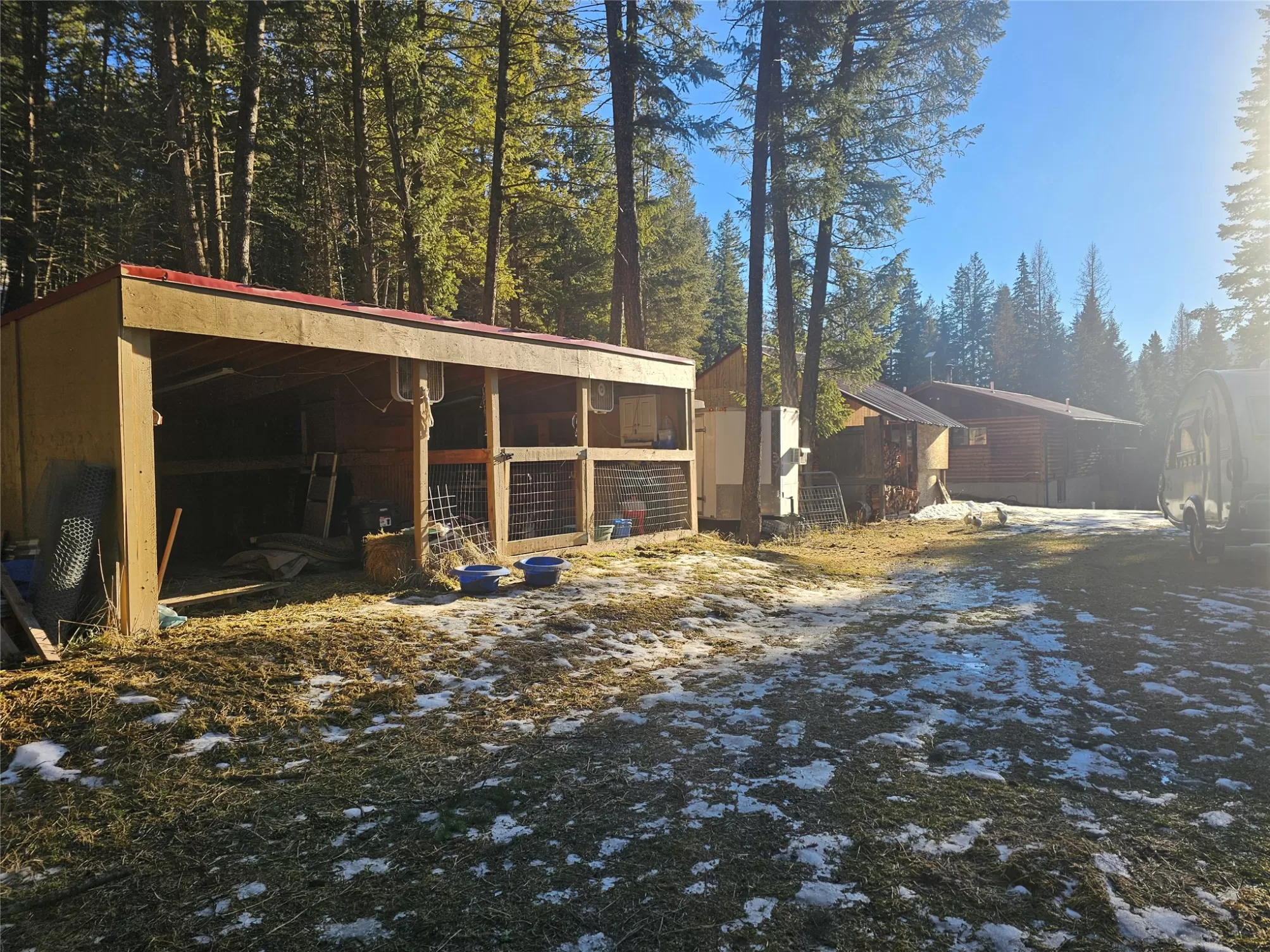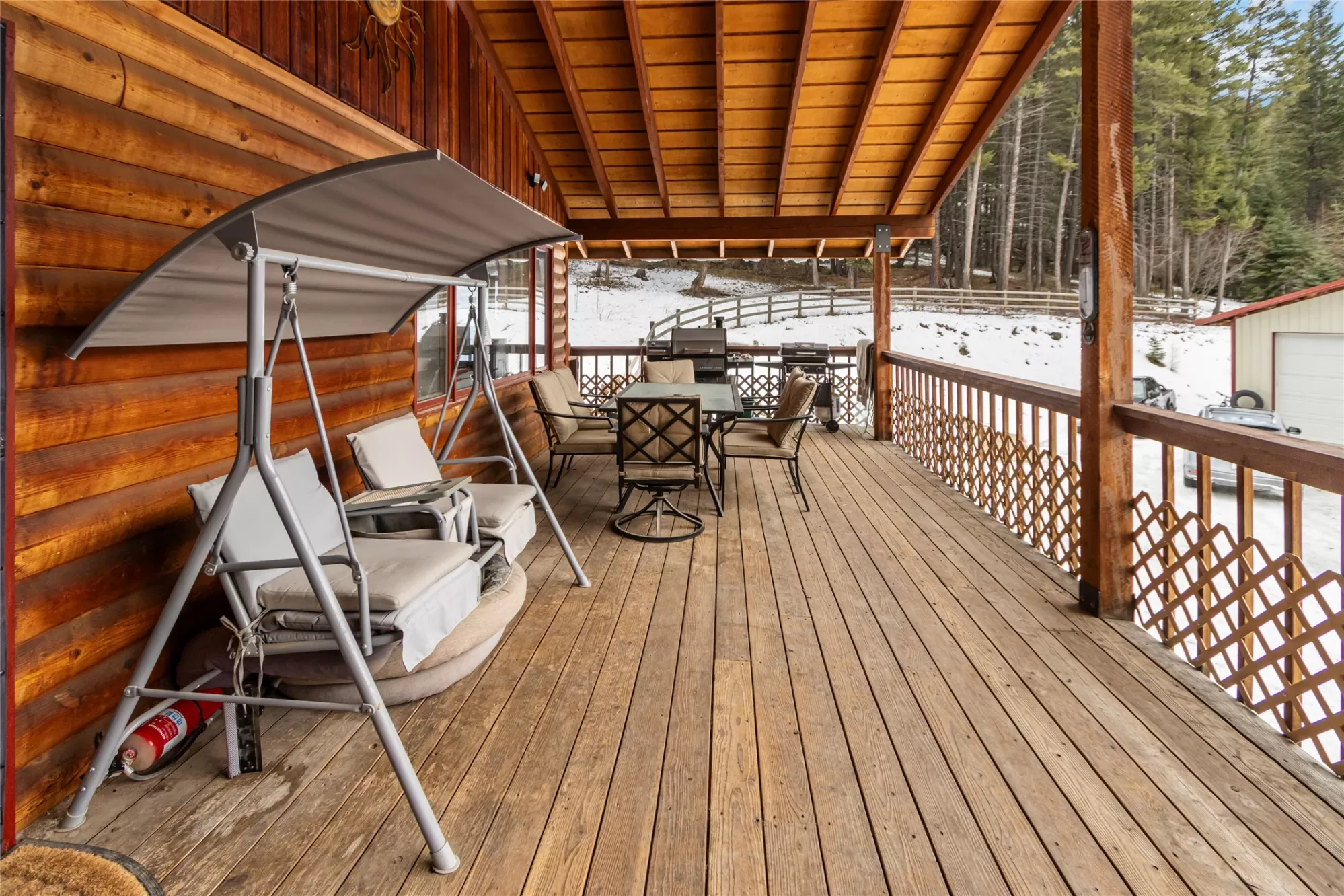 Set on just over six wooded acres near the entrance to Coon Hollow Road, this well-maintained log-sided chalet offers privacy, character, and classic Montana appeal. The property is bordered by approximately 200 feet of seasonal Bales Creek, with mature trees and mountain views creating a peaceful, natural setting. A private, scenic area near the creek offers an excellent potential homesite for a second residence. The land is cross-fenced and includes sheds suitable for animals or additional storage. The home features three bedrooms and two bathrooms, wood floors, and a cozy wood stove. A spacious covered deck provides an ideal place to relax. Outbuildings include a 30x40 garage/shop with 10’ overhead doors and a 12x16 storage building, offering excellent space for vehicles, equipment, or hobbies. Shared well. A great opportunity for those seeking a true Montana lifestyle.