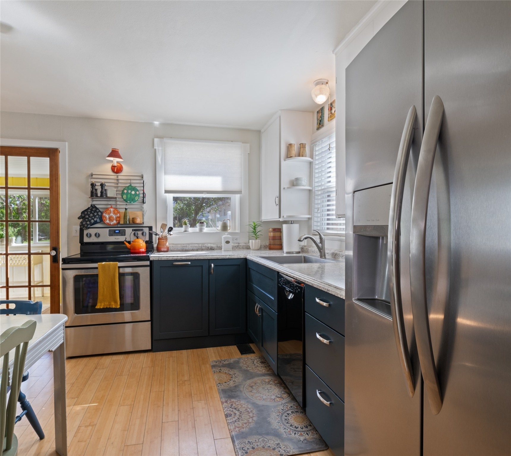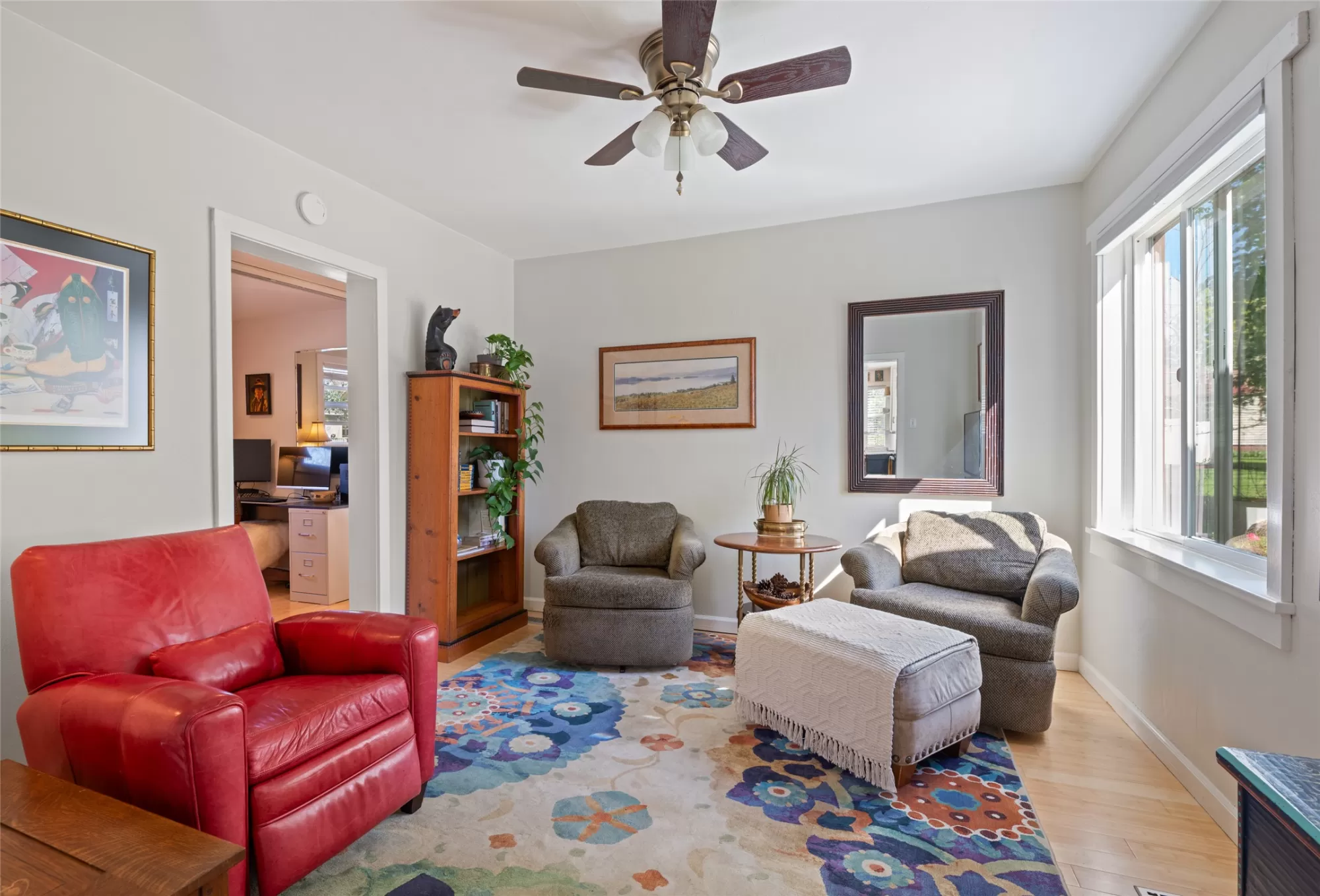 Tucked away in a quiet, almost hidden corner of downtown, this delightful home offers the perfect blend of comfort and convenience—just steps from the golf course, Lawrence Park, and a variety of local shops and services. With eye-catching curb appeal, fresh exterior paint, and a newer roof (2023), this well-maintained property showcases timeless charm with thoughtful updates throughout. Inside, natural light fills the bright, airy living spaces, highlighting the warm bamboo flooring that flows throughout the home. The updated kitchen combines style and functionality, while the radiant-heated bathroom floor adds a touch of everyday luxury. Three inviting bedrooms plus a versatile office—featuring an accordion door that easily converts to a guest sleeping area—make the most of every square foot. A cheerful laundry room adds both convenience and personality to daily routines. Outdoors, a spacious lawn framed by mature landscaping creates an ideal setting for relaxing or entertaining. Two sturdy sheds provide excellent storage, and newer water and sewer lines (2023) offer added peace of mind. A paved alley allows for easy access and additional parking options. This charming downtown retreat delivers comfort, character, and a unique location.