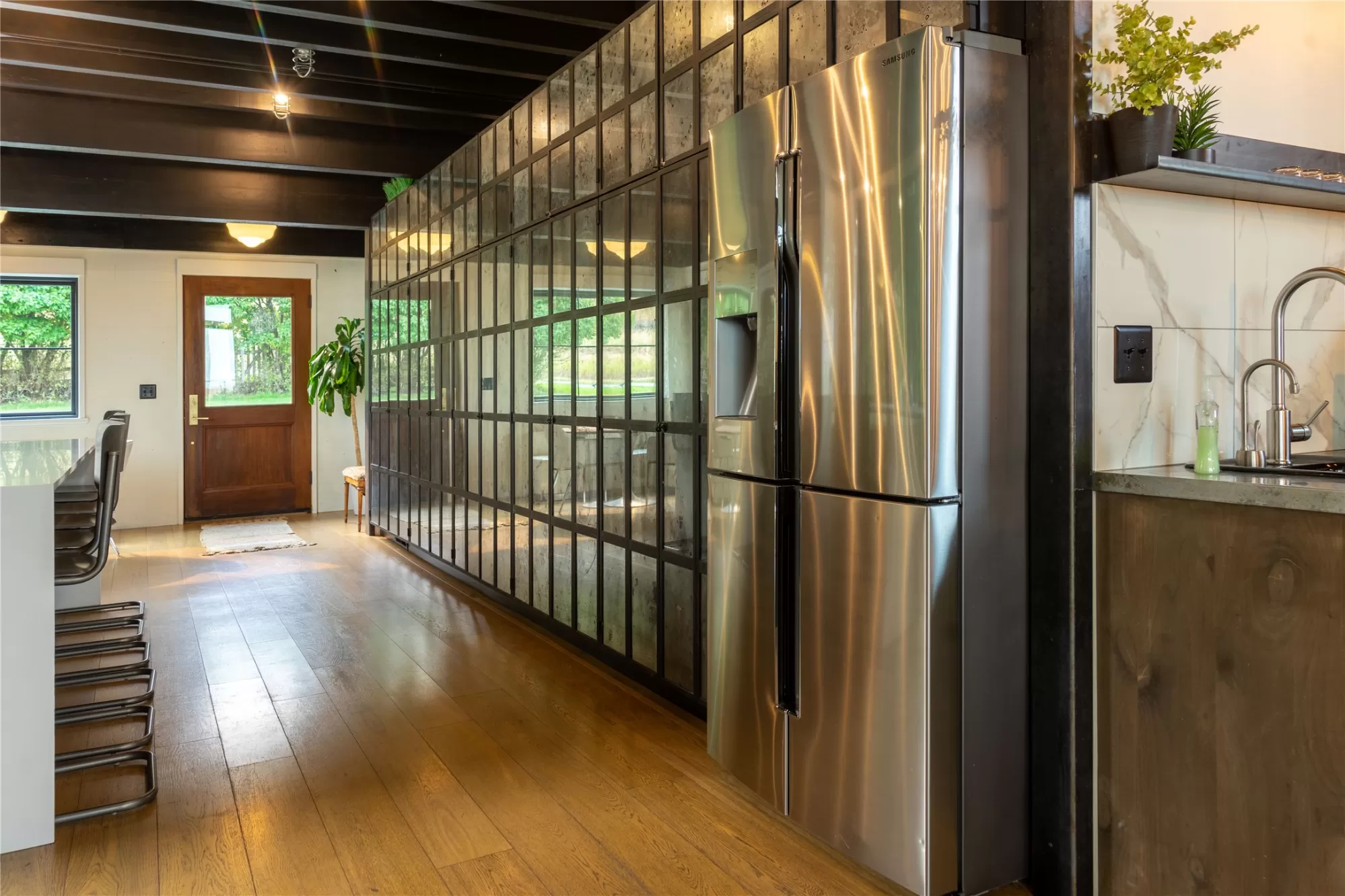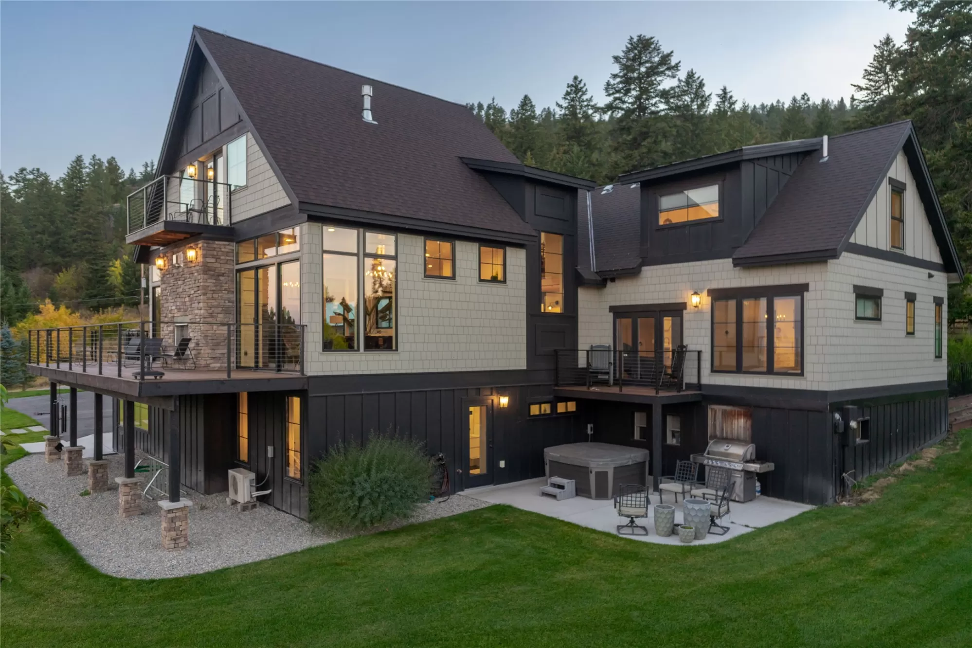 Originally built in 1925, this residence has been completely rebuilt from the studs up—retaining touches of its historic character while incorporating high-end modern design. Offering over 5,000 square feet of refined living space on over 8 usable acres, this property combines elegance, comfort, and functionality in a serene country setting just minutes from town. The main level centers around a gourmet kitchen that was designed to impress and built to function. Floor-to-ceiling glass-front cabinetry along one wall offers both statement-making style and incredible storage. Oversized windows frame the greenery outside and offer beautiful views right from your kitchen window. With high-end appliances and bold design choices like exposed black ceiling beams from the original home, this kitchen is sure to impress. The adjacent great room features soaring ceilings, walls of glass, and an indoor-outdoor fireplace that flows seamlessly to expansive decks overlooking the mountains. Designed for effortless entertaining, the open layout connects spacious living and dining areas, highlighted by abundant natural light and beautiful engineered oak wood floors. The main level master suite features a private terrace and a spa-inspired bath with radiant in-floor heating. Upstairs, a cozy reading nook, guest bedrooms, and a grand room with its own terrace create versatile retreats. The lower level offers two flex rooms, a built-in playhouse, and a luxury bath with steam shower and sauna. Multiple outdoor living areas provide extraordinary spaces for entertaining, from intimate gatherings to large celebrations. The upper deck above the garage offers a dramatic setting with panoramic views, perfect for summer parties under the Big Sky. Additional amenities include an attached, heated 2 car garage, a heated 32x60 shop with an office and bathroom, an established garden, a stunning waterfall feature, close proximity to Lone Pine State Park, and so much more. There is even a shelter and fencing for your animals. No covenants and no HOA! This one-of-a-kind estate delivers privacy, sophistication, and ample space for both everyday living and unforgettable entertaining. While photos and video offer a glimpse, the true level of luxury, craftsmanship, and detail in this home is best appreciated in person. Don’t miss your opportunity to view this property and make this one-of-a-kind estate your own.