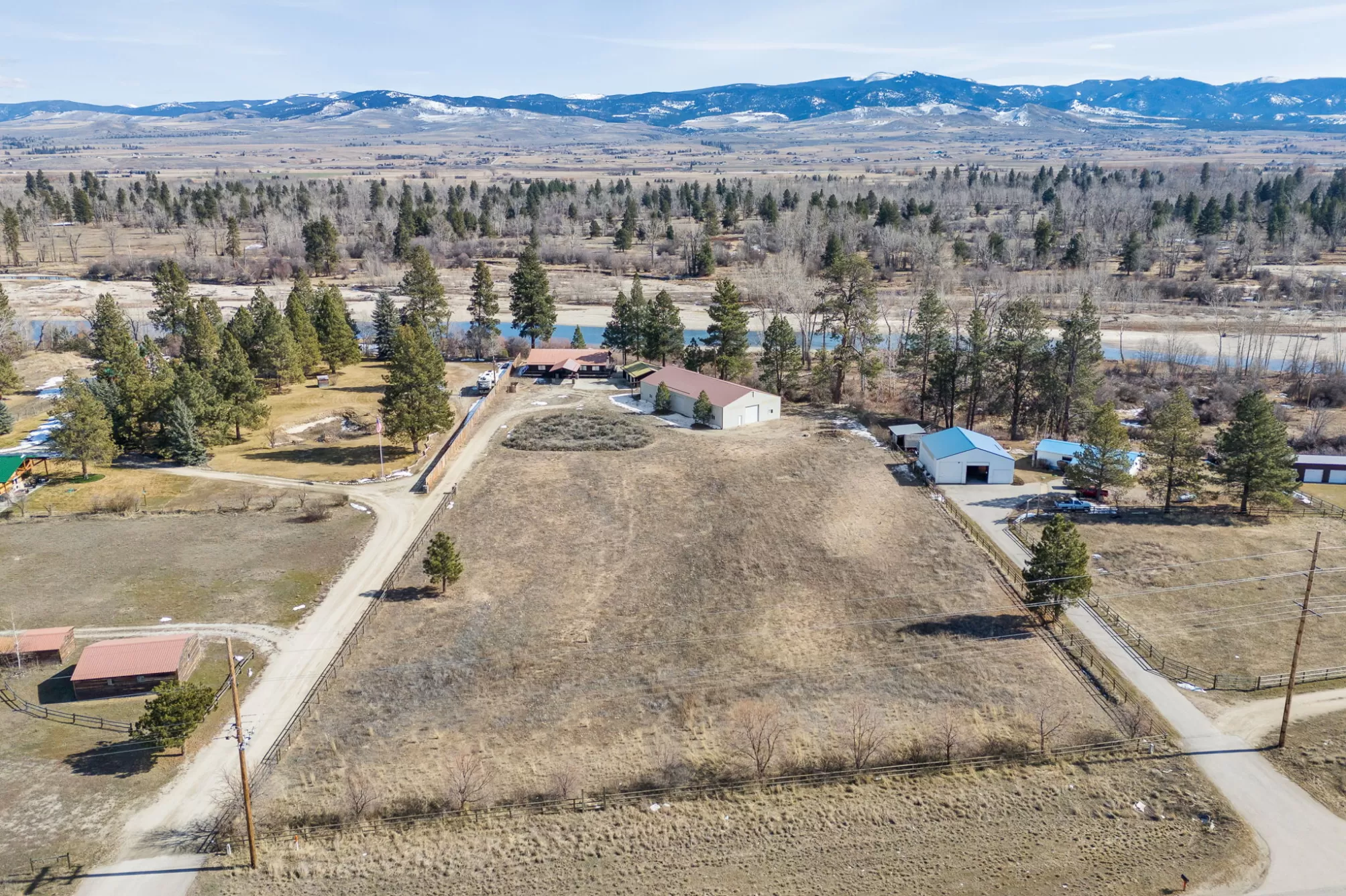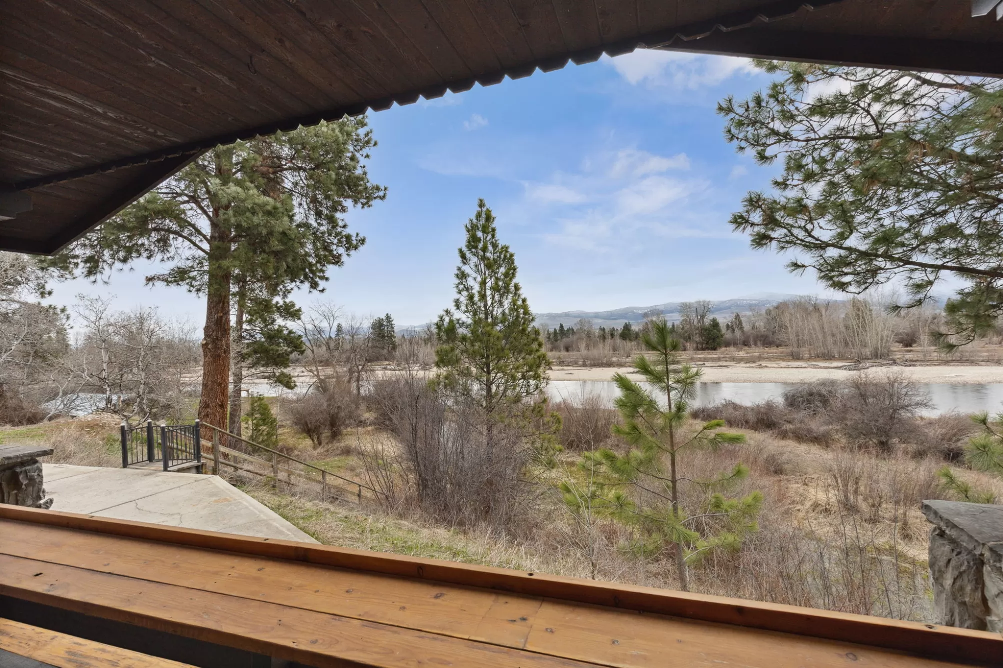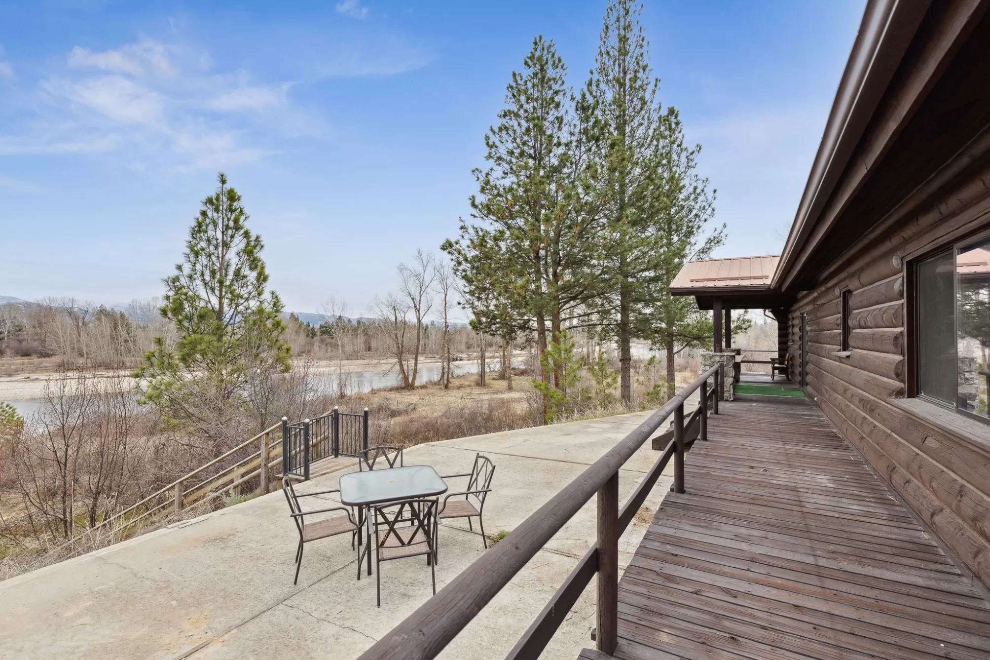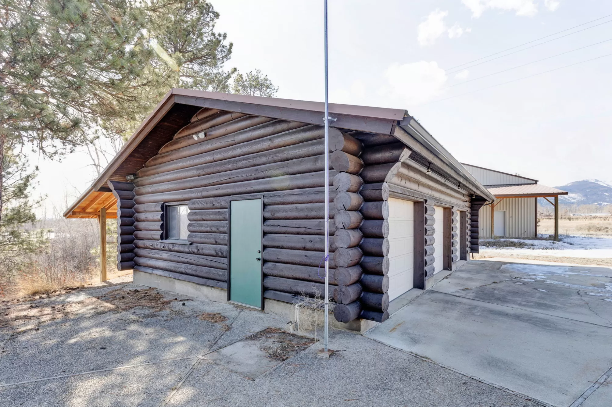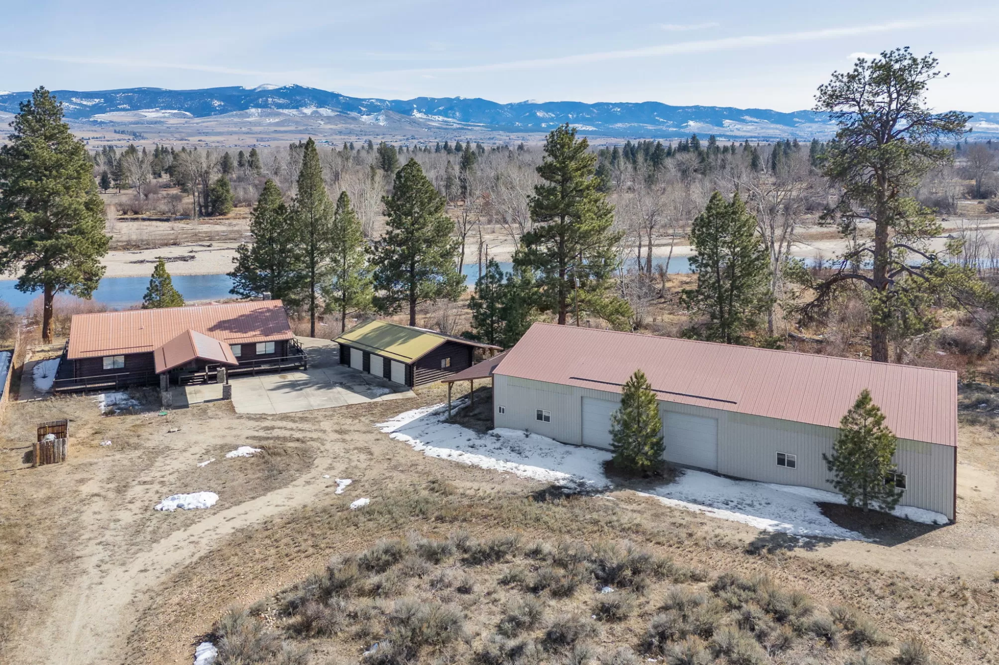 River front property! This beautiful and spacious log home is set back from the highway on 8.85 acres featuring Bitterroot River access and views. Encompassed within the 2,640 Sq. Ft. are 2 bedrooms and 2 bathrooms, a beautiful living room with a large Manard fireplace, and an open dining area with sliding glass door to the deck overlooking the river, creating a space for relaxing and entertaining, as well as water access just down the installed stairway. The kitchen offers a lovely space to gather with warm ambience, along with ample counter and cabinet space. As an added bonus there is a 3 car detached garage, concrete pads and walkways as well as a sizable 5,000+/- square foot shop that features a separate heated workspace from the warehouse area. Recent, and new upgrades and updates include: a furnace, propane lines to home, well pump, pressure tank, countertops, exterior stain and privacy fence.