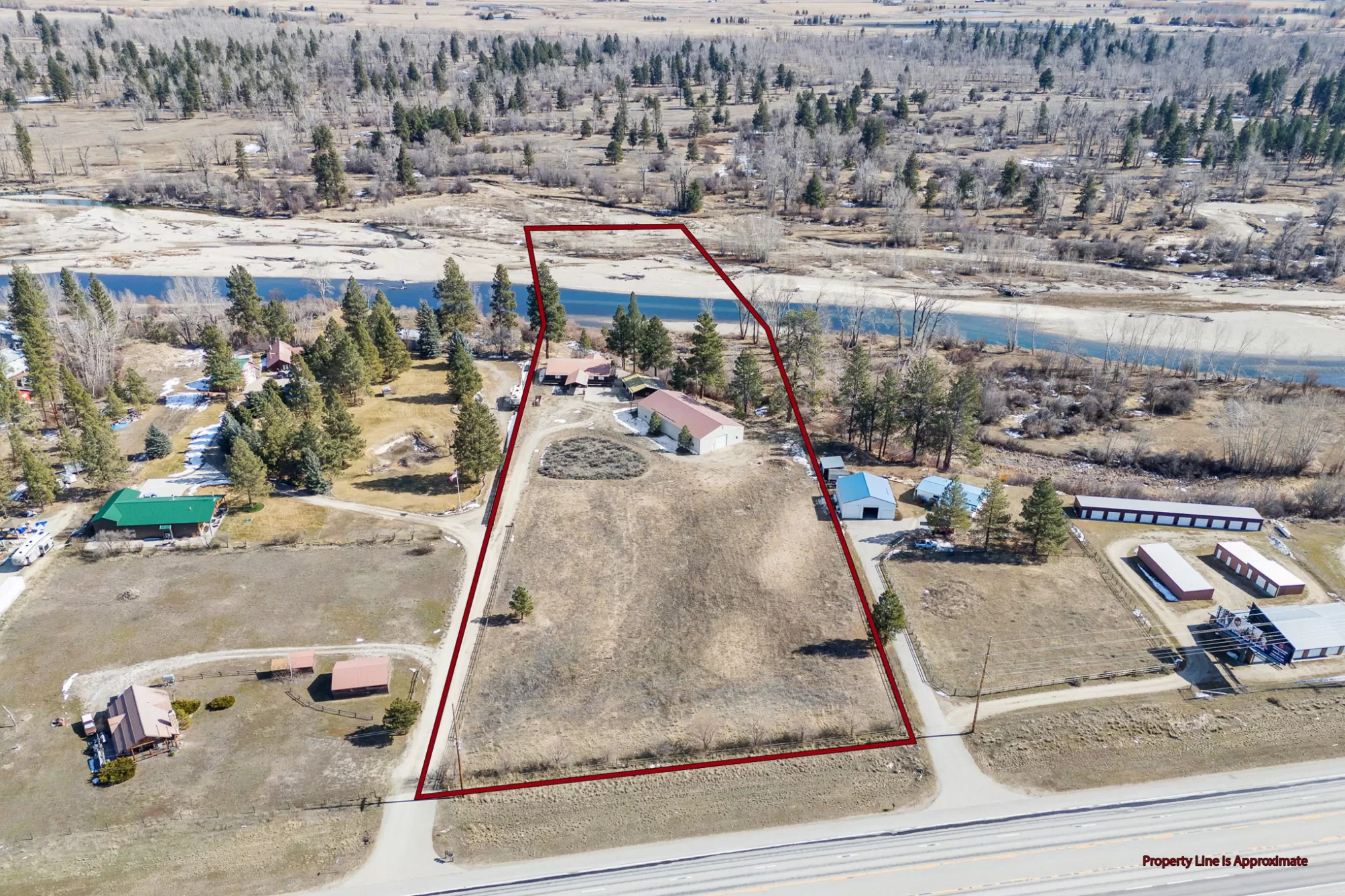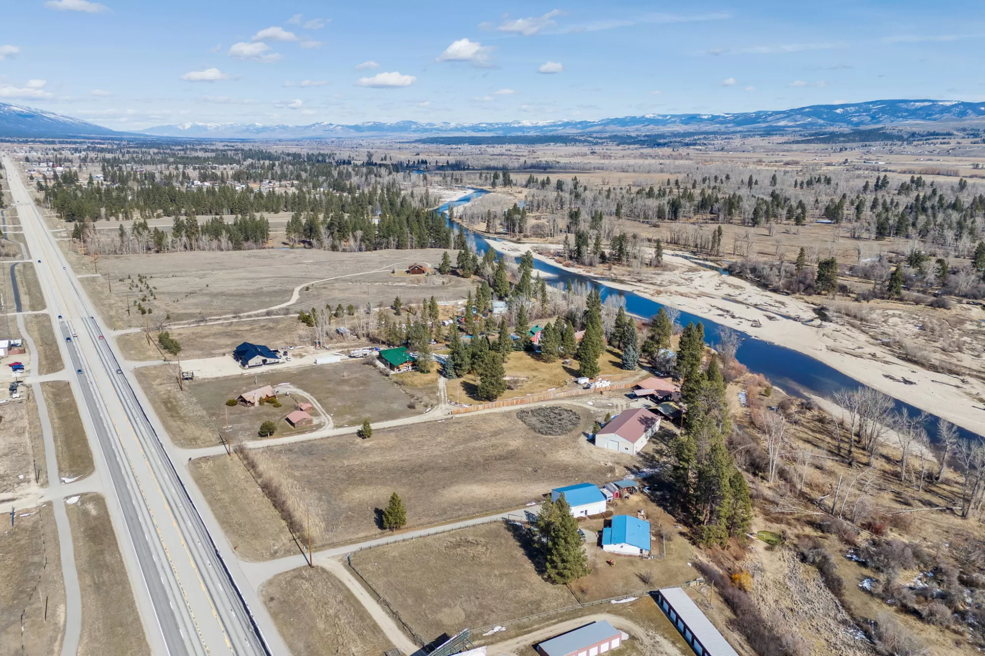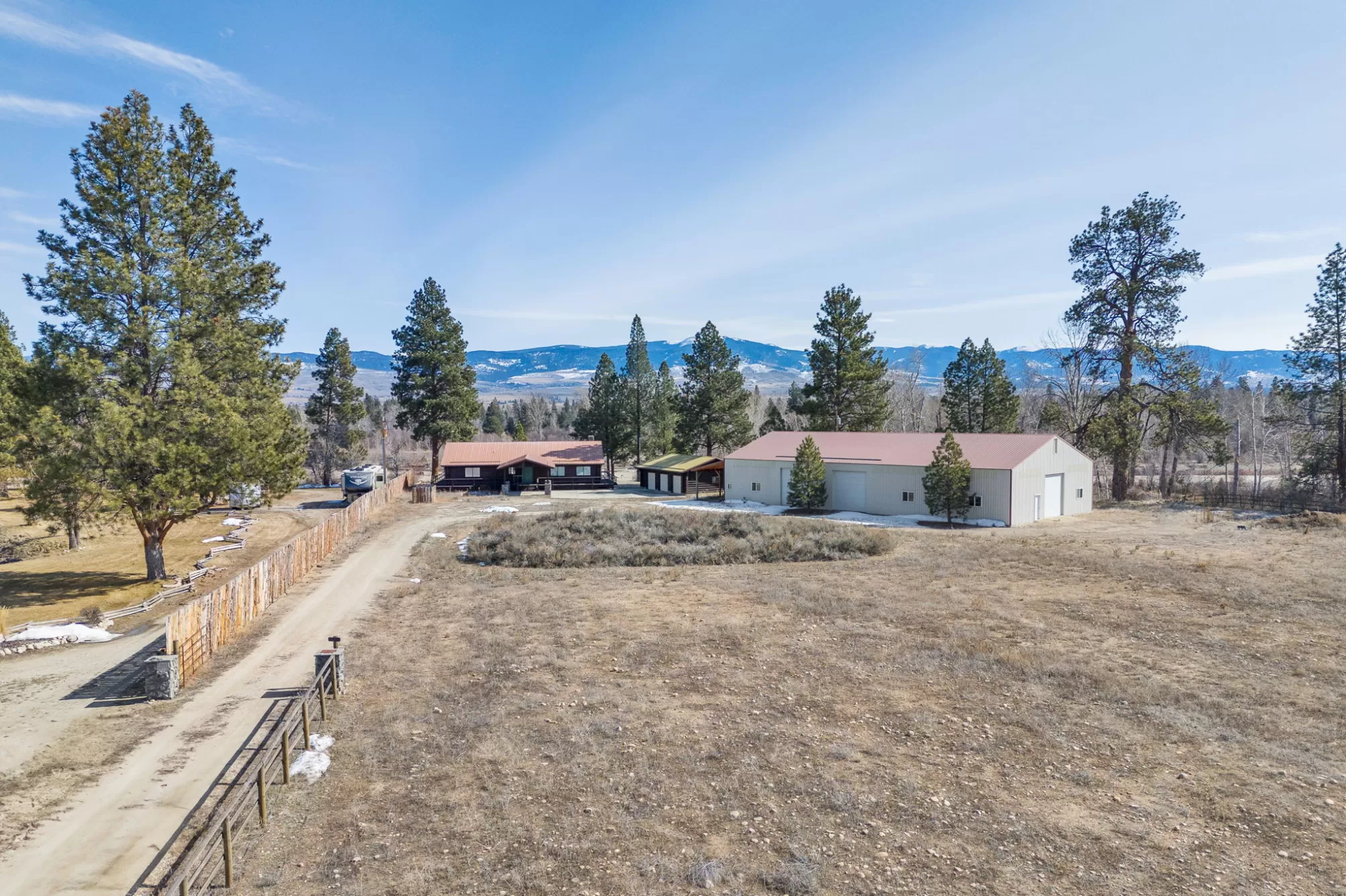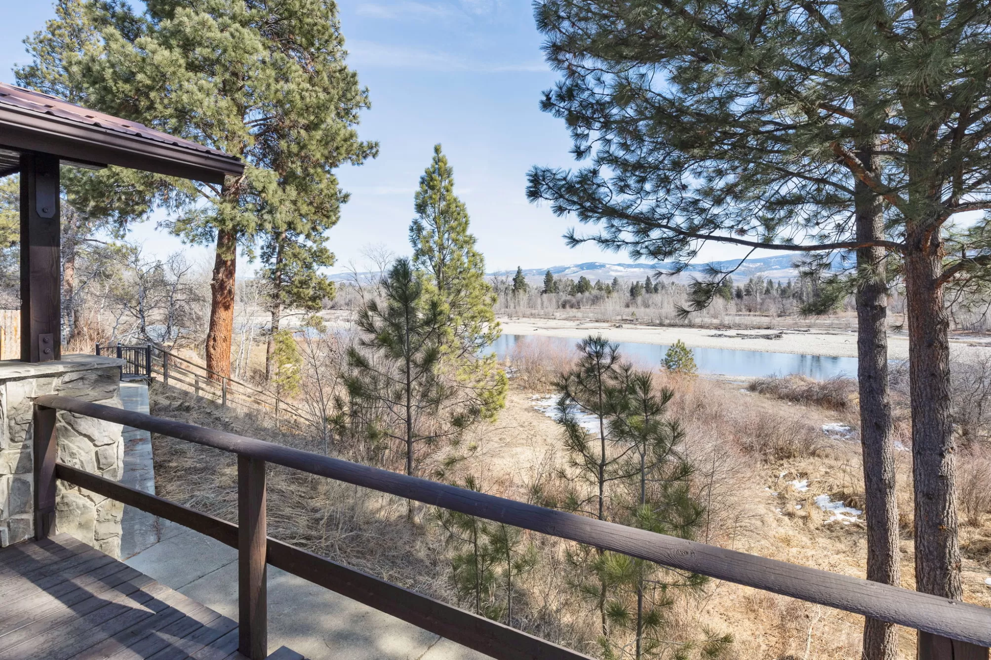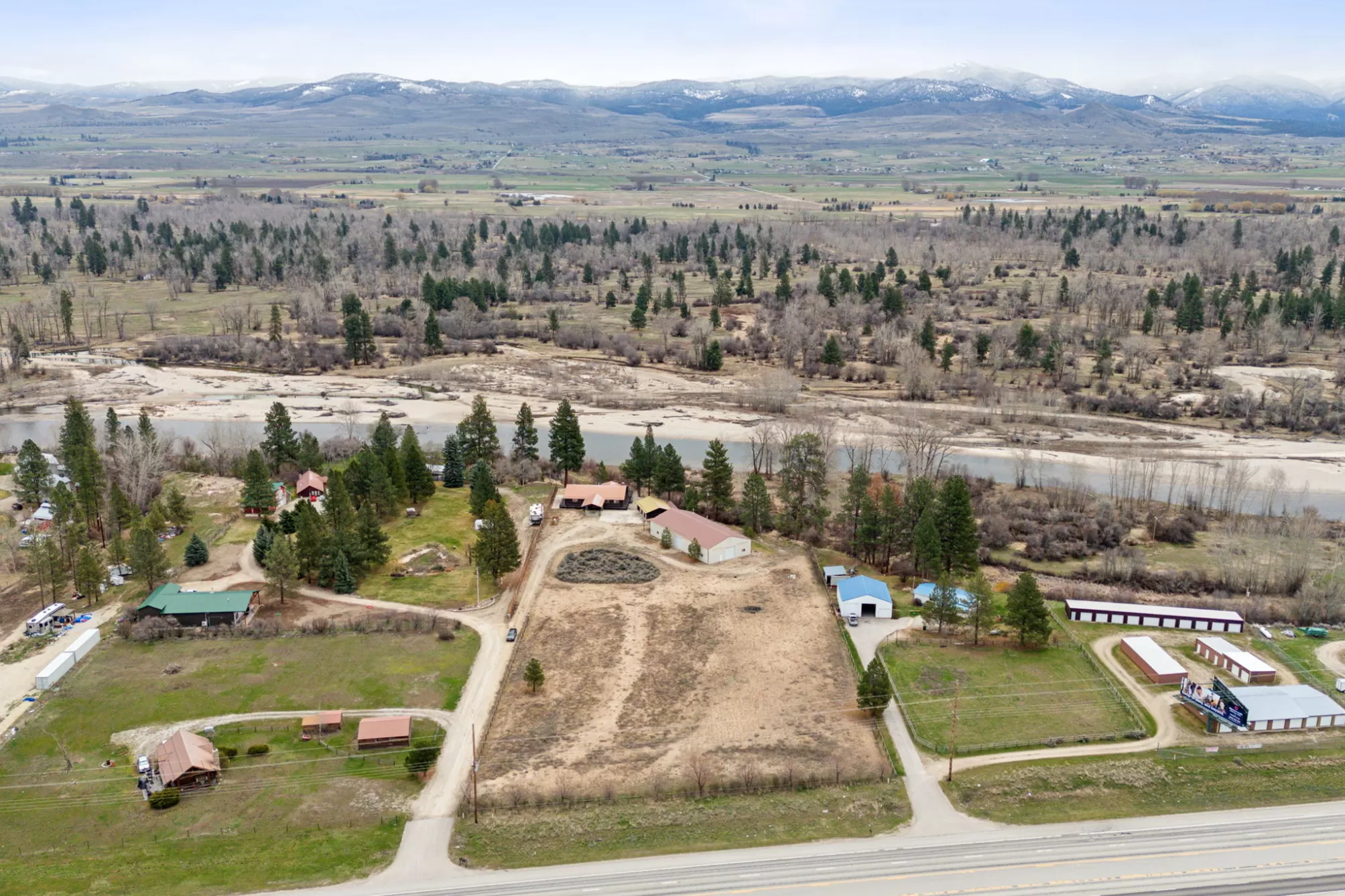 River front property! This beautiful and spacious log home is set back from the highway on 8.85 acres featuring Bitterroot River access and views. Encompassed within the 2,640 Sq. Ft. are 2 bedrooms and 2 bathrooms, a beautiful living room with a large Manard fireplace, and an open dining area with sliding glass door to the deck overlooking the river, creating a space for relaxing and entertaining, as well as water access just down the installed stairway. The kitchen offers a lovely space to gather with warm ambience, along with ample counter and cabinet space. As an added bonus there is a 3 car detached garage, concrete pads and walkways as well as a sizable 5,000+/- square foot shop that features a separate heated workspace from the warehouse area. Recent, and new upgrades and updates include: a furnace, propane lines to home, well pump, pressure tank, countertops, exterior stain and privacy fence.