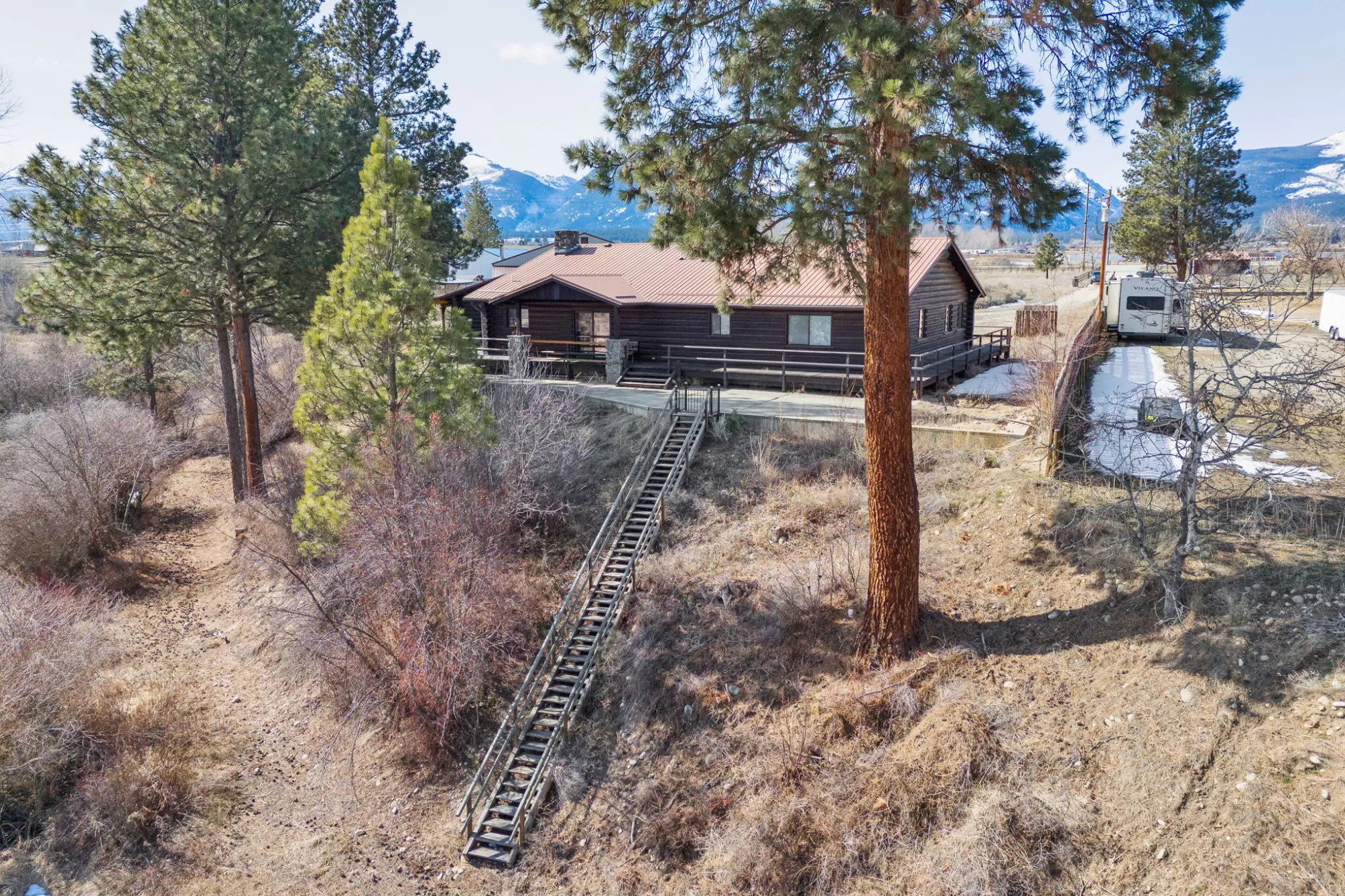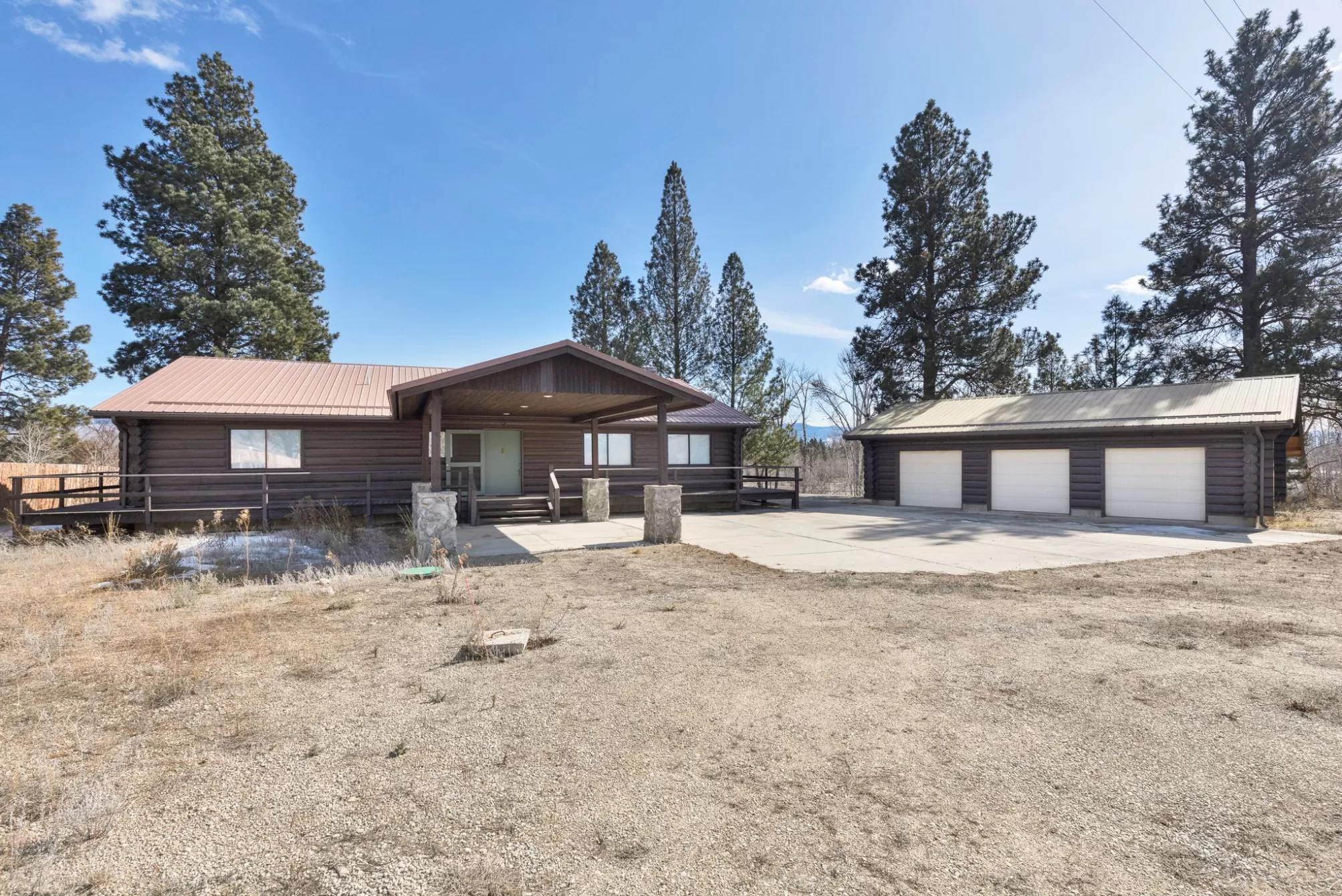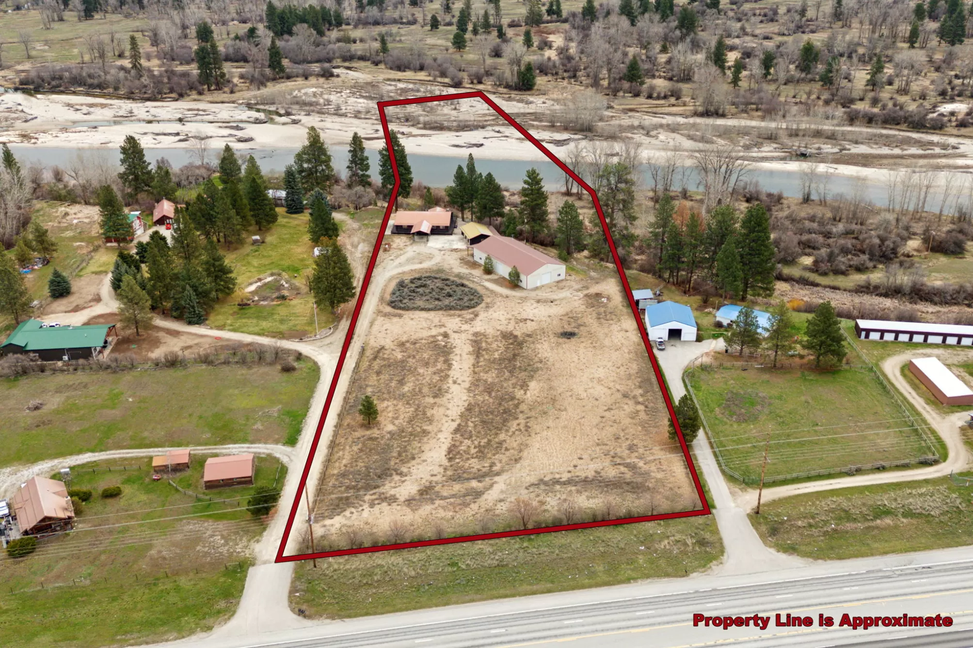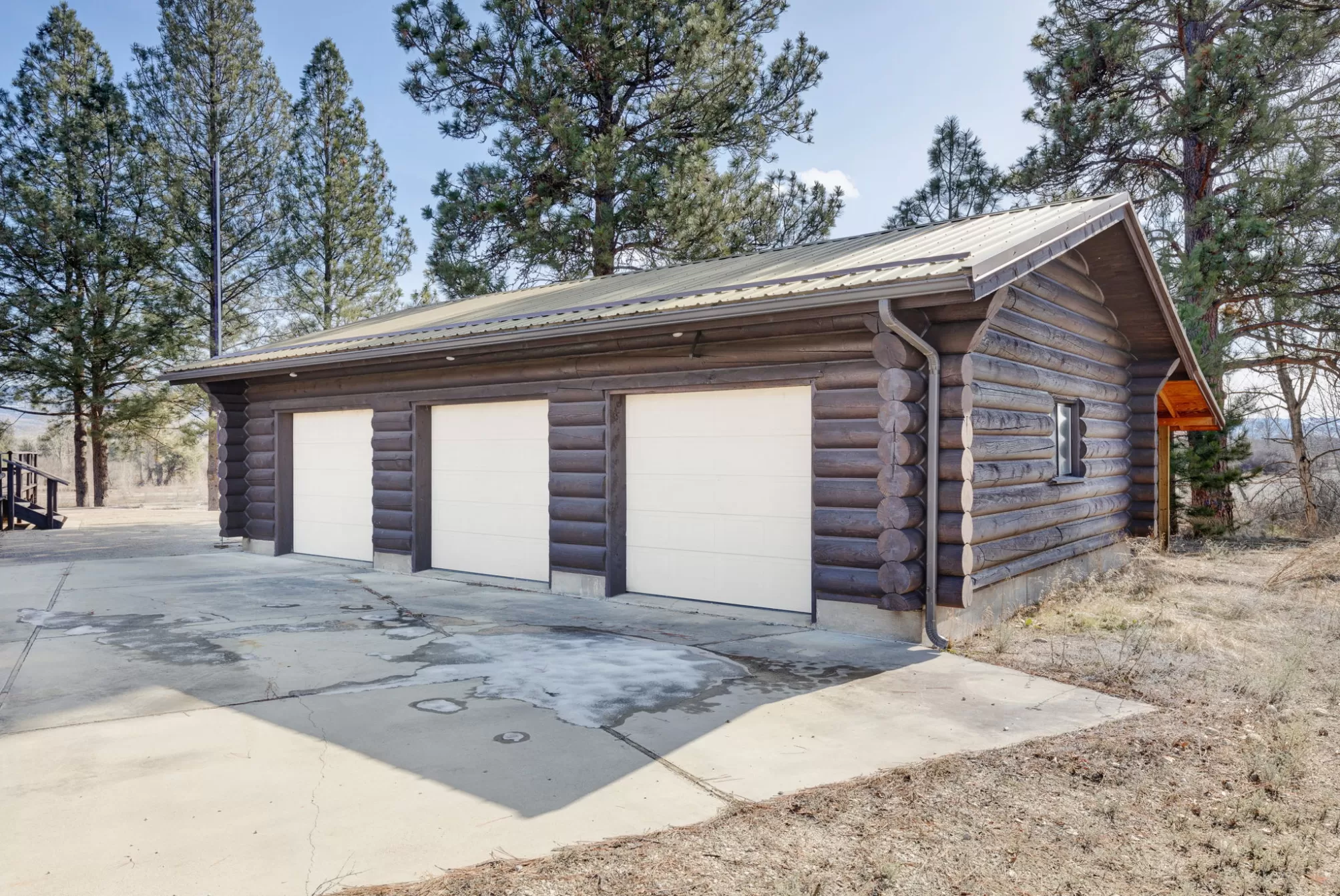 River front property! This beautiful and spacious log home is set back from the highway on 8.85 acres featuring Bitterroot River access and views. Encompassed within the 2,640 Sq. Ft. are 2 bedrooms and 2 bathrooms, a beautiful living room with a large Manard fireplace, and an open dining area with sliding glass door to the deck overlooking the river, creating a space for relaxing and entertaining, as well as water access just down the installed stairway. The kitchen offers a lovely space to gather with warm ambience, along with ample counter and cabinet space. As an added bonus there is a 3 car detached garage, concrete pads and walkways as well as a sizable 5,000+/- square foot shop that features a separate heated workspace from the warehouse area. Recent, and new upgrades and updates include: a furnace, propane lines to home, well pump, pressure tank, countertops, exterior stain and privacy fence.