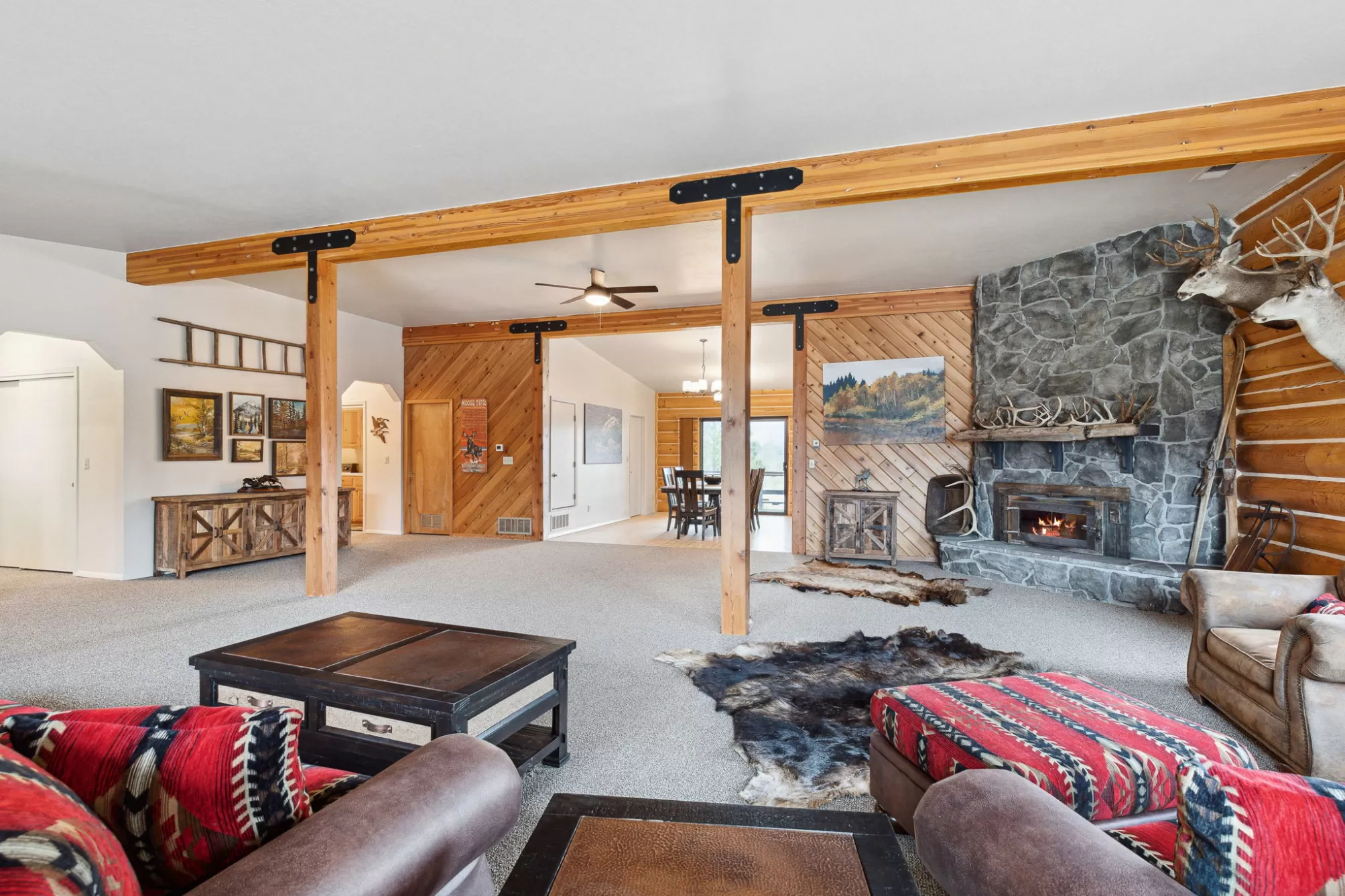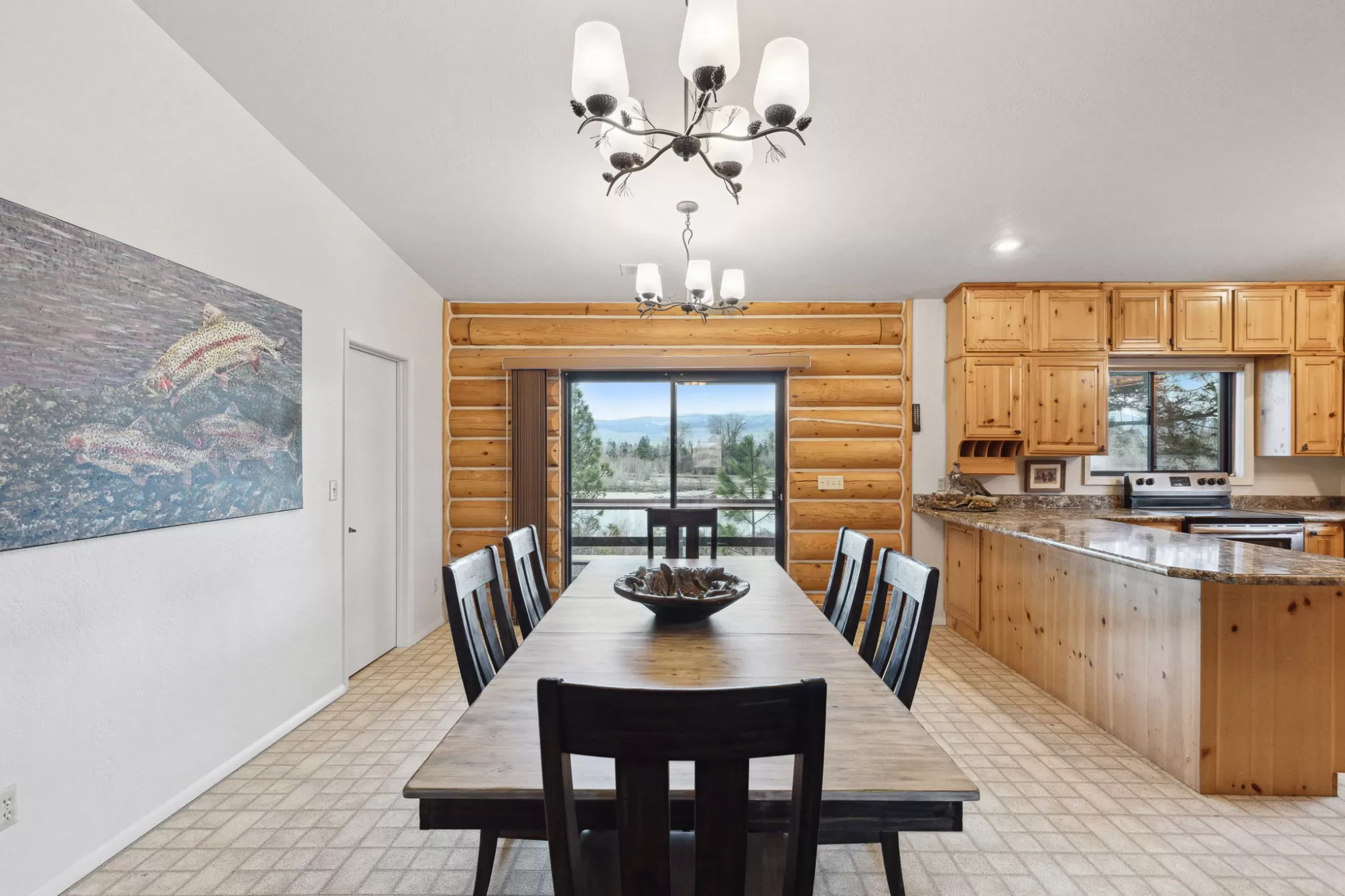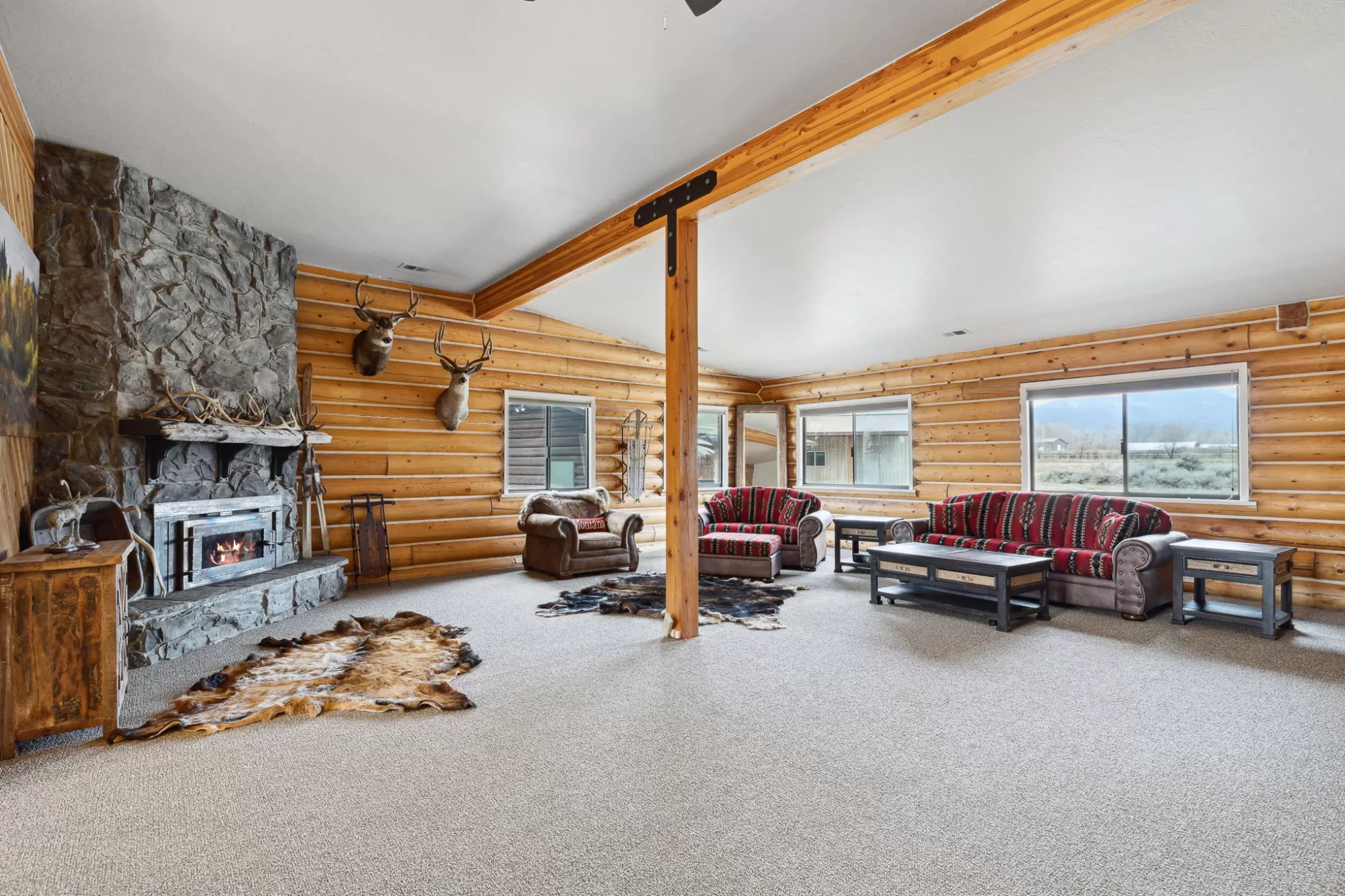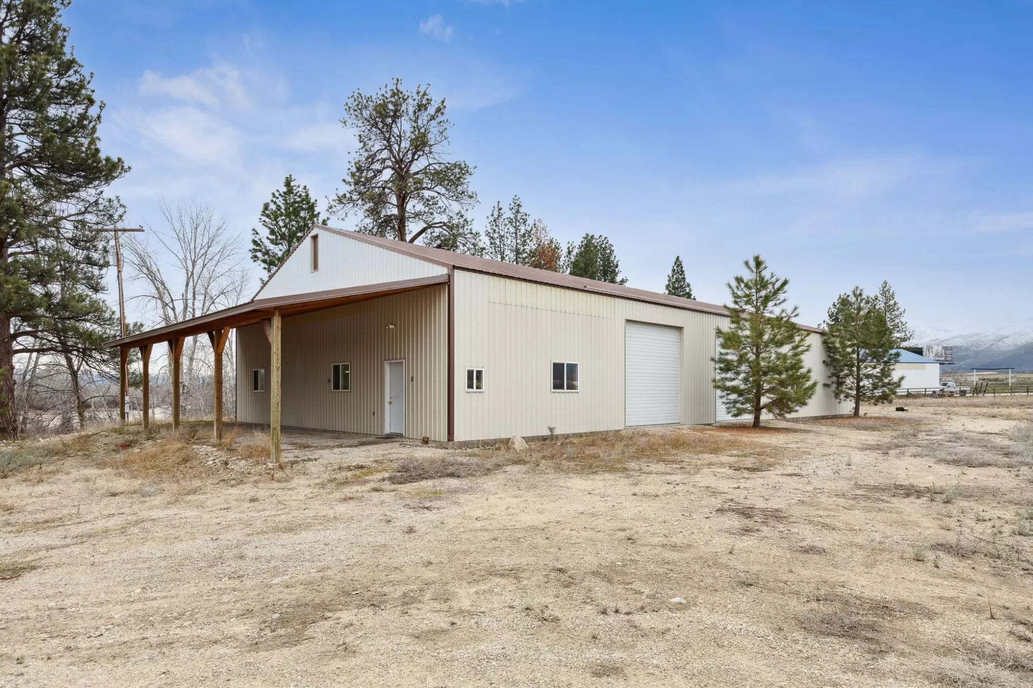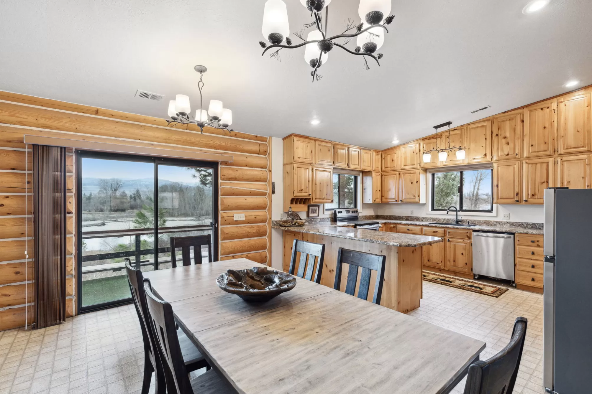 River front property! This beautiful and spacious log home is set back from the highway on 8.85 acres featuring Bitterroot River access and views. Encompassed within the 2,640 Sq. Ft. are 2 bedrooms and 2 bathrooms, a beautiful living room with a large Manard fireplace, and an open dining area with sliding glass door to the deck overlooking the river, creating a space for relaxing and entertaining, as well as water access just down the installed stairway. The kitchen offers a lovely space to gather with warm ambience, along with ample counter and cabinet space. As an added bonus there is a 3 car detached garage, concrete pads and walkways as well as a sizable 5,000+/- square foot shop that features a separate heated workspace from the warehouse area. Recent, and new upgrades and updates include: a furnace, propane lines to home, well pump, pressure tank, countertops, exterior stain and privacy fence.