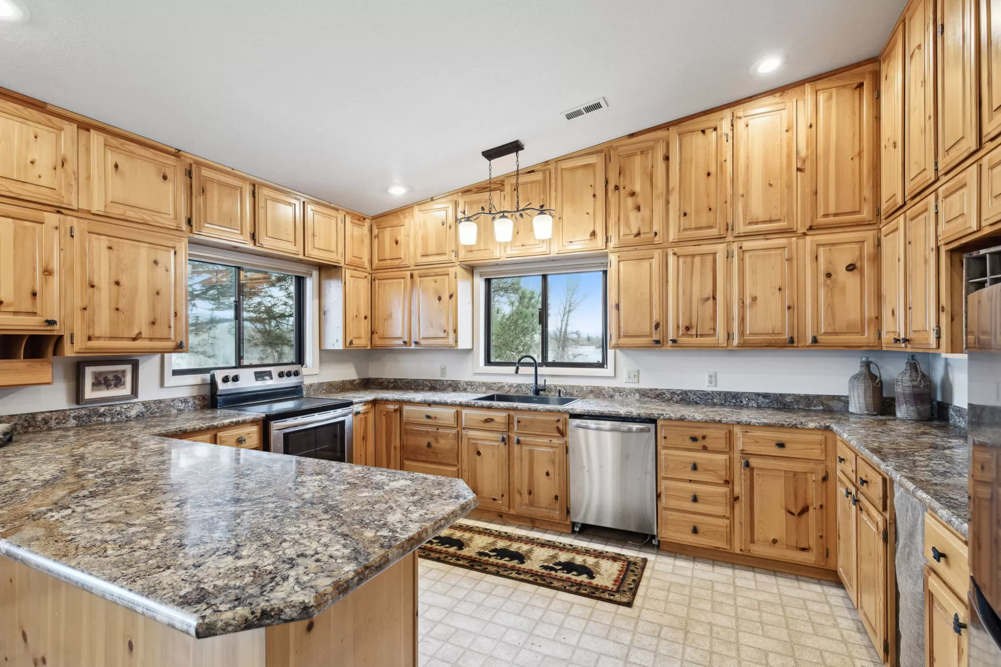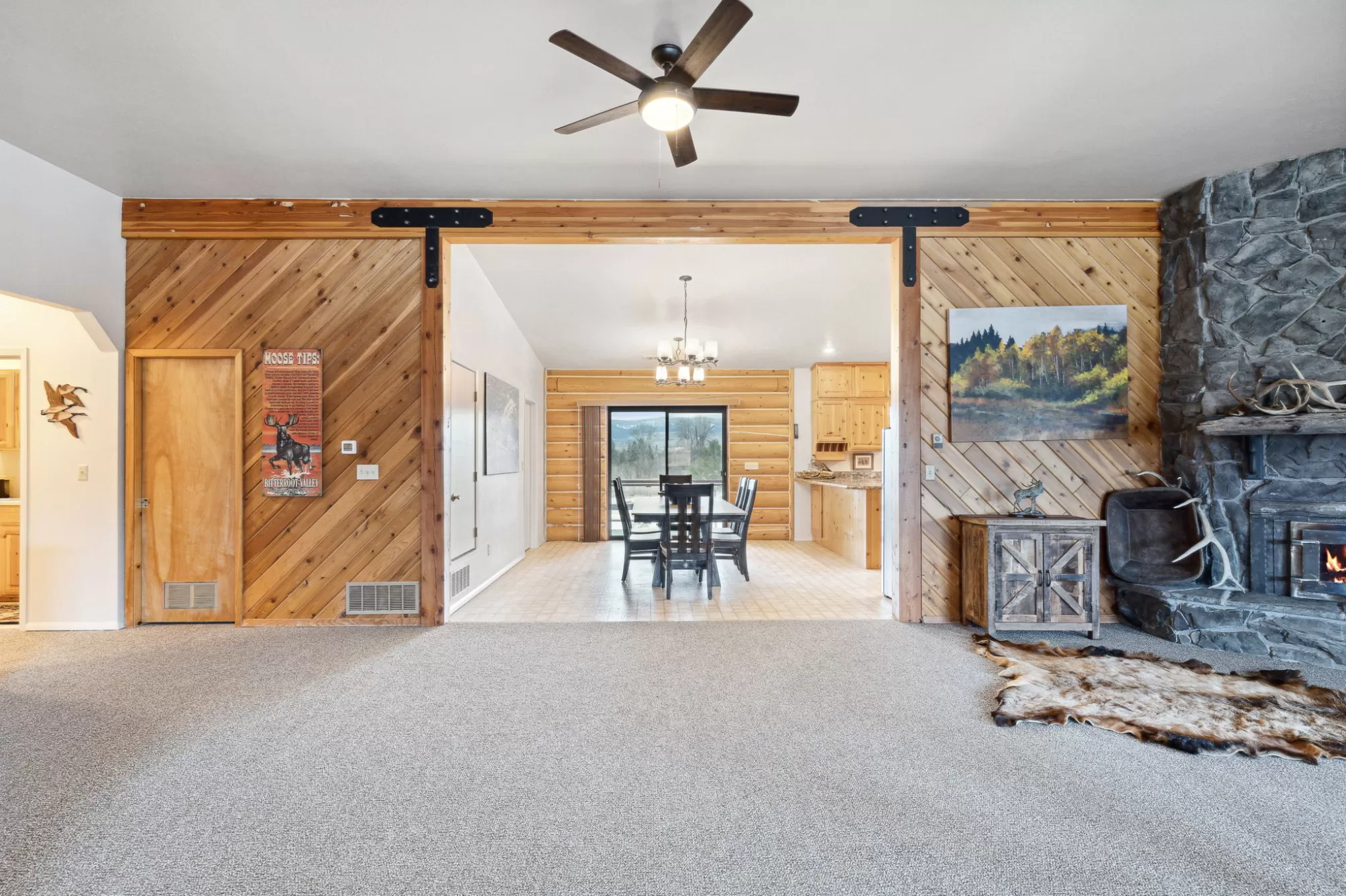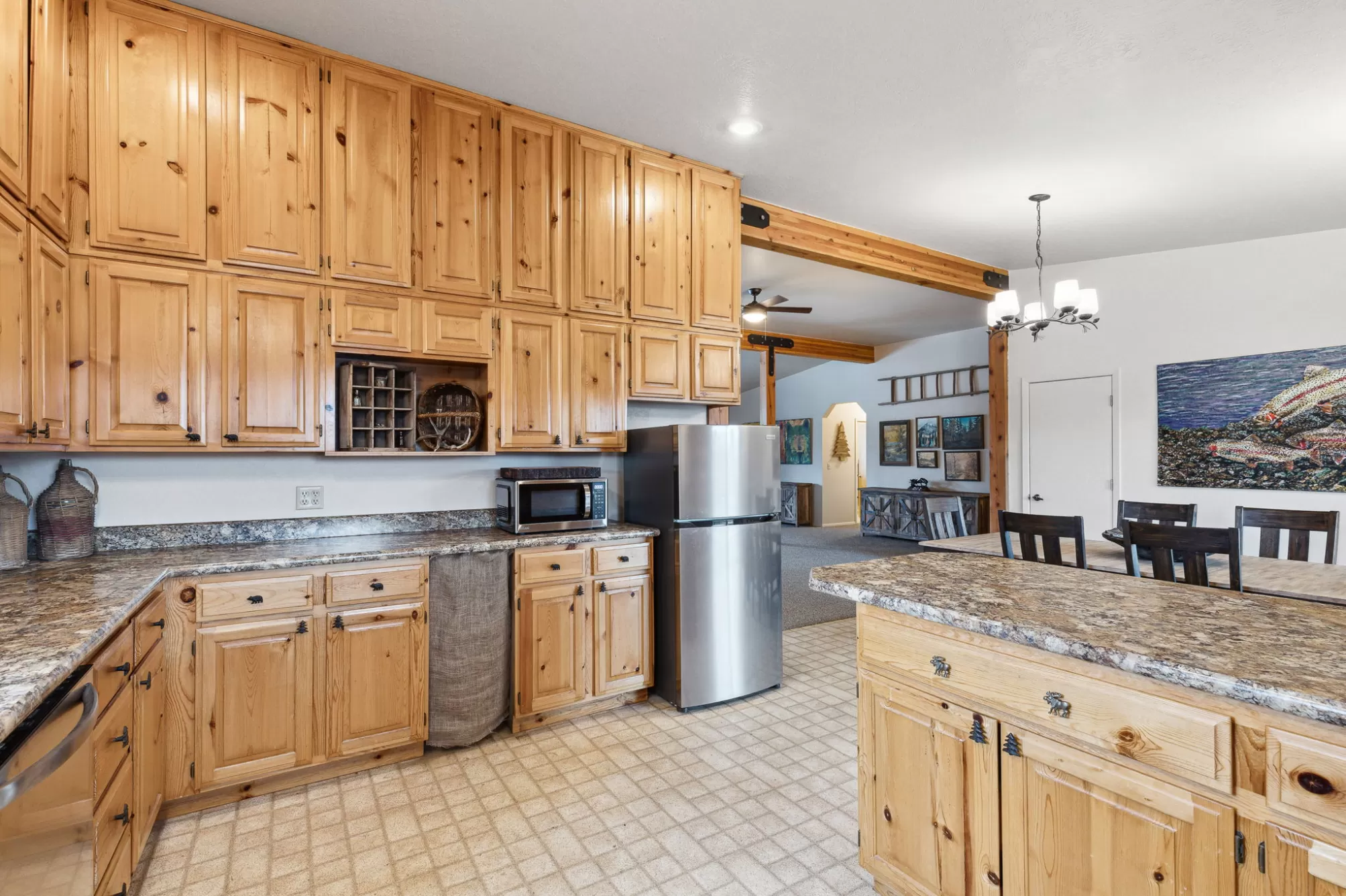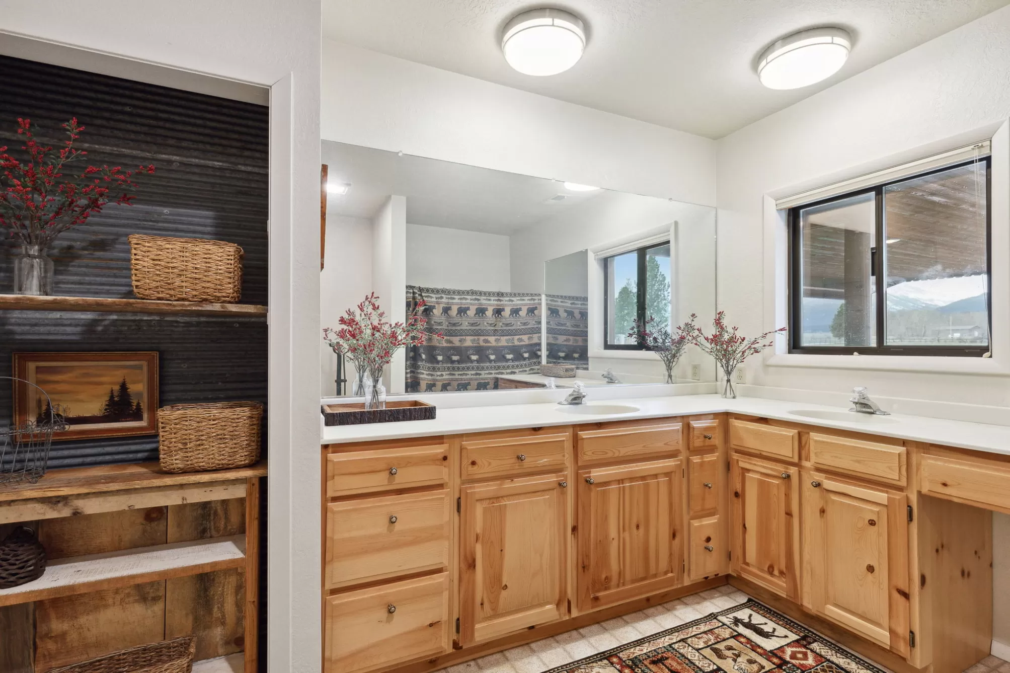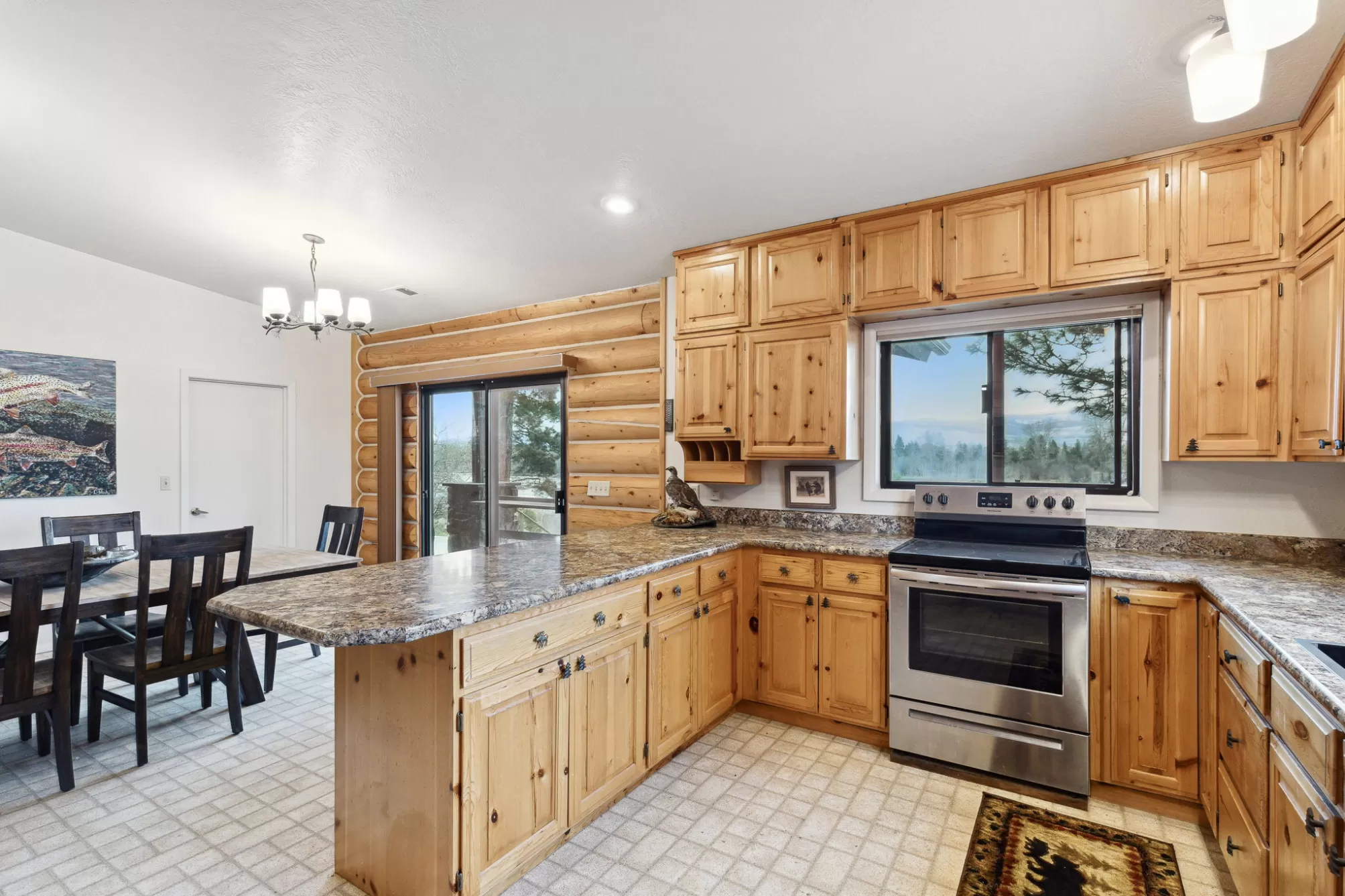 River front property! This beautiful and spacious log home is set back from the highway on 8.85 acres featuring Bitterroot River access and views. Encompassed within the 2,640 Sq. Ft. are 2 bedrooms and 2 bathrooms, a beautiful living room with a large Manard fireplace, and an open dining area with sliding glass door to the deck overlooking the river, creating a space for relaxing and entertaining, as well as water access just down the installed stairway. The kitchen offers a lovely space to gather with warm ambience, along with ample counter and cabinet space. As an added bonus there is a 3 car detached garage, concrete pads and walkways as well as a sizable 5,000+/- square foot shop that features a separate heated workspace from the warehouse area. Recent, and new upgrades and updates include: a furnace, propane lines to home, well pump, pressure tank, countertops, exterior stain and privacy fence.