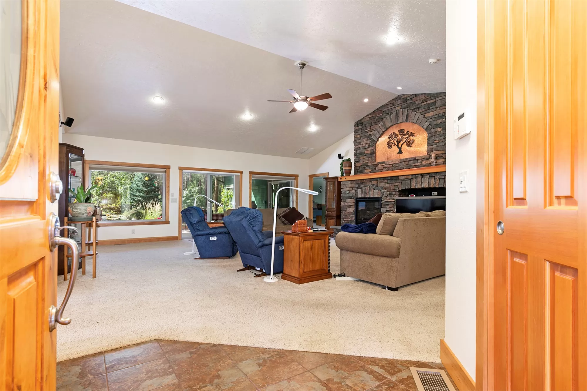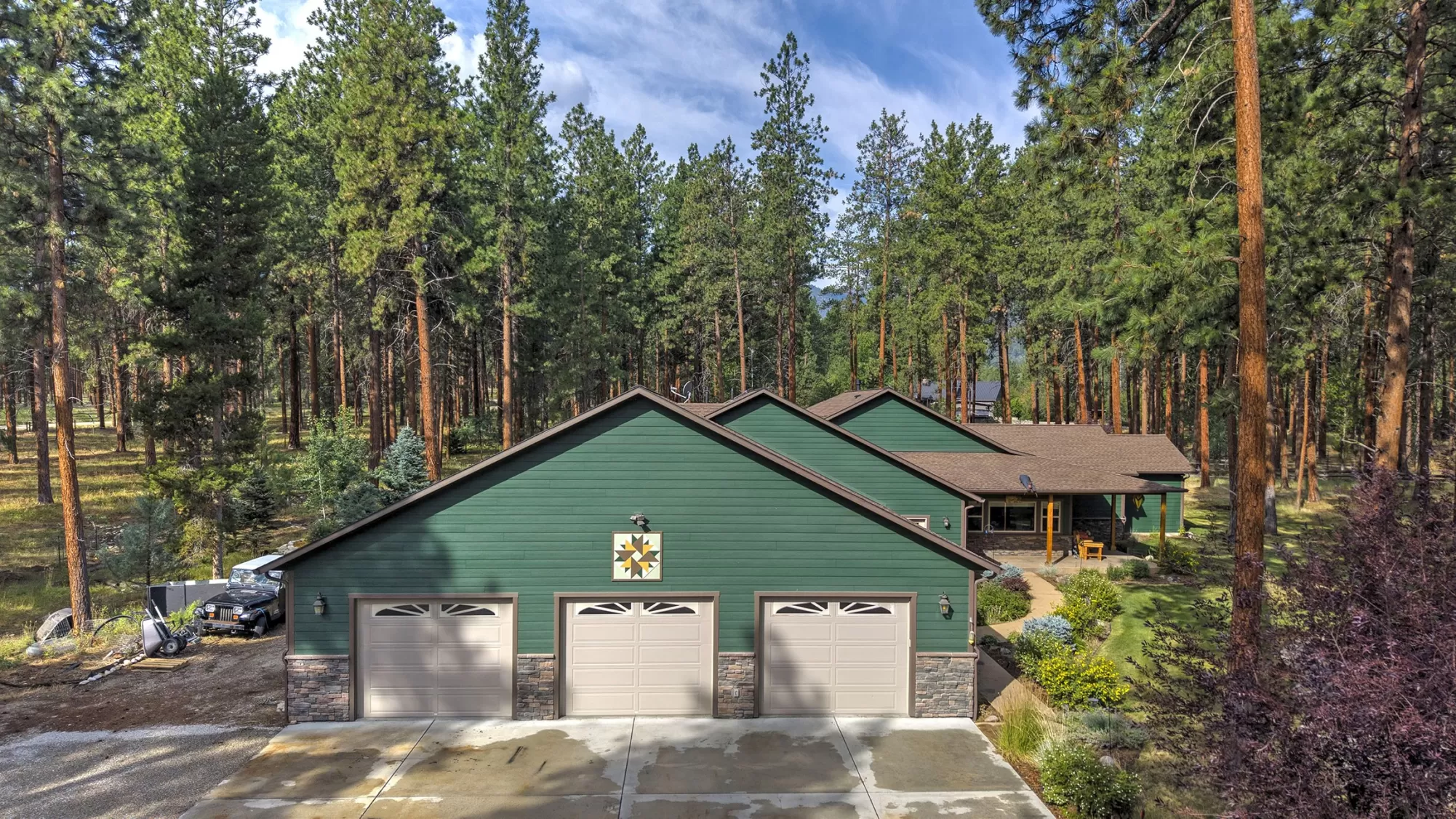 Motivated Sellers Offering Buyers' Credit at Closing! Quality-Built Home on Mountain Goat Road – Secluded Montana Retreat! Tucked among the trees in a quiet, private setting, this 2009 custom-built home offers exceptional craftsmanship and over 3,360 sq. ft. of living space. Vaulted ceilings and expansive windows fill the interior with natural light while framing serene views of the manicured lawn, rock waterfall, and visiting deer, birds, and other wildlife. The spacious great room is anchored by a striking stone fireplace, while the well-appointed kitchen delights with a large granite island, prep sink, instant hot water, and breakfast nook. A formal dining room easily accommodates multiple tables for large gatherings. The primary suite features a walk-in closet, soaking tub, steam shower, and private access to the stamped concrete patio with built-in sound system. A well-designed office with built-ins and picture windows offers inspiring views, while two guest bedrooms share a full bath. Additional spaces include a mudroom/laundry area and oversized three-car garage with a secure concrete safe room. There is even 220V in the garage, ready for electric vehicle charging! The garage connects directly to a heated woodworker’s dream shop with a half bath! The "Energy Star National Registration", whole home HEPA Recirculation system, and insulated garage are added bonuses of the efficient home! A large pole barn provides sheltered storage for RVs, boats, and recreational vehicles. Outdoors, a covered front patio is perfect for quiet evenings, while the backyard is designed for entertaining. The professionally landscaped grounds, which are kept lush with the 35+ gpm well, include underground sprinklers for easy maintenance, a enclosed garden area, and a handy storage shed. Located near Ward Mountain, Sawtooth Creek, and Goat Mountain Trailhead, this property offers endless opportunities for outdoor recreation, including fishing the Bitterroot River, exploring scenic creeks, and spending days at Painted Rocks Reservoir or Como Lake. If you’ve been dreaming of a Montana home that blends privacy, natural beauty, and quality construction—this is it. Schedule your private showing today.