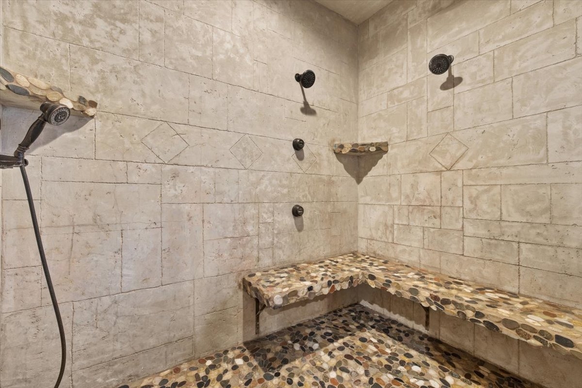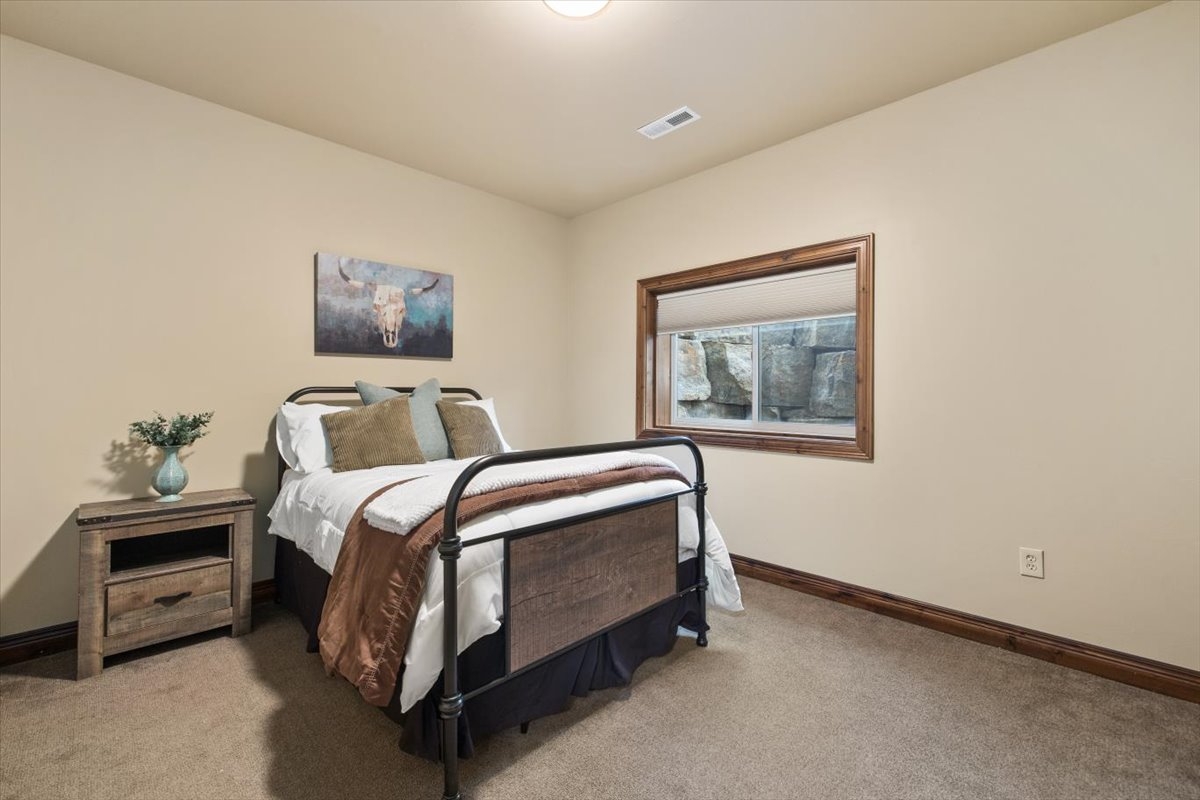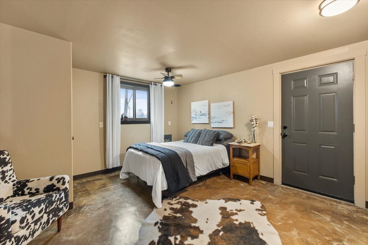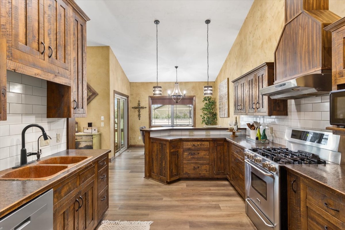 This 4,504 sq. ft. refined rustic residence is a home that welcomes you in and invites you to stay. The main level features three bedrooms and 2.5 baths, including a spacious primary suite with a large spa-like bath, walk-in shower, and his-and-her closets. The kitchen is both functional and striking with hickory cabinetry, stainless steel appliances, a gas range, and generous space designed for gathering. The lower level is designed for entertainment and relaxation, offering two additional bedrooms and a full bath, a weight room, hobby room, along with an impressive theater room and bar area. A large screen and sound system create the ultimate movie-night experience, with ample room for hosting family and friends. Adding exceptional versatility is a shop with approximately 1,800 sq ft (+/-) of livable space, featuring two bedrooms, a full bathroom, full kitchen, washer and dryer, and radiant heat and air conditioning—ideal for guests, family, or potential income opportunities.