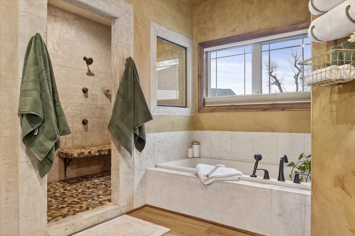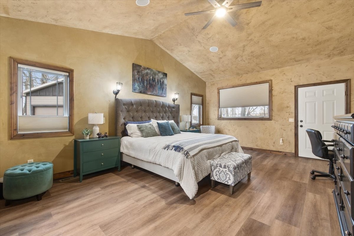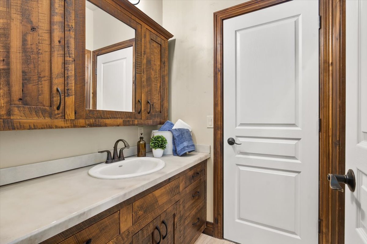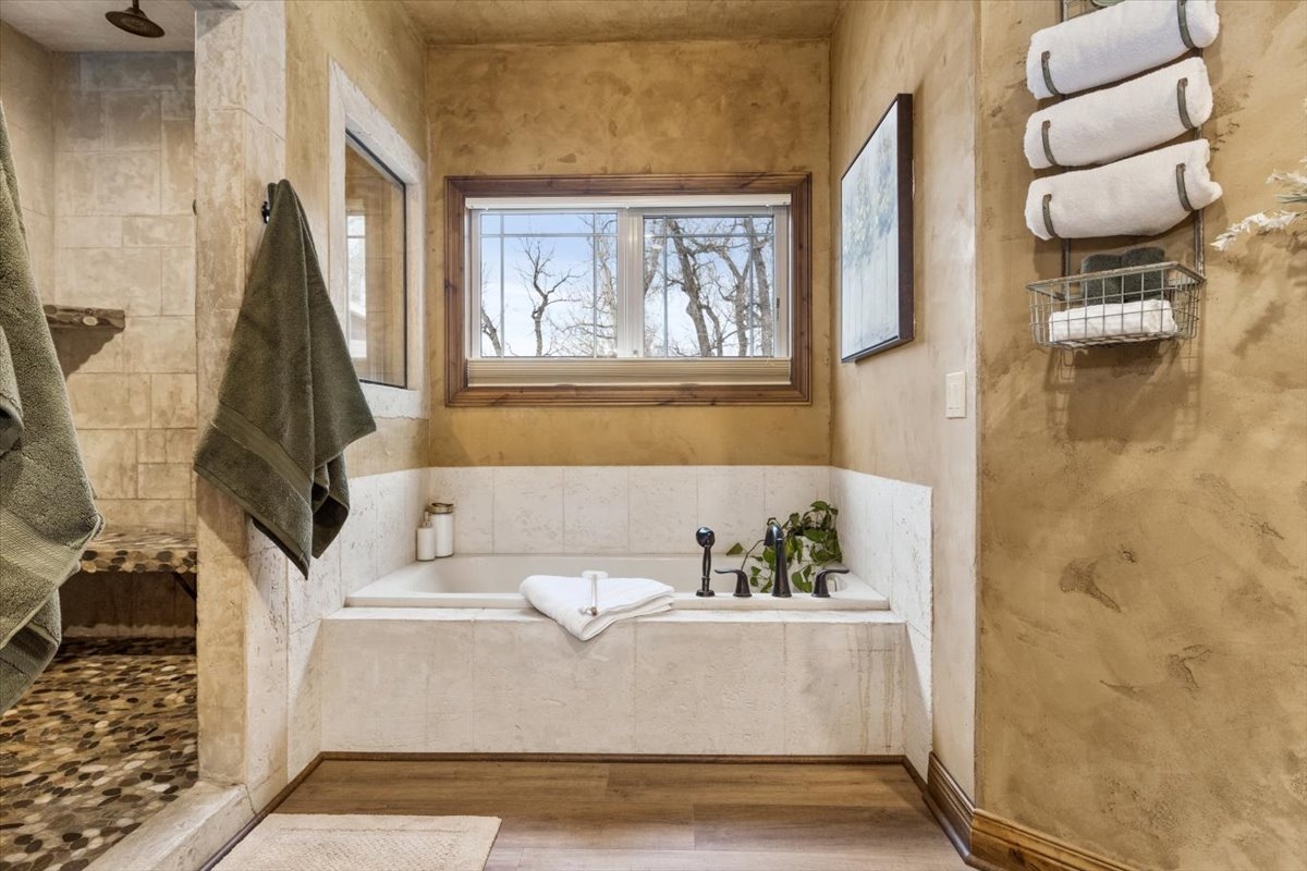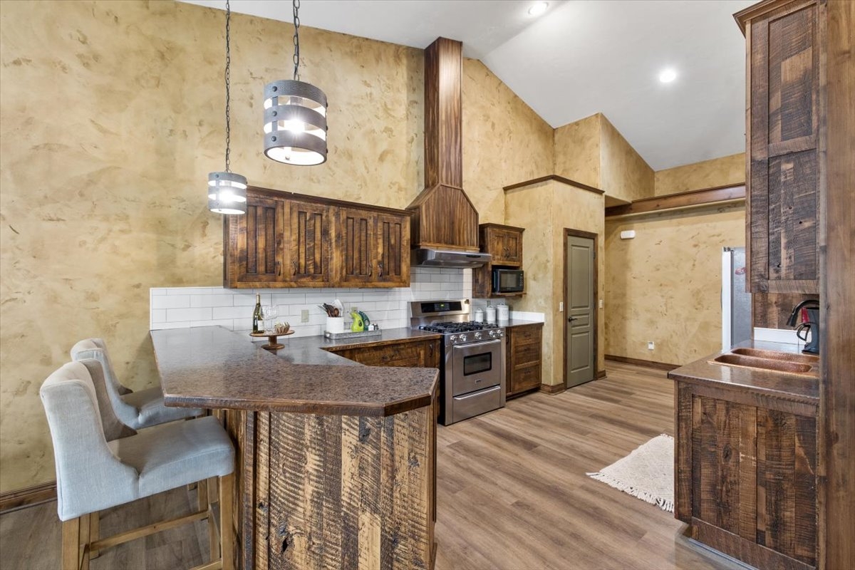 This 4,504 sq. ft. refined rustic residence is a home that welcomes you in and invites you to stay. The main level features three bedrooms and 2.5 baths, including a spacious primary suite with a large spa-like bath, walk-in shower, and his-and-her closets. The kitchen is both functional and striking with hickory cabinetry, stainless steel appliances, a gas range, and generous space designed for gathering. The lower level is designed for entertainment and relaxation, offering two additional bedrooms and a full bath, a weight room, hobby room, along with an impressive theater room and bar area. A large screen and sound system create the ultimate movie-night experience, with ample room for hosting family and friends. Adding exceptional versatility is a shop with approximately 1,800 sq ft (+/-) of livable space, featuring two bedrooms, a full bathroom, full kitchen, washer and dryer, and radiant heat and air conditioning—ideal for guests, family, or potential income opportunities.