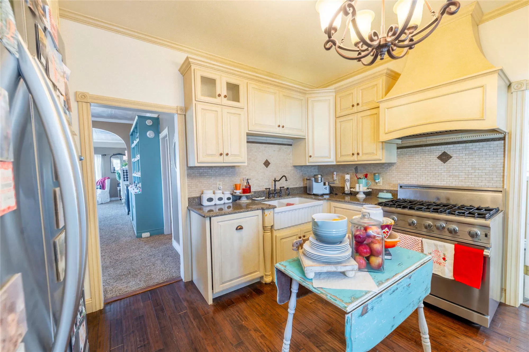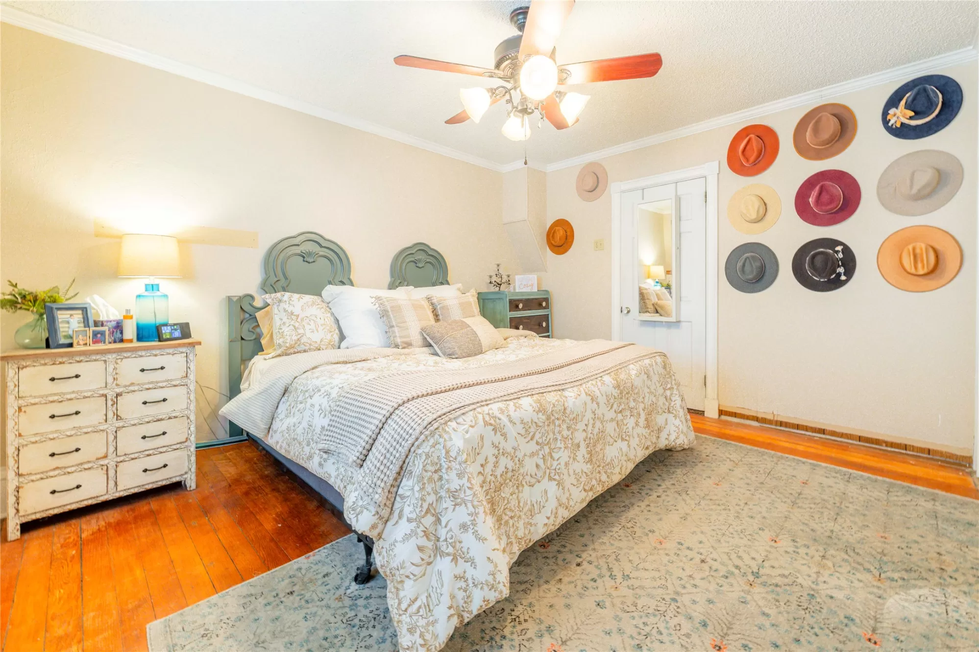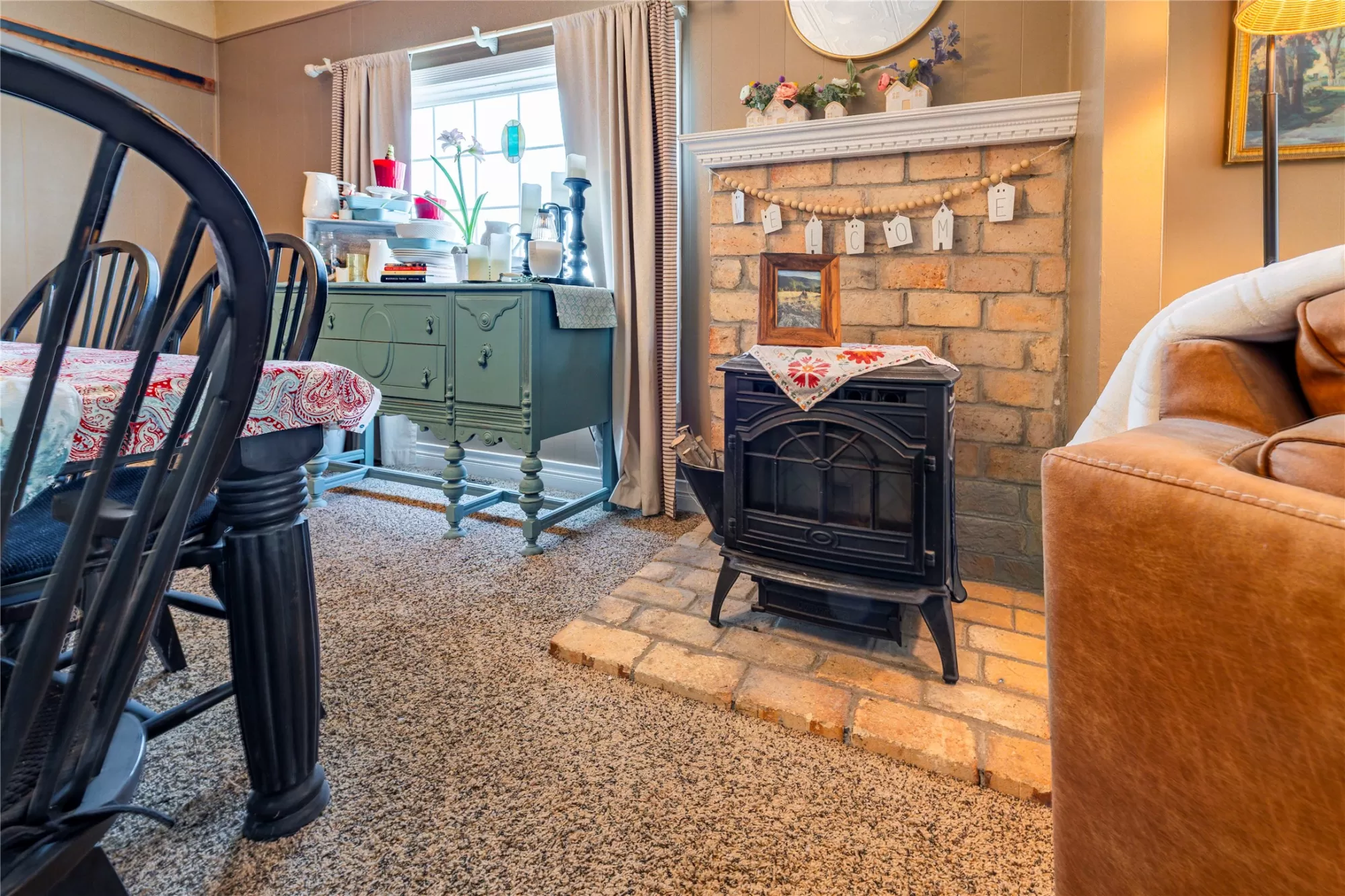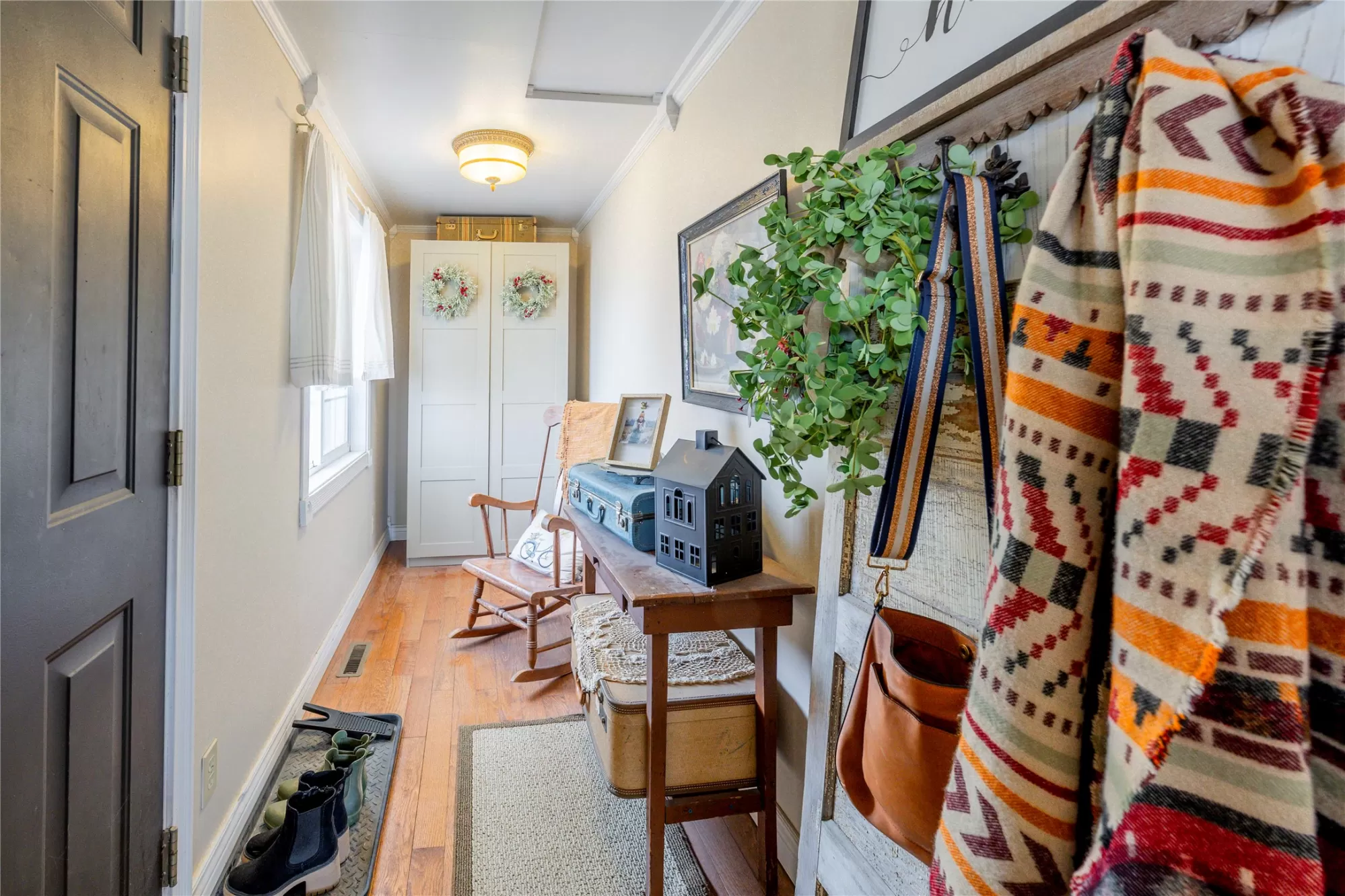Welcome to this adorable & inviting farmhouse-style home offering 2 bedrooms & 1 beautifully updated bathroom. Thoughtfully renovated throughout, this property blends classic character with modern convenience. The completely updated kitchen features custom cabinetry, solid-surface countertops, & stainless steel appliances, complemented by an abundance of storage. An additional pantry area provides extensive extra cabinet space—perfect for organization & functionality. The spacious primary bedroom is conveniently located on the main floor & includes his-and-her closets. Also on the main level are the laundry area & a fully remodeled bathroom showcasing a stunning oversized walk-in shower .A sliding barn door leads upstairs to a large bonus room that offers exceptional versatility. This space is ideal for a family room, media room, home office, or could easily be converted into a third bedroom. Outside, enjoy a cozy & low-maintenance backyard designed for relaxation & entertaining. The covered patio and fire pit area are enclosed by a low maintenance vinyl fence, creating a private and welcoming outdoor retreat. Durable low-maintenance siding and a metal roof add long-term value and ease of ownership, making this home as practical as it is charming. This charming farmhouse is the perfect blend of comfort, style, and functionality—ready to welcome you home.