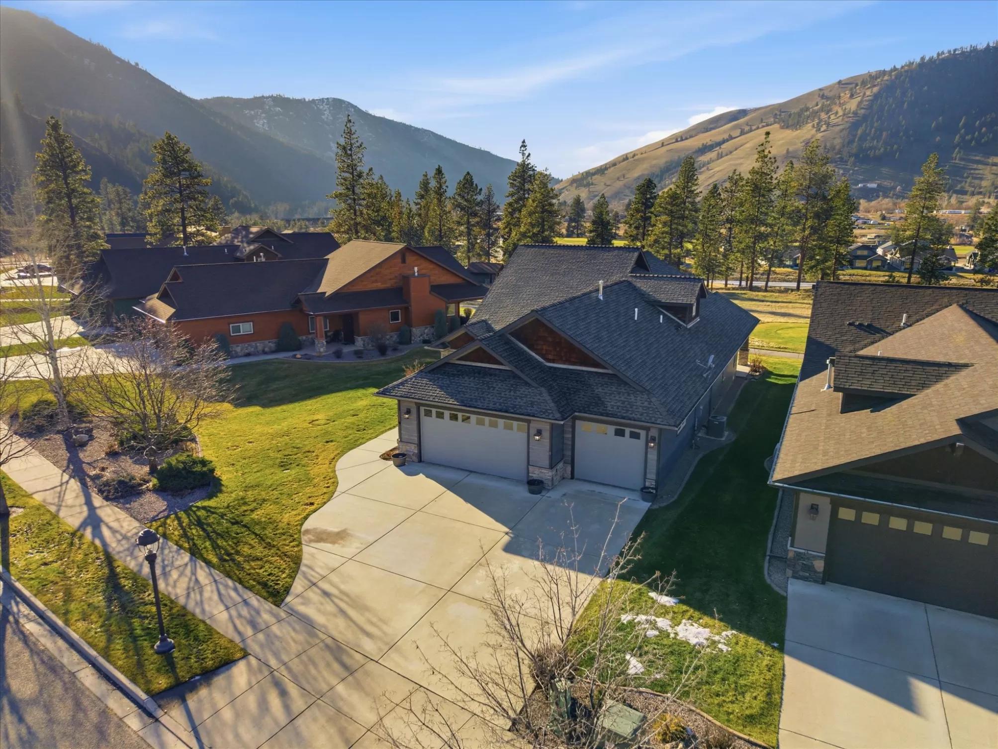 Situated on the 15th hole of the prestigious Canyon River Golf Course, this beautifully maintained home offers an exceptional lifestyle just minutes from downtown Missoula’s dining, shopping, and cultural amenities. This home offers rich knotty alder cabinetry, new carpet, and hydronic in-floor heating creating a warm and inviting atmosphere. The well-designed floor plan is ideal for entertaining, featuring seamless indoor-outdoor living and two private patios with stunning golf course and mountain views. This meticulously cared-for 3-bedroom, 3-bath, single-owner home reflects true pride of ownership. HOA services provide low-maintenance living and include snow removal for sidewalks and driveways, lawn and landscape care, and winterization of underground sprinklers for year-round ease.