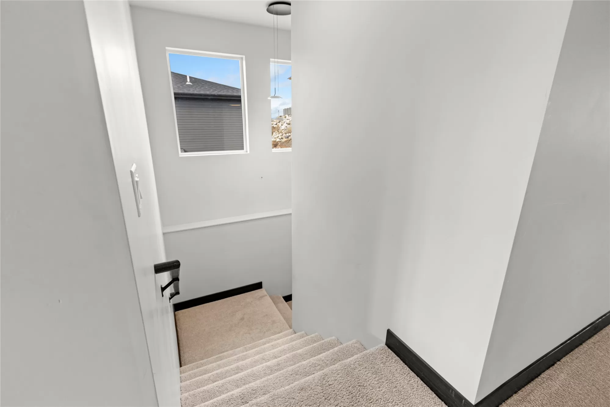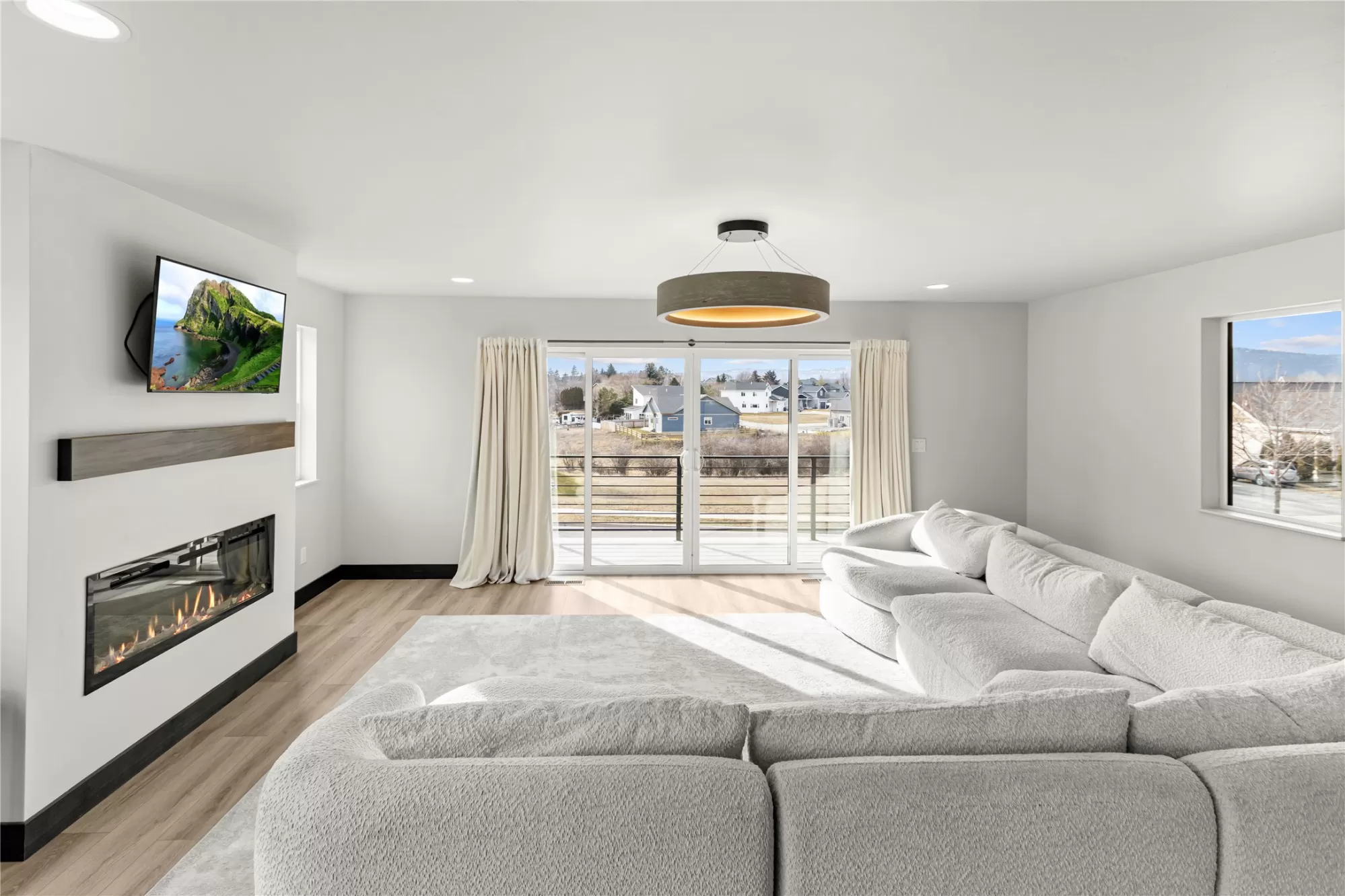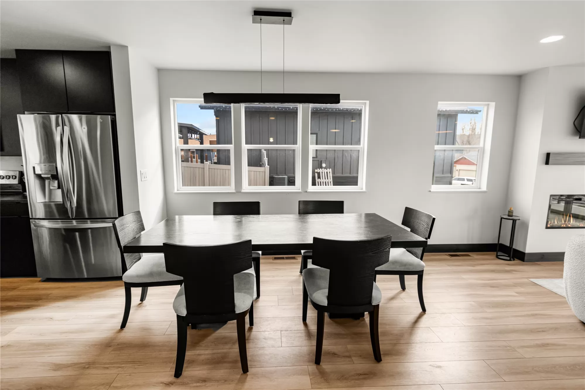 Built in 2024, this stunning mountain modern home is ready for new ownership and offers a bright, contemporary design in a convenient Kalispell location. An abundance of natural light fills the home, highlighting custom finishes and beautiful designer light fixtures throughout. The main living area features an open concept kitchen, dining, and living space, along with a powder bathroom, laundry room, and walk-in pantry, ideal for everyday living and entertaining. The bedroom level offers three spacious bedrooms, each with a walk-in closet, including a beautiful primary suite with a large walk-in closet and en suite bath. An oversized two-car garage provides additional space perfect for a workshop or workout area. Modern touches such as granite countertops, a tiled shower, and an outdoor gas BBQ complete this thoughtfully designed Mountain Modern home.