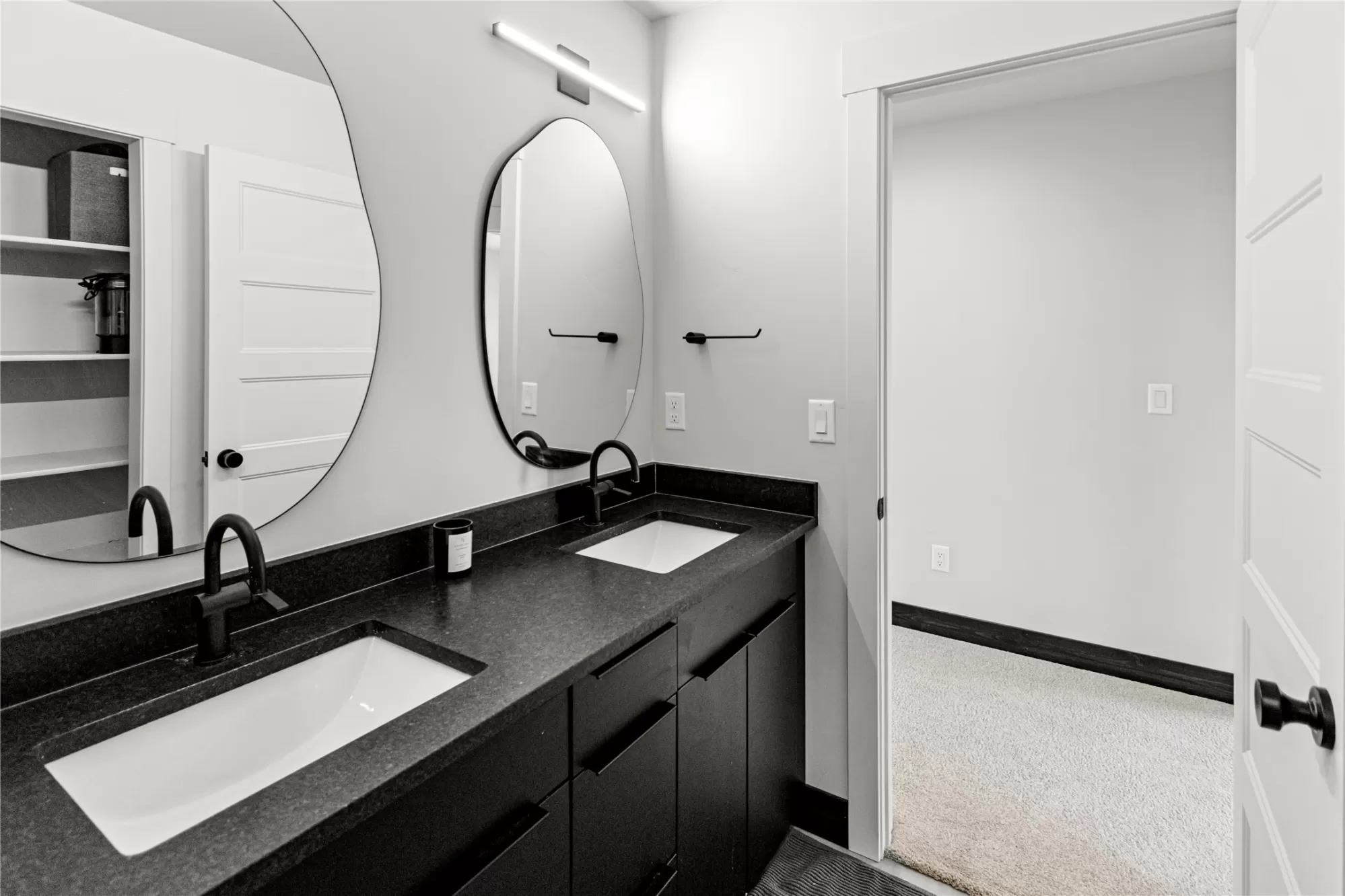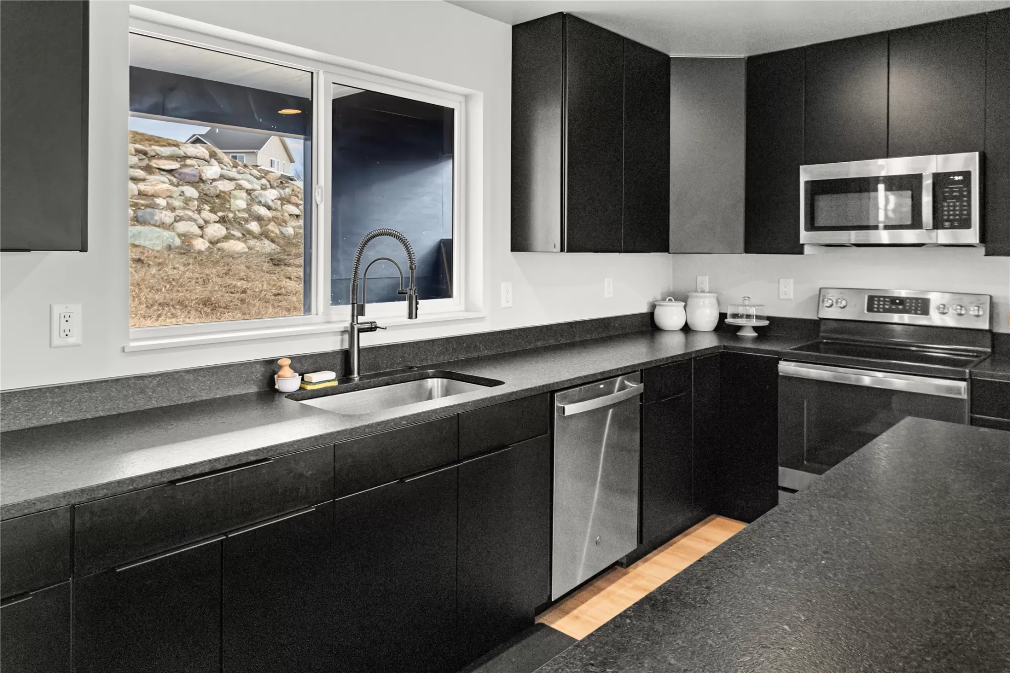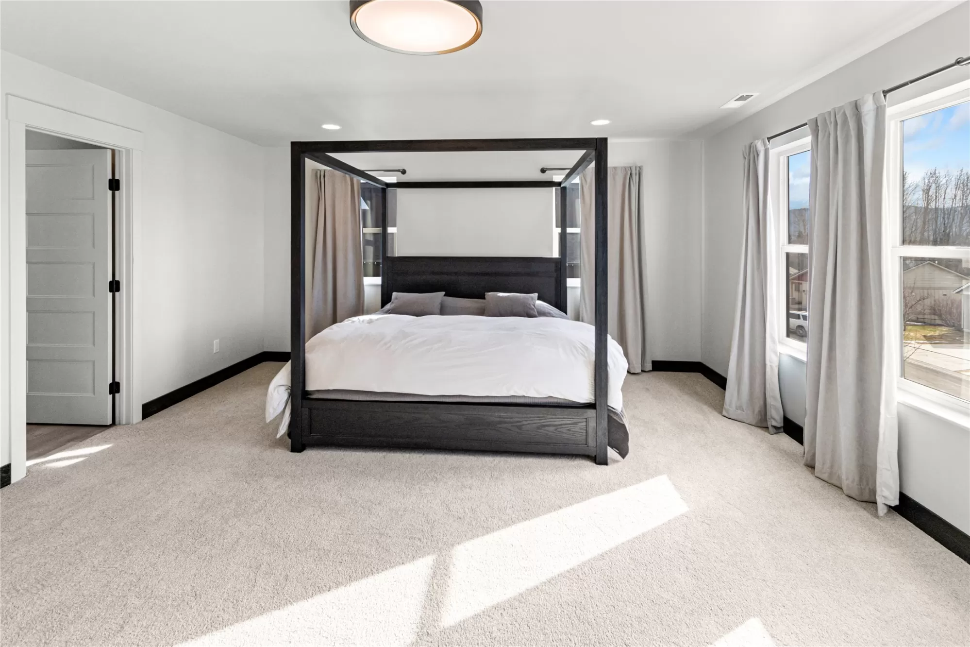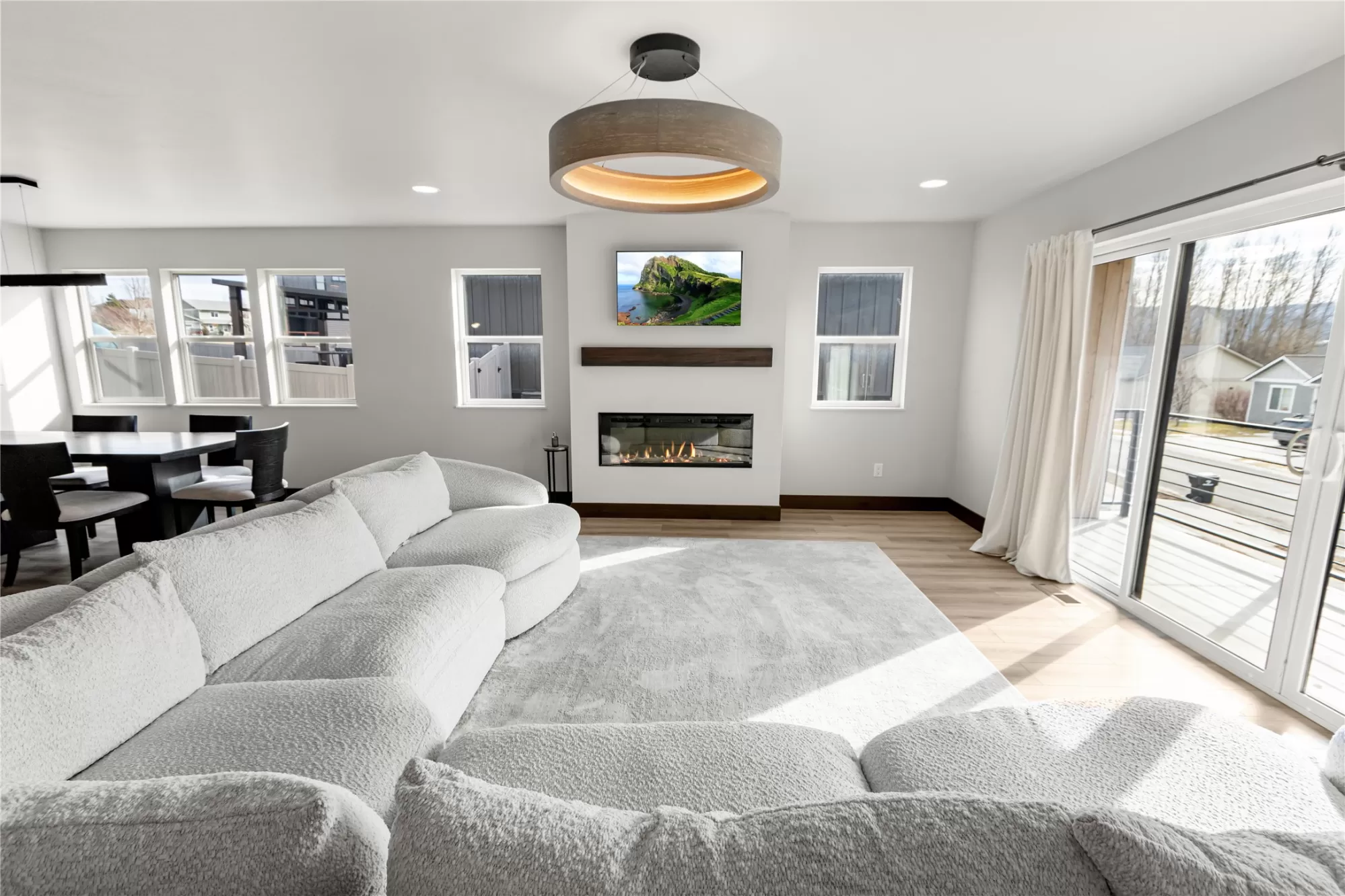 Built in 2024, this stunning mountain modern home is ready for new ownership and offers a bright, contemporary design in a convenient Kalispell location. An abundance of natural light fills the home, highlighting custom finishes and beautiful designer light fixtures throughout. The main living area features an open concept kitchen, dining, and living space, along with a powder bathroom, laundry room, and walk-in pantry, ideal for everyday living and entertaining. The bedroom level offers three spacious bedrooms, each with a walk-in closet, including a beautiful primary suite with a large walk-in closet and en suite bath. An oversized two-car garage provides additional space perfect for a workshop or workout area. Modern touches such as granite countertops, a tiled shower, and an outdoor gas BBQ complete this thoughtfully designed Mountain Modern home.