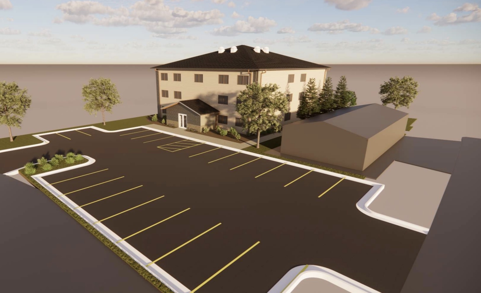 This newly constructed 12-unit multifamily building is thoughtfully designed for durability, efficiency, and long-term ease of management. The project is currently on schedule with an anticipated completion in June 2026. Tenants pay electric (separately metered), owner to pay: gas, sewer, water, trash common and hallway electric (On its own meter). Each of the 12 units offers 1,095 square feet with a functional two-bedroom, two-bath layout. The primary bedroom includes an en-suite bathroom, while the second full bath is conveniently located off the hallway. Both bathrooms are finished with tub and shower surrounds designed for longevity and easy maintenance. Kitchens feature maple almond cabinetry paired with Formica countertops and are equipped with a range, refrigerator, and dishwasher. Appliances are typically supplied by Maytag or Frigidaire. Heating is provided by a central boiler system with hot water baseboard heat, and units are cooled with GE wall air conditioning. Flooring will consist of a mix of LVP in the main living areas and carpet in designated spaces, creating a balance of durability and comfort. Every unit includes laundry hookups. In addition, the first floor will offer shared laundry facilities with two coin-operated washers and two coin-operated dryers for tenant convenience and potential supplemental income. Built with multifamily longevity in mind, the property incorporates steel doors and steel casings. A hardwired security camera system utilizing CAT6 will be installed throughout the building. Life safety systems are fully integrated, including a fire suppression panel and sprinkler system coordinated with the Great Falls Fire Rescue. Mechanically, the building is supported by two domestic hot water systems and two boilers, providing redundancy and efficiency. Exterior finishes provide strong curb appeal with LP SmartSide siding. The upper portion will be finished in Sand Dune, the base in Tundra Gray, and the soffit and fascia in Bronze. Milgard Tuscany windows will be installed throughout. Malarkey Legacy Shingles to be installed (Class 4 Resistance). The paved parking lot will be striped and provide approximately 22 parking spaces, illuminated by two dedicated parking lot lights. Trees and Shrubs will also be planted on the property.
