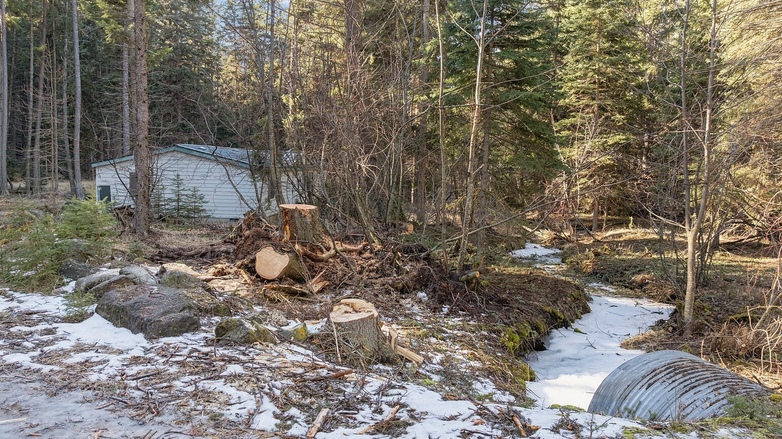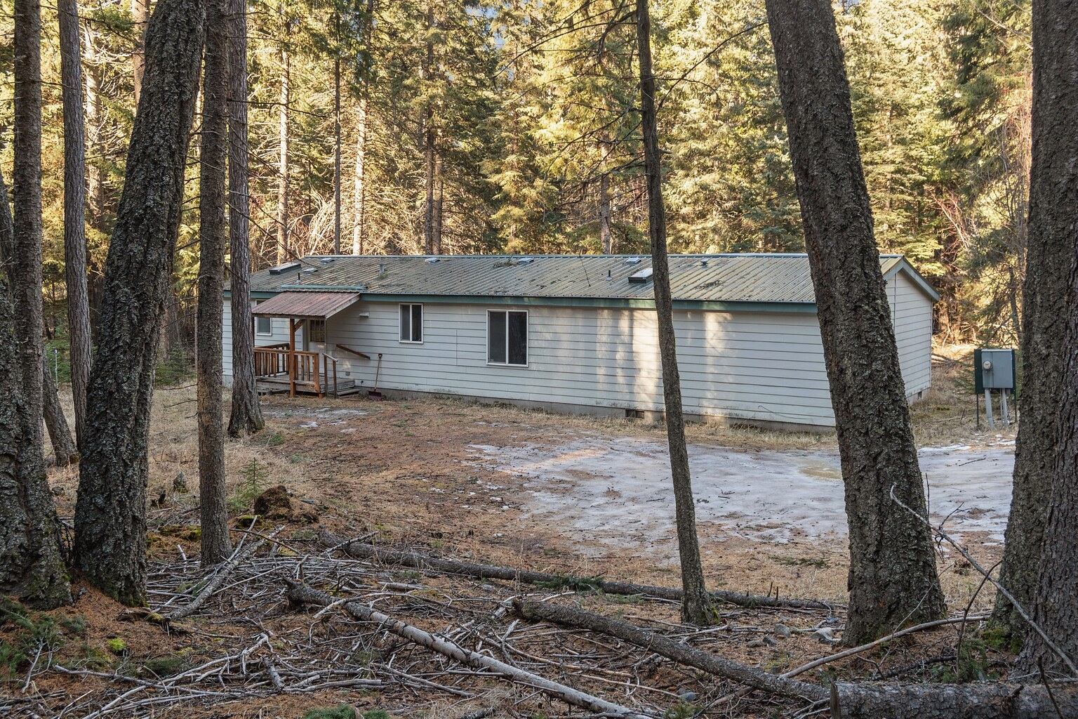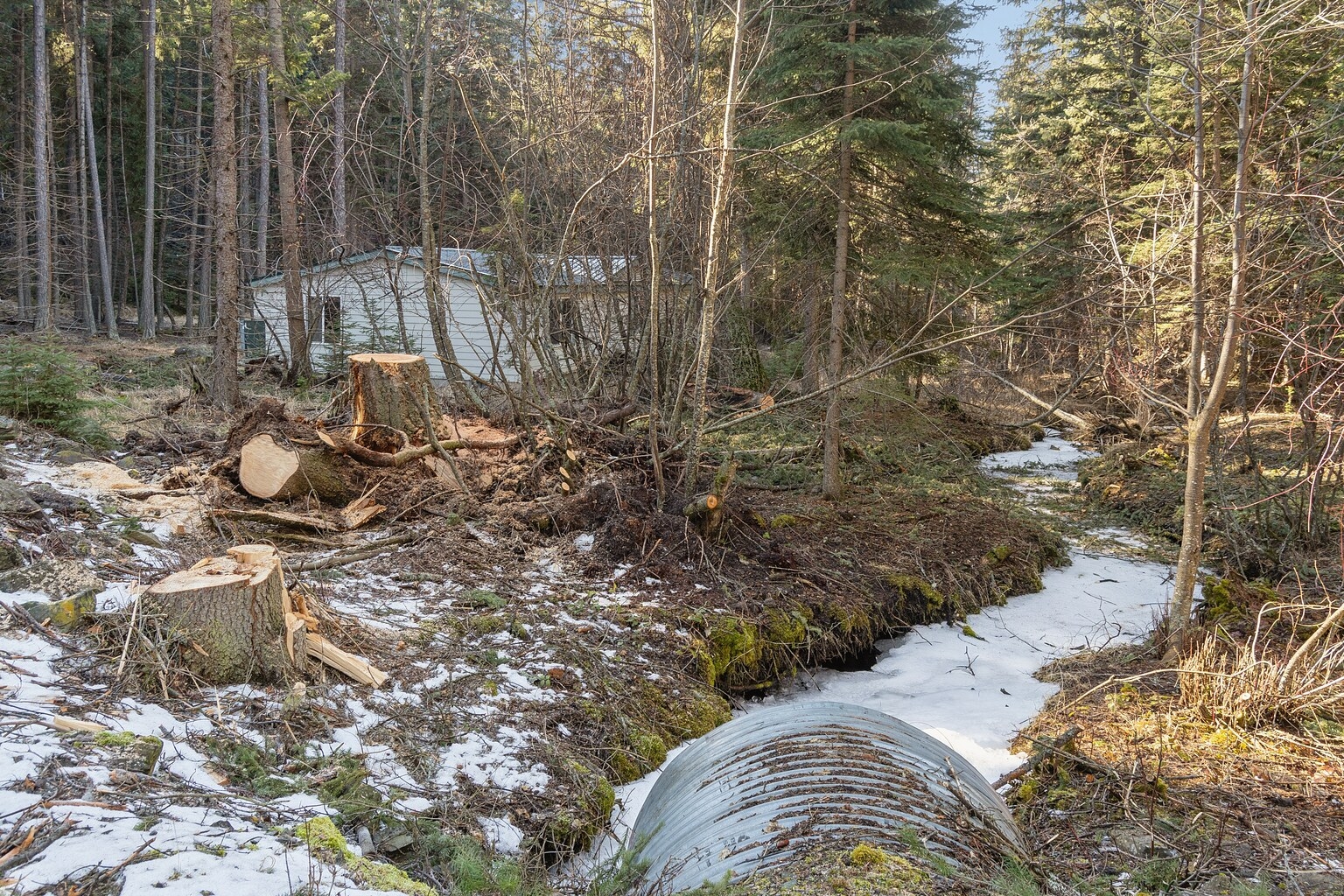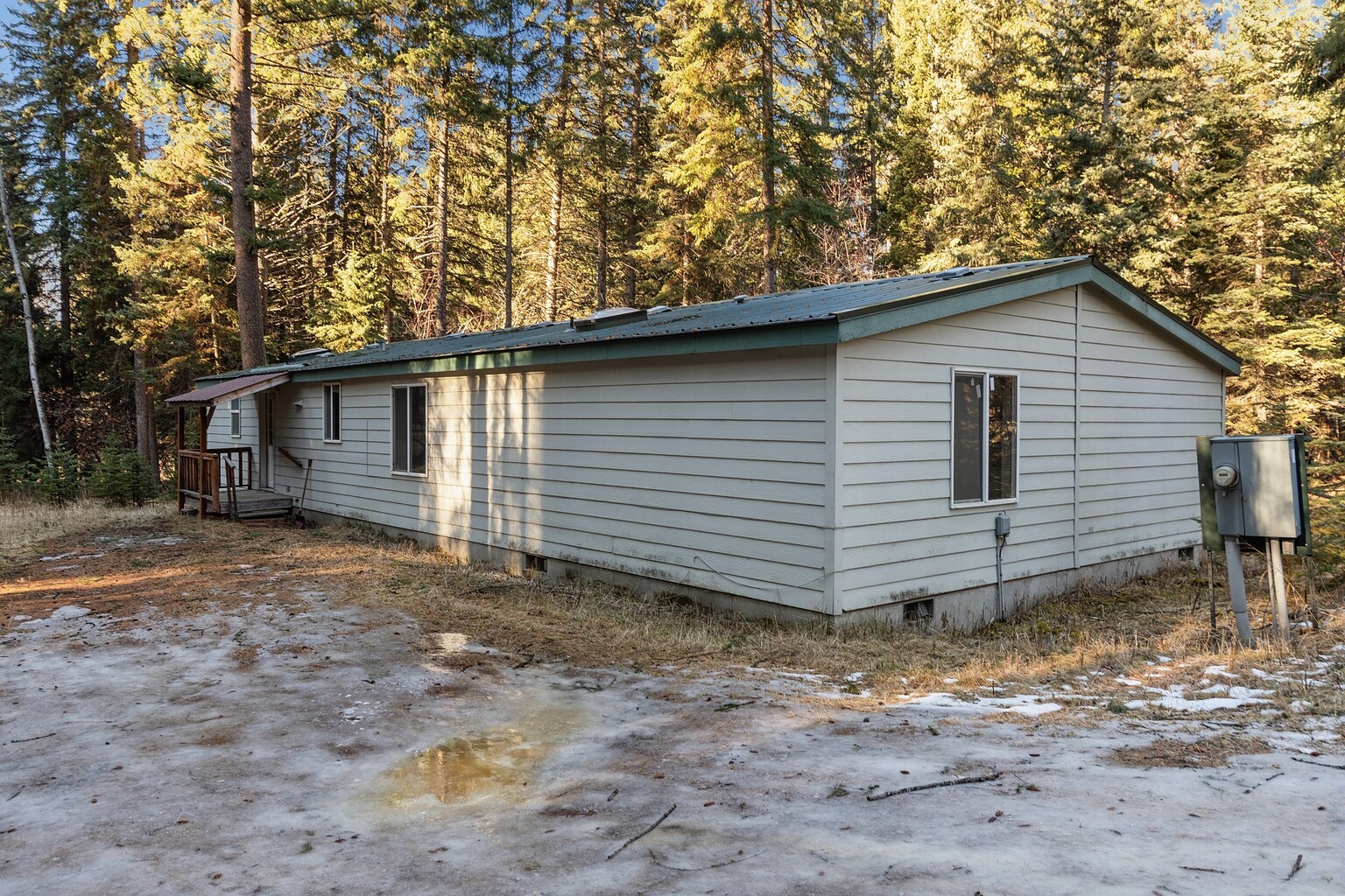 This comfortable and clean manufactured home is tucked away in and amongst the trees on this private 5 acre parcel. The home features 3 bedrooms and two bathrooms with an open feel to the living area. The property is treed and private featuring Emmons Creek meandering through it which adds to the serene setting. Additionally, public land borders to the south which allows for additional exploration opportunities. Listing agent does not work on Sundays and will respond to calls, texts, and emails Monday morning.