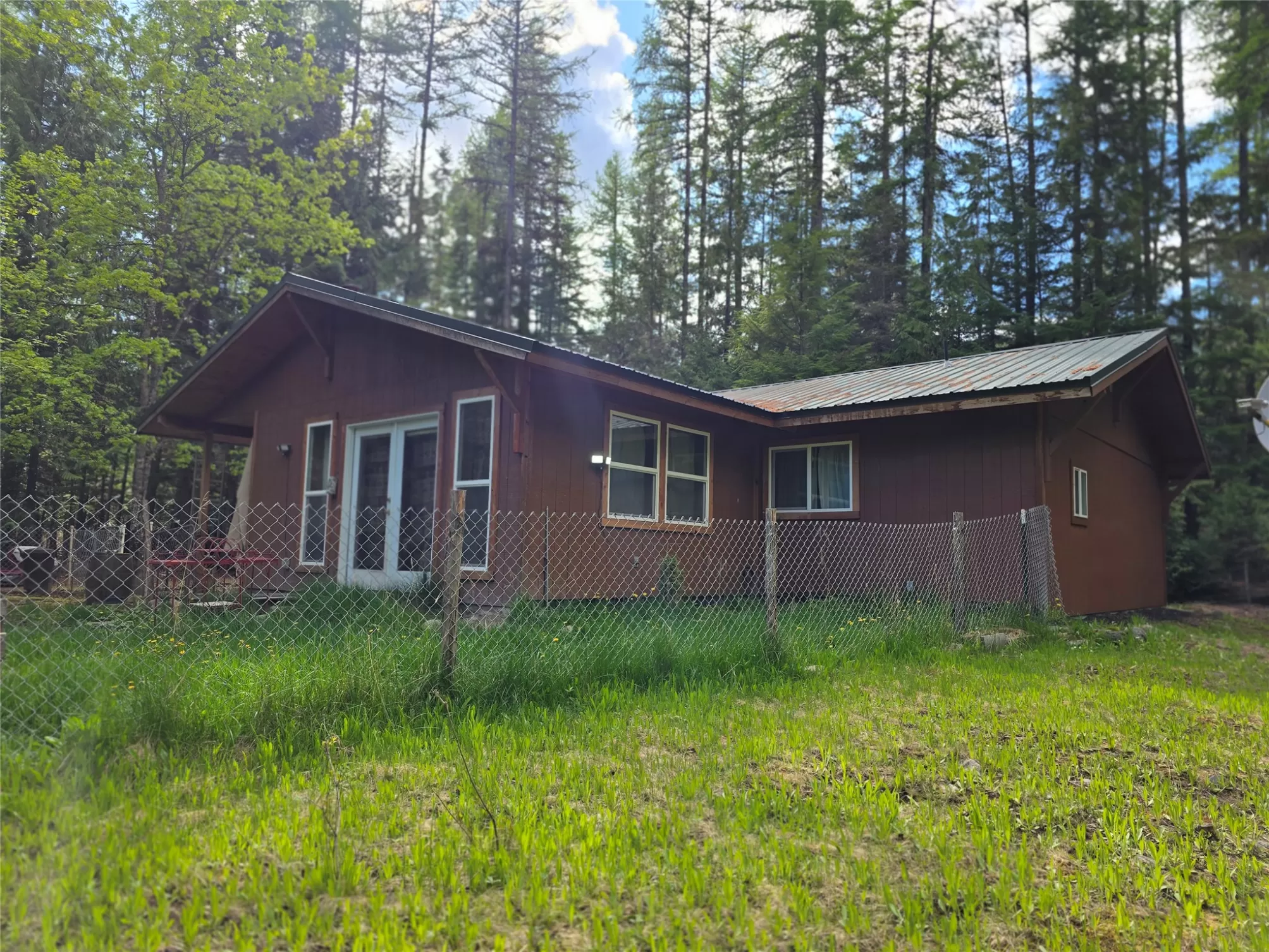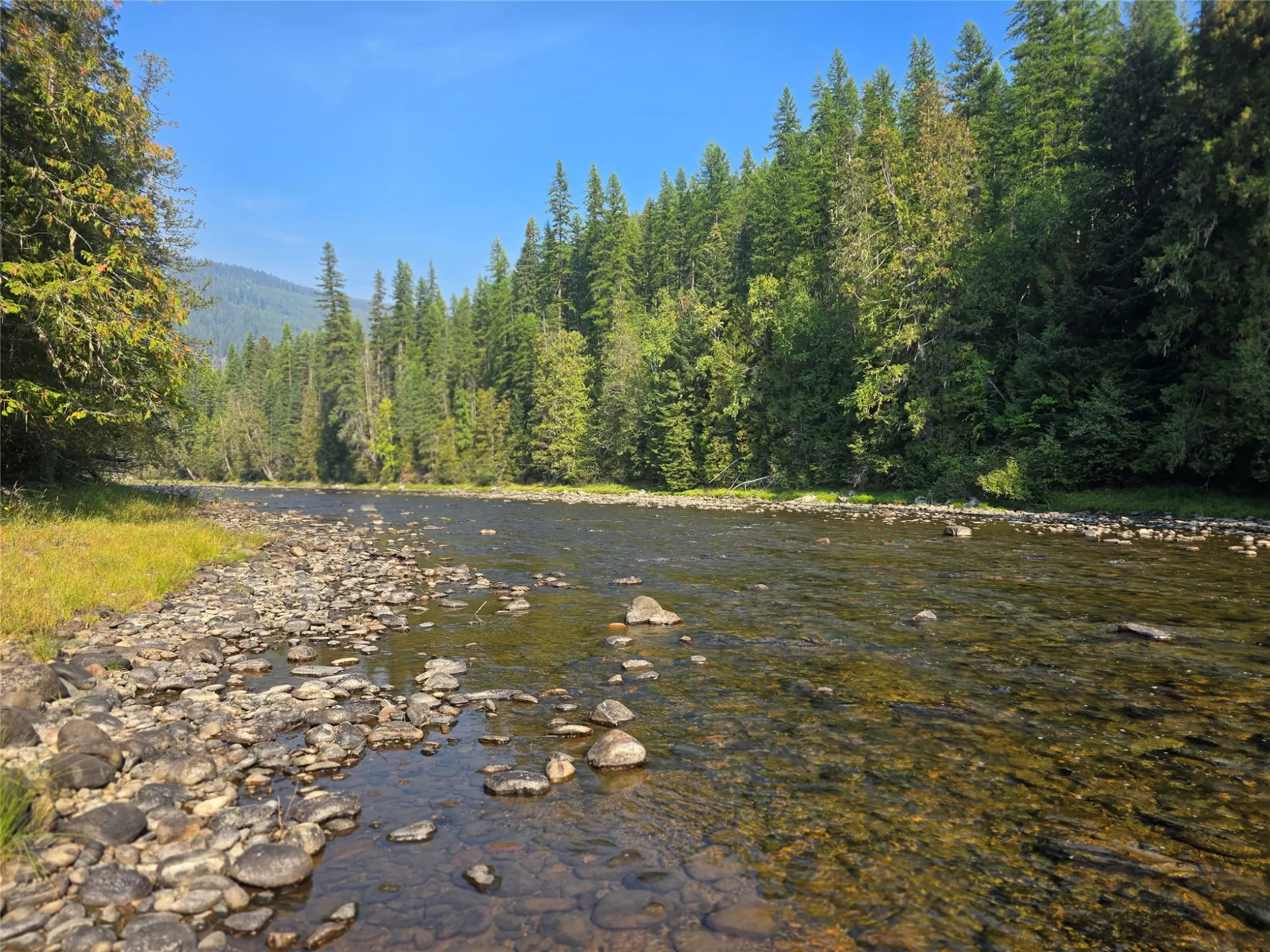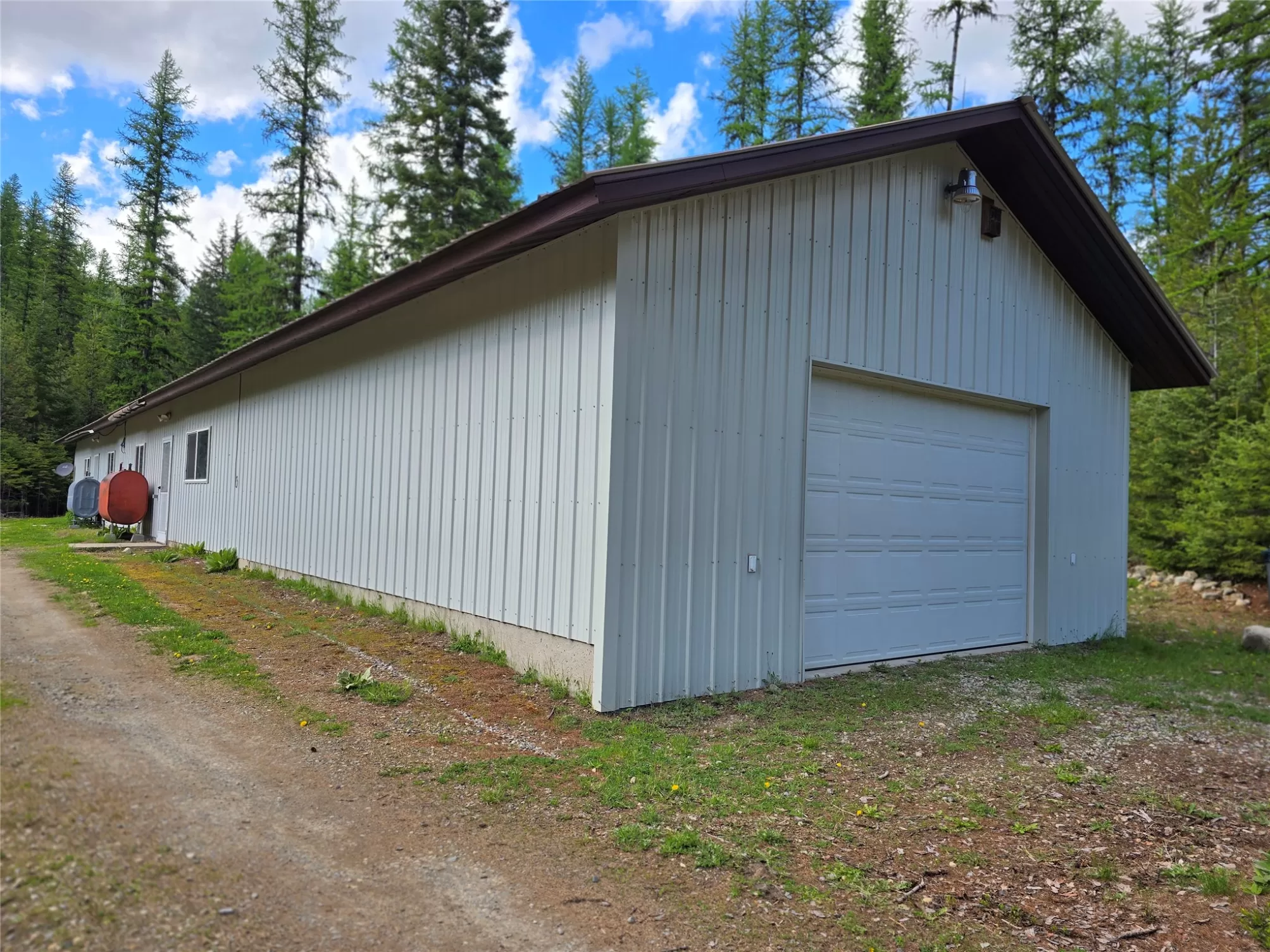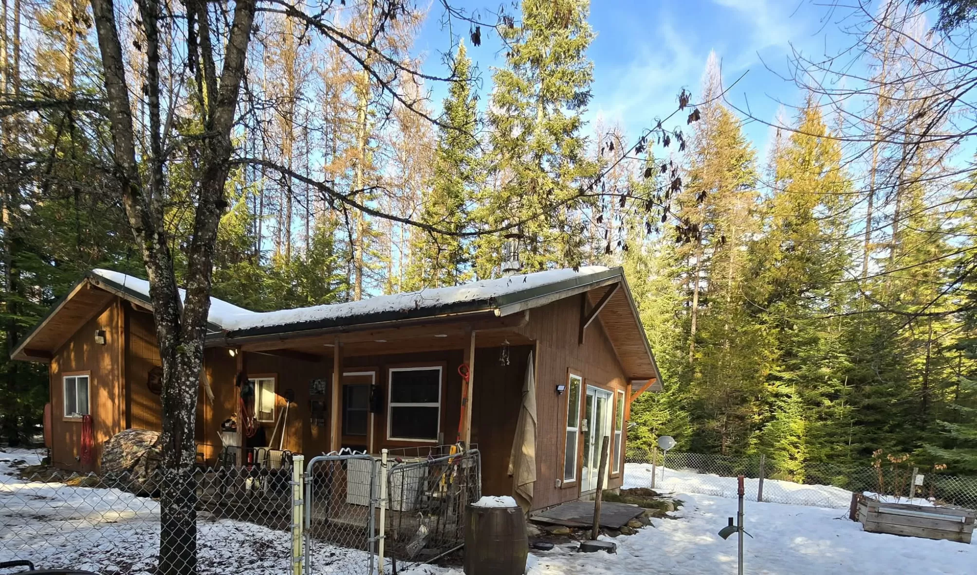 The Yaak River peacefully rolls along a quiet corner backed by Kootenai National Forest. This 7 acre parcel is valuable in itself, but also hosts a (1044 sq ft) 2 bedroom, 1 bath home with a wood stove and fuel oil heater. A large back-up generator shed, and another shed is close by it. Just out of view, tucked into pretty meadow among the trees is another, larger home / 2016 sq ft building with an oversized attached garage, bathrooms, bedrooms, kitchen area, storage rooms, great rooms. This home is so large and nicely laid out that it could easily be divided into 2 separate living areas. Because it is so big and single level, it would be great for a person needing one level/ease of access. A massive 5 stall 2592 sq ft carport can house a lot of toys. RV Plug in, additional outbuildings... The carport/meadow area could be easily converted to a horse property. Use your imagination - whatever your need, the value in the land/structures will be hard to match anything else! Both homes have 3 sources of heat. There are electric wall heaters, free-standing fuel oil furnaces, and free-standing wood stoves. The primary power source is electric. The back-up generator is a Kubota diesel generator that powers both places. There is an RV electric hook up on the property. The 5-stall car port is a nice, well-constructed building that could be enclosed for a shop too.
