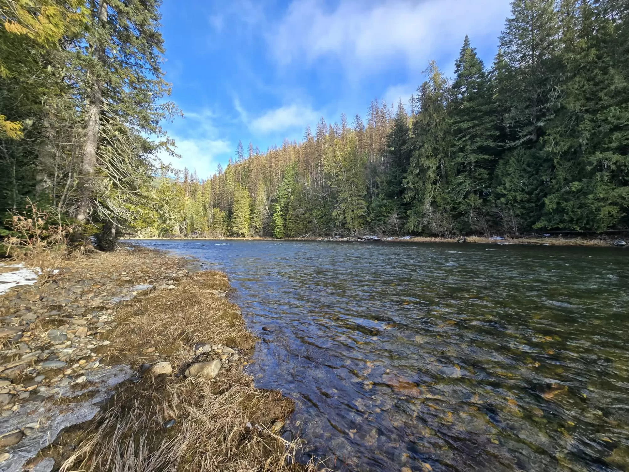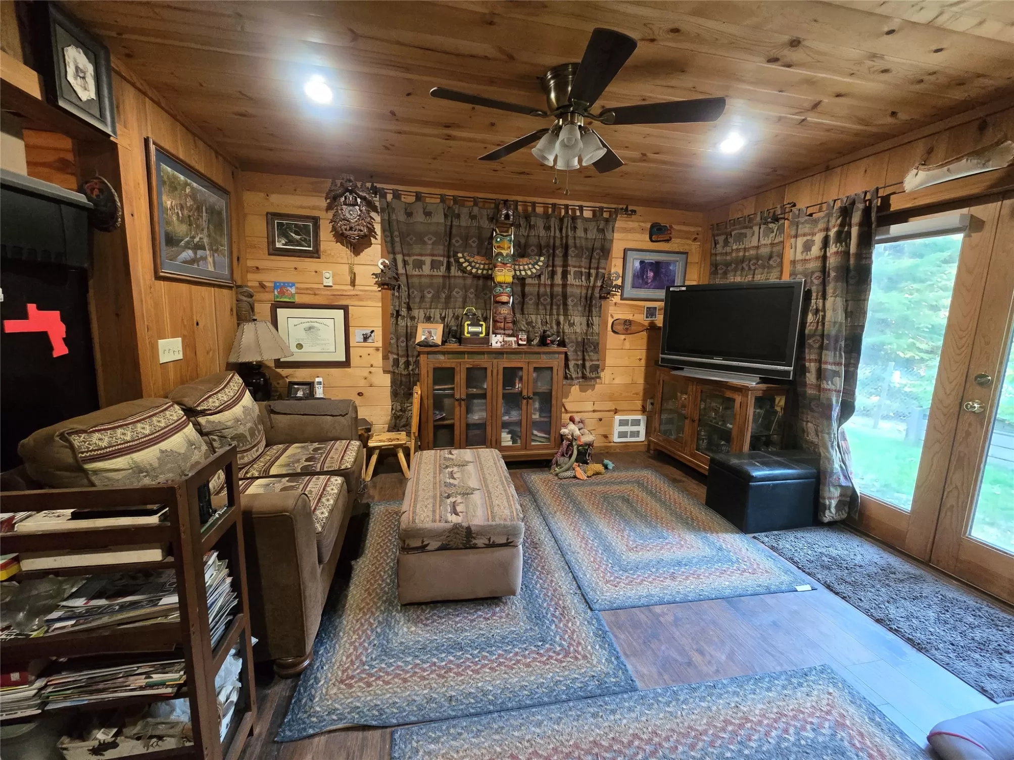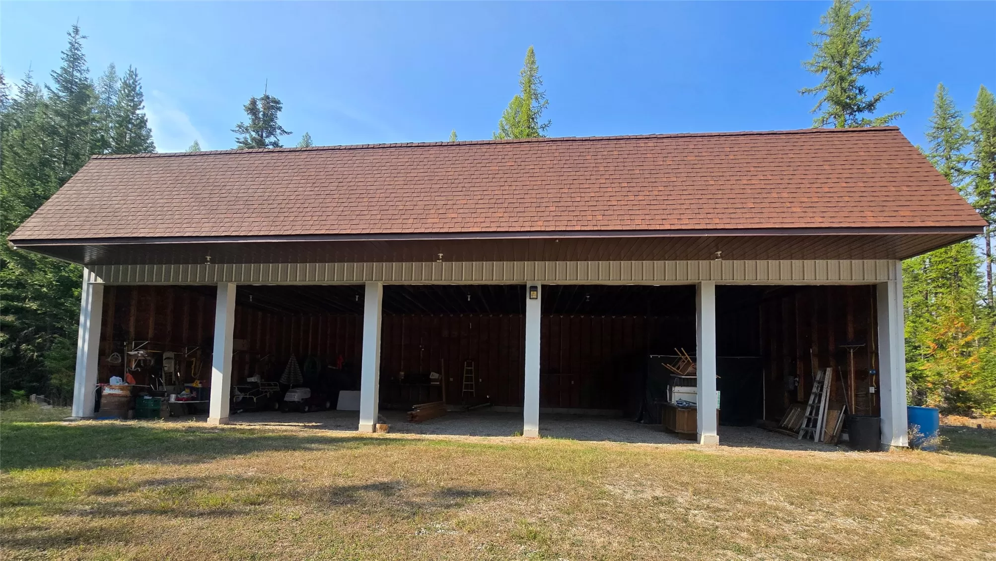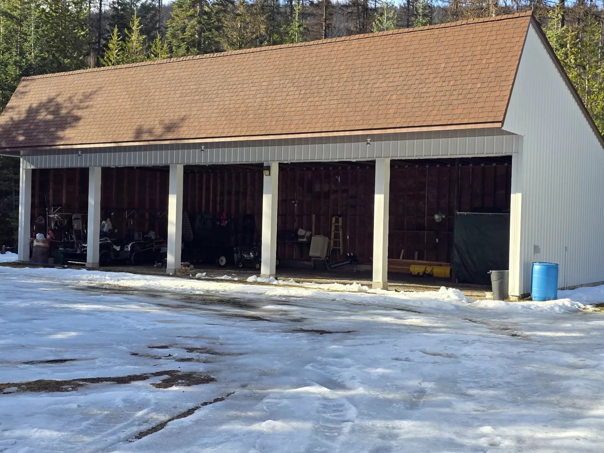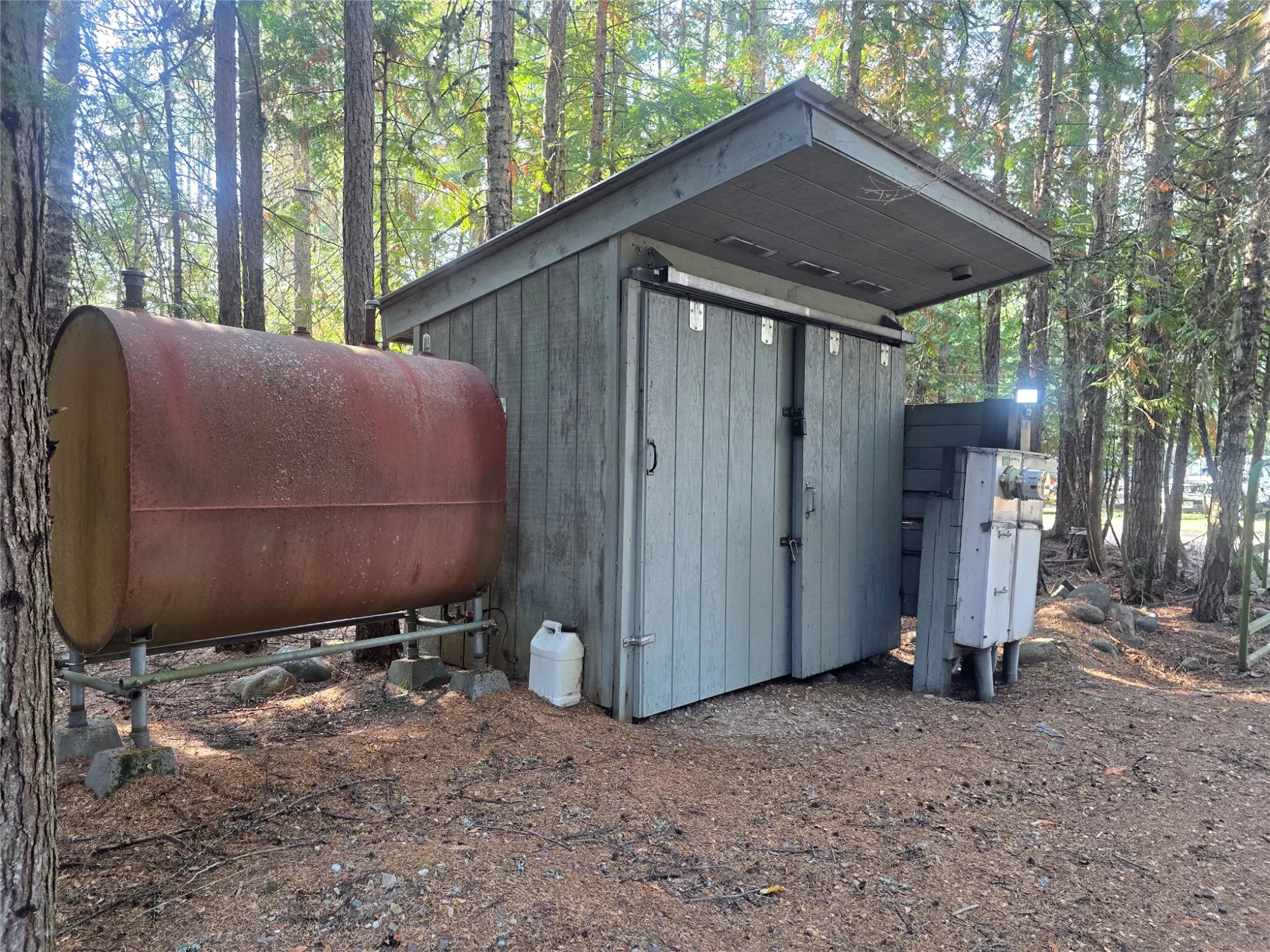 The Yaak River peacefully rolls along a quiet corner backed by Kootenai National Forest. This 7 acre parcel is valuable in itself, but also hosts a (1044 sq ft) 2 bedroom, 1 bath home with a wood stove and fuel oil heater. A large back-up generator shed, and another shed is close by it. Just out of view, tucked into pretty meadow among the trees is another, larger home / 2016 sq ft building with an oversized attached garage, bathrooms, bedrooms, kitchen area, storage rooms, great rooms. This home is so large and nicely laid out that it could easily be divided into 2 separate living areas. Because it is so big and single level, it would be great for a person needing one level/ease of access. A massive 5 stall 2592 sq ft carport can house a lot of toys. RV Plug in, additional outbuildings... The carport/meadow area could be easily converted to a horse property. Use your imagination - whatever your need, the value in the land/structures will be hard to match anything else! Both homes have 3 sources of heat. There are electric wall heaters, free-standing fuel oil furnaces, and free-standing wood stoves. The primary power source is electric. The back-up generator is a Kubota diesel generator that powers both places. There is an RV electric hook up on the property. The 5-stall car port is a nice, well-constructed building that could be enclosed for a shop too.