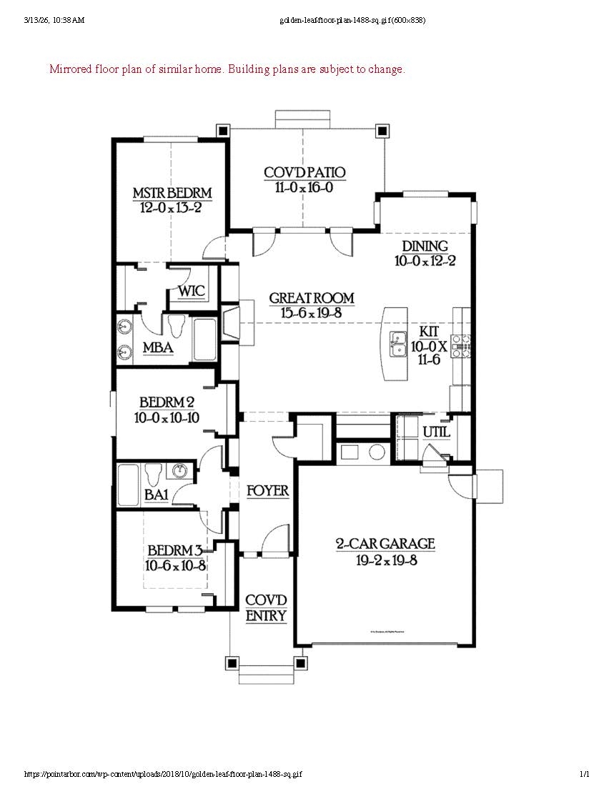 Welcome to the Goldenleaf Plan by Point Arbor Construction, ideally located in the heart of the highly sought-after Bloomstone subdivision. Currently under construction, there’s still time to select your finishes and personalize the space to fit your style. Enjoy true convenience just minutes from Logan Health, shopping, restaurants, coffee shops, and the Highway 93 bypass—making daily life simple and accessible. This thoughtfully designed single-level home offers 1,482 square feet, 3 bedrooms, and 2 bathrooms with an open-concept layout filled with natural light. Expansive windows capture sweeping mountain views, while the covered rear patio provides the perfect spot to enjoy Montana sunrises. The primary suite offers a comfortable retreat with the same beautiful mountain views, ensuite bath, and walk-in closet. Backing to the Kidsport Complex and neighborhood trail system, your views remain protected, with a privacy fence planned along the rear property line. Bloomstone's growing health and fitness trail network will connect to Kidsport and Rails to Trails, offering recreation right outside your door. With full landscaping, underground sprinklers, energy-efficient features, a one-year builder warranty, and access to recommended local providers for lawn care, snow removal, and more, this home offers easy, low-maintenance living in one of Kalispell’s most convenient locations. Floor plan as shown is of a similar home. Floor plan is subject to change at builder's discretion.