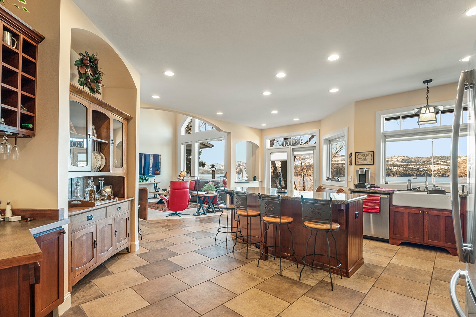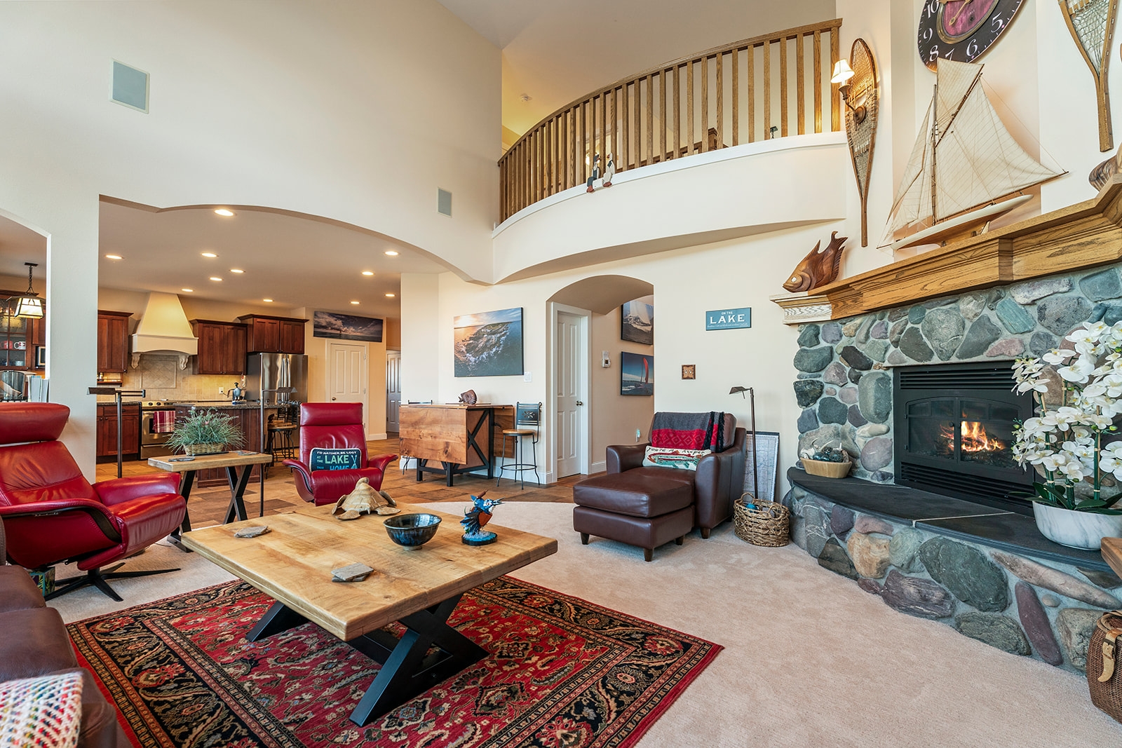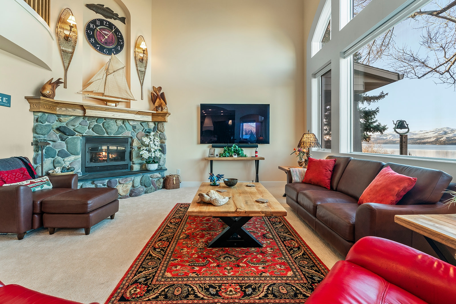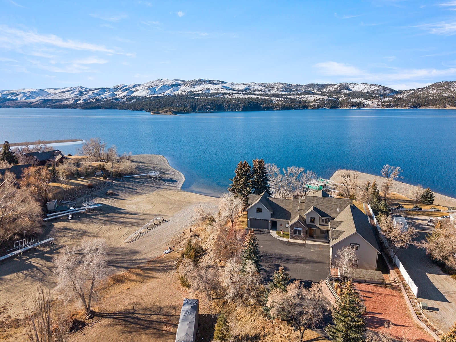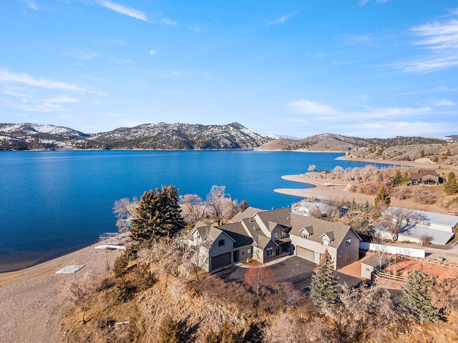Experience refined lakefront living in this extraordinary luxury residence boasting over 6,000 square feet of thoughtfully designed space and more than 130 feet of pristine frontage on Canyon Ferry Lake. Perfectly positioned to capture breathtaking water views, this home offers an unmatched blend of elegance, comfort, and functionality. At the heart of the home, the chef-inspired kitchen serves as a central gathering place. Solid surface countertops and timeless shaker cabinetry provide both sophisticated style and abundant storage. A welcoming kitchen bar and an expansive island create the ideal setting for casual meals, lively conversation, and culinary exploration. There's also a formal dining room for larger gatherings. Designed for both everyday living and entertaining, these spaces flow seamlessly into the main living area. The living room is impressive, featuring soaring ceilings that enhance the home’s grandeur and openness. A striking fireplace adds warmth and ambiance, creating an inviting atmosphere for relaxation while framing picturesque lake views. Five generously sized bedrooms and five well-appointed bathrooms offer exceptional comfort and privacy for family and guests alike. Multiple bonus rooms provide flexibility for home offices, fitness areas, hobby spaces, or additional guest accommodations. The fully equipped media room in the basement delivers the ultimate cinematic experience without ever leaving home. Outdoors, the patios and expansive lake frontage offer endless opportunities for recreation, peaceful reflection, and unforgettable sunsets. This Canyon Ferry Lake retreat is more than a home—it’s a distinctive lifestyle defined by space, luxury, and the beauty of waterfront living.