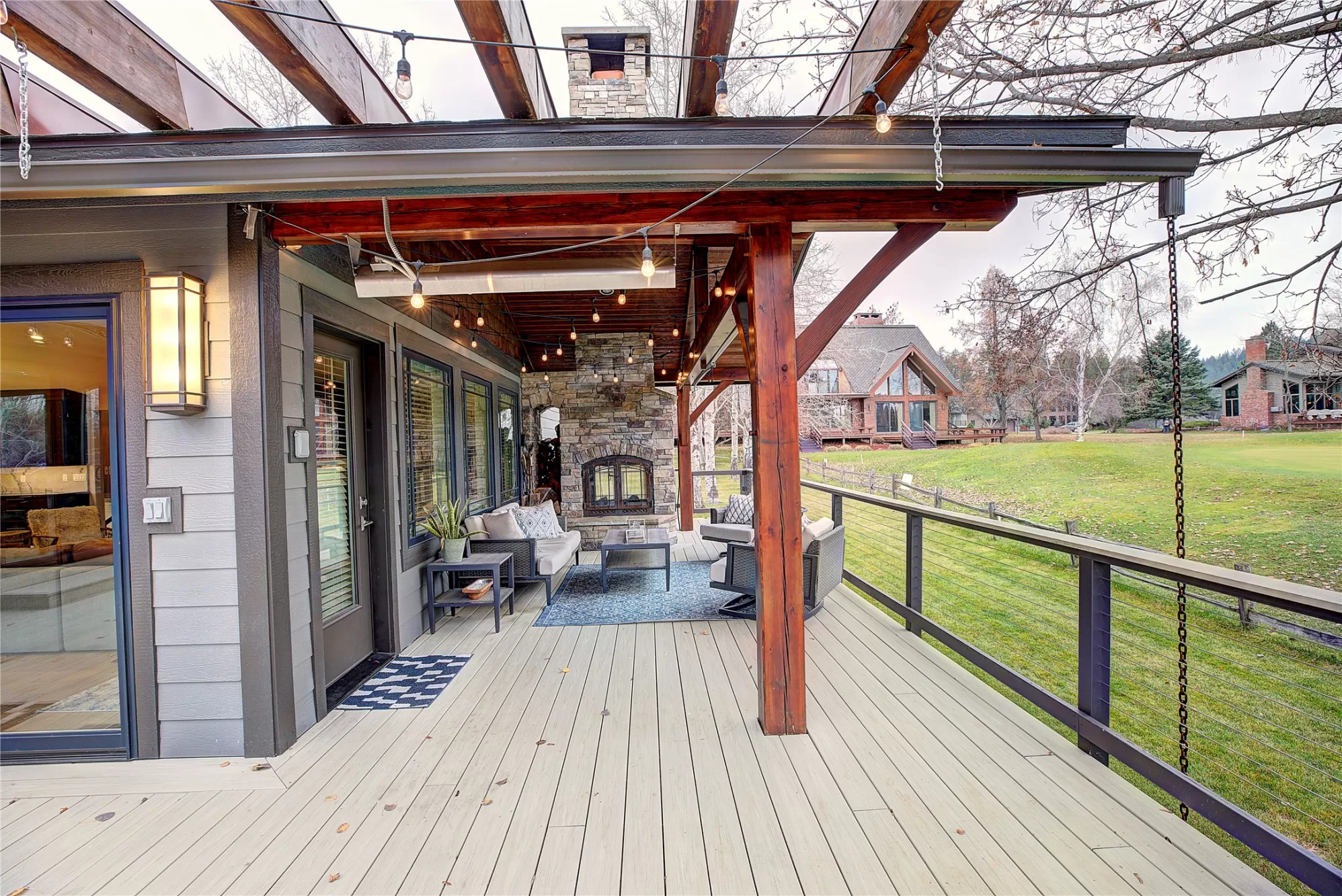 On hole 5 of the WLGC this home has view for days! Located in the newly gated Grouse Mountain, it offers 5 dedicated bedrooms & 5 bathrooms + many bonus rooms throughout. The large open main living area w/ fireplace shares space w/ the kitchen and is separated by a 12’5” quartzite island that seats 6, breakfast nook, walk-in pantry, large dining room w/ window seat, wet bar w/ 2 bev fridges, ice maker and large counter that looks into an additional living area w/ pool table and built-ins. The bonus rooms include a private office w/ built-in desk for 2, mudroom w/ locker built-ins, laundry room w/ dog wash station, craft room w/ built in desk for 2 & ample storage, excerscie room w/ red-light sauna, living/game space w/basketball hoop. Tons of windows flood this home with natural light. Expansive back deck partially covered has 2-way fireplace and pergola over dining and cooking area. There is a Jacuzzi steps from the master bedroom that has a fireplace and wet-bar. 2 garages for 4+ This home has the added benefit of an extra vacant lot to the south for purchase in separate listing MLS#30064330, which would include the garden and the potential to build on said lot at a later time if desired. Explore all that this Montana home has to offer, located minutes from Downtown Whitefish, Whitefish Lake, and Whitefish Mountain Resort. This home sits on 2 combined original lots on hole 5 of the Whitefish Lake South Golf Course and has unobstructed year-round views of the Big Mountain, Grouse Mountain and a peeks into Glacier. It is in the newly gated community of Grouse Mountain. The home was added onto and remodeled down to the studs in 2018-19, and features 5 Bedrooms, 5 Bathrooms, Open Concept Upstairs Living/Kitchen/Entertainment area, Office, Home Gym, Craft Room and much more. Within the Heart of the Home, the Kitchen features top tier Wolf and Sub-Zero appliances, Two Built-In Drawer Refrigerators and Touch-Activated Faucets alongside a walk-in pantry with microwave and warming drawer and breakfast nook that easily seats 6. A huge 12.5’ quartzite island anchors the space with seating for 6. The main living room sits adjacent to the kitchen island and boasts a modern stone fireplace with live edge wood hearth, TV cutout and storage for TV equipment and 2 exits out to the covered deck. The oversized dining room has sat 24 people; it also has a slider out to the rear deck, as well as a 3-sided window seat with additional storage below. A full wet-bar off the dining room opens up to an expansive entertaining space with pool table and additional 6 person bar seating. From the main living area, head up a few stairs and you will find a bonus living space that currently has an indoor basketball hoop and gaming area behind chalk board barn doors. This floor also houses 2 bedrooms with en-suite, balcony, walk-in closets and ladder access to a tree house style loft that connects both of the rooms (This 105 SF loft is not in the SF totals). Soaring vaulted ceilings with skylights give the main entry level of the home a grand feeling. Little luxuries featured throughout from the heated travertine flooring in entry & indoor 2-story water feature and live edge bench bring the elevated from the ordinary. On this level of the home, there is an office with 2 workstations, wrap-around built-in desk topped in quartzite, and french doors. You will also find 2 bedrooms with walk-in closets connected by a Jack & Jill bathroom with a tile surround soaking tub, stone shower, makeup station, and 2 individual sinks. The main powder bath for the residence is located on this level, along with a large storage closet. Moving a few steps lower to the Mud Room Entry/ Main Two Car Garage of the home. The main two car garage of the home is epoxy sealed, heated, and contains mechanical room, boiler for the heated driveway and storage. The mudroom has a built-in locker space, bench, and large coat closet. The laundry room is right off the mudroom, with a dog wash station, auto dog water bowl, sink, and another mechanical room. There is also a craft room with French doors and built in wrap around desk with 2 workstations, tons of storage and a closet Head pass the craft room down a few stairs and you will pass the workout room, fitted out with a red light dry sauna, full wall mirror, cork floors, ceiling fan, TRX equipment, big windows that offer tons of natural light and views of Big Mountain. Just past the workout room you reach the secluded primary suite, with its own private patio that has direct access to the hot tub. This room has a window seat, stone fireplace, trey ceilings with ceiling fan, wet bar with beverage fridge and wine rack. Turning the primary suite into your own oasis. The primary bathroom has a color therapy soaking tub, TV, double sink vanity, Kholer steam shower with mood lighting, music and multiple shower heads. This ensuite also provides his and her laboratories with the gentlemen’s featuring a urinal and the ladies featuring a bidet. There are 2 separate closets with built-ins and one that has stairs leading up to a fully finished attic that contains a electric laundromat style rotating rack system, carpeting, separate wrapping room and tons of storage. This space is not included in the total SF number however it is completely finished, temperature controlled and totals 619 SF. The hidden showstopper of this home would have to be the second lower garage, with oversized garage doors (12’), workbenches, built in cabinets and storage, you can fit a majority of recreational vehicles and “toys” on property instead of storing them privately in another unit.
