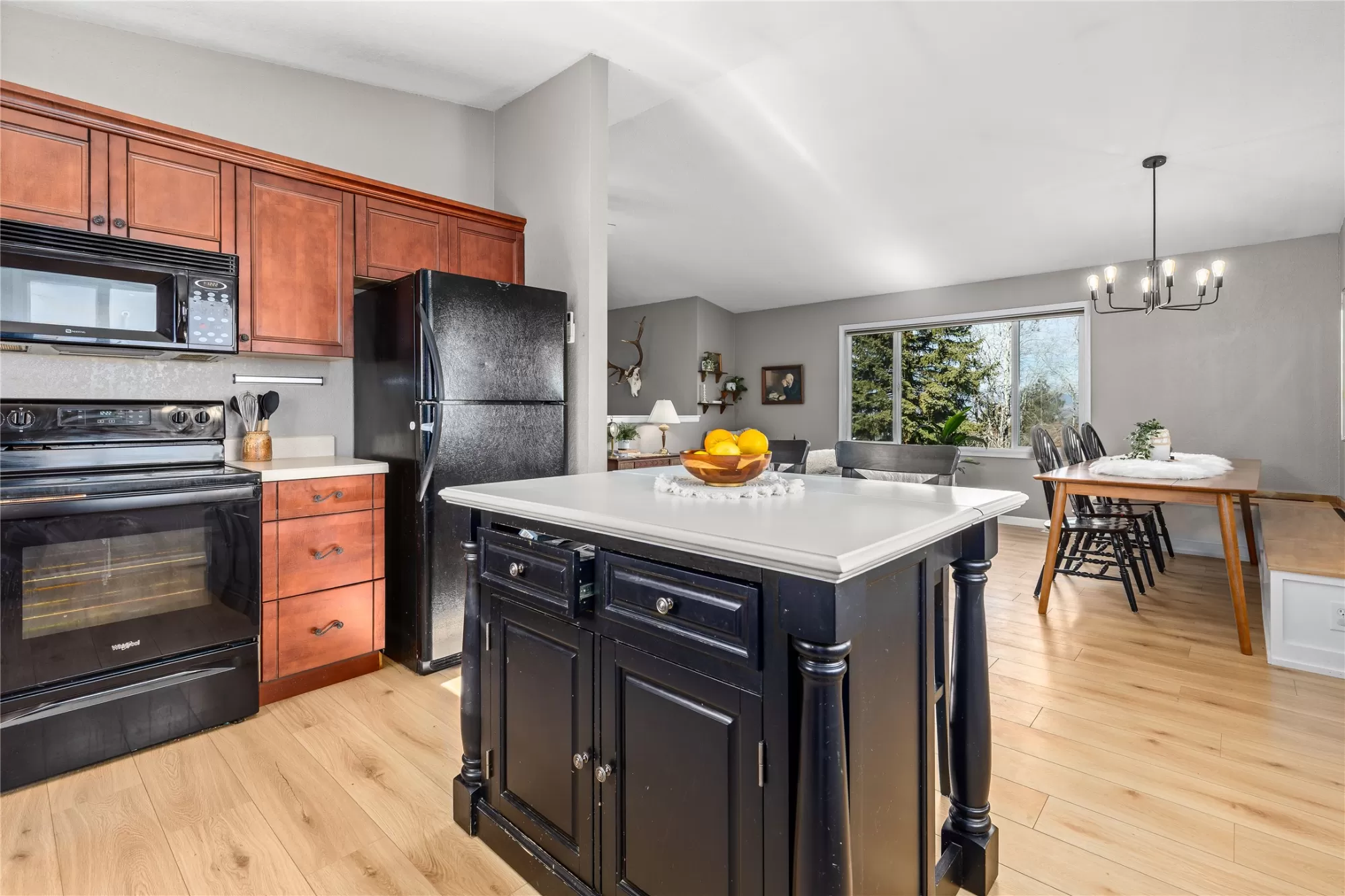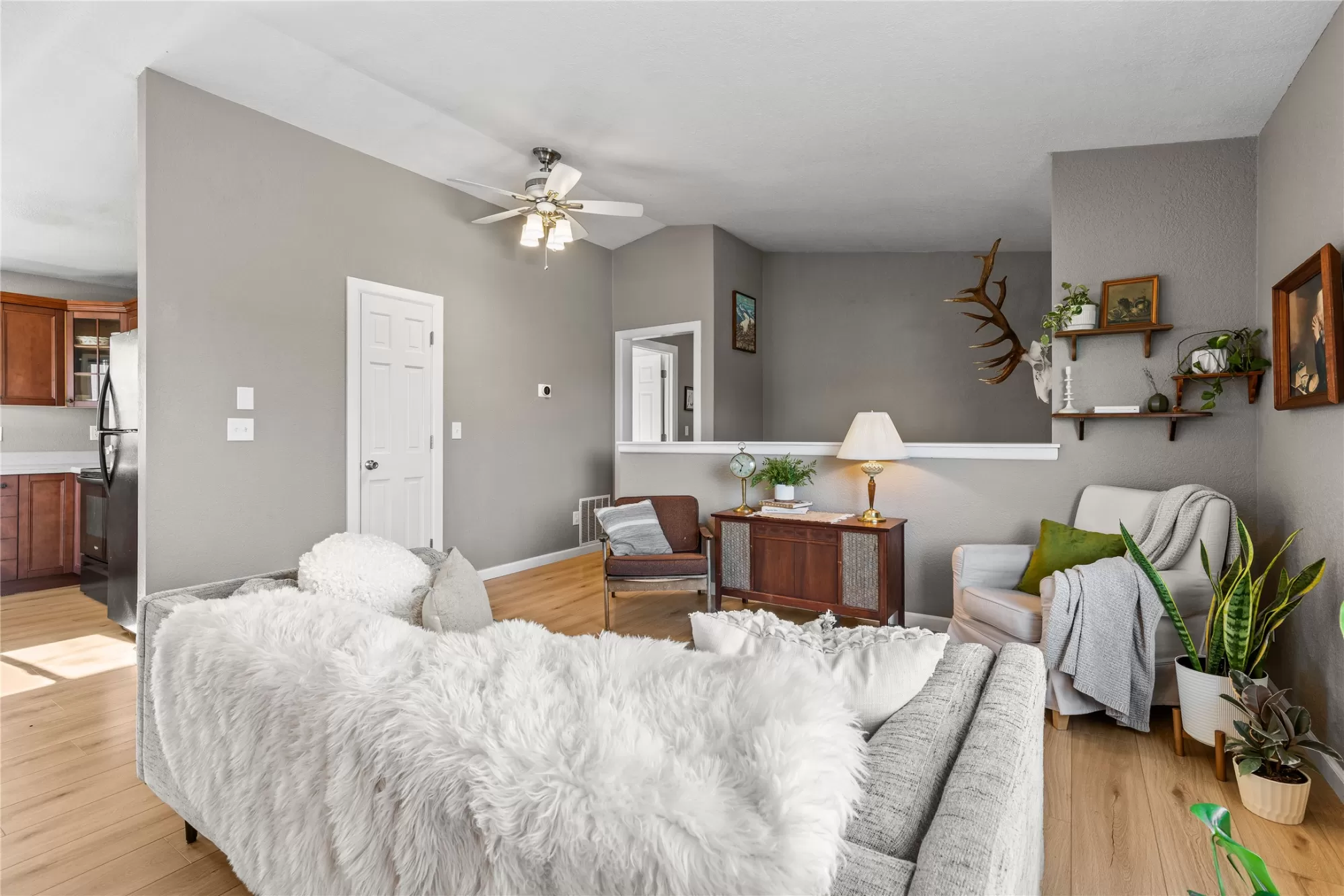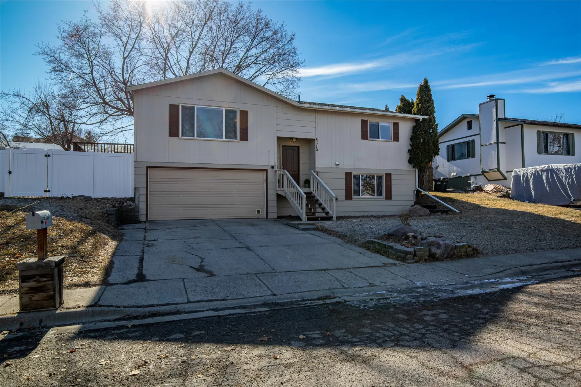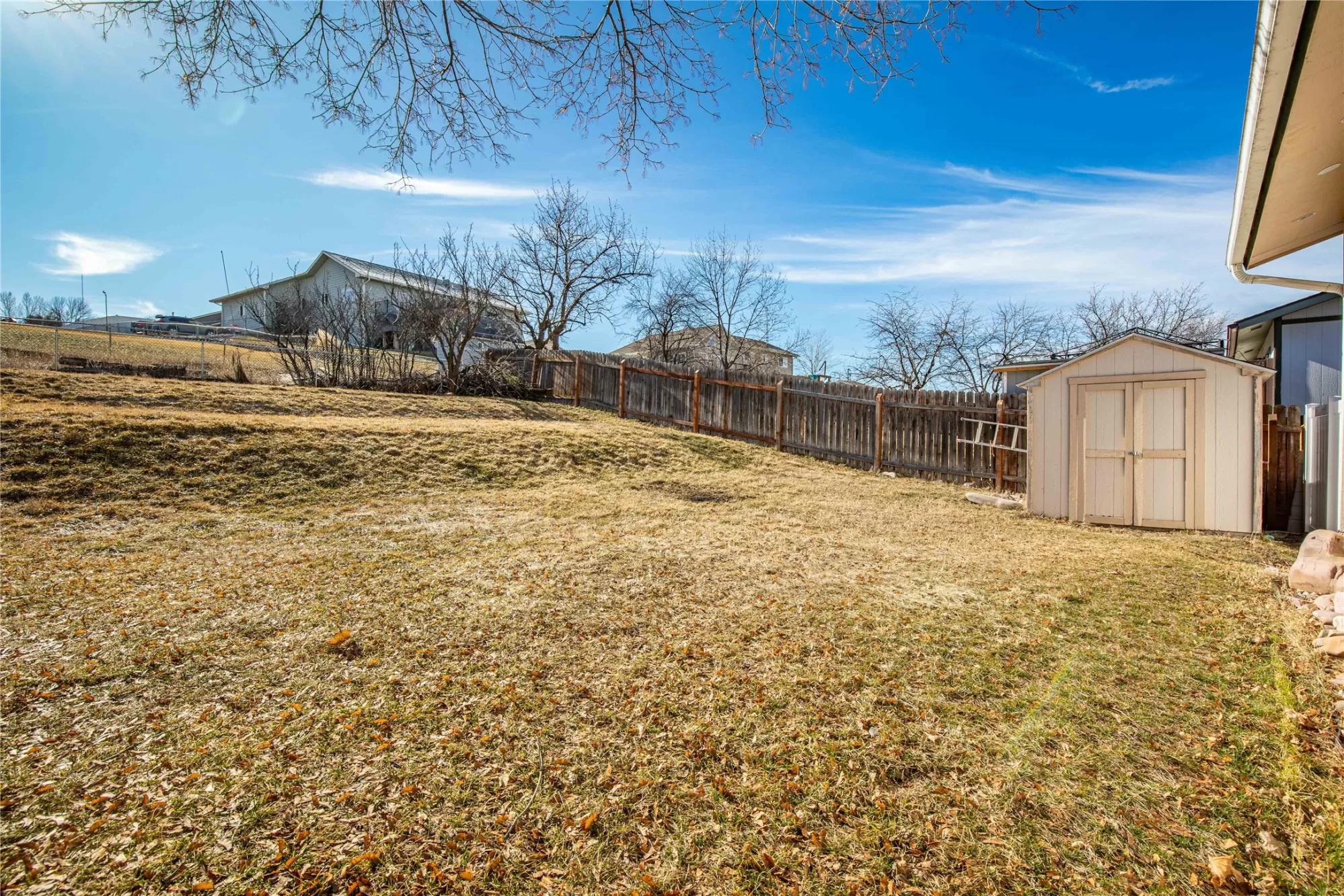 This inviting home features an open kitchen, dining and living room floor plan with brand new white oak LVP flooring. With 3 bedrooms and the laundry down the hall, this home is functional for everyday living. The lower level offers a cozy family room and another 4th Bedroom, with a newer Egress Window. Thoughtful touches add charm throughout, including crown molding on the kitchen cabinets, a beautiful cathedral ceiling in the Living Room and a built-in dining room bench for entertaining. Step outside to a backyard designed for enjoyment, with open views and no back home above you, peering in, offering a wonderful sense of privacy, compared to your neighbors. Mature shade trees create the perfect backdrop for summer picnics and gatherings on the wraparound deck. A garden shed provides extra storage, and the terraced yard offers flat, usable spaces for kids, toys, playtime, or outdoor fun. All of this is just a short walk to Skyview Park, making it easy to enjoy the outdoors and neighborhood lifestyle.