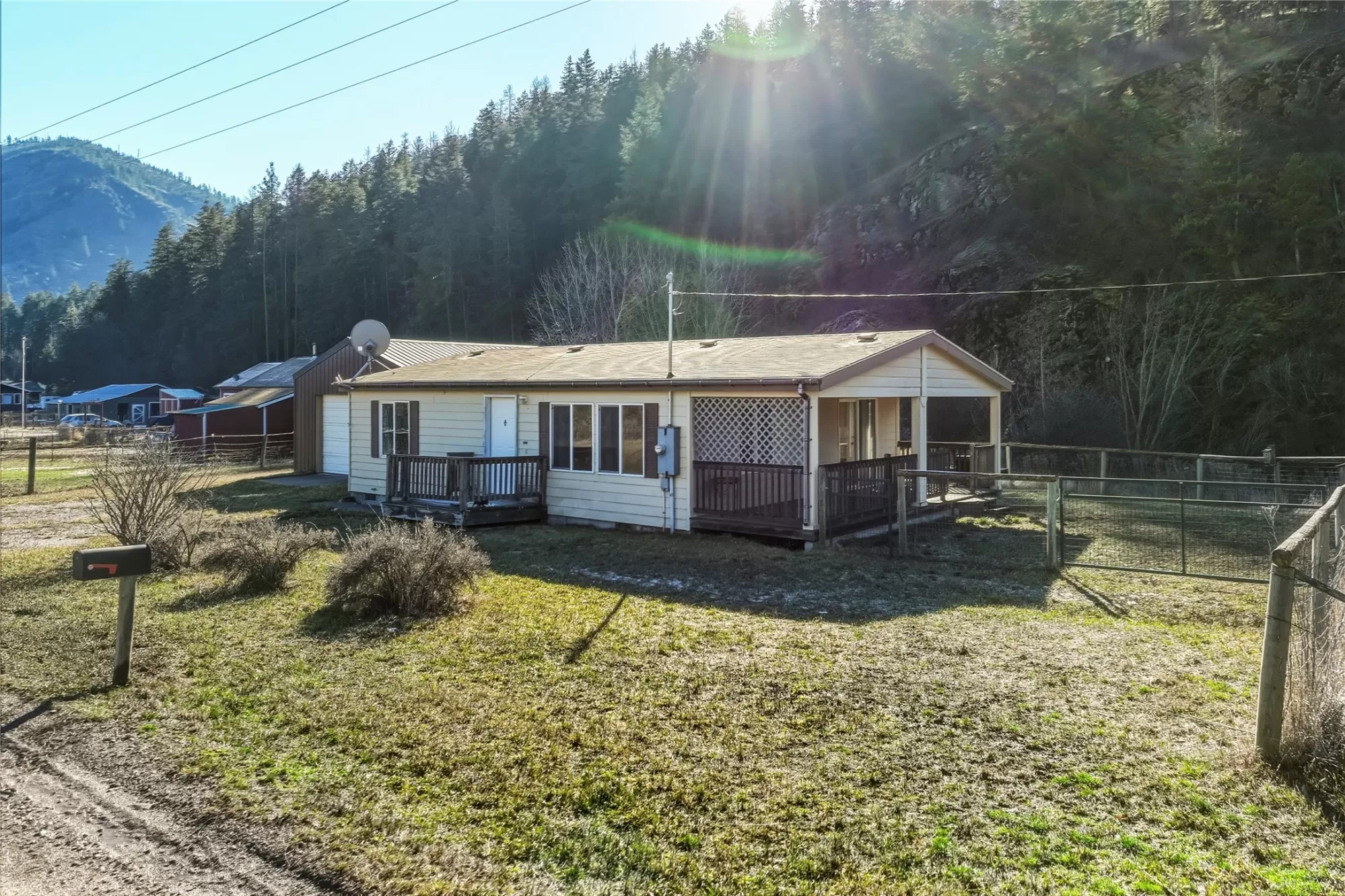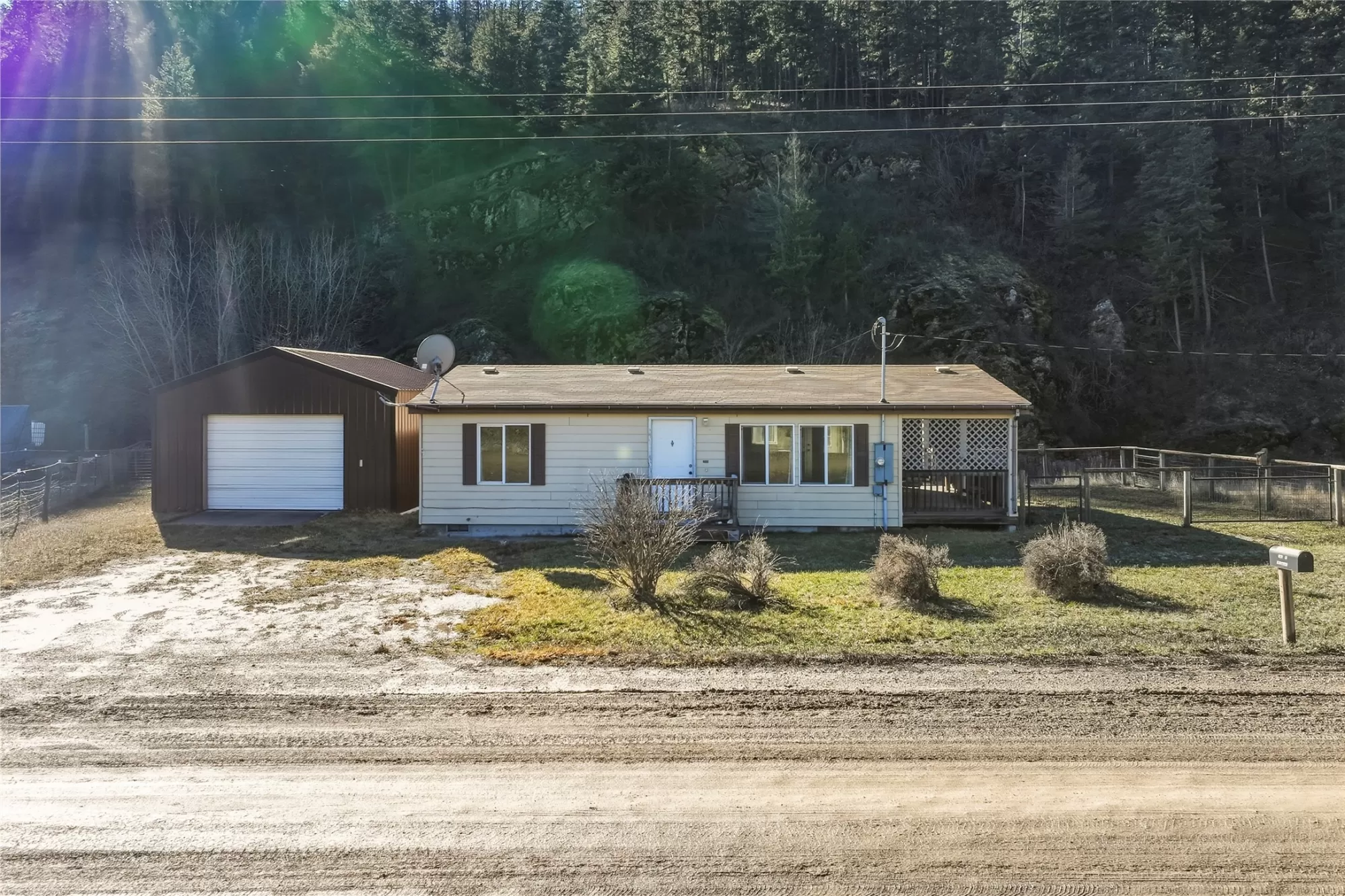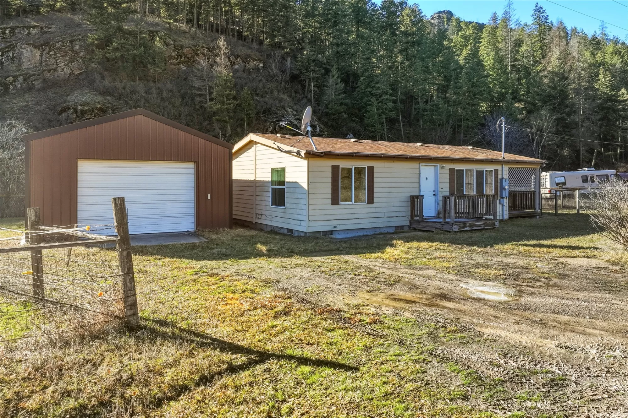 Build your future with this unique property offering both potential and flexibility. While the home is dated and needs some TLC, it provides a great foundation for your vision. With a garage/shop, large patio and plenty of room, you can make this space your own. The basement includes a bedroom and a half bath, with a spacious open area featuring new flooring, perfect for a gaming room or other recreational use. If you prefer, install a kitchenette. With its own entry, this would work exceptionally well for multi-generational family, guests, or a rental unit. An additional 918 sf 2 bed/1 bath mfrd home is on a permanent foundation with a dbl garage. Bordering Lolo National Forest it's backed by a mountainside with striking rock outcroppings. Right across from the Clark Fork River. Most of the 20 acres provides privacy, solitude and hunting access but with ample room for outdoor activities, animals, or added outbuildings to suit your lifestyle.