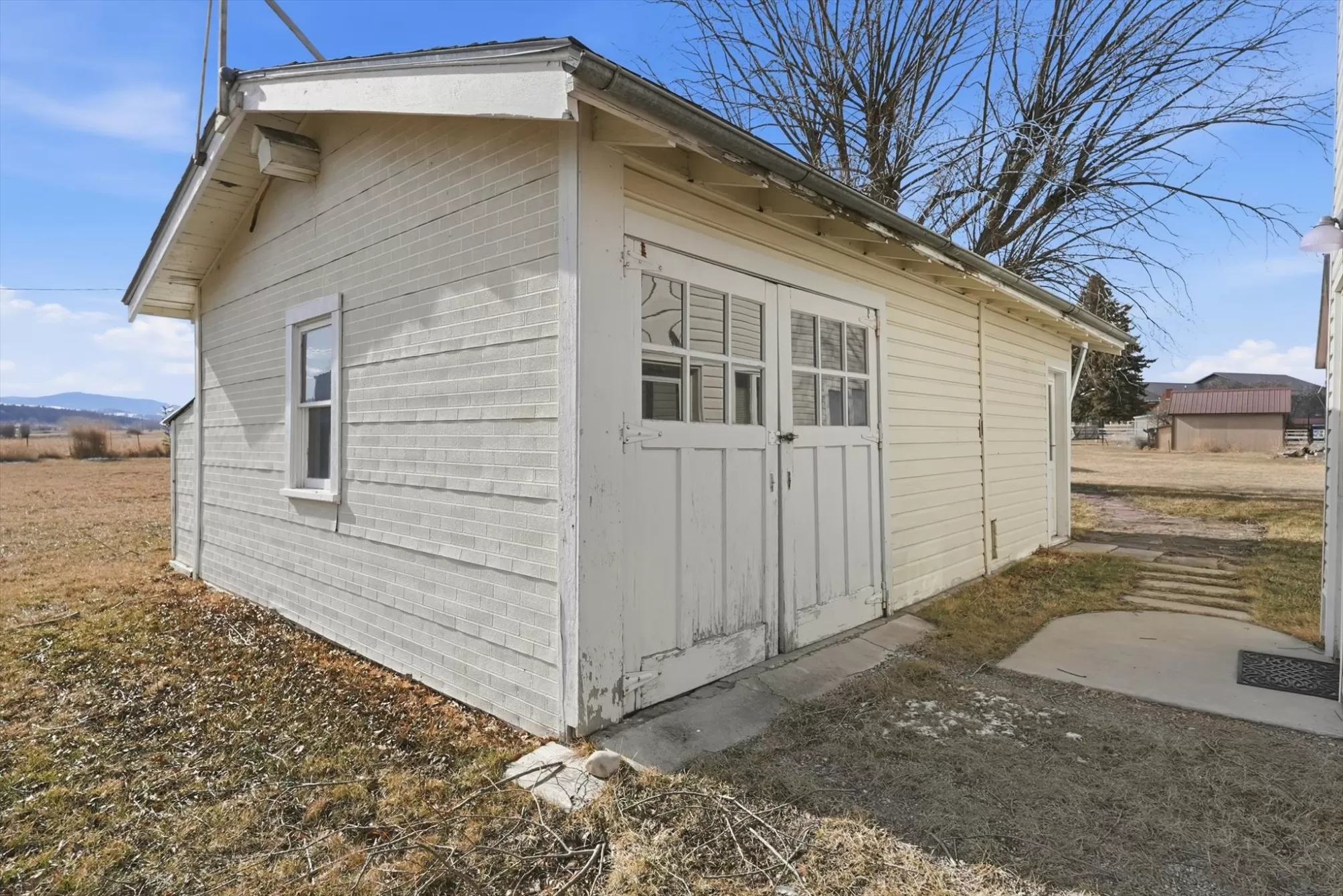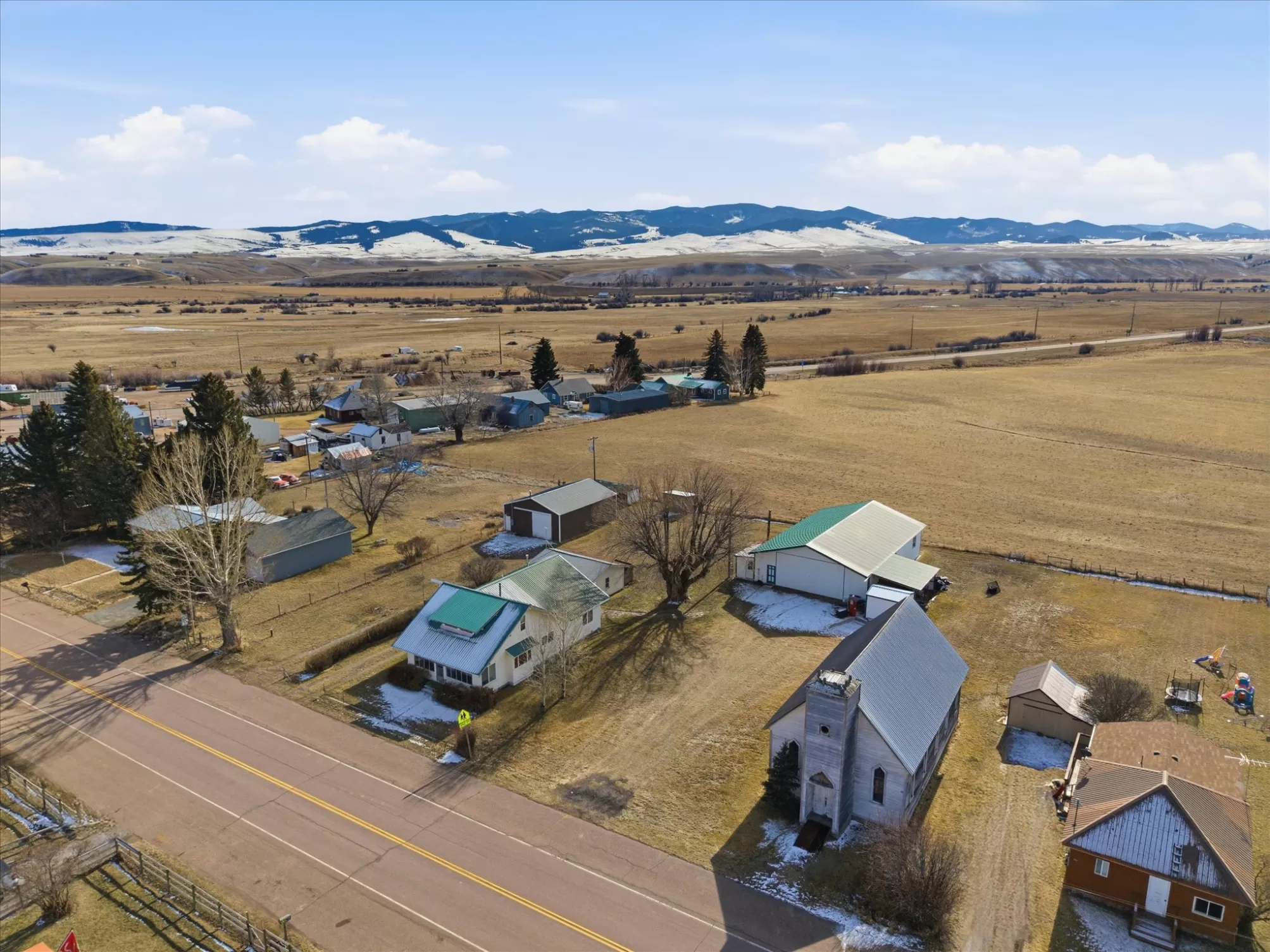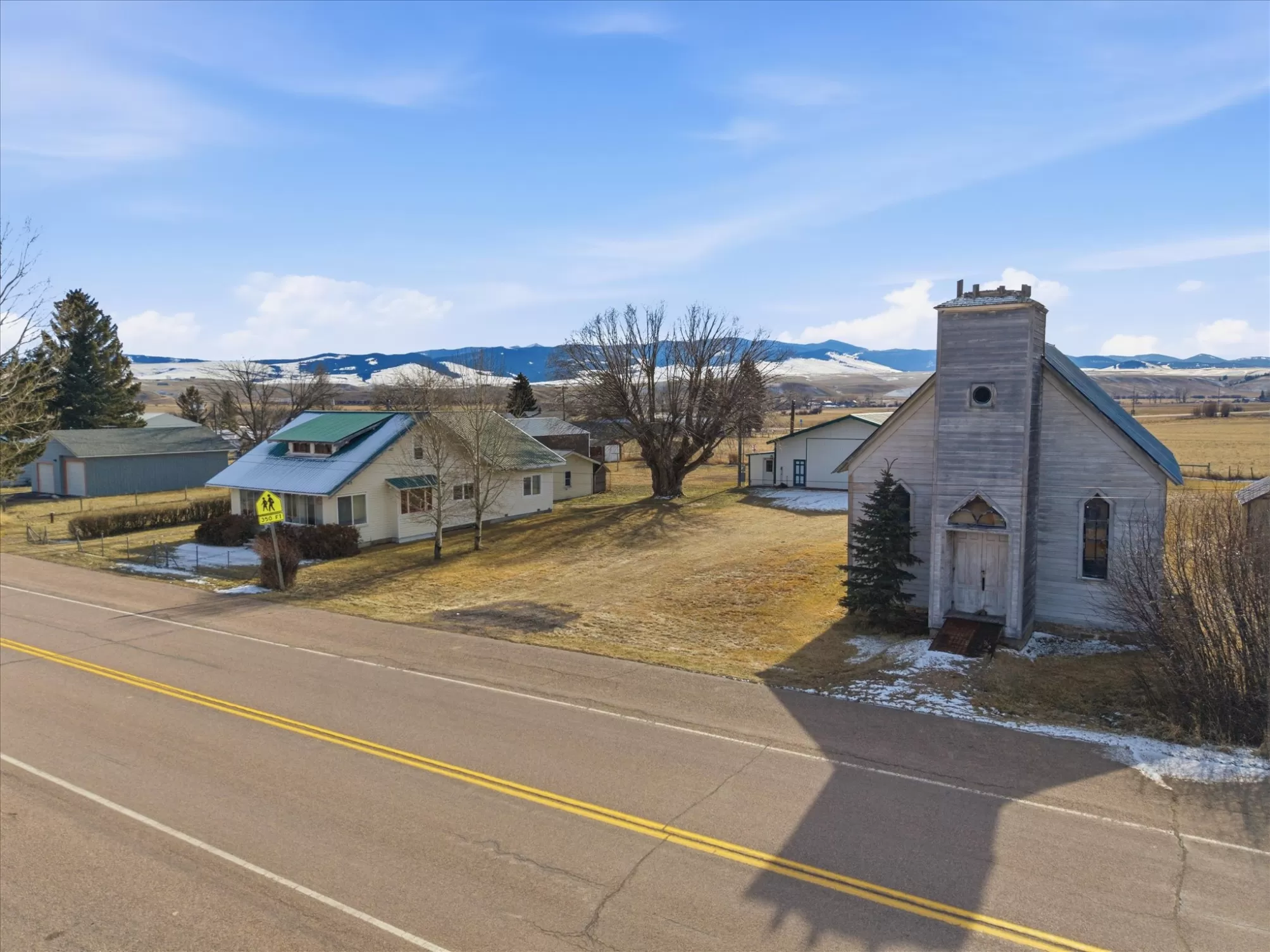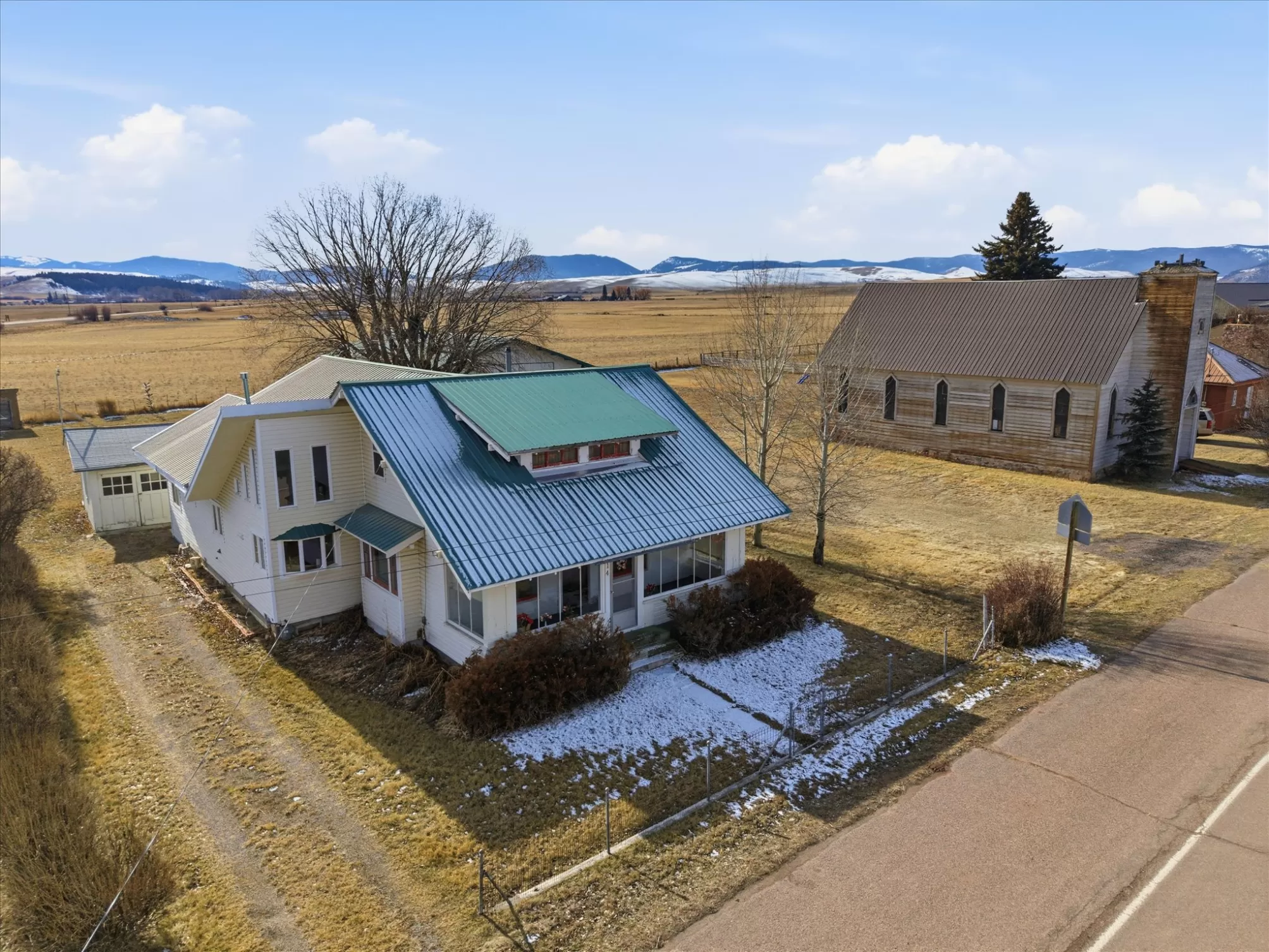 This home is located approximately 45 minutes from Missoula and Discovery Ski Area consisting of two separate lots totaling just under one acre, providing functional separation between residential and shop improvements while backing to agricultural land. The home is on its own lot and offers over 2,600± square feet w/three bedrooms and three bathrooms. Originally a 1914 Sears Roebuck Craftsman bungalow, the home blends historic character with thoughtful updates, including an addition completed around 2005. Improvements include a remodeled kitchen, primary bedroom, laundry room, bathroom, and an updated upstairs sleeping area constructed with SIP panels. Heating includes gas Rinnai-style heaters, on-demand gas hot water, private well and septic, and a cellar for additional storage. Blackfoot provides internet. The second lot features a 40’ x 60’ shop with radiant floor heat powered by either a natural gas hot water boiler or wood-fired boiler, plus spray-in insulation. An attached greenhouse supports vegetable production or early-season starts, along with a lean-to for covered parking, additional outbuildings, and a historic church structure offering potential for storage, studio space, or future re-imagining.