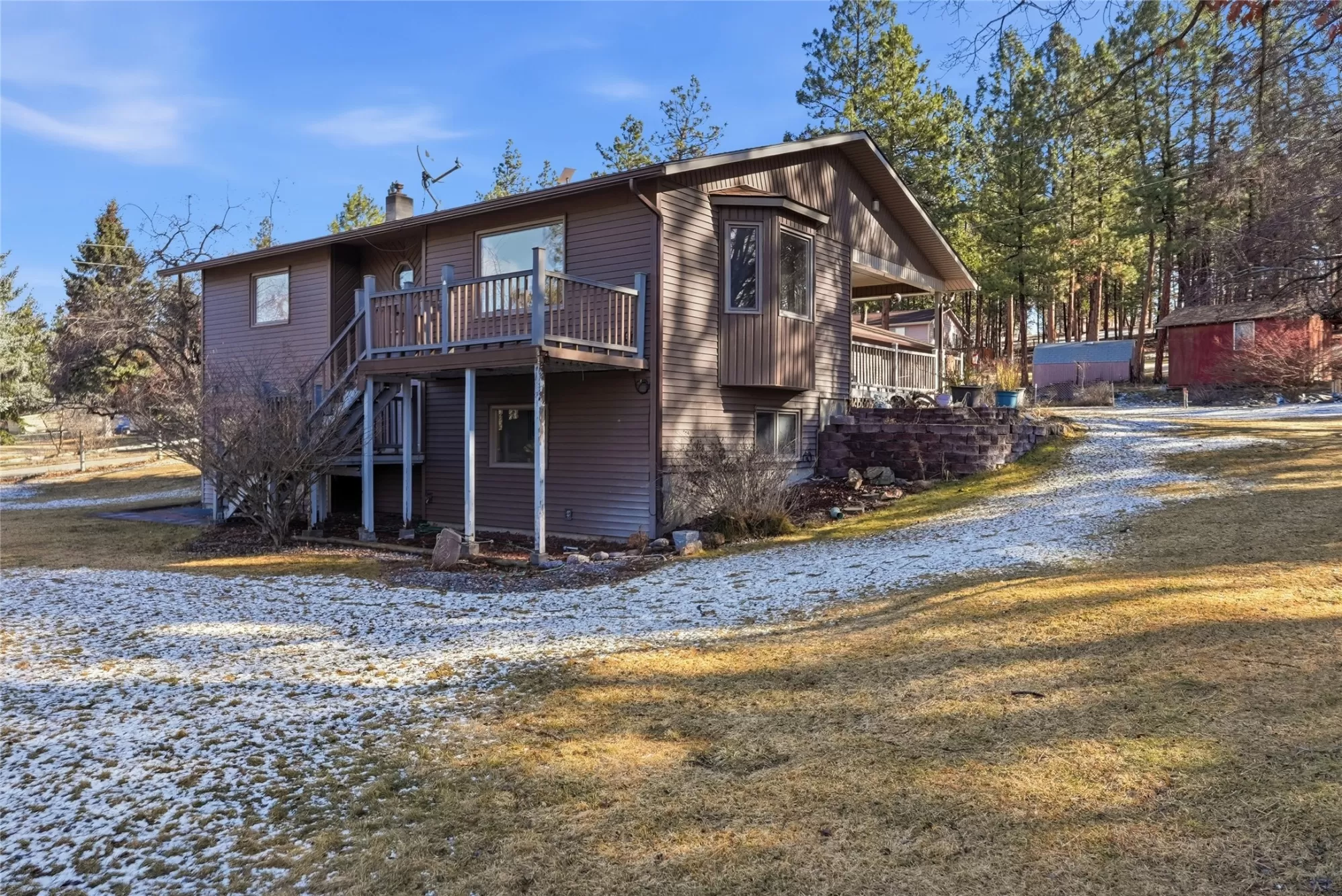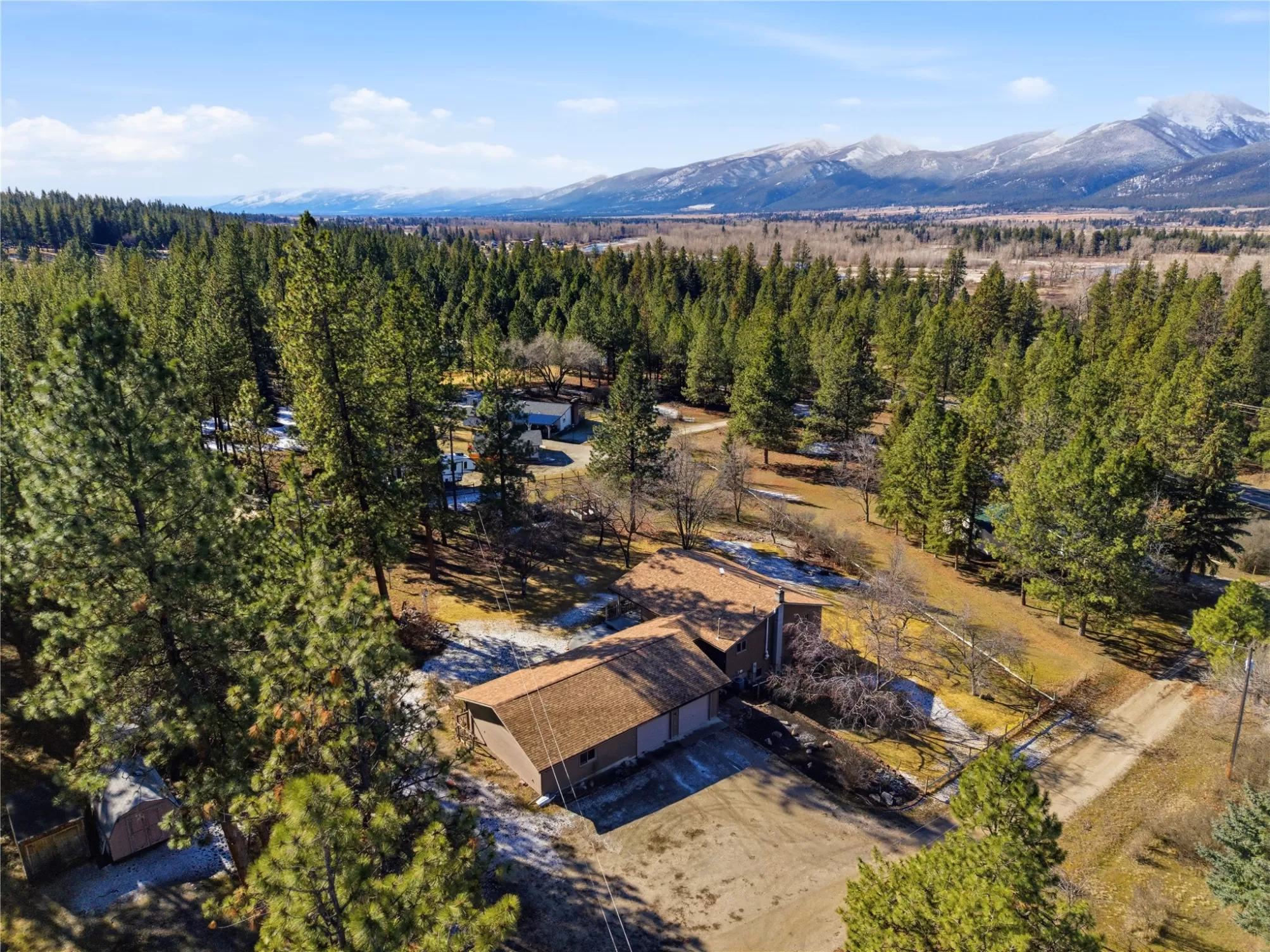 MOTIVATED SELLER! Welcome to 111 Tara Lane. Home, shop, raised garden beds, RV parking, and bonus attached heated workshop all on 1.2 acres. This spacious property has so much to offer with beautiful Bitterroot Mountain views, lush summer landscaping, and an abundance of natural light from south facing windows. Located between Florence and Stevensville, the home offers 2,380 square feet with 2 bedrooms plus a bonus room, two living areas, a recently serviced gas fireplace, and a spacious kitchen and dining area. The kitchen was fully renovated in 2019, creating a warm and functional space for cooking and gathering Thoughtful design makes this home enjoyable in every season, with a covered patio for comfortable outdoor sitting when the weather is nice and a charming bay window that creates a cozy indoor sitting area when the weather is chilly. The large two car garage leads into a spacious 28x24 insulated and heated workshop space for at home projects or hobbies. The outdoor setting is equally appealing, featuring a large deck ideal for entertaining, towering pine trees, and beautiful apple and ornamental cherry trees that bring vibrant spring color. The fully fenced yard offers flexibility for pets or play, and the property includes a fenced garden area, a 16x12 shed, an impressive 28x24 shop, and plenty of space for RV parking near the shop. Wildlife is often seen passing through, including deer and wild turkeys, adding to this wonderful Montana setting. Additional highlights include new appliances in 2020, home A/C, radon mitigation in 2022, underground sprinklers, and a new roof installed in 2024. Conveniently located only 25 minutes to Missoula and just a short drive to the river and the Lee Metcalf Wildlife Refuge, this property offers an exceptional blend of comfort, views, and Bitterroot Valley living.