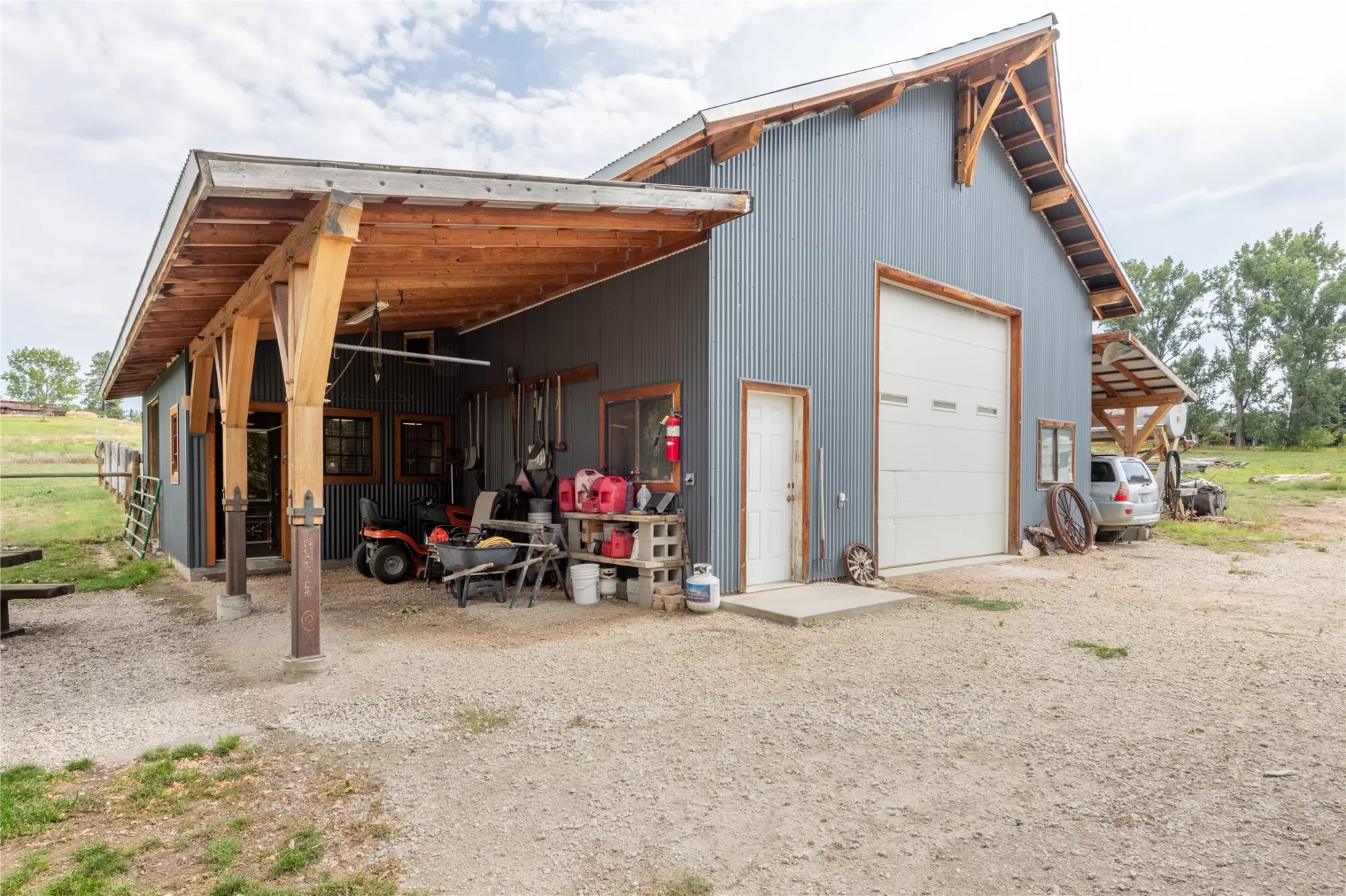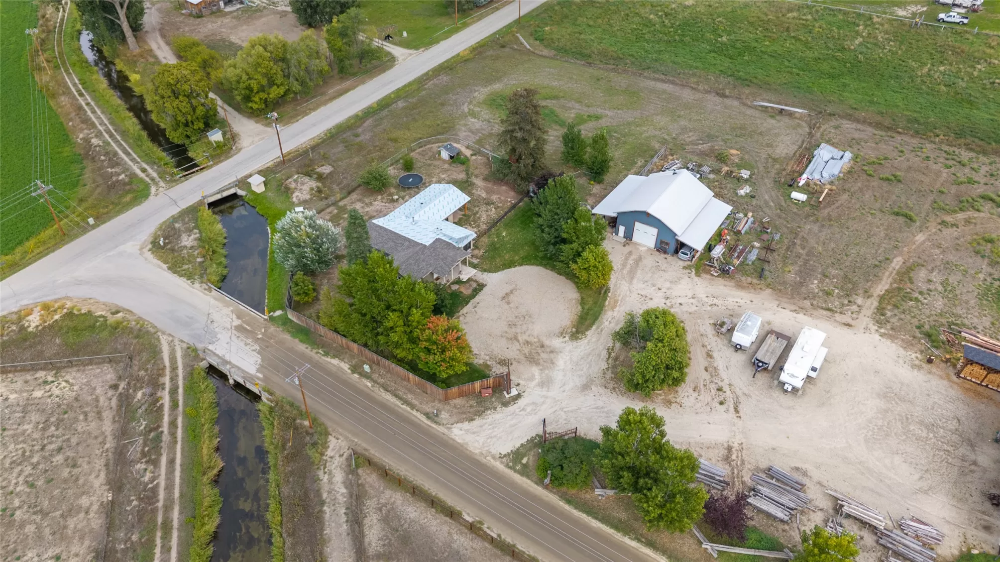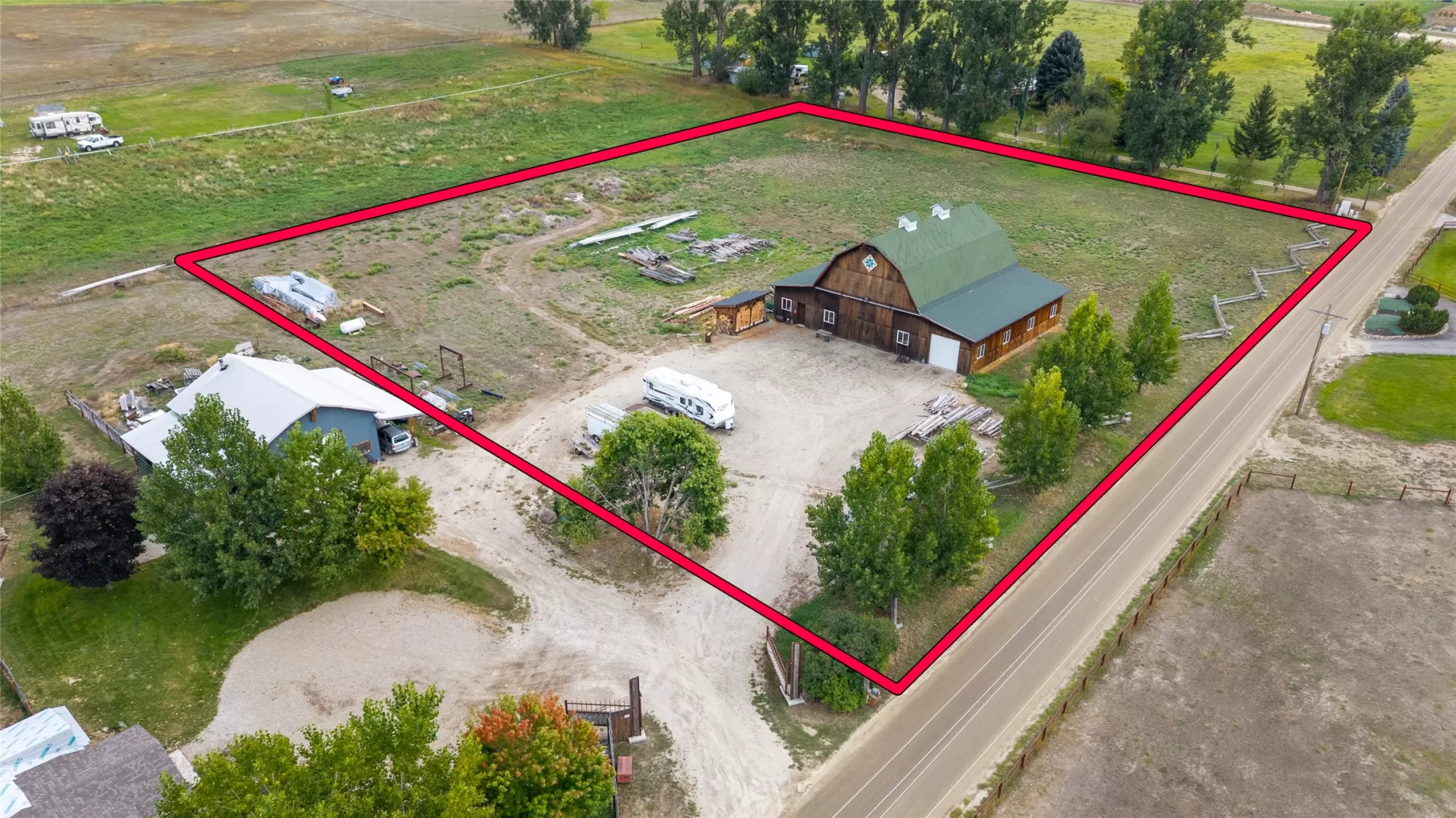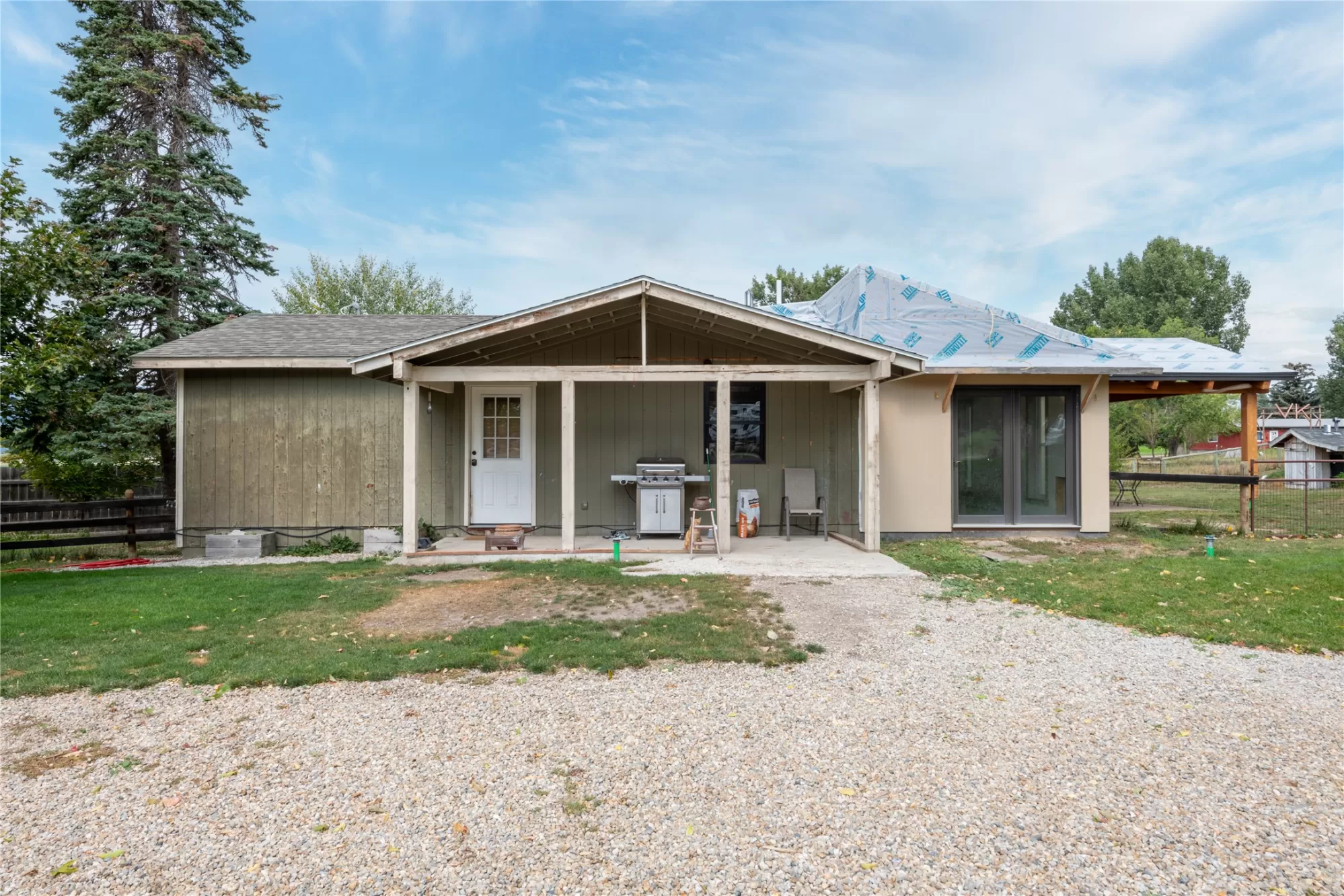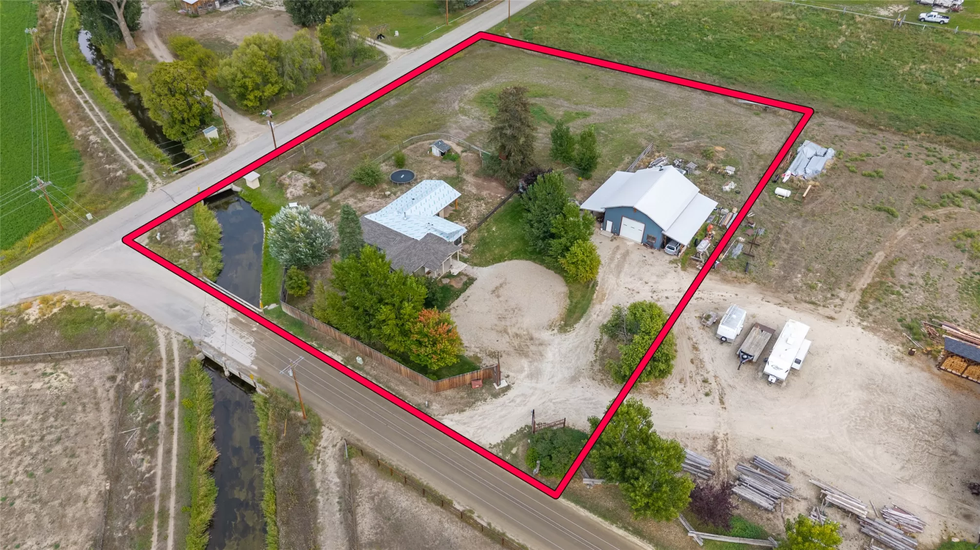 Located in the heart of Montana's renowned Bitterroot Valley, this unique 5-acre property offers privacy, space, and exceptional potential in the Stevensville area known for its scenic beauty, agricultural roots, and access to year-round recreation. Surrounded by wide-open skies, mountain views, and productive land, this setting truly captures the Montana lifestyle. The single-family home features 2 bedrooms and 1 full bath, with the start of a magnificent kitchen already in place, highlighted by gorgeous cabinetry and ready for completion. A cozy living area with a wood stove creates a warm gathering space, while the covered back patio invites you to slow down and take in the peaceful valley surroundings. Spanning two irrigated parcels, the property offers flexibility for future plans. The land includes apple trees in the backyard, open pasture space, an adorable chicken coop, and privacy fencing ideal for a small-scale agricultural lifestyle or room to expand. Outbuildings are a standout feature. A 1,200 sq ft shop provides ample workspace and includes a small office ideal for reloading or hobby use. The true showpiece is the impressive 4,500 sq ft timber-framed barn, complete with a half bath and exceptional craftsmanship. The scale, structure, and versatility of this space open the door to countless possibilities, from an incredible workshop to a future venue or creative retreat. This is a property that truly must be seen in person to appreciate the sense of space, the setting, and the unique opportunities it offers. Located just minutes from historic downtown Stevensville and surrounded by everything the Bitterroot Valley has to offer, this very special place is ready for the right person to complete their dream.