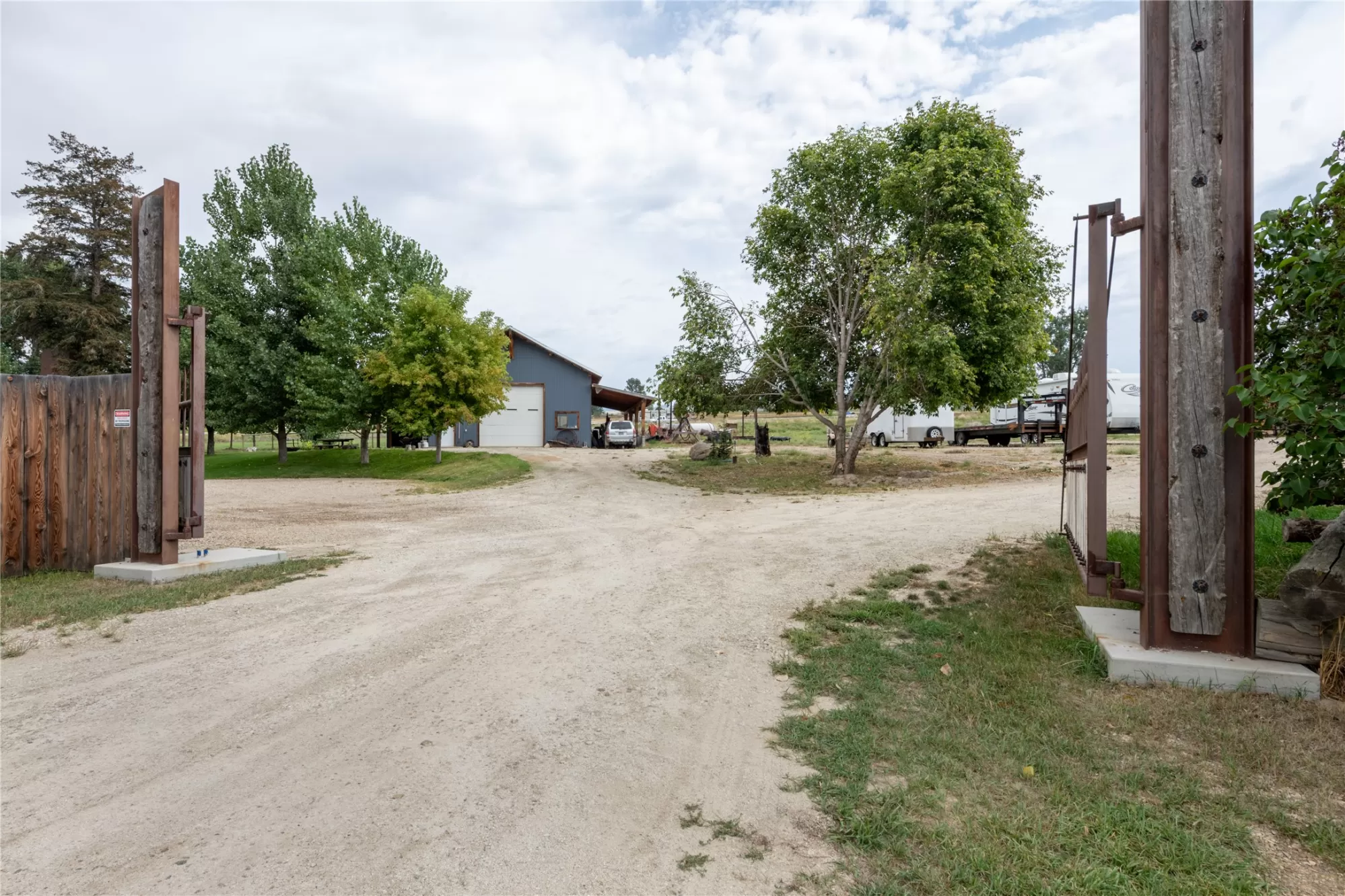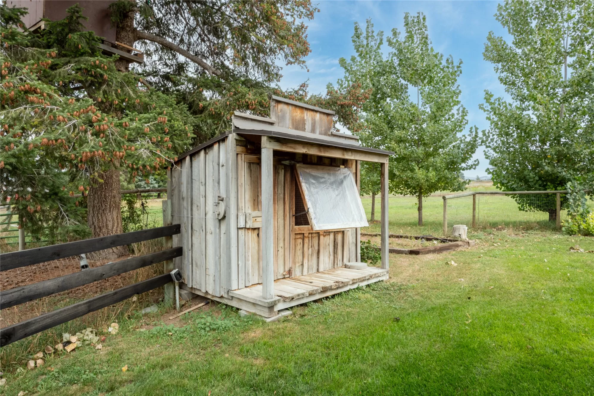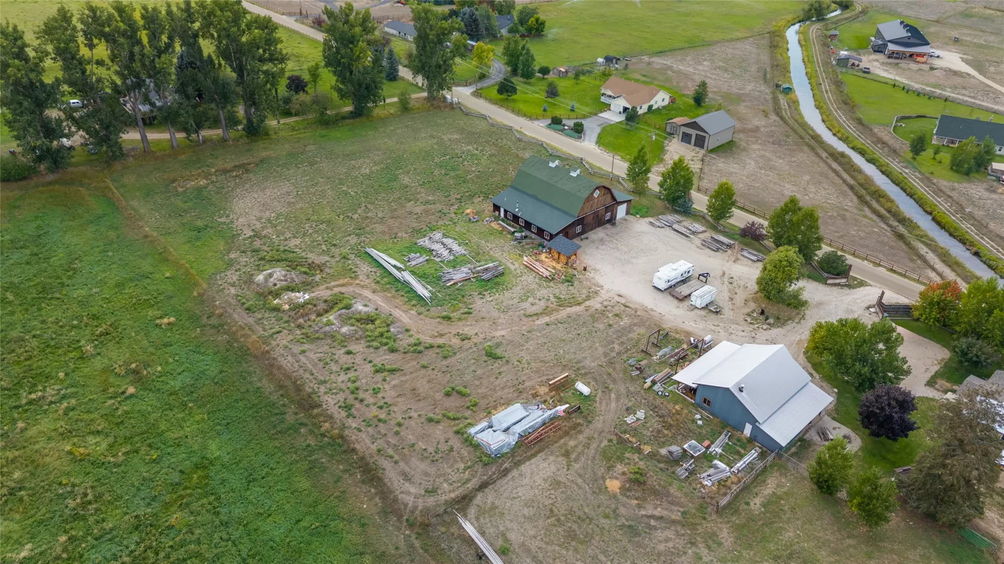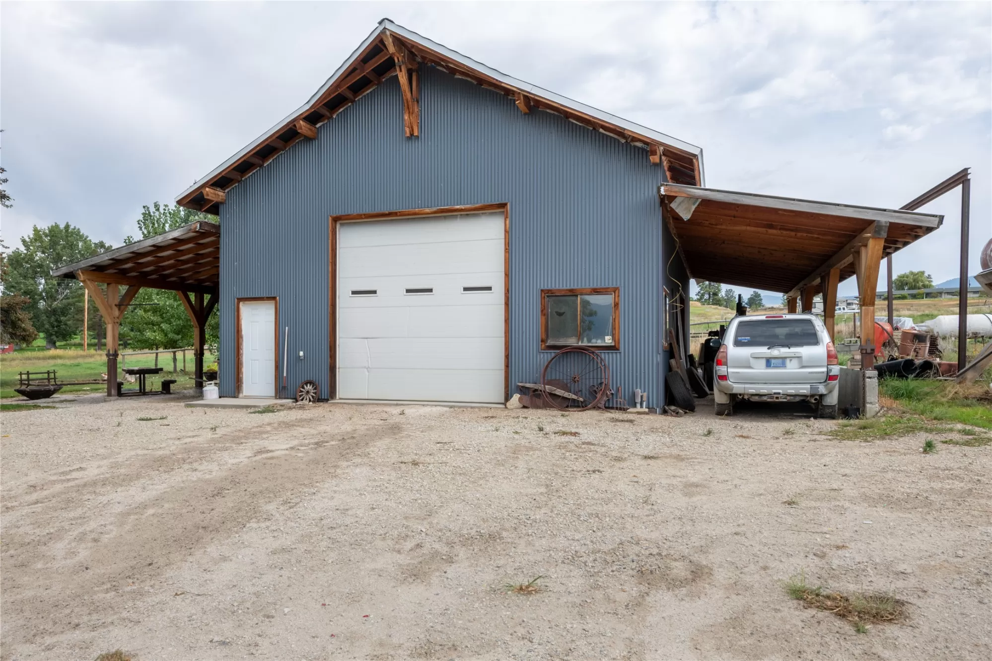Located in the heart of Montana's renowned Bitterroot Valley, this unique 5-acre property offers privacy, space, and exceptional potential in the Stevensville area known for its scenic beauty, agricultural roots, and access to year-round recreation. Surrounded by wide-open skies, mountain views, and productive land, this setting truly captures the Montana lifestyle. The single-family home features 2 bedrooms and 1 full bath, with the start of a magnificent kitchen already in place, highlighted by gorgeous cabinetry and ready for completion. A cozy living area with a wood stove creates a warm gathering space, while the covered back patio invites you to slow down and take in the peaceful valley surroundings. Spanning two irrigated parcels, the property offers flexibility for future plans. The land includes apple trees in the backyard, open pasture space, an adorable chicken coop, and privacy fencing ideal for a small-scale agricultural lifestyle or room to expand. Outbuildings are a standout feature. A 1,200 sq ft shop provides ample workspace and includes a small office ideal for reloading or hobby use. The true showpiece is the impressive 4,500 sq ft timber-framed barn, complete with a half bath and exceptional craftsmanship. The scale, structure, and versatility of this space open the door to countless possibilities, from an incredible workshop to a future venue or creative retreat. This is a property that truly must be seen in person to appreciate the sense of space, the setting, and the unique opportunities it offers. Located just minutes from historic downtown Stevensville and surrounded by everything the Bitterroot Valley has to offer, this very special place is ready for the right person to complete their dream.