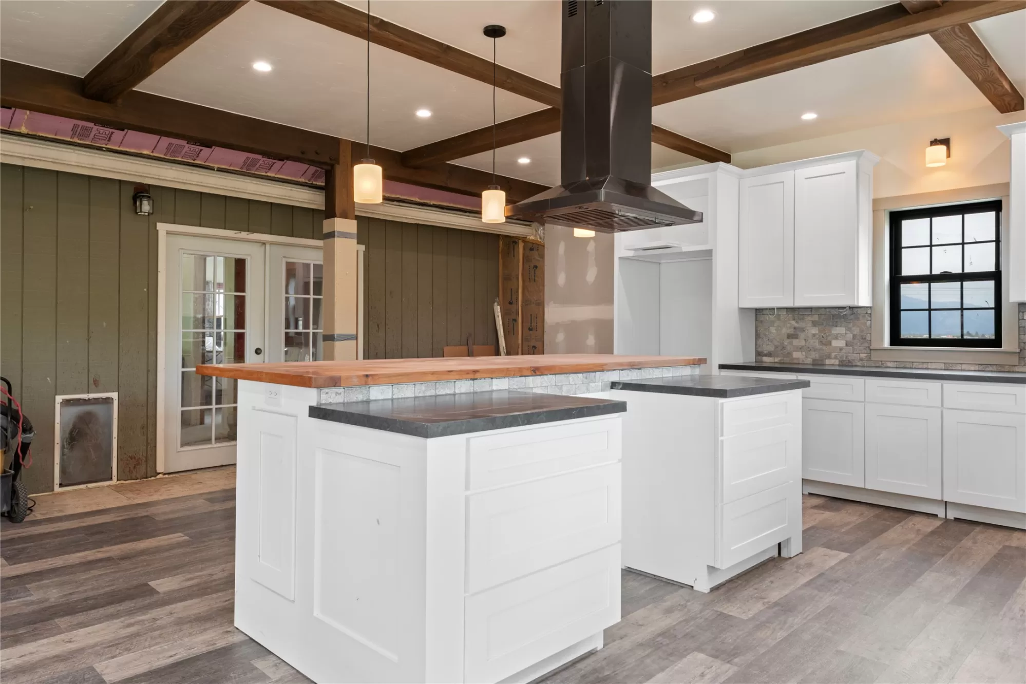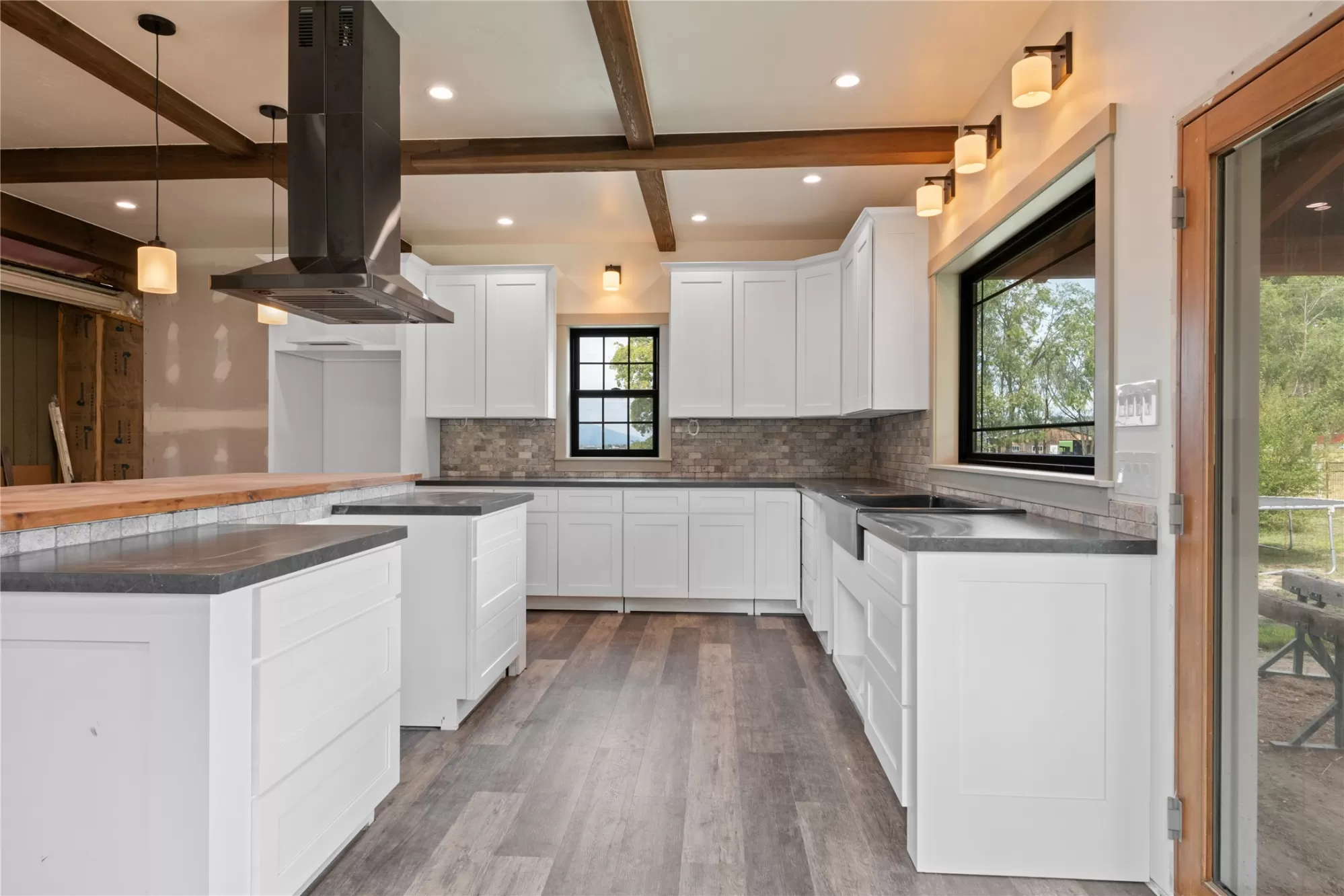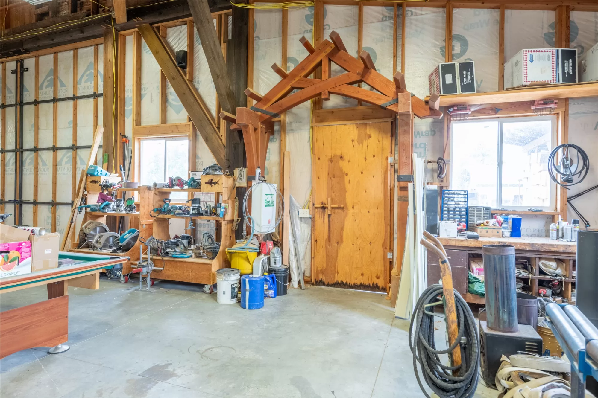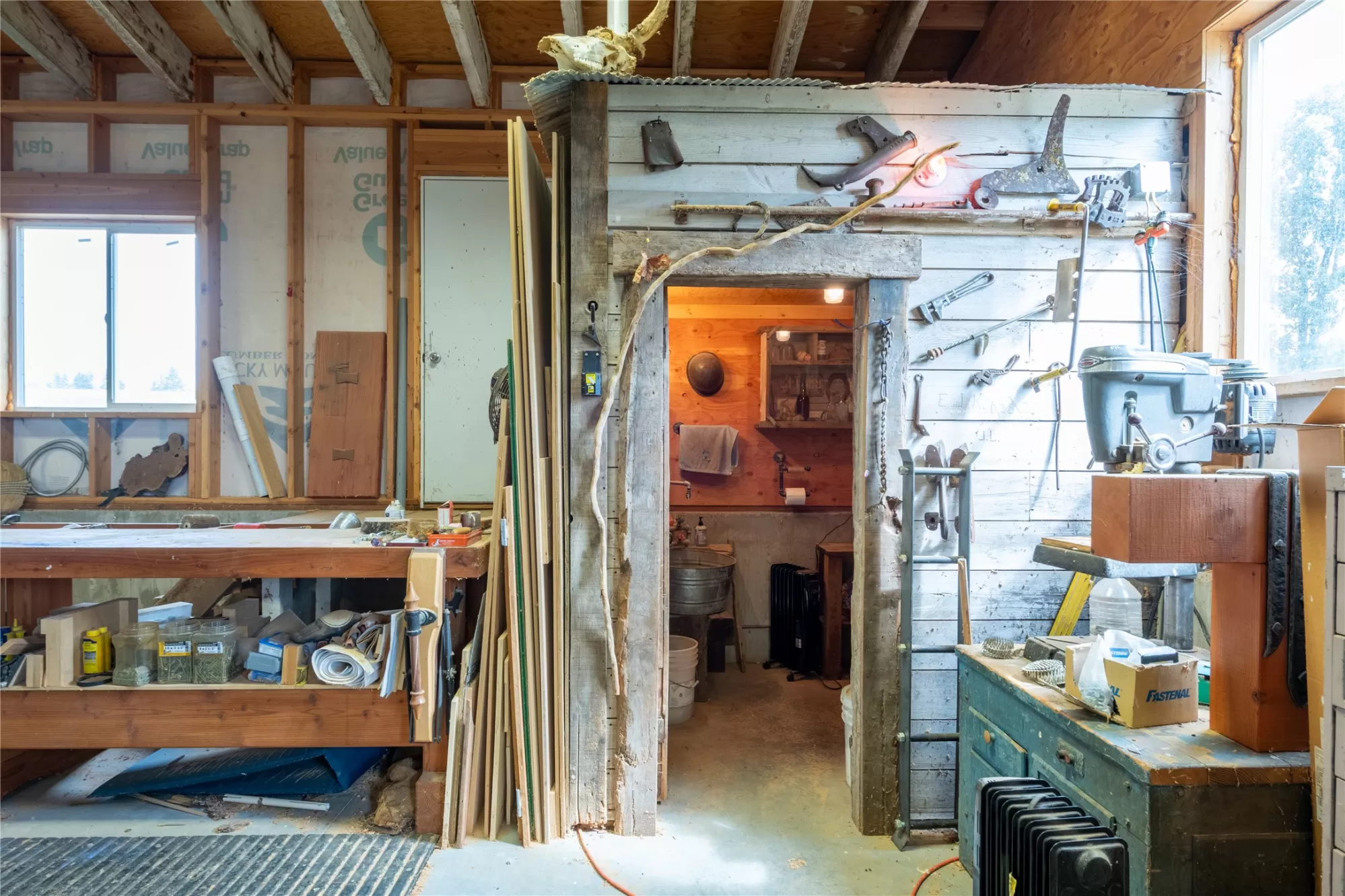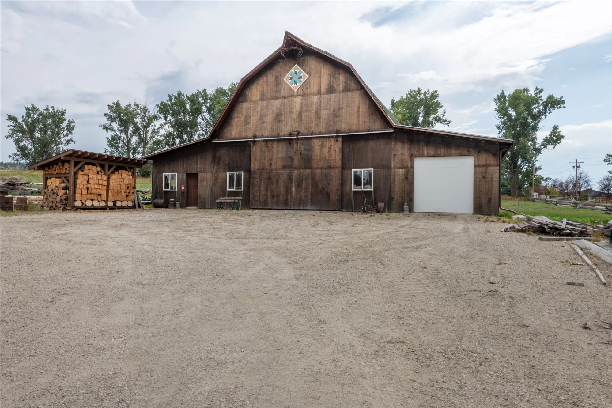 Located in the heart of Montana's renowned Bitterroot Valley, this unique 5-acre property offers privacy, space, and exceptional potential in the Stevensville area known for its scenic beauty, agricultural roots, and access to year-round recreation. Surrounded by wide-open skies, mountain views, and productive land, this setting truly captures the Montana lifestyle. The single-family home features 2 bedrooms and 1 full bath, with the start of a magnificent kitchen already in place, highlighted by gorgeous cabinetry and ready for completion. A cozy living area with a wood stove creates a warm gathering space, while the covered back patio invites you to slow down and take in the peaceful valley surroundings. Spanning two irrigated parcels, the property offers flexibility for future plans. The land includes apple trees in the backyard, open pasture space, an adorable chicken coop, and privacy fencing ideal for a small-scale agricultural lifestyle or room to expand. Outbuildings are a standout feature. A 1,200 sq ft shop provides ample workspace and includes a small office ideal for reloading or hobby use. The true showpiece is the impressive 4,500 sq ft timber-framed barn, complete with a half bath and exceptional craftsmanship. The scale, structure, and versatility of this space open the door to countless possibilities, from an incredible workshop to a future venue or creative retreat. This is a property that truly must be seen in person to appreciate the sense of space, the setting, and the unique opportunities it offers. Located just minutes from historic downtown Stevensville and surrounded by everything the Bitterroot Valley has to offer, this very special place is ready for the right person to complete their dream.