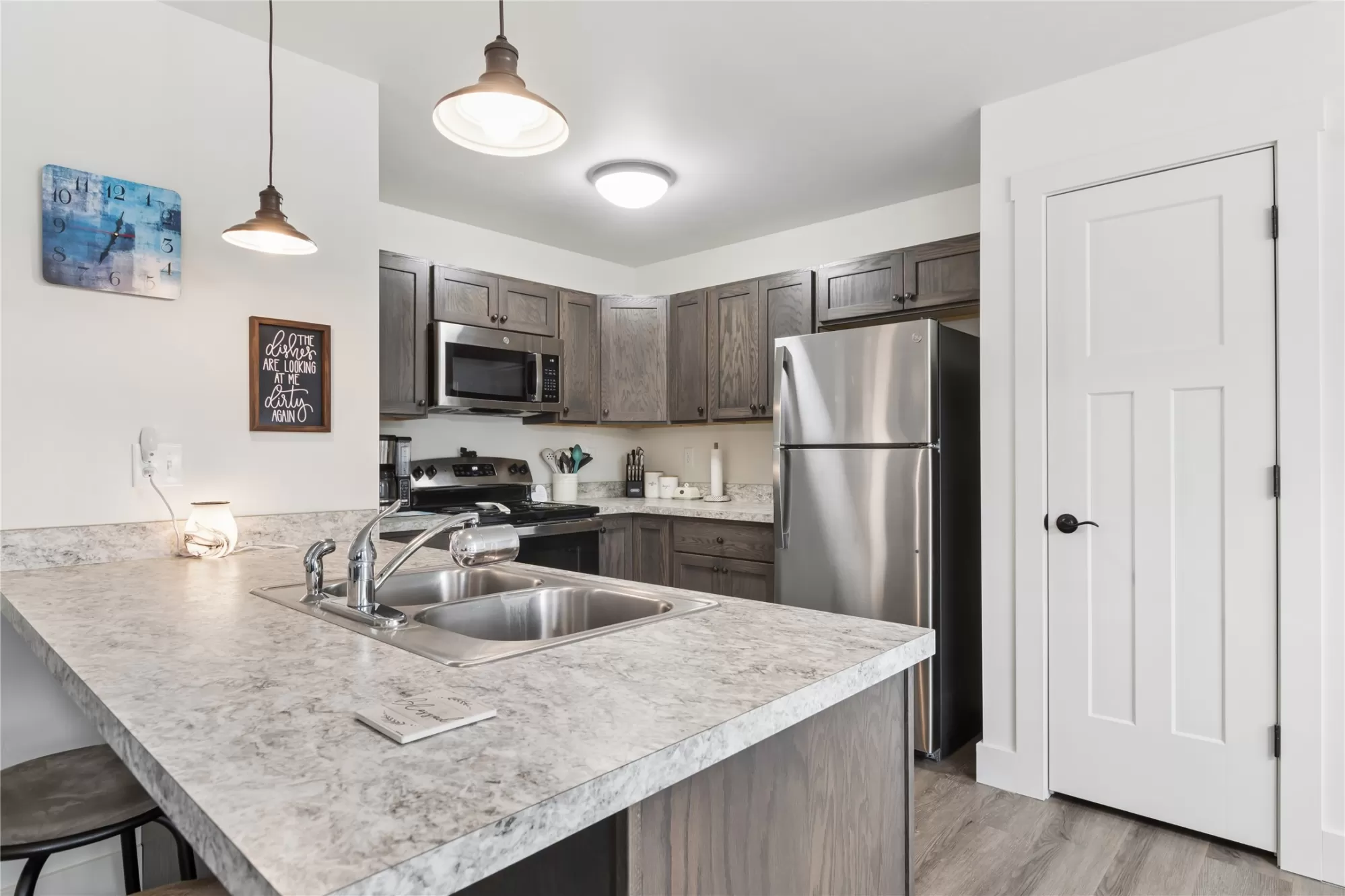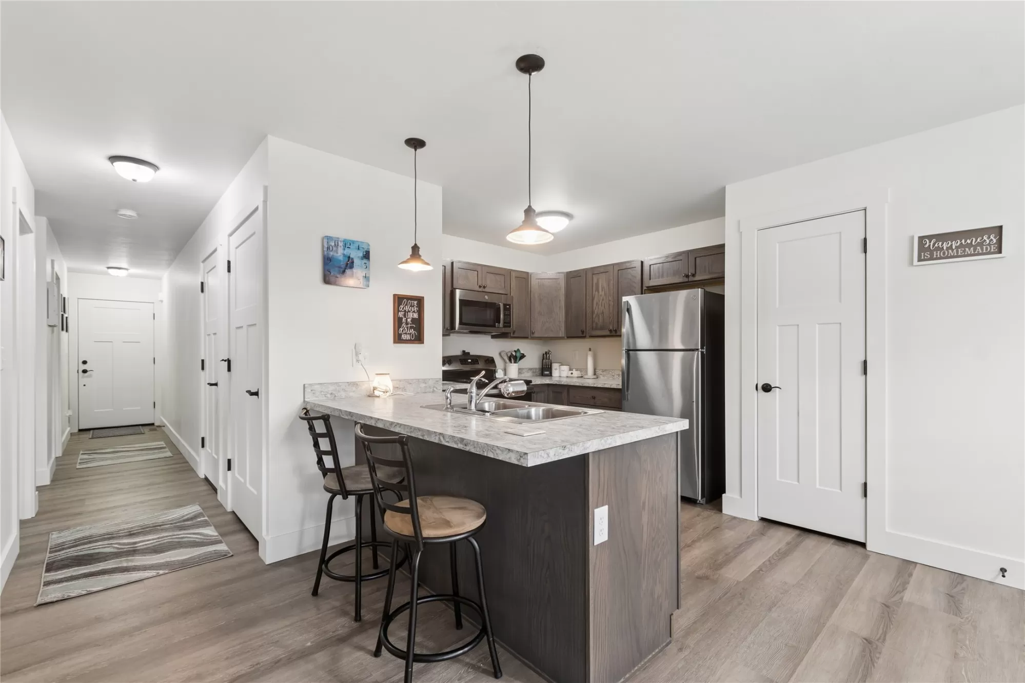 Come tour this charming yet affordable living space in a great location just south of Kalispell. This recently built home has 2 bedrooms & 1 bathroom making it the perfect home for starting out or downsizing. The 948 square feet are well designed and easy to maintain, with one garage stall, stackable washer/dryer & a mini-split heating & cooling system. A fence could be added in the back for additional privacy.