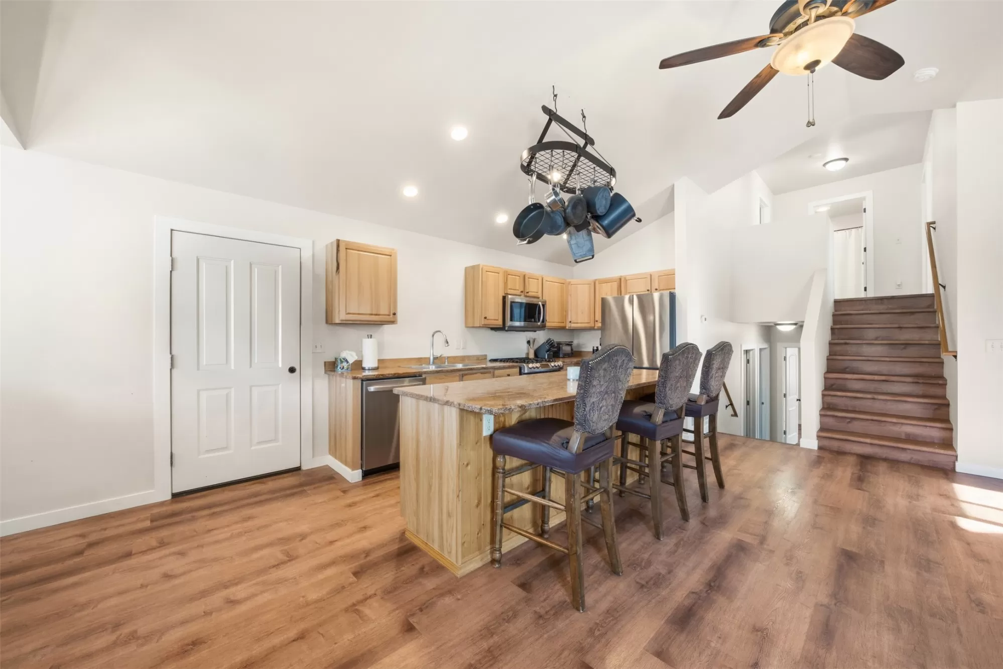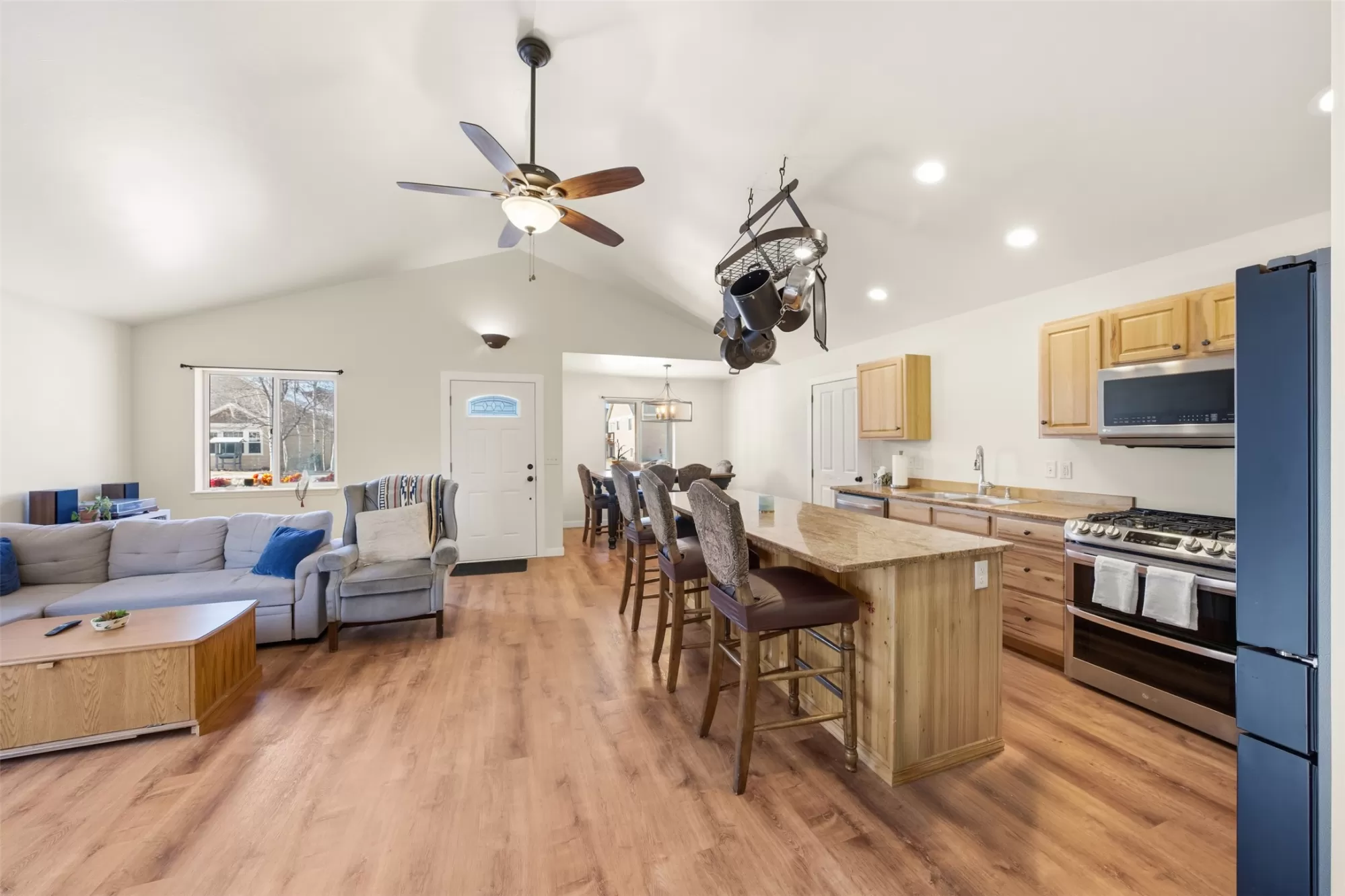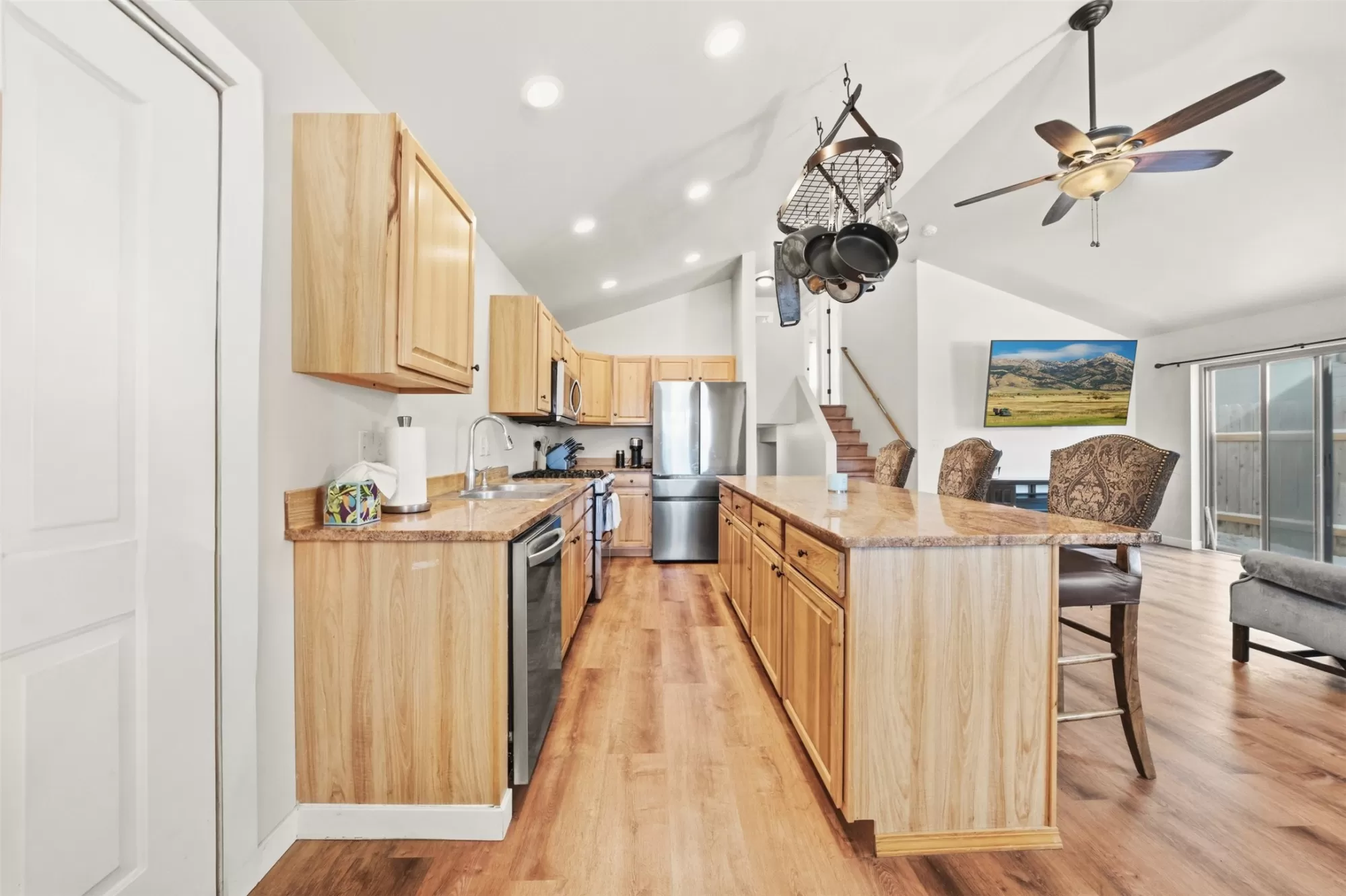 BACK ON MARKET NO FAULT TO PROPERTY - Every now and then, something falls into your lap that makes you question if the universe is obsessed with you. Enter: this adorable tri-level charmer on one of River Rock’s quietest streets. From the moment you walk in, it’s clear this place doesn’t do boring with vaulted ceilings, granite countertops, upgraded gas range & dreamy fridge. The main-level layout flows naturally with access to the backyard. Upstairs, the primary suite overlooks the backyard with a roomy closet and full bath. Two additional guest rooms and a second full bathroom mean your people can stay over without stepping on your self-care routine. The basement offers a flex space, a non-conforming bedroom (no closet), a bonus room, & full bathroom with a laundry zone. Buyer to verify square footage. Cadastral only shows two levels: basement 720 and first floor 1,472. Agent provided estimate as it better reflects the actual layout. Agent did not modify sq ft from total footprint. (Buyer to verify square footage. Cadastral only shows two levels: basement 720, and first floor 1,472. Agent provided a guestimate on square footage as it better reflects the actual layout. The agent did not modify the square footage from the total footprint in the cadastral. If buyer has concerns buyer shall inspect during due diligence period. Office flex space in the basement has a light switch in an awkward place that controls two rooms. Back on the market no fault of the property. 5TH BEDROOM IS NON-CONFORMING (NO CLOSET) BUYERS TO BE NOTIFIED PRIOR TO SHOWING.