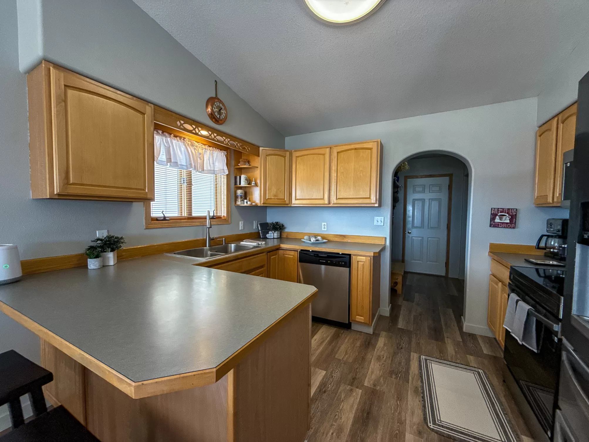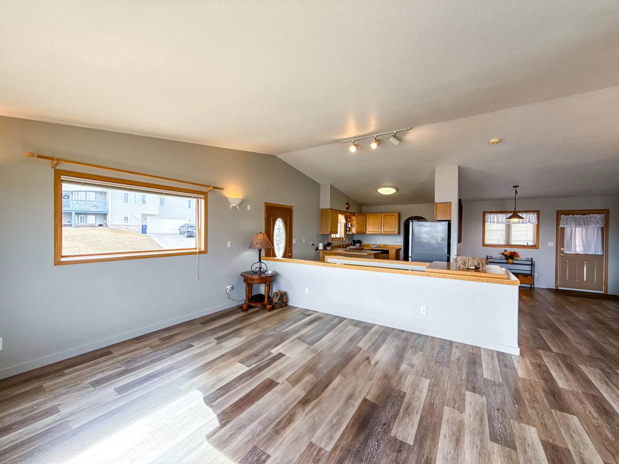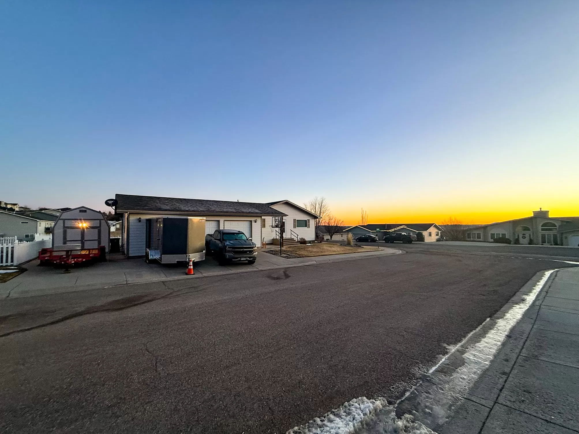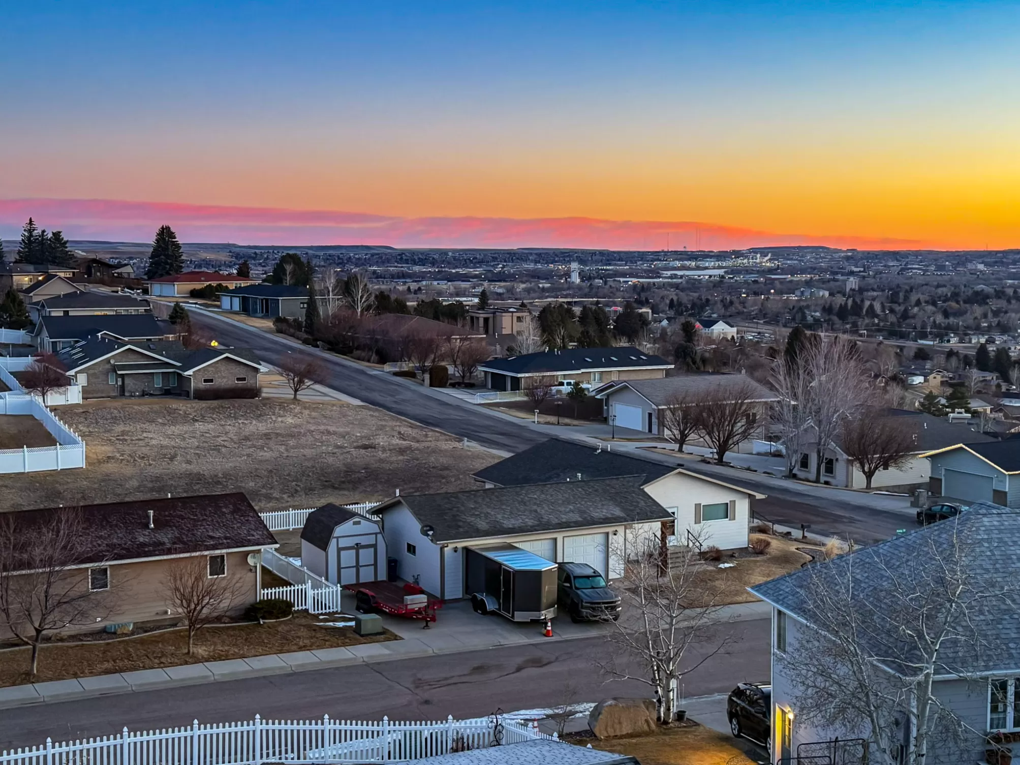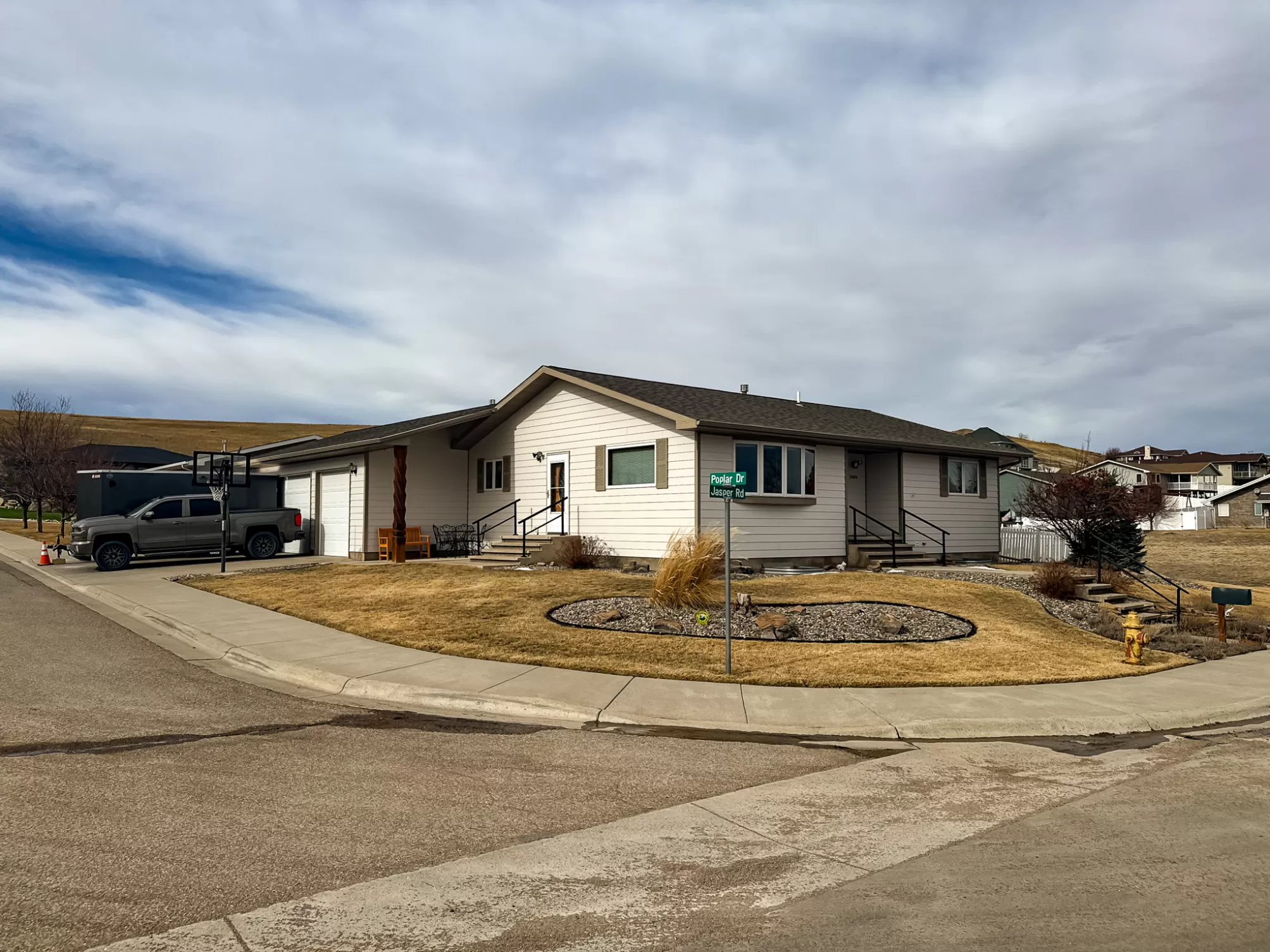 3404 Jasper Road | Belview Estates | Fox Farm Area Positioned at the top of the Belview Estates neighborhood, this corner-lot home captures sweeping mountain and river valley views while offering space, privacy, and functionality that’s hard to find in the Fox Farm area. With fresh interior and exterior paint, new flooring, and a roof replaced in 2020, this home blends peace of mind updates with an open, light-filled layout. Vaulted ceilings and expansive windows frame the scenery, creating a bright main living space that feels elevated in every sense. The main level features two spacious bedrooms, 1.5 bathrooms, and a dining area that opens directly to the large deck — ideal for entertaining or enjoying Montana sunsets. The vinyl-fenced yard is flat and usable, with additional space thanks to the adjacent drainage easement and city-owned property bordering the lot. Downstairs, you’ll find two additional bedrooms, a full bathroom, a generous family room with pellet stove, and ample storage — perfect for guests, hobbies, or multi-generational living. The oversized three-car heated garage is a standout feature, located on the side of the home for added curb appeal and driveway space. The extended driveway offers camper/RV parking, and the 10x12 powered storage shed with loft adds even more versatility. Brand new kitchen appliances — dishwasher, range, and microwave — complete the package. Located in the Meadowlark School District and just minutes from Smith’s, Home Depot, restaurants, and the airport, this home combines convenience with one of the best vantage points in Great Falls. If you’ve been waiting for space, views, and garage capacity in a highly sought-after neighborhood — this is your opportunity.