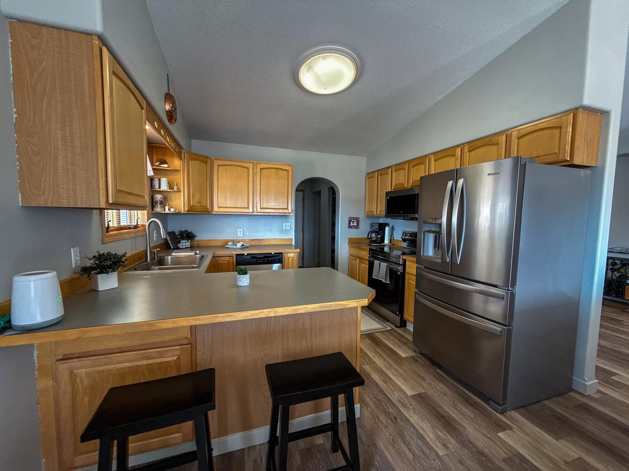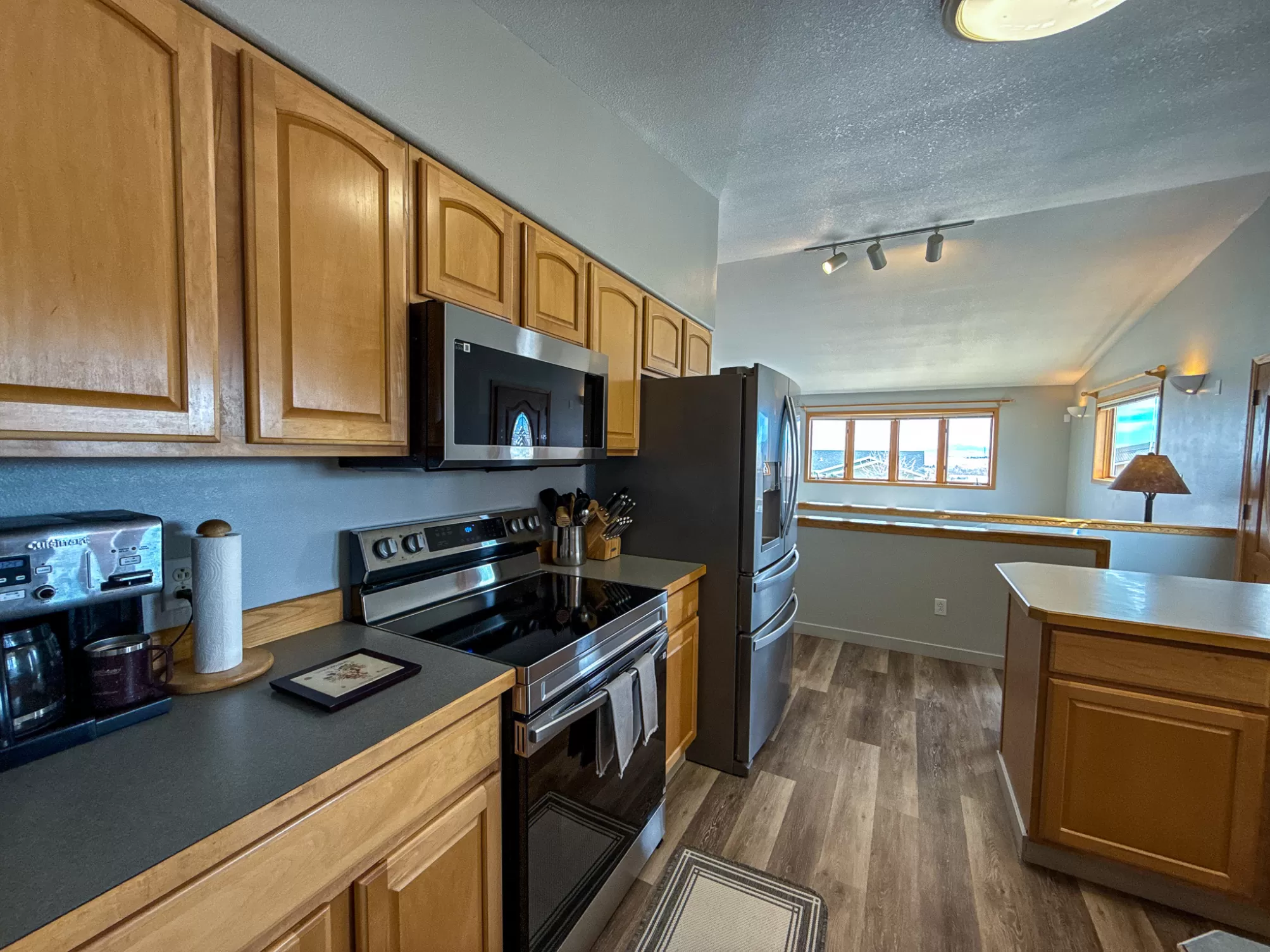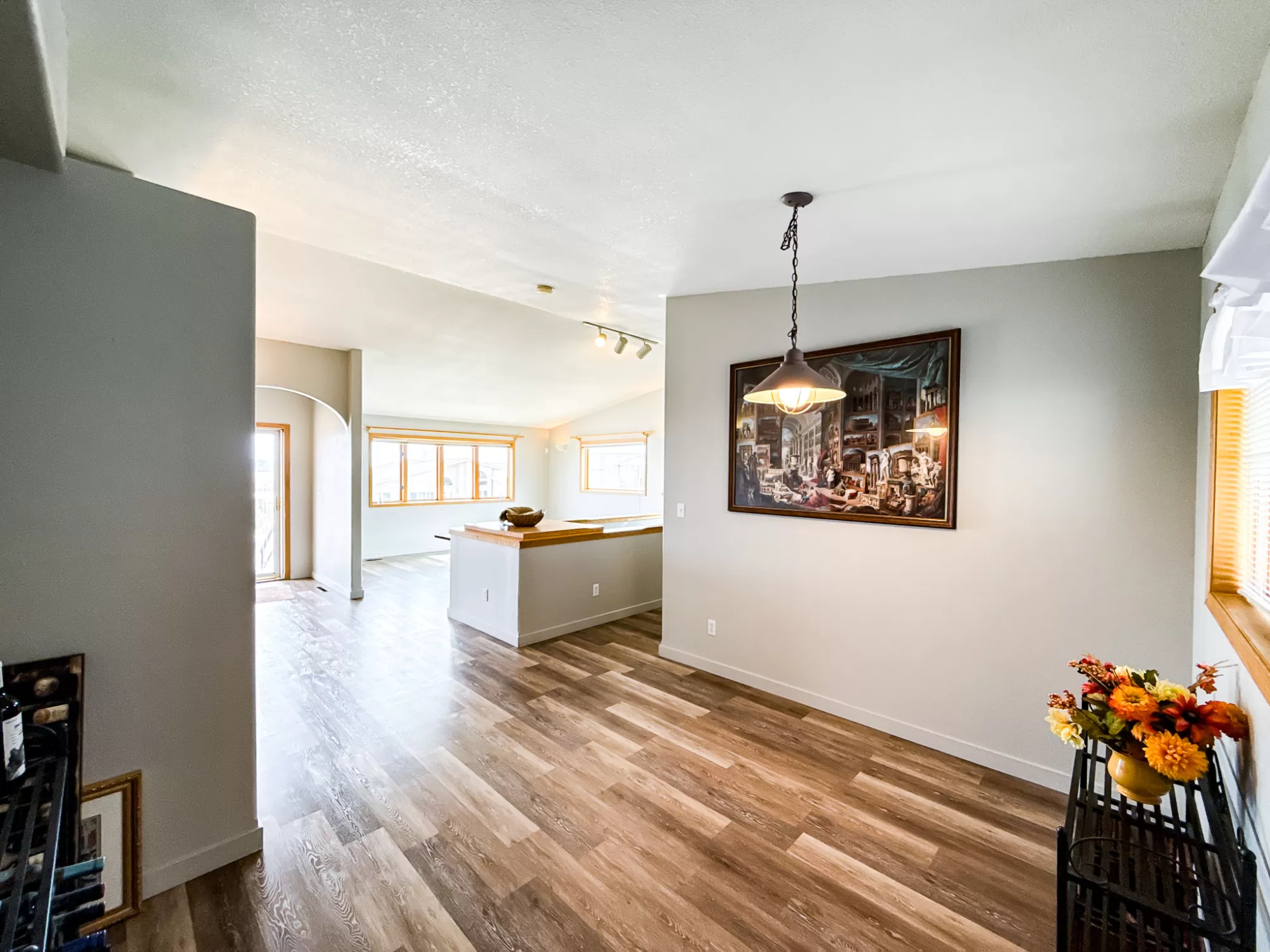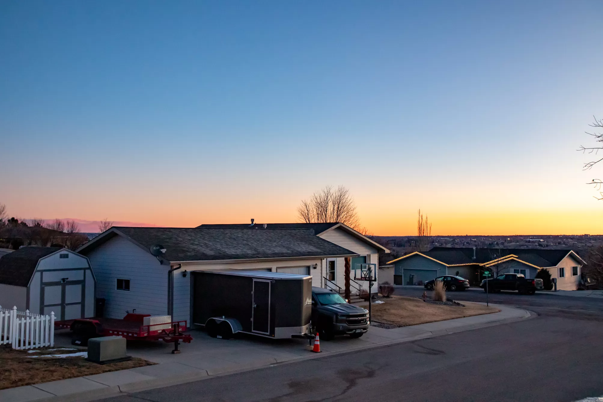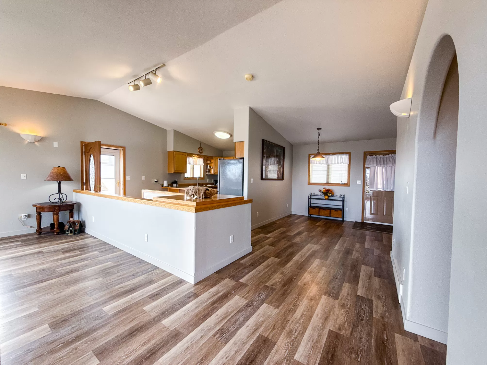 3404 Jasper Road | Belview Estates | Fox Farm Area Positioned at the top of the Belview Estates neighborhood, this corner-lot home captures sweeping mountain and river valley views while offering space, privacy, and functionality that’s hard to find in the Fox Farm area. With fresh interior and exterior paint, new flooring, and a roof replaced in 2020, this home blends peace of mind updates with an open, light-filled layout. Vaulted ceilings and expansive windows frame the scenery, creating a bright main living space that feels elevated in every sense. The main level features two spacious bedrooms, 1.5 bathrooms, and a dining area that opens directly to the large deck — ideal for entertaining or enjoying Montana sunsets. The vinyl-fenced yard is flat and usable, with additional space thanks to the adjacent drainage easement and city-owned property bordering the lot. Downstairs, you’ll find two additional bedrooms, a full bathroom, a generous family room with pellet stove, and ample storage — perfect for guests, hobbies, or multi-generational living. The oversized three-car heated garage is a standout feature, located on the side of the home for added curb appeal and driveway space. The extended driveway offers camper/RV parking, and the 10x12 powered storage shed with loft adds even more versatility. Brand new kitchen appliances — dishwasher, range, and microwave — complete the package. Located in the Meadowlark School District and just minutes from Smith’s, Home Depot, restaurants, and the airport, this home combines convenience with one of the best vantage points in Great Falls. If you’ve been waiting for space, views, and garage capacity in a highly sought-after neighborhood — this is your opportunity.
