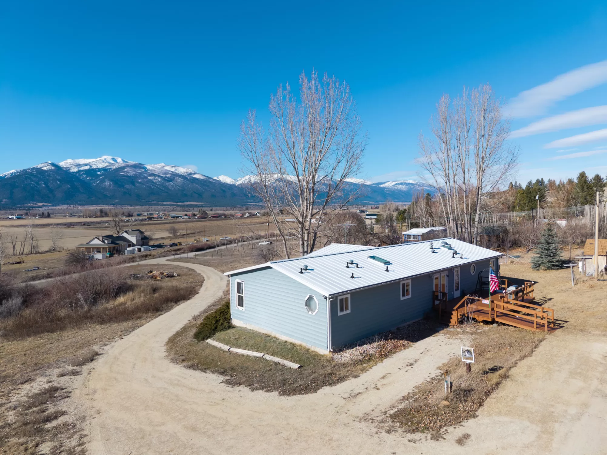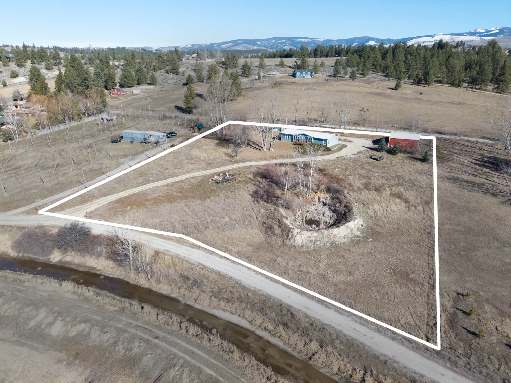 Enjoy breathtaking views of the Bitterroot Mountain Range from this well-maintained 3-bedroom, 2-bath home offering 1,848 square feet of comfortable living space on 2.4 peaceful acres just south of Stevensville. With quick access to Eastside Highway, you’ll appreciate the convenience of being minutes from town while still far enough away to enjoy the quiet and near end-of-the-road privacy this property provides. Inside, the home offers a spacious layout designed for everyday living and easy entertaining. Large windows capture stunning mountain views and bring in abundant natural light, creating a warm and inviting atmosphere throughout. Outside, the property truly shines. There is a 12’x24’ east facing deck to enjoy the morning sun with your morning coffee in those glorious summer days. The property features a spring to the west which creates an active wildlife refuge with quail, deer and other wildlife. A fantastic 30’ x 32’ shop provides ample room for projects, vehicles, or hobbies, while the attached 14’ x 30’ lean-to offers additional covered storage for equipment, recreational toys, or outdoor gear. Lovely fruit trees add charm and seasonal enjoyment, and the acreage offers space to spread out, garden, or simply relax and take in the scenery. The blue Irises bloom all around the house for incredible color and the 100 year old roses from England along the backdeck are a special touch. If you’ve been looking for privacy, views, and functionality in a prime Bitterroot Valley location.
