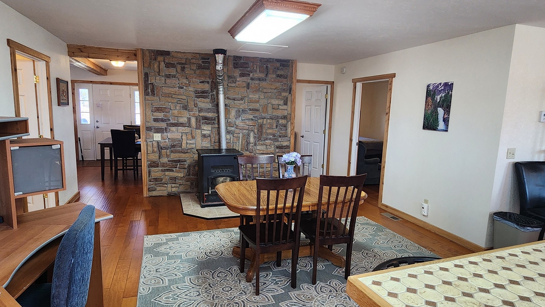 Great opportunity for rural living between Kalispell and Columbia Falls. Highway frontage visibility on Hwy 206 makes this a nice spot for a home based business. Single level living, comfortable home with 3 bed / 2 bath. Front and back decks offer nice mountain views on 2.16 level acres. There's a detached garage with one double space and two single bays on either side. Across the lawn to the west is an older storage building (dirt floor) that could use some TLC or one could tear down and have a great space to put in a new shop to suit your needs. No covenants and only scenic corridor zoning on this property.