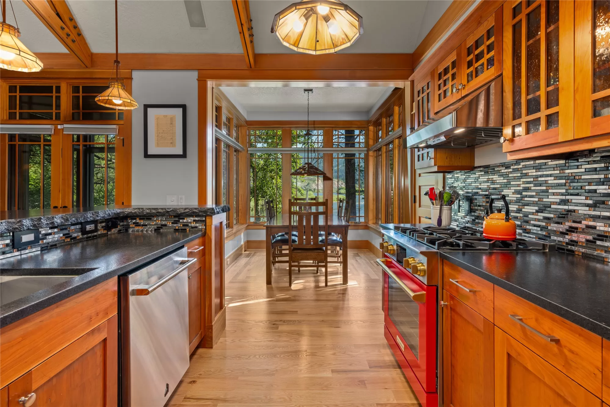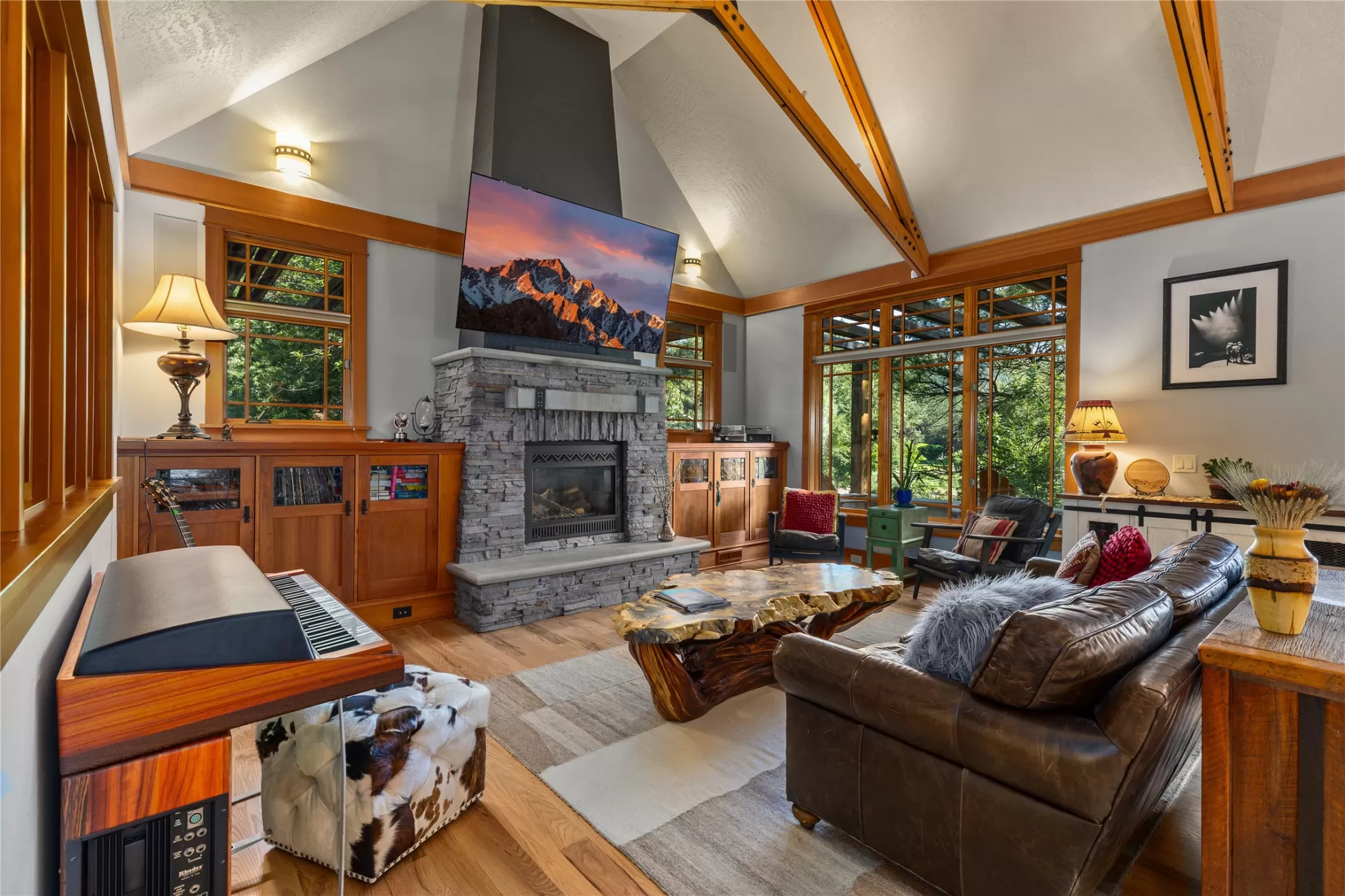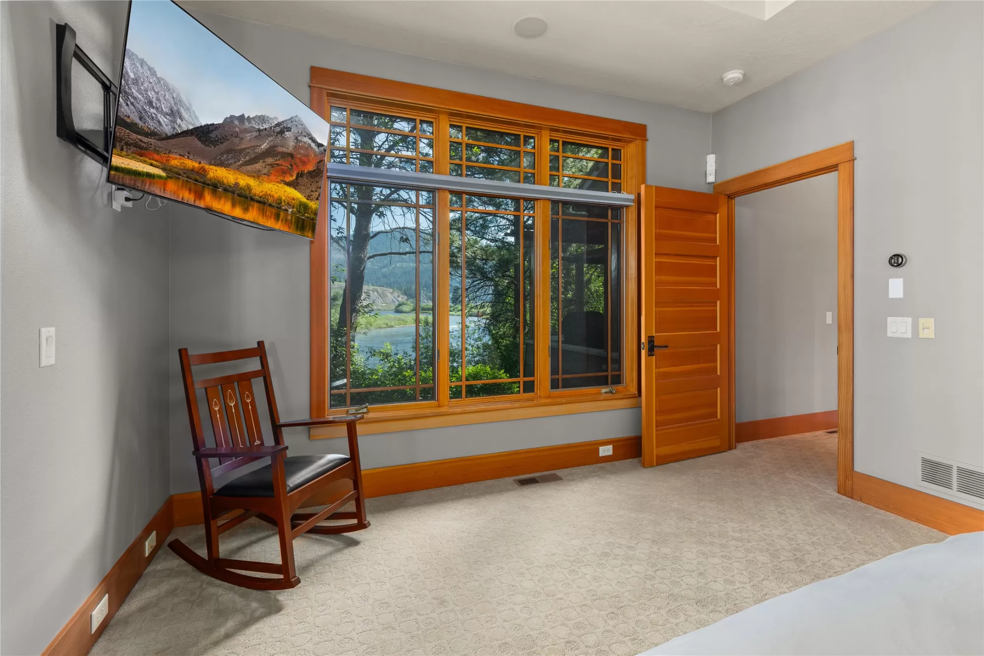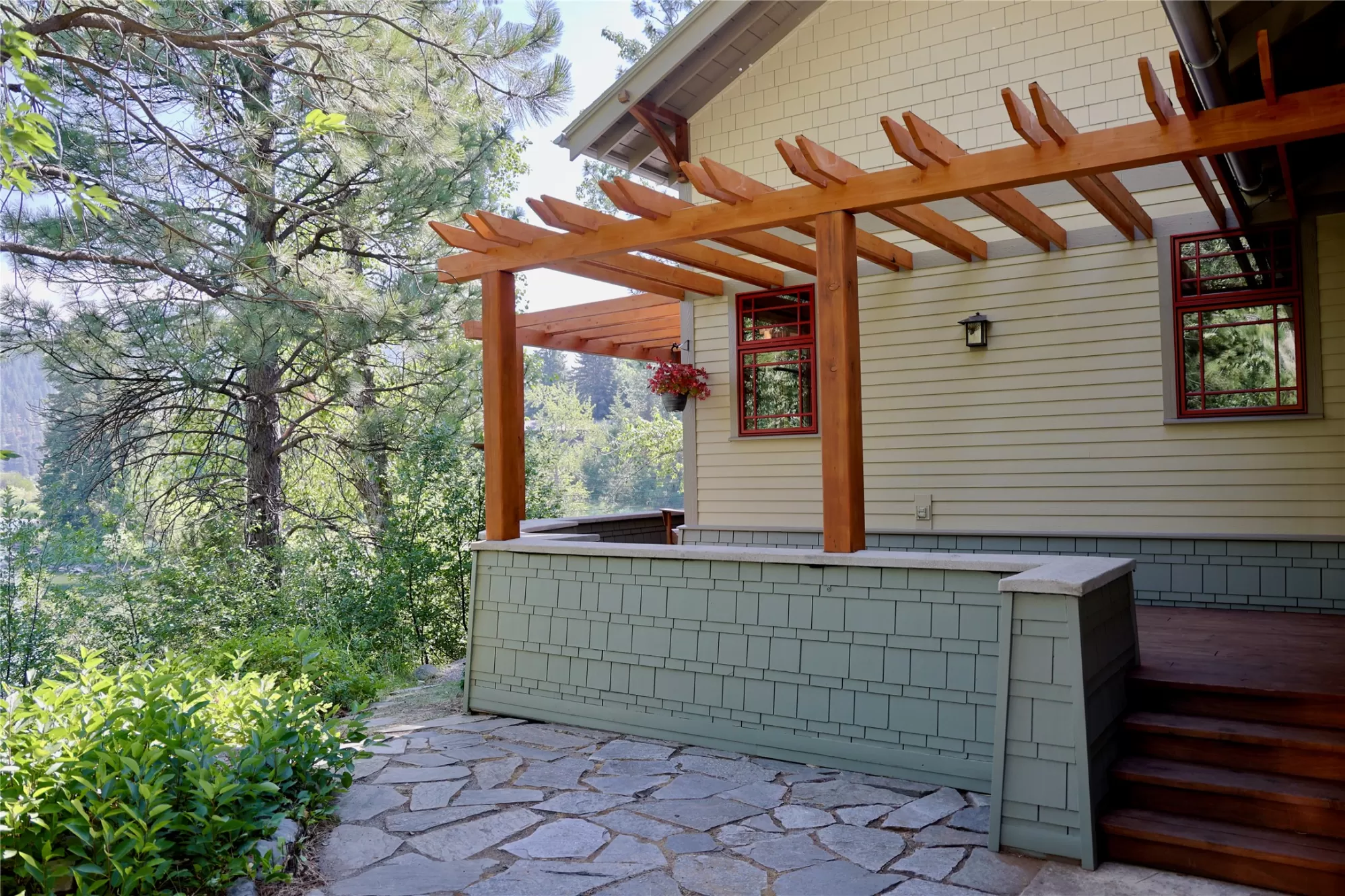 With more than 425 feet of frontage along the Clark Fork River, this exceptional 2.97-acre property offers the perfect blend of luxury and Montana living. Set on two legal parcels with sweeping mountain and river views from nearly every room, this private retreat is tucked away in a peaceful natural setting—yet just minutes from downtown Missoula, the KettleHouse Amphitheater, Canyon River Golf Course, and a vibrant culinary and cultural scene. The main residence is designed to highlight the beauty of its surroundings, with floor-to-ceiling windows and wood-framed interiors paired with durable metal-clad exteriors for lasting quality and timeless warmth. Inside, the home showcases a refined blend of natural materials including white oak hardwood floors, slate tile flooring, and vaulted ceilings with scissor trusses. A stunning natural stone gas fireplace anchors the living area, creating a cozy yet elegant atmosphere year-round. Custom cherry built-ins throughout the home provide functional beauty, offering elegant storage and display space in the living areas, hallway, and bedrooms. Stained glass details and quality finishes add a touch of artistry and character throughout. The chef’s kitchen is both stylish and highly functional, featuring high-end appliances, custom wood cabinetry, and a generous walk-in pantry with rich wood detailing. The open-concept layout flows into the dining area and a screened-in porch, both perfectly positioned to capture panoramic river views in every season. The home includes three bedrooms, two of which have ensuite bathrooms, offering privacy and comfort. An attached two-car garage adds convenience and room for gear to enjoy Montana’s recreational lifestyle. A separate 375 sq. ft. studio with a half bath and single-car garage provides flexible space for guests, a home office, or a creative retreat. Outside, the grounds are equally impressive with a fenced raised-bed garden, greenhouse, toolshed, and irrigation system with water rights—ideal for gardening and sustainable living. Whether you're savoring quiet mornings by the river, entertaining with views of the mountains, or heading out for an evening concert or a round of golf, 125 & 133 Deer Creek Road is more than just a home—it’s a private sanctuary that blends comfort, craftsmanship, and natural beauty in one of Missoula's most desirable settings.