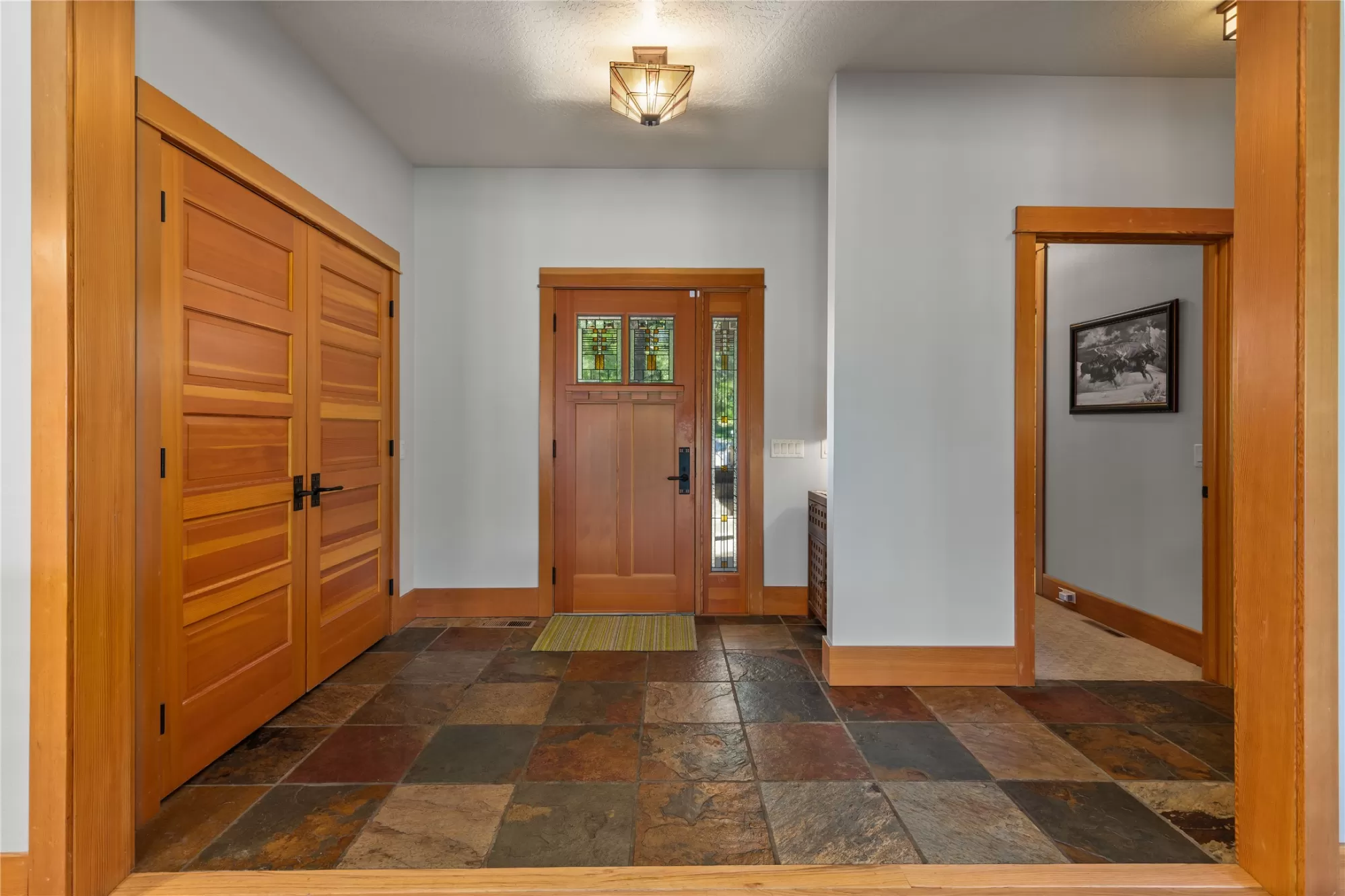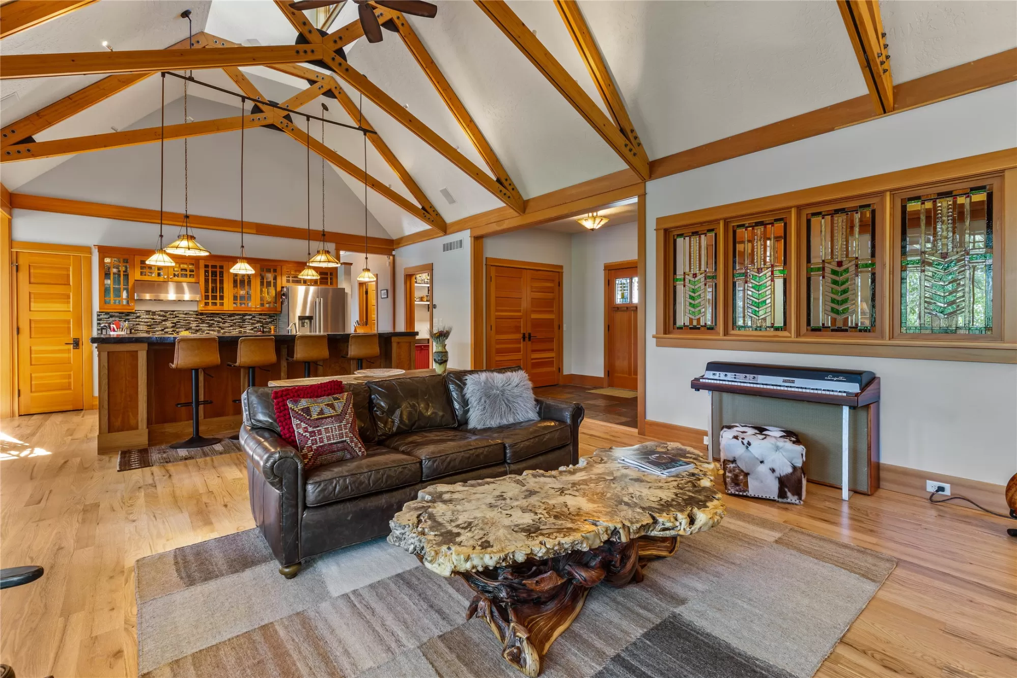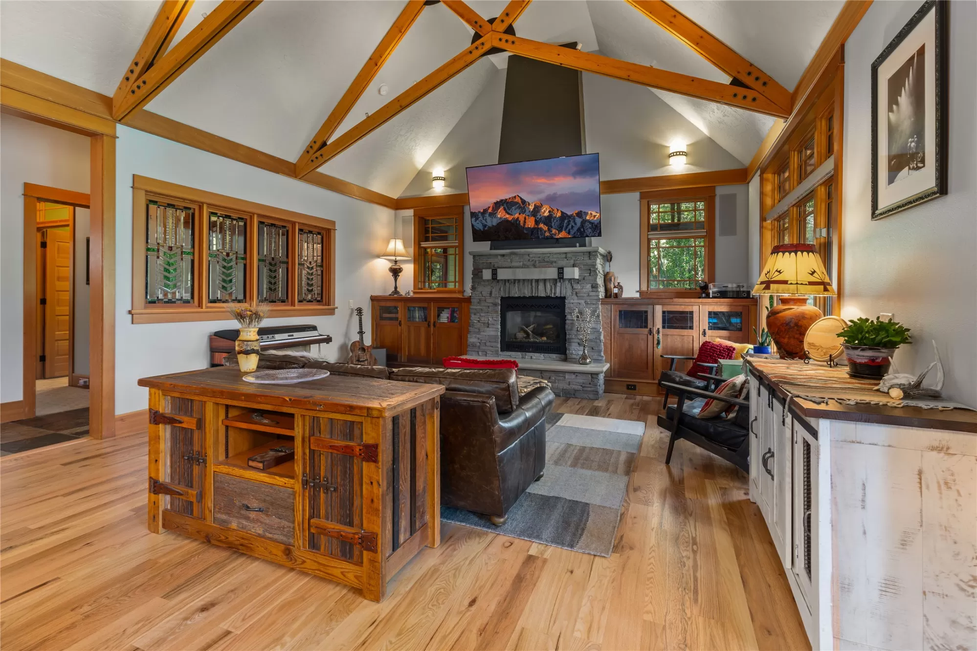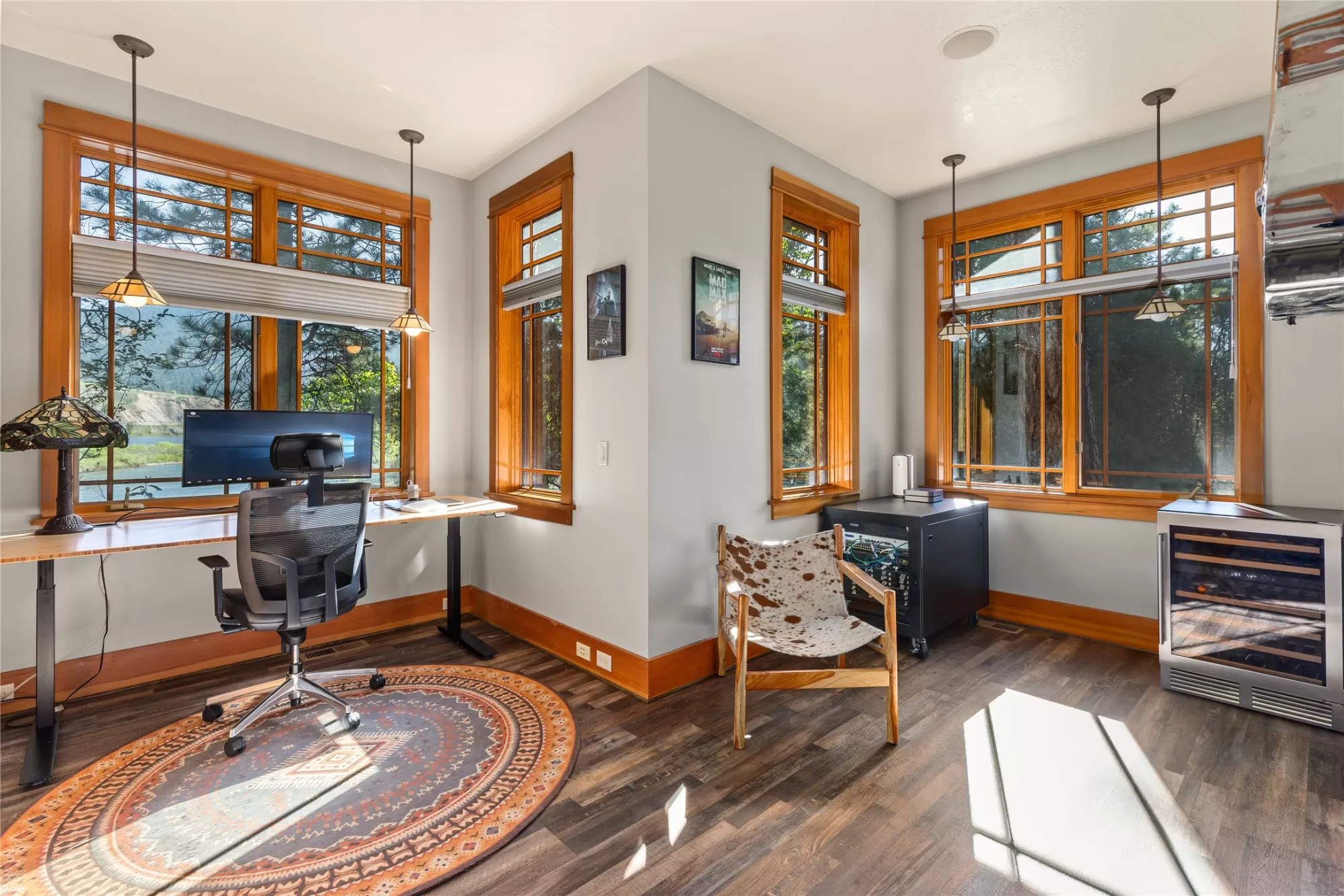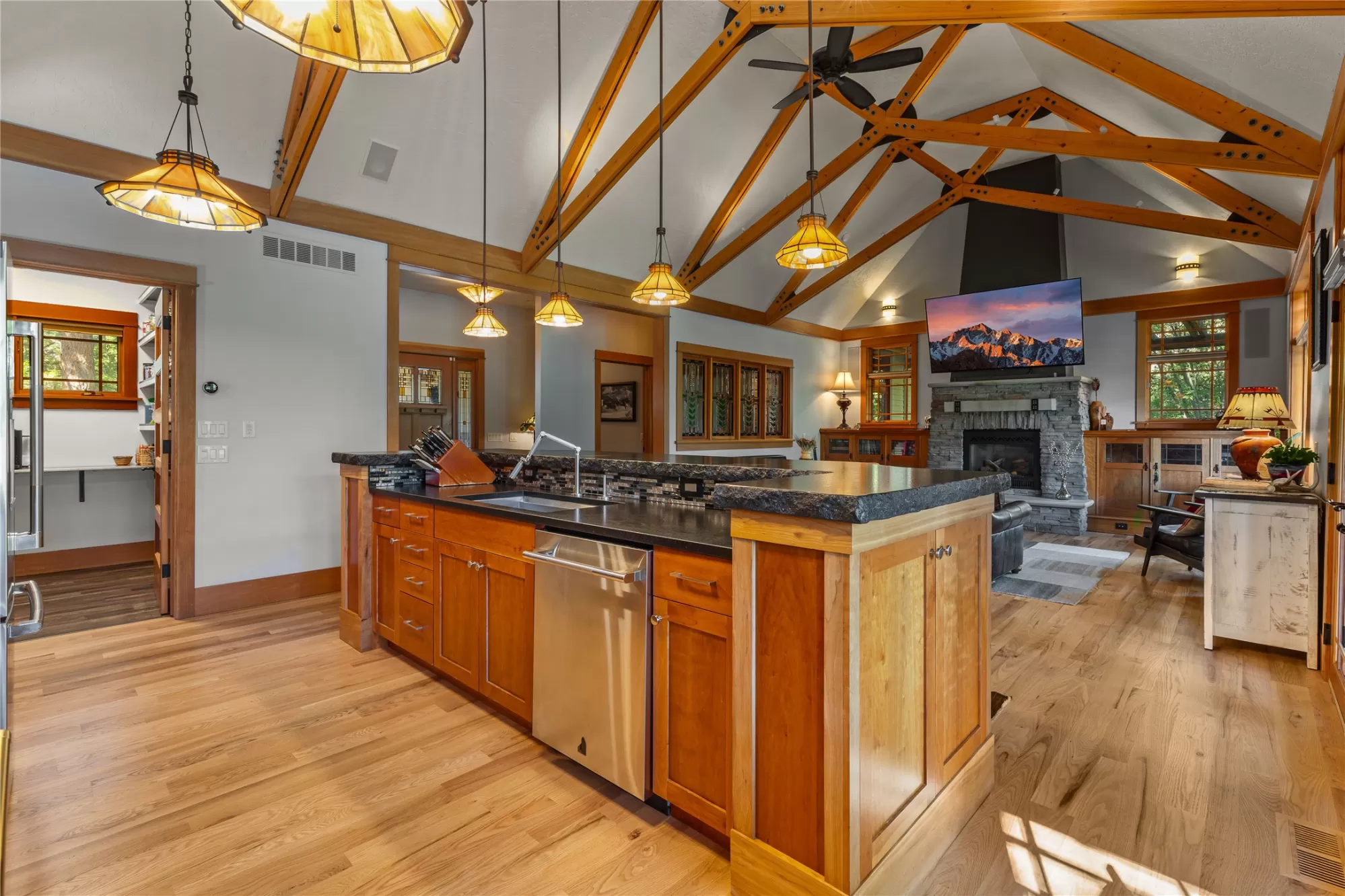 With more than 425 feet of frontage along the Clark Fork River, this exceptional 2.97-acre property offers the perfect blend of luxury and Montana living. Set on two legal parcels with sweeping mountain and river views from nearly every room, this private retreat is tucked away in a peaceful natural setting—yet just minutes from downtown Missoula, the KettleHouse Amphitheater, Canyon River Golf Course, and a vibrant culinary and cultural scene. The main residence is designed to highlight the beauty of its surroundings, with floor-to-ceiling windows and wood-framed interiors paired with durable metal-clad exteriors for lasting quality and timeless warmth. Inside, the home showcases a refined blend of natural materials including white oak hardwood floors, slate tile flooring, and vaulted ceilings with scissor trusses. A stunning natural stone gas fireplace anchors the living area, creating a cozy yet elegant atmosphere year-round. Custom cherry built-ins throughout the home provide functional beauty, offering elegant storage and display space in the living areas, hallway, and bedrooms. Stained glass details and quality finishes add a touch of artistry and character throughout. The chef’s kitchen is both stylish and highly functional, featuring high-end appliances, custom wood cabinetry, and a generous walk-in pantry with rich wood detailing. The open-concept layout flows into the dining area and a screened-in porch, both perfectly positioned to capture panoramic river views in every season. The home includes three bedrooms, two of which have ensuite bathrooms, offering privacy and comfort. An attached two-car garage adds convenience and room for gear to enjoy Montana’s recreational lifestyle. A separate 375 sq. ft. studio with a half bath and single-car garage provides flexible space for guests, a home office, or a creative retreat. Outside, the grounds are equally impressive with a fenced raised-bed garden, greenhouse, toolshed, and irrigation system with water rights—ideal for gardening and sustainable living. Whether you're savoring quiet mornings by the river, entertaining with views of the mountains, or heading out for an evening concert or a round of golf, 125 & 133 Deer Creek Road is more than just a home—it’s a private sanctuary that blends comfort, craftsmanship, and natural beauty in one of Missoula's most desirable settings.