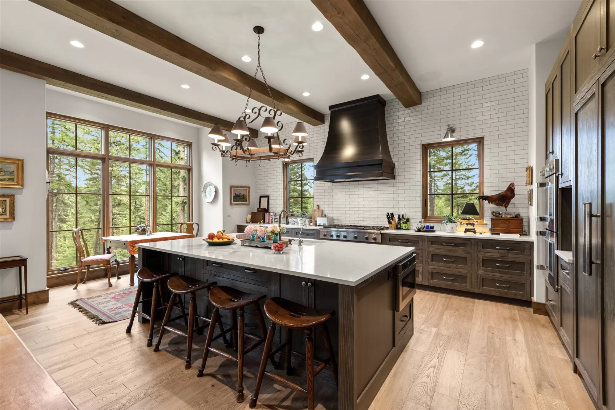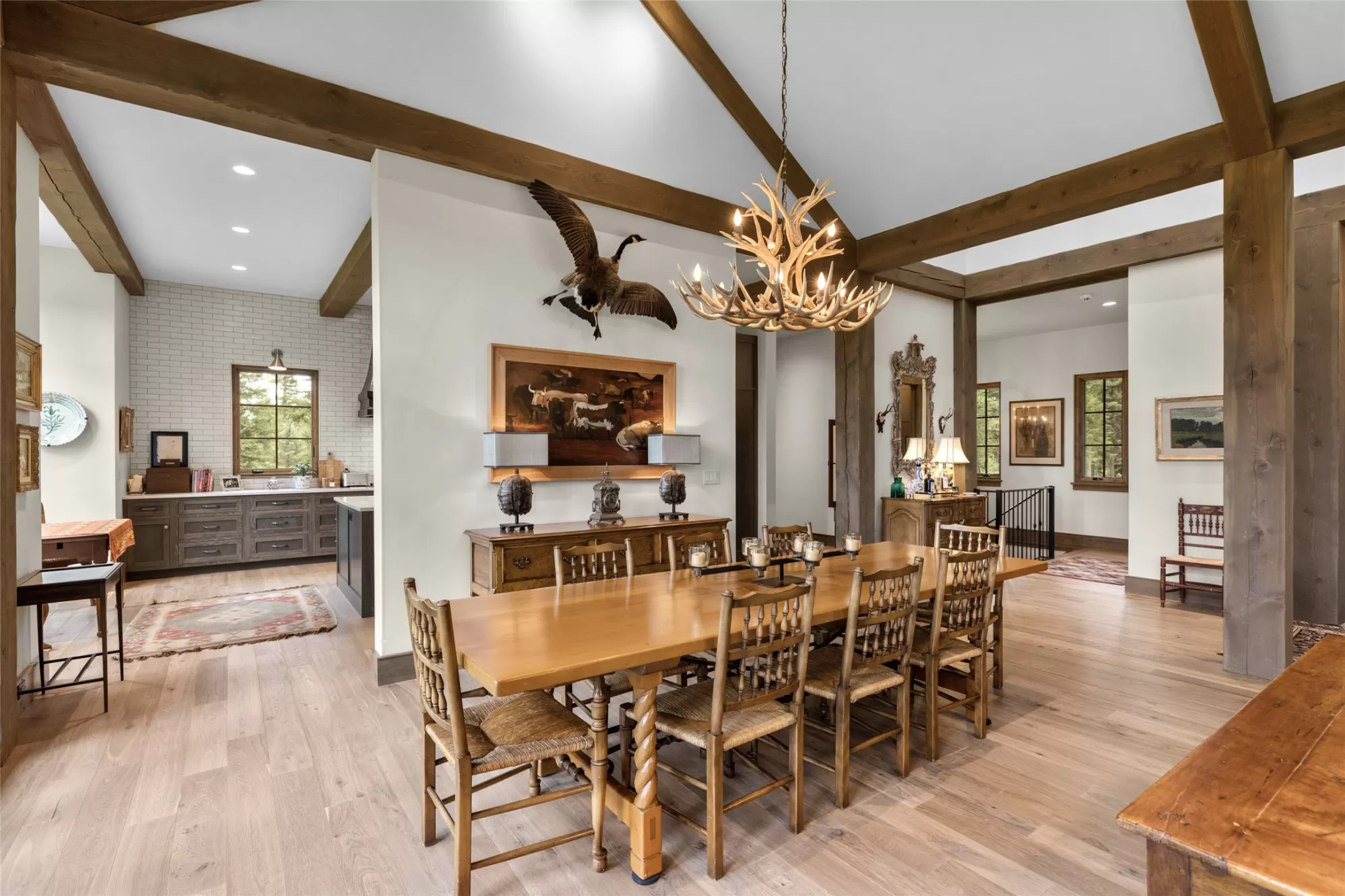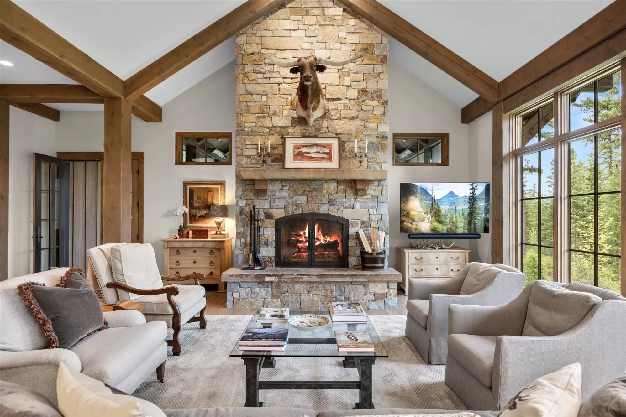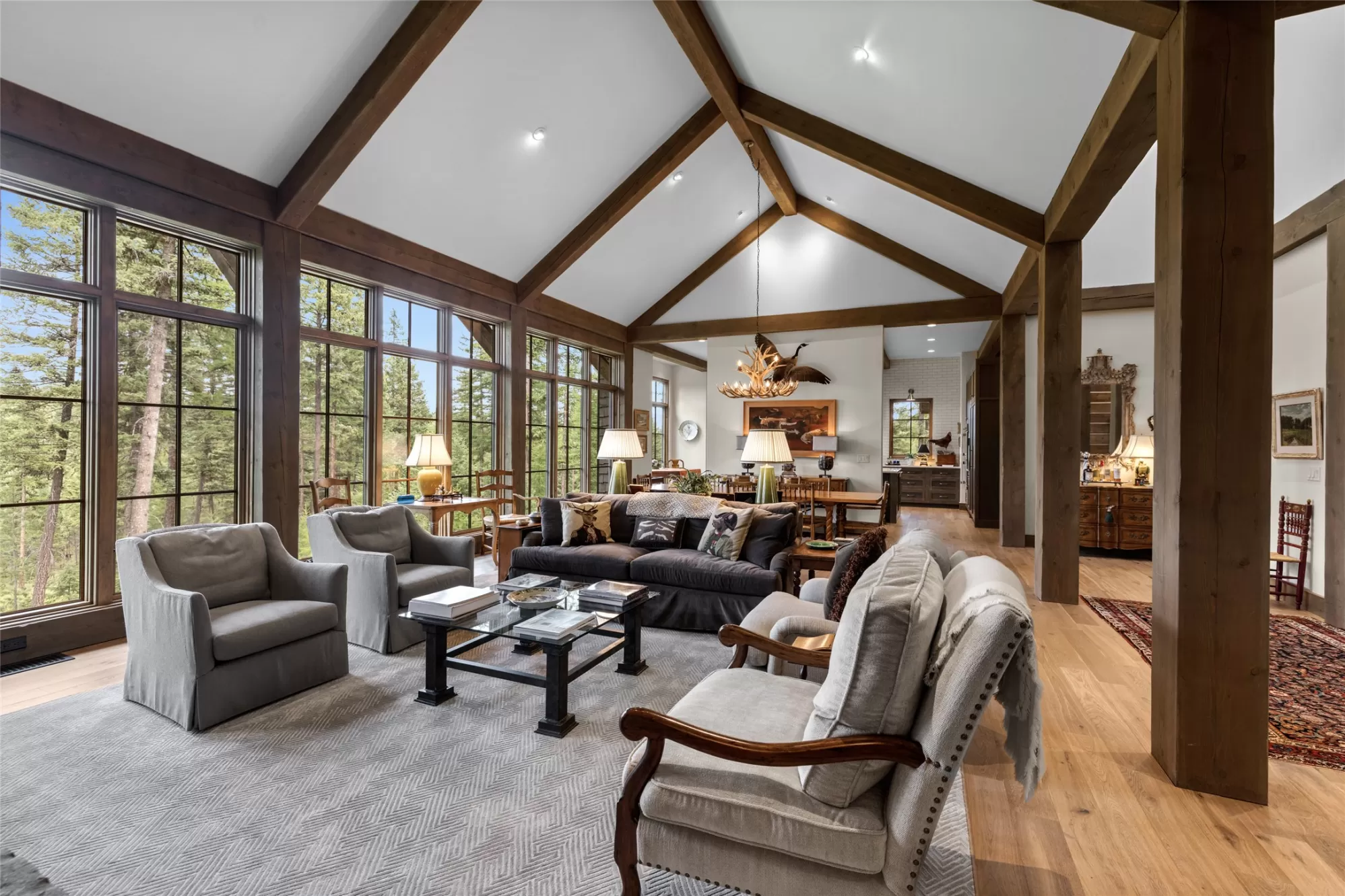 Inside the gated Whitefish Hills Community, this 20-acre estate has every feature needed to make your Montana life come true. The main house, built in 2021, provides abundant natural light stretching through 4,784-square-feet of living space with 4 bedrooms and 4.5 bathrooms. Every architectural detail is executed to the highest level of craftsmanship while maintaining a comfortable livability ready for your personal touches. The entryway features exposed beams that lead into the soaring ceiling of the connected living room, dining area and kitchen, where the cozy heart of the home welcomes you. The living room features a massive stone hearth fireplace accenting the floor-to-ceiling windows with impressive views of Big Mountain. The connected kitchen shares the Big Mountain view and has a subtle and timeless design. Thermador appliances, a central island, ample storage and a butler’s pantry create this true chef’s kitchen. The main floor’s primary suite features a walk-in closet and dressing room, and a spa-like ensuite with dual sinks, walk-in shower, soaker tub, water closet and vanity. The main floor also has a powder room, laundry room, and mudroom with access to the two-car attached garage complete with a dog wash station. Also on the main floor is one of the best features of the home, a connected screened-in porch that extends your indoor-outdoor living capabilities with heaters for the winter and fans for the summer. Enjoy all of Montana’s distinct seasons in comfort. Downstairs on the lower level you’ll find three ensuite bedrooms all with equally impressive north-facing views. There is a bonus living area, ample storage space, and an executive office with a full glass wall, providing both views and privacy. This level leads out to a stone patio and landscaped yard, further extending the livable space of this impressive home. A separate massive three-car garage and shop complement this property and provides space for cars, toys and equipment. A true mechanic’s workplace, the shop has 10-foot doors, oversized ceilings, is plumbed for compressed air, wired for 240V electricity, has on-demand hot water, and a mechanical lift installed for taking heavy items to the loft. This garage also has dual carports on either side with outdoor water and electric hookups, adding to the storage potential for your outdoor adventures. A network of trails around the perimeter of this private 20-acre property ties to the Whitefish Hills community trail system where miles of equestrian and Nordic skiing adventures are at your fingertips. Access to adjacent state lands and the Blanchard Lake homeowner’s park are just a few of the extra amenities that come with this serene mountain retreat, a true Montana adventure with the comforts of luxury living. This coveted neighborhood is just 3 miles north of Whitefish Lake Golf Club and Grouse Mountain tennis courts, and just 4 miles from the vibrant restaurants, shops, and arts district of downtown Whitefish. With Whitefish Lake and Whitefish Mountain Resort just minutes away, the best of Northwest Montana’s premier resort town is at your fingertips.