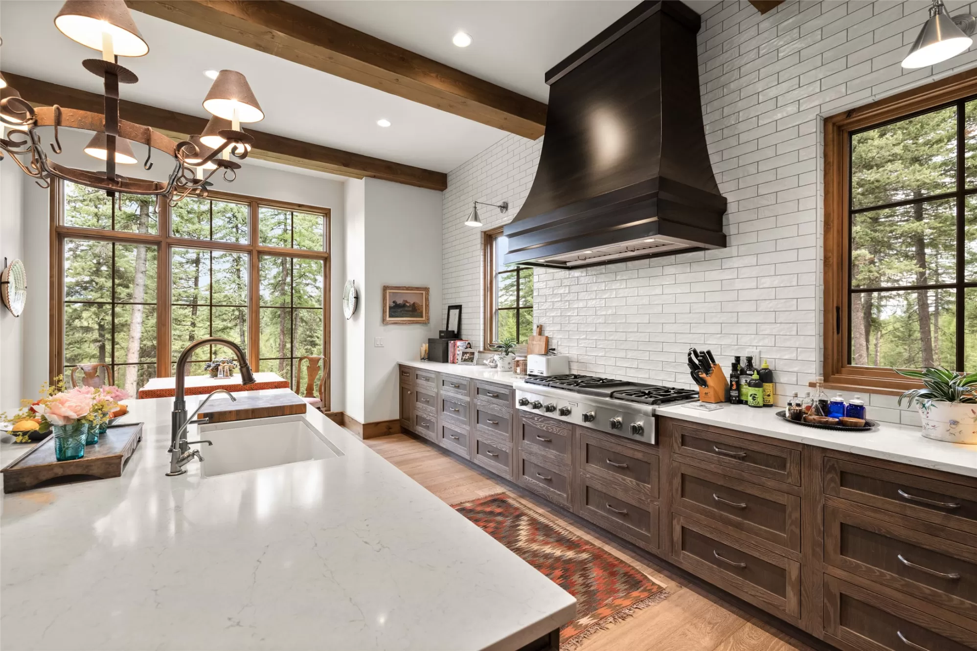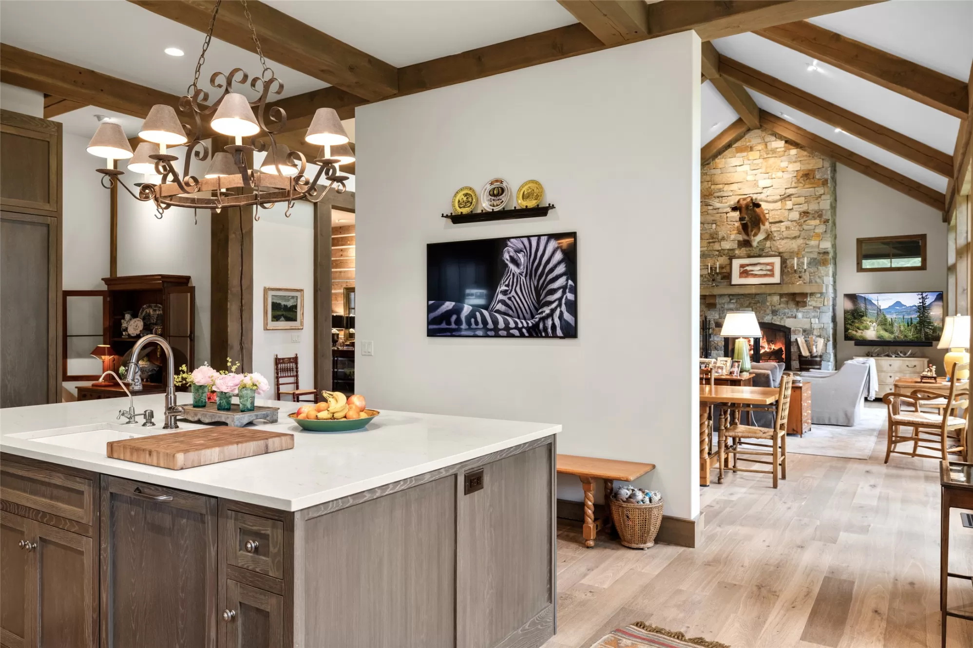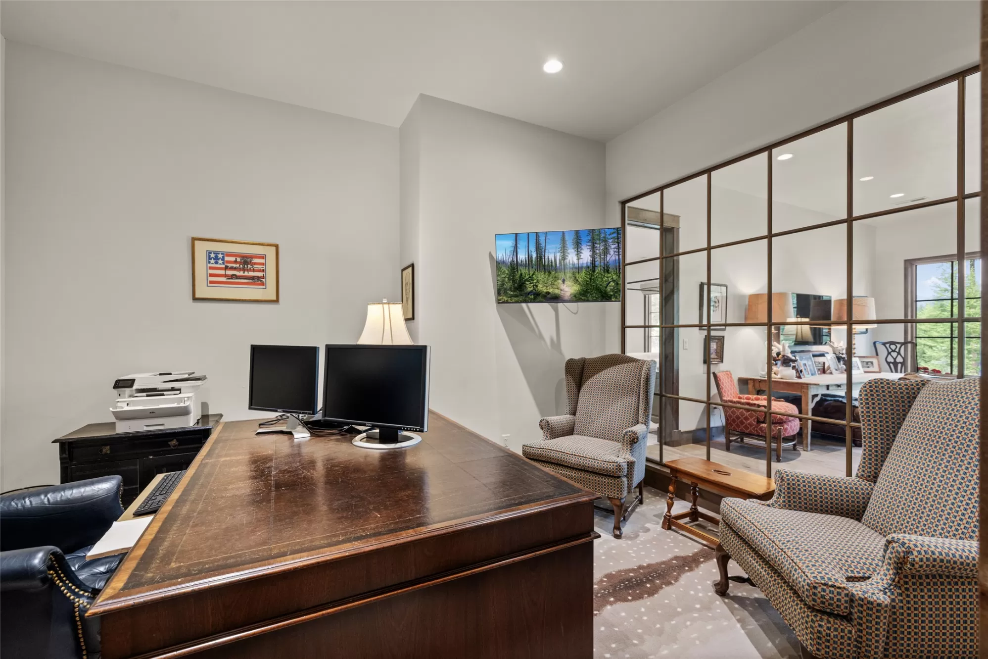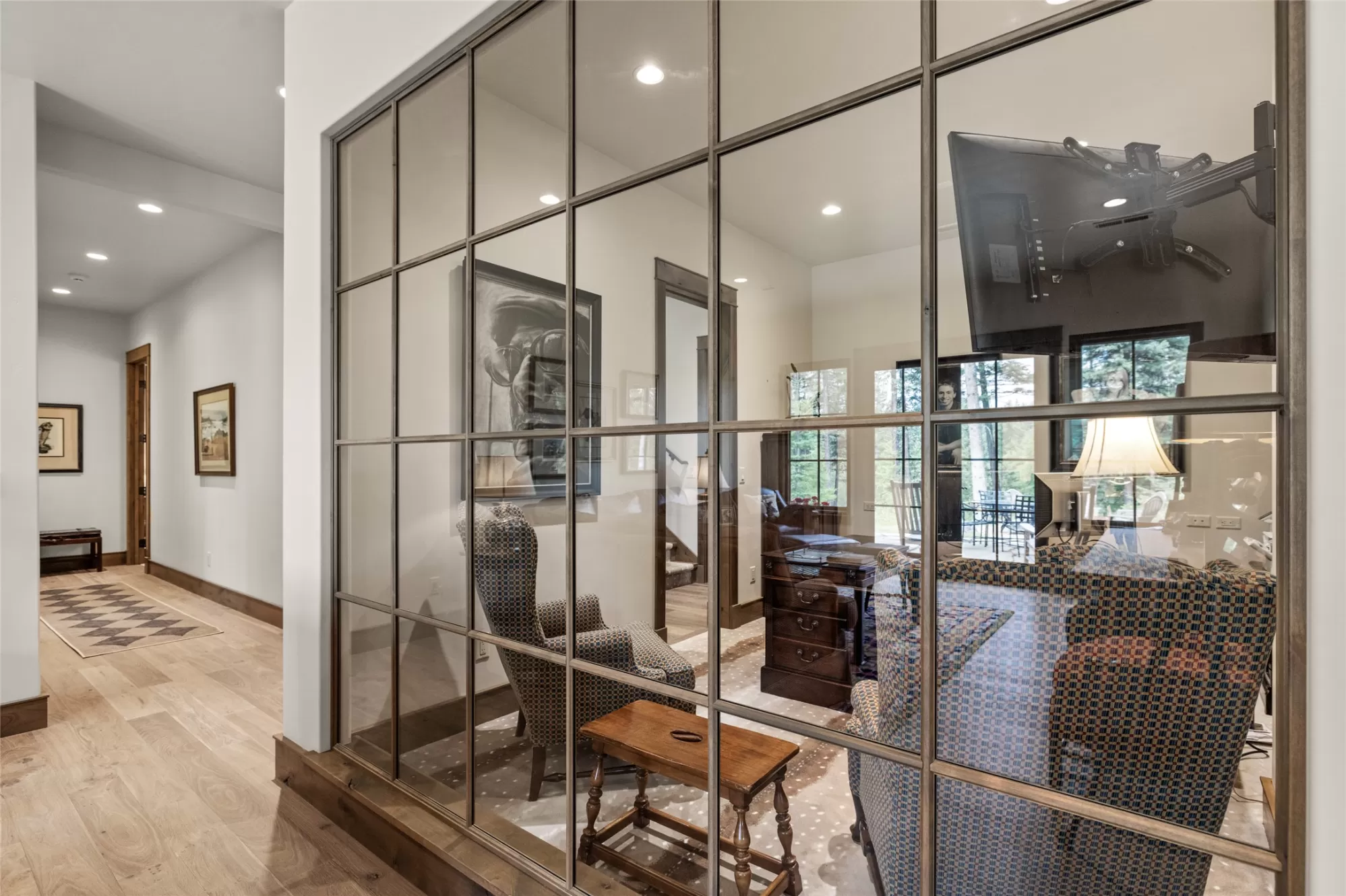 Inside the gated Whitefish Hills Community, this 20-acre estate has every feature needed to make your Montana life come true. The main house, built in 2021, provides abundant natural light stretching through 4,784-square-feet of living space with 4 bedrooms and 4.5 bathrooms. Every architectural detail is executed to the highest level of craftsmanship while maintaining a comfortable livability ready for your personal touches. The entryway features exposed beams that lead into the soaring ceiling of the connected living room, dining area and kitchen, where the cozy heart of the home welcomes you. The living room features a massive stone hearth fireplace accenting the floor-to-ceiling windows with impressive views of Big Mountain. The connected kitchen shares the Big Mountain view and has a subtle and timeless design. Thermador appliances, a central island, ample storage and a butler’s pantry create this true chef’s kitchen. The main floor’s primary suite features a walk-in closet and dressing room, and a spa-like ensuite with dual sinks, walk-in shower, soaker tub, water closet and vanity. The main floor also has a powder room, laundry room, and mudroom with access to the two-car attached garage complete with a dog wash station. Also on the main floor is one of the best features of the home, a connected screened-in porch that extends your indoor-outdoor living capabilities with heaters for the winter and fans for the summer. Enjoy all of Montana’s distinct seasons in comfort. Downstairs on the lower level you’ll find three ensuite bedrooms all with equally impressive north-facing views. There is a bonus living area, ample storage space, and an executive office with a full glass wall, providing both views and privacy. This level leads out to a stone patio and landscaped yard, further extending the livable space of this impressive home. A separate massive three-car garage and shop complement this property and provides space for cars, toys and equipment. A true mechanic’s workplace, the shop has 10-foot doors, oversized ceilings, is plumbed for compressed air, wired for 240V electricity, has on-demand hot water, and a mechanical lift installed for taking heavy items to the loft. This garage also has dual carports on either side with outdoor water and electric hookups, adding to the storage potential for your outdoor adventures. A network of trails around the perimeter of this private 20-acre property ties to the Whitefish Hills community trail system where miles of equestrian and Nordic skiing adventures are at your fingertips. Access to adjacent state lands and the Blanchard Lake homeowner’s park are just a few of the extra amenities that come with this serene mountain retreat, a true Montana adventure with the comforts of luxury living. This coveted neighborhood is just 3 miles north of Whitefish Lake Golf Club and Grouse Mountain tennis courts, and just 4 miles from the vibrant restaurants, shops, and arts district of downtown Whitefish. With Whitefish Lake and Whitefish Mountain Resort just minutes away, the best of Northwest Montana’s premier resort town is at your fingertips.