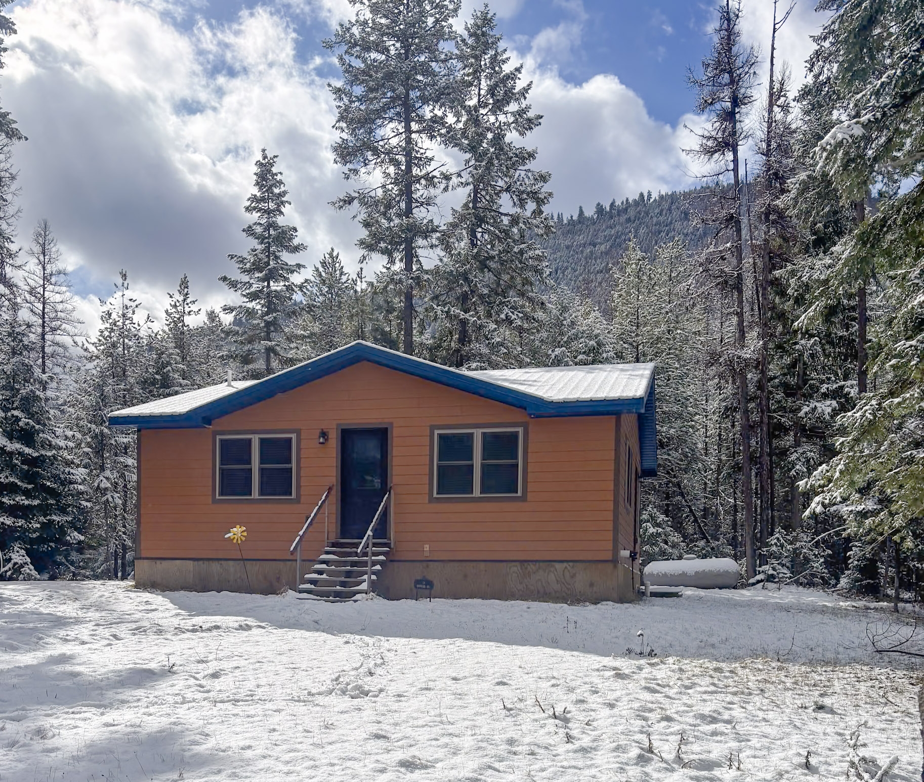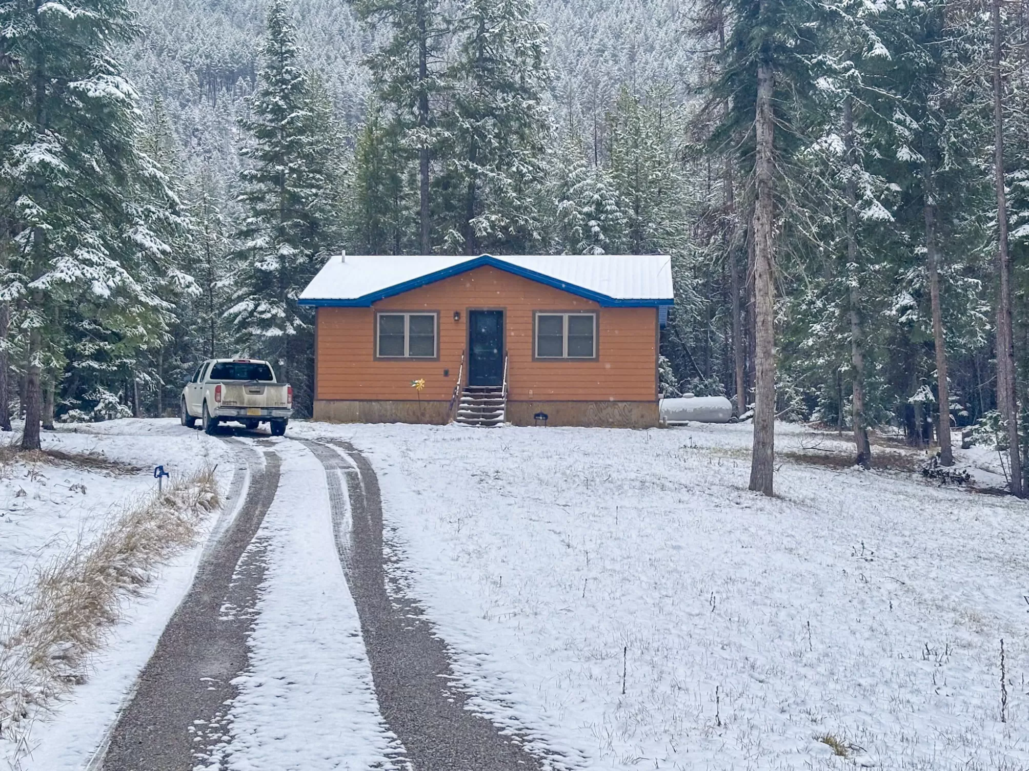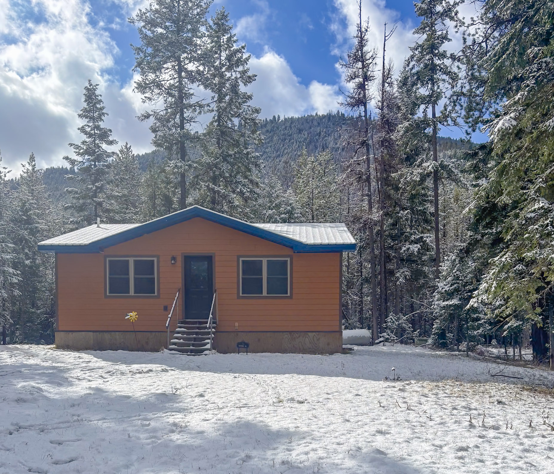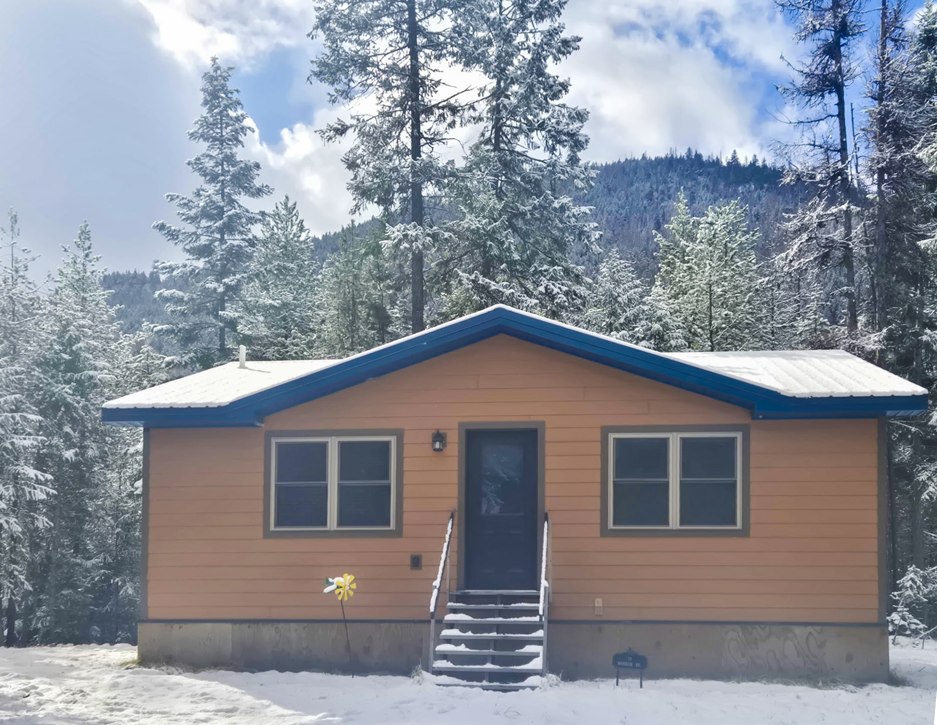 Location, Location, Location! 5 miles from the gorgeous town of Thompson Falls, Montana, & situated near the back of a .5 acre lot in Woodside Park, sits this quaint, custom Riverside Cabins 2 bedroom, 1 bath home. Designed by Big Sky Custom Home Design & built in Vaughn, Montana. Walk into the open great room floor plan between a lovely shaker cabinet kitchen and a well-lit living room. A luxury cabin feel exudes from the tongue & groove pine on the walls & ceiling. Practical wood laminate flooring, perfect for pets & the Montana lifestyle. Quality trim & solid six-panel doors. Rinnai propane, direct-vent heater. Down a small hall with a pantry closet are two nice bedrooms separated by a full bath. The staircase to the unfinished basement is off of the living room. Lower level has high ceilings, two window wells, a Rinnai on-demand hot water heater & laundry area. There is plumbing for a bath for your expansion. National Forest & the high bridge are not far, for recreation. Dry Creek Road takes you to thousands of acres of National Forest, with a challenging bike ride or run along Dry Creek up a scenic draw. You wind through the National Forest and meet deer, elk and turkeys, not to mention seeing eagles and other majestic wildlife. This location is great for a short commute to Thompson Falls, either walking across the high bridge above the Clark Fork River to the island between the wings of the dam or driving the lovely county roads over Dry Creek, then Prospect Creek. What a scenic commute. Welcome home.