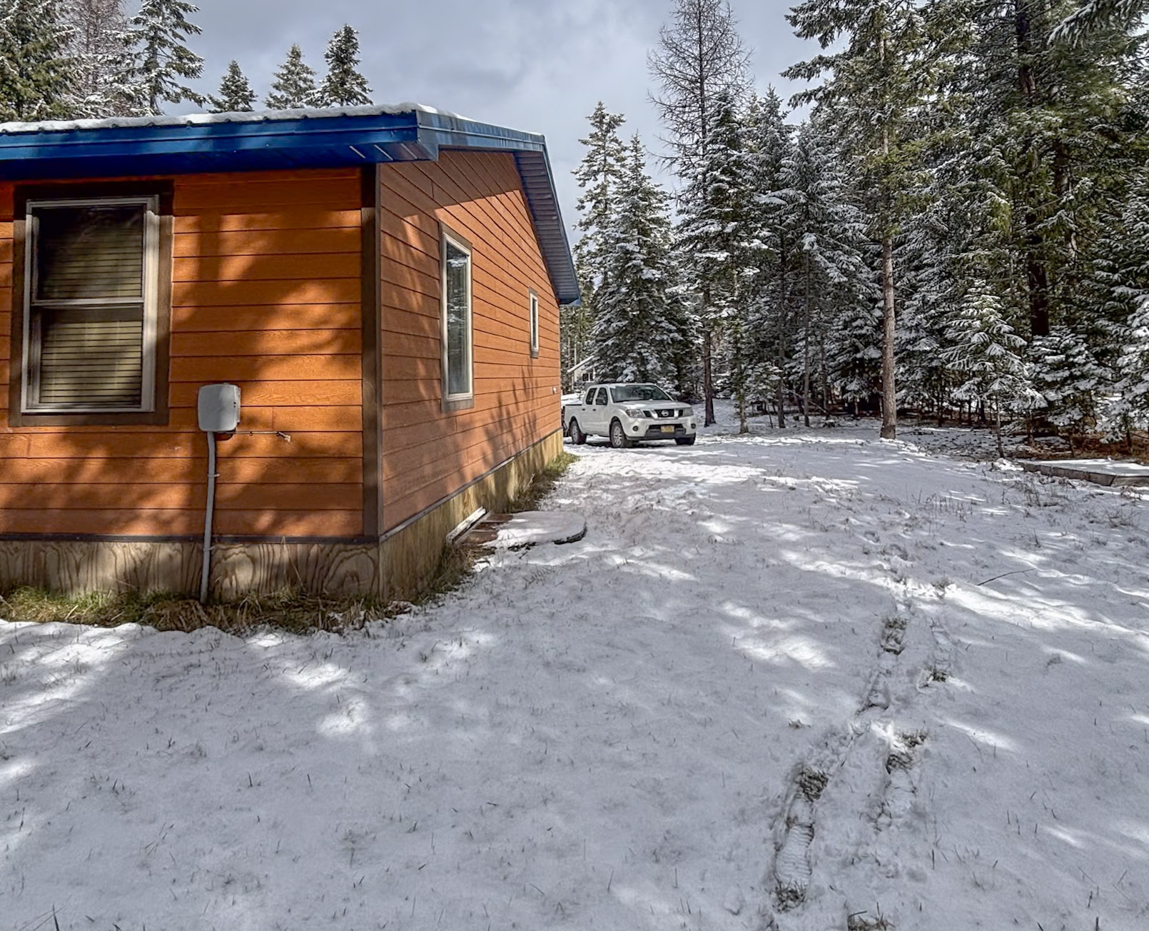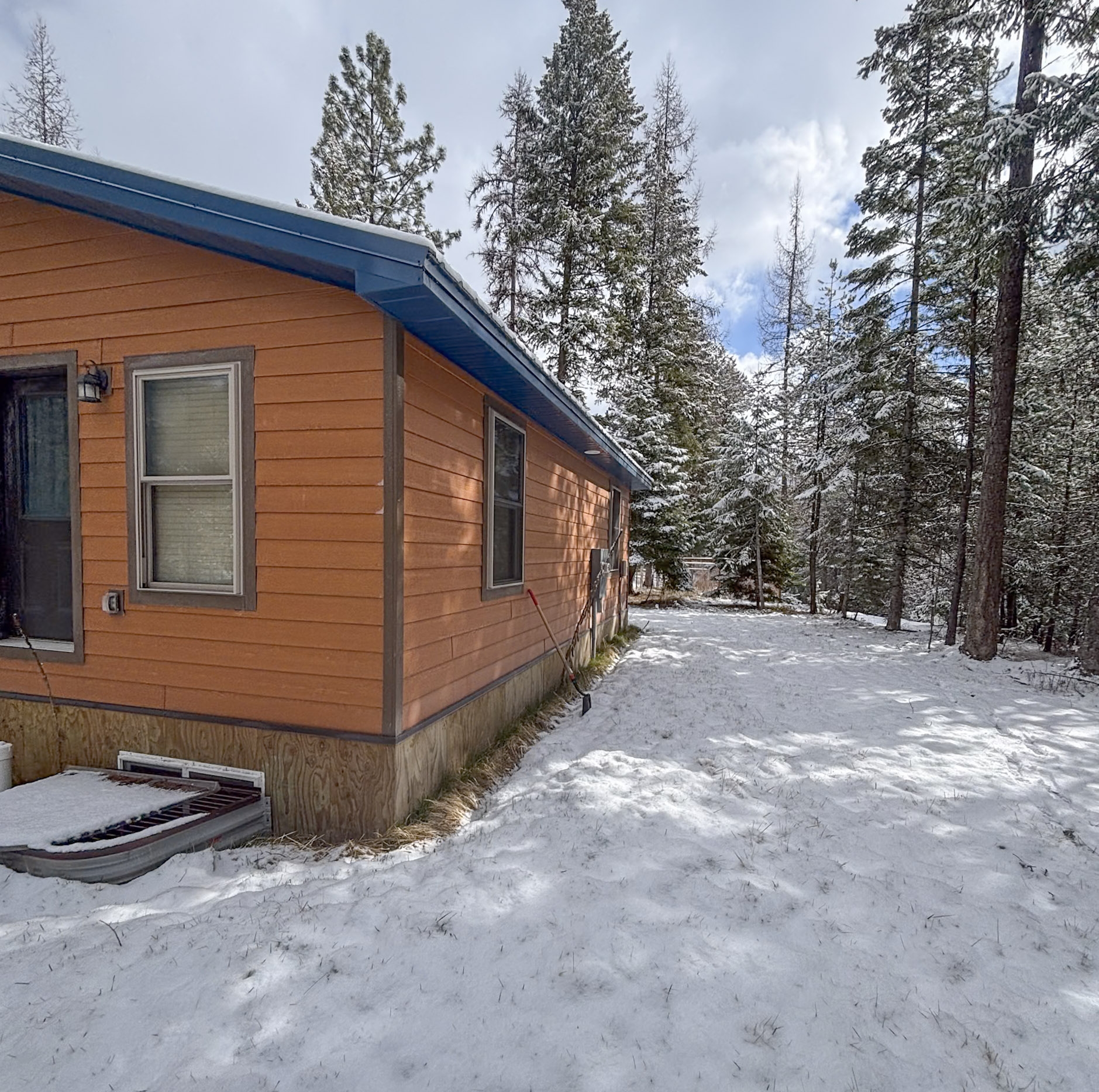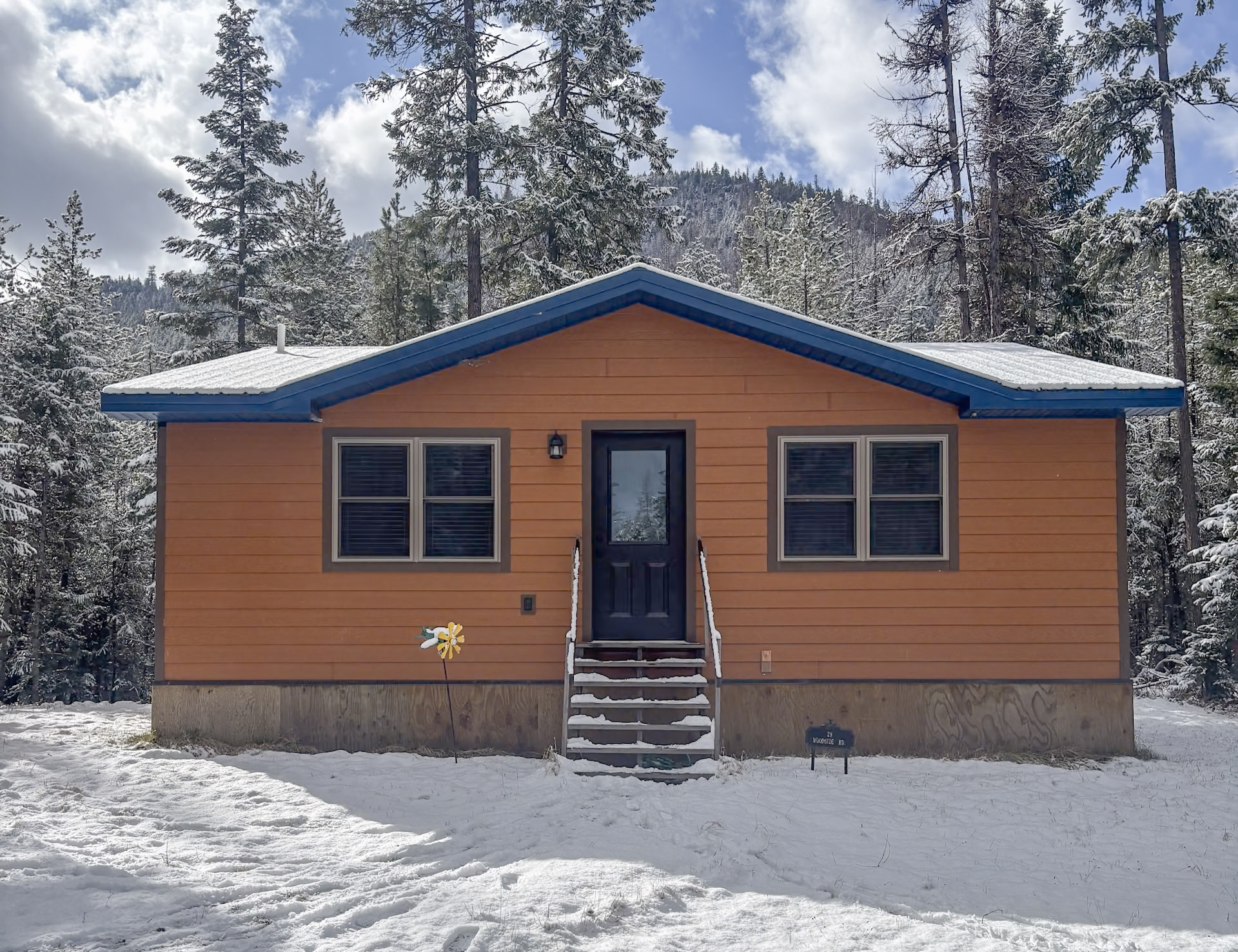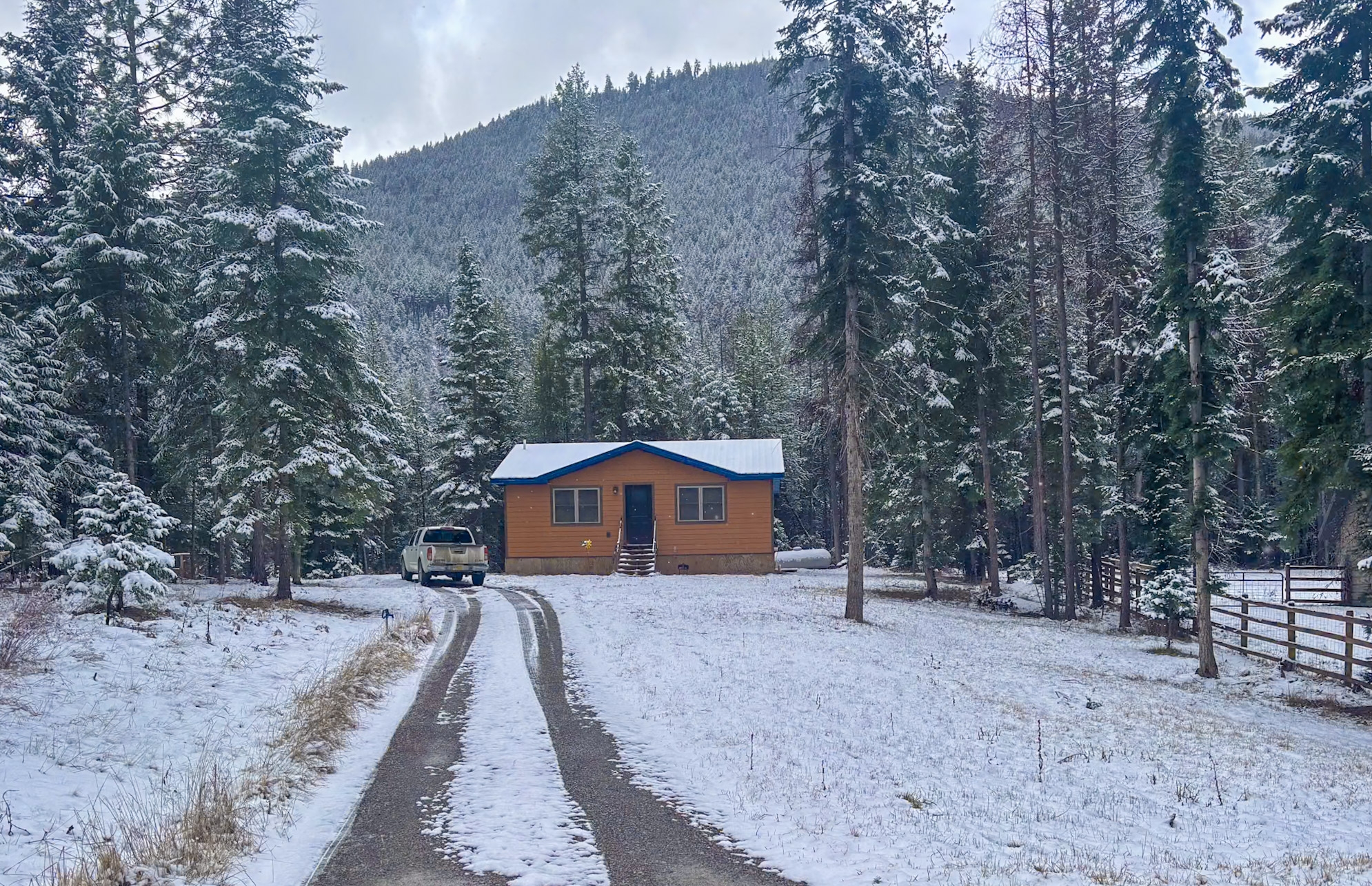 Location, Location, Location! 5 miles from the gorgeous town of Thompson Falls, Montana, & situated near the back of a .5 acre lot in Woodside Park, sits this quaint, custom Riverside Cabins 2 bedroom, 1 bath home. Designed by Big Sky Custom Home Design & built in Vaughn, Montana. Walk into the open great room floor plan between a lovely shaker cabinet kitchen and a well-lit living room. A luxury cabin feel exudes from the tongue & groove pine on the walls & ceiling. Practical wood laminate flooring, perfect for pets & the Montana lifestyle. Quality trim & solid six-panel doors. Rinnai propane, direct-vent heater. Down a small hall with a pantry closet are two nice bedrooms separated by a full bath. The staircase to the unfinished basement is off of the living room. Lower level has high ceilings, two window wells, a Rinnai on-demand hot water heater & laundry area. There is plumbing for a bath for your expansion. National Forest & the high bridge are not far, for recreation. Dry Creek Road takes you to thousands of acres of National Forest, with a challenging bike ride or run along Dry Creek up a scenic draw. You wind through the National Forest and meet deer, elk and turkeys, not to mention seeing eagles and other majestic wildlife. This location is great for a short commute to Thompson Falls, either walking across the high bridge above the Clark Fork River to the island between the wings of the dam or driving the lovely county roads over Dry Creek, then Prospect Creek. What a scenic commute. Welcome home.