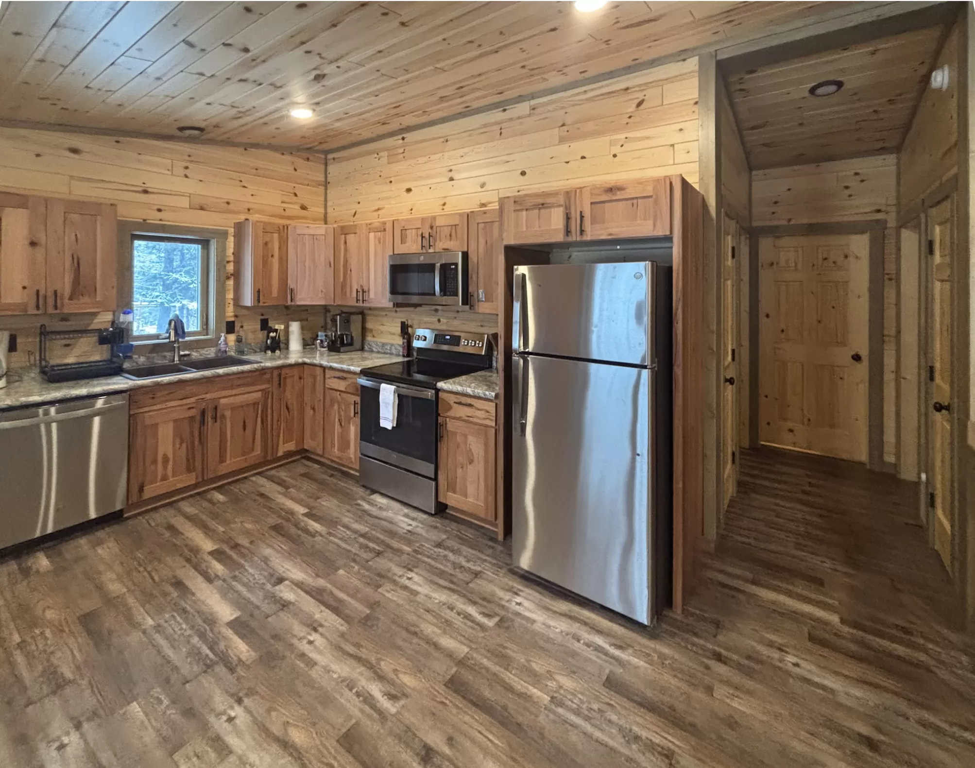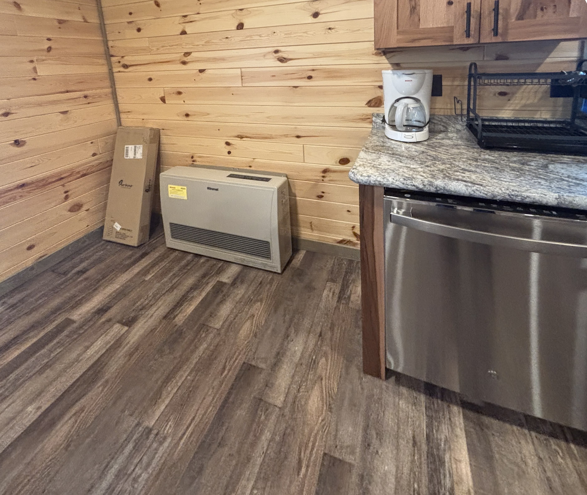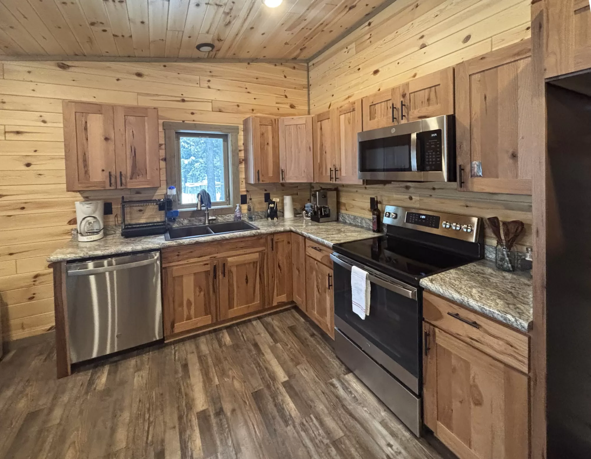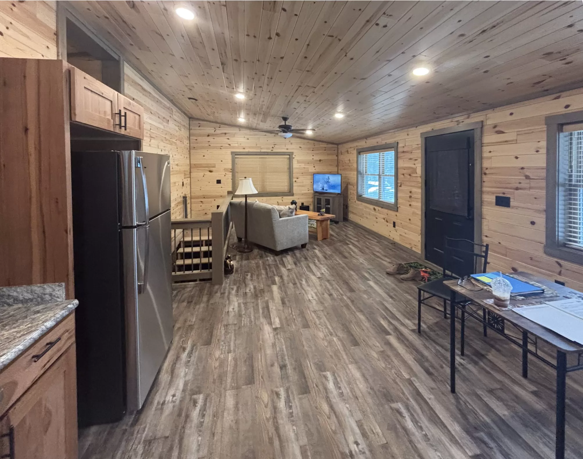 Location, Location, Location! 5 miles from the gorgeous town of Thompson Falls, Montana, & situated near the back of a .5 acre lot in Woodside Park, sits this quaint, custom Riverside Cabins 2 bedroom, 1 bath home. Designed by Big Sky Custom Home Design & built in Vaughn, Montana. Walk into the open great room floor plan between a lovely shaker cabinet kitchen and a well-lit living room. A luxury cabin feel exudes from the tongue & groove pine on the walls & ceiling. Practical wood laminate flooring, perfect for pets & the Montana lifestyle. Quality trim & solid six-panel doors. Rinnai propane, direct-vent heater. Down a small hall with a pantry closet are two nice bedrooms separated by a full bath. The staircase to the unfinished basement is off of the living room. Lower level has high ceilings, two window wells, a Rinnai on-demand hot water heater & laundry area. There is plumbing for a bath for your expansion. National Forest & the high bridge are not far, for recreation. Dry Creek Road takes you to thousands of acres of National Forest, with a challenging bike ride or run along Dry Creek up a scenic draw. You wind through the National Forest and meet deer, elk and turkeys, not to mention seeing eagles and other majestic wildlife. This location is great for a short commute to Thompson Falls, either walking across the high bridge above the Clark Fork River to the island between the wings of the dam or driving the lovely county roads over Dry Creek, then Prospect Creek. What a scenic commute. Welcome home.