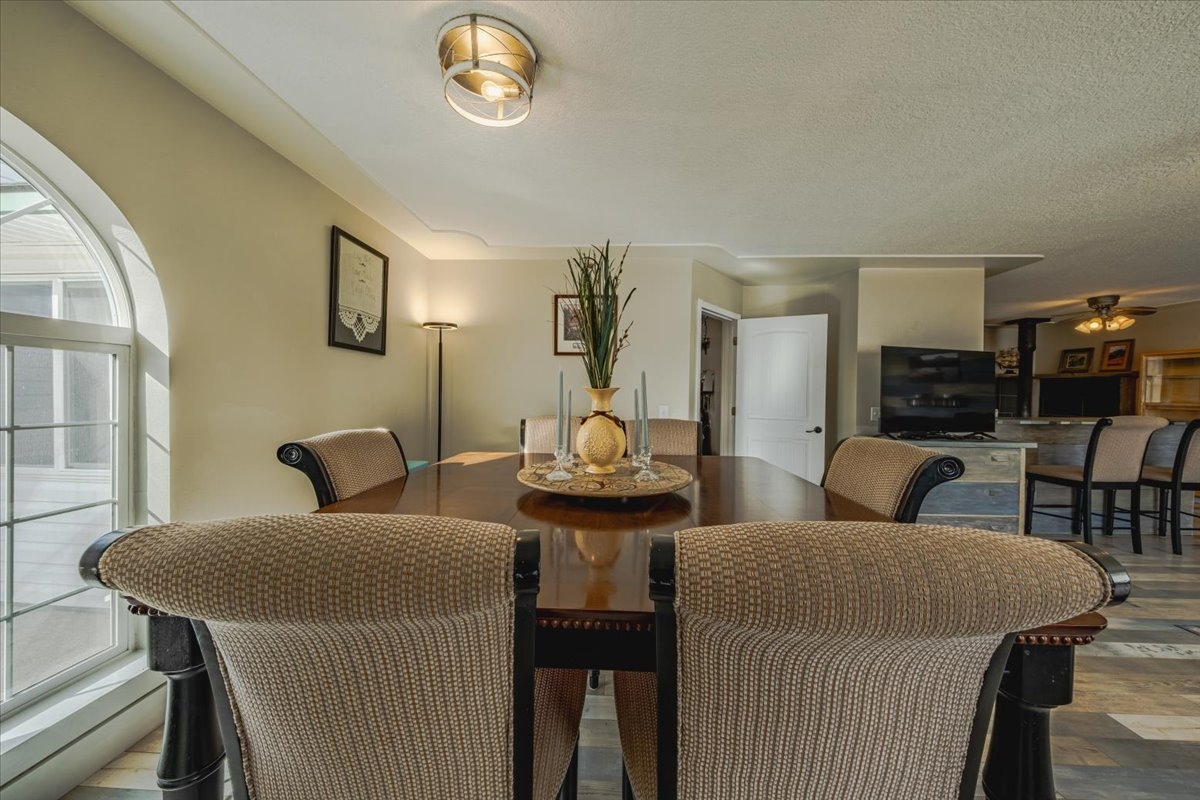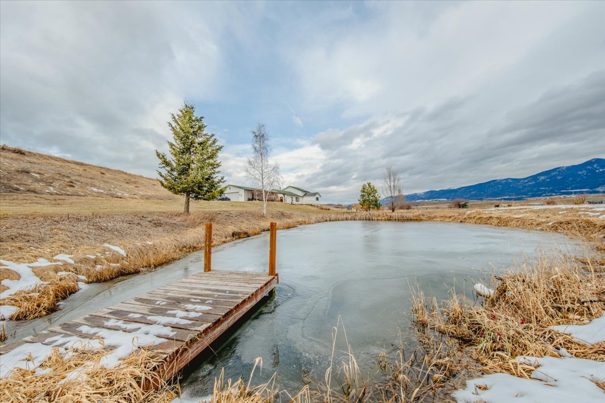 Tucked just outside the heart of Eureka, this beautiful 3-bedroom, 3-bath home offers the perfect balance of privacy, comfort, and Montana charm. Designed with everyday living and entertaining in mind, the open-concept kitchen and living area create a warm and inviting central gathering space—the true heart of the home. The spacious primary suite serves as a peaceful retreat, complete with its own luxurious bathroom designed for comfort and relaxation. A bonus room currently set up as a fitness space also features a private sauna, creating the perfect spot to unwind after a long day of enjoying everything Northwest Montana has to offer. Step outside and take in the setting from the covered porches, where breathtaking mountain views stretch across the horizon. The property itself is truly special, featuring a year-round creek running through the land and feeding a naturally refreshed pond with flowing water that keeps it clear and vibrant. A hot tub sits under the covered porch and conveys with the home. It looks right out at a sweeping mountain view! Opportunities like this don’t come along often. A property with water, views, and privacy this close to town is truly rare.