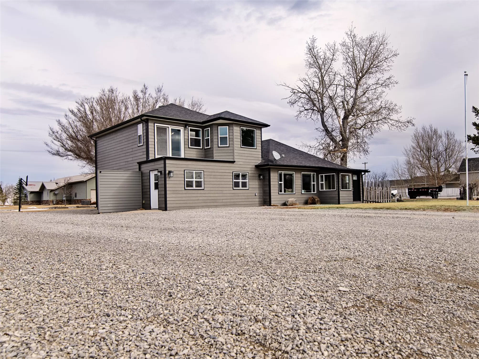 Discover convenience and comfort with this four bedroom, 2 bath home located in the Valier, MT community. Situated on two lots, this home is within easy reach of Lake Francis and magnificent views of the Rocky Mountains. This spacious home has been updated by the owner, who is a well known area contractor Beautiful new hardwood flooring and fresh paint. New windows througout bring natural light into the home. The expansive master suite provides a private retreat on the upper level featuring a generous walk-in closet, and upper deck for those evening sunsets. This home offers a "fourth bedroom" but can also be converted into a laundry room on the main floor. The home has attractive LPL Smart lock siding. Large gravel driveway for plenty of room to park an RV for off season. An additional city lot is included with this sale and complete with all utilities and a two car garage. This lot has potential for a passive income.This home/lot and additional lot can be divided. If a party is interested in just the home, the asking price is $480,000. If a party is just interested in the lot with all utilities established , the sale price is $80,000. The package deal is a bargain! The fishing is great so this home won't last long!