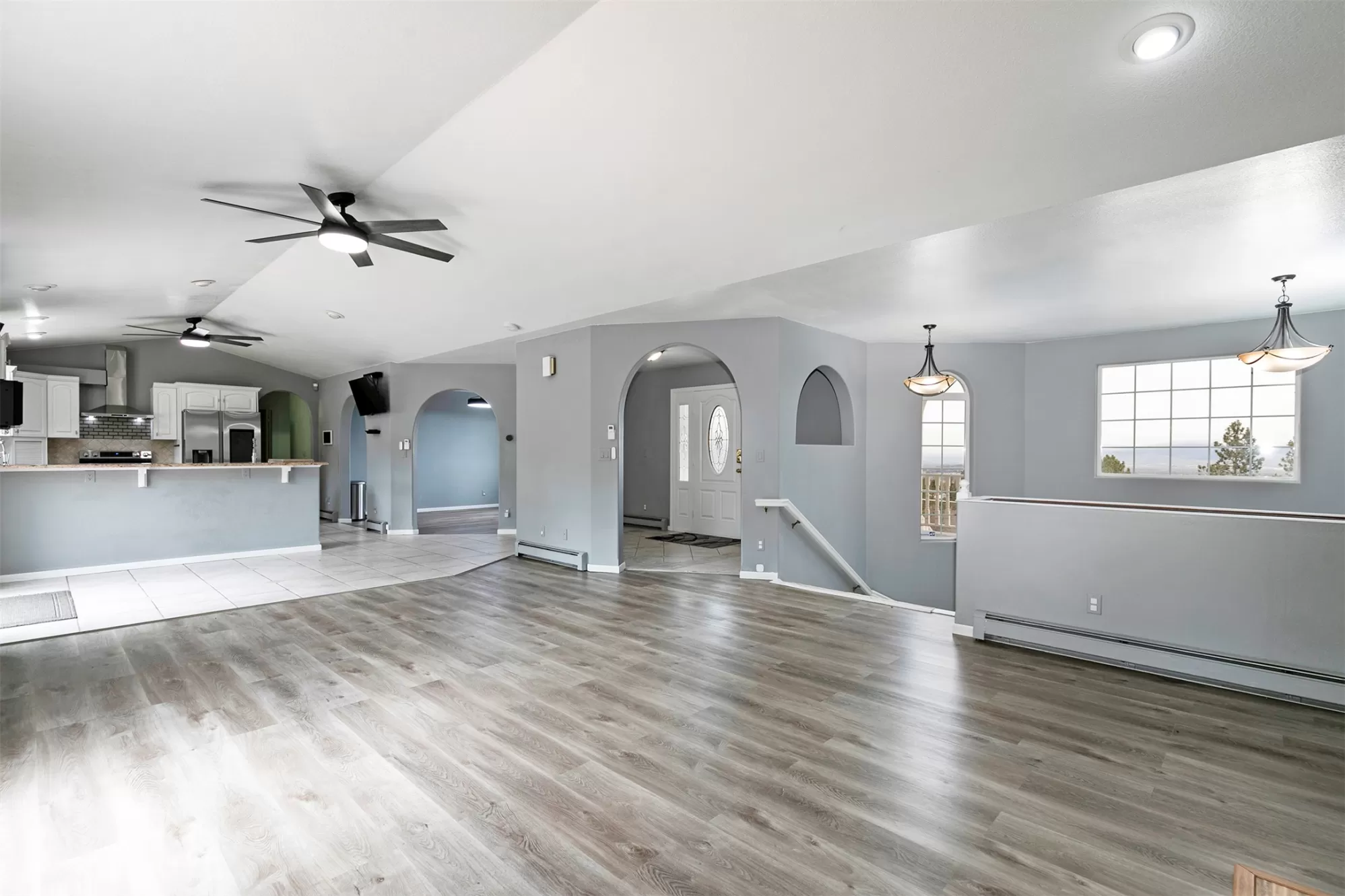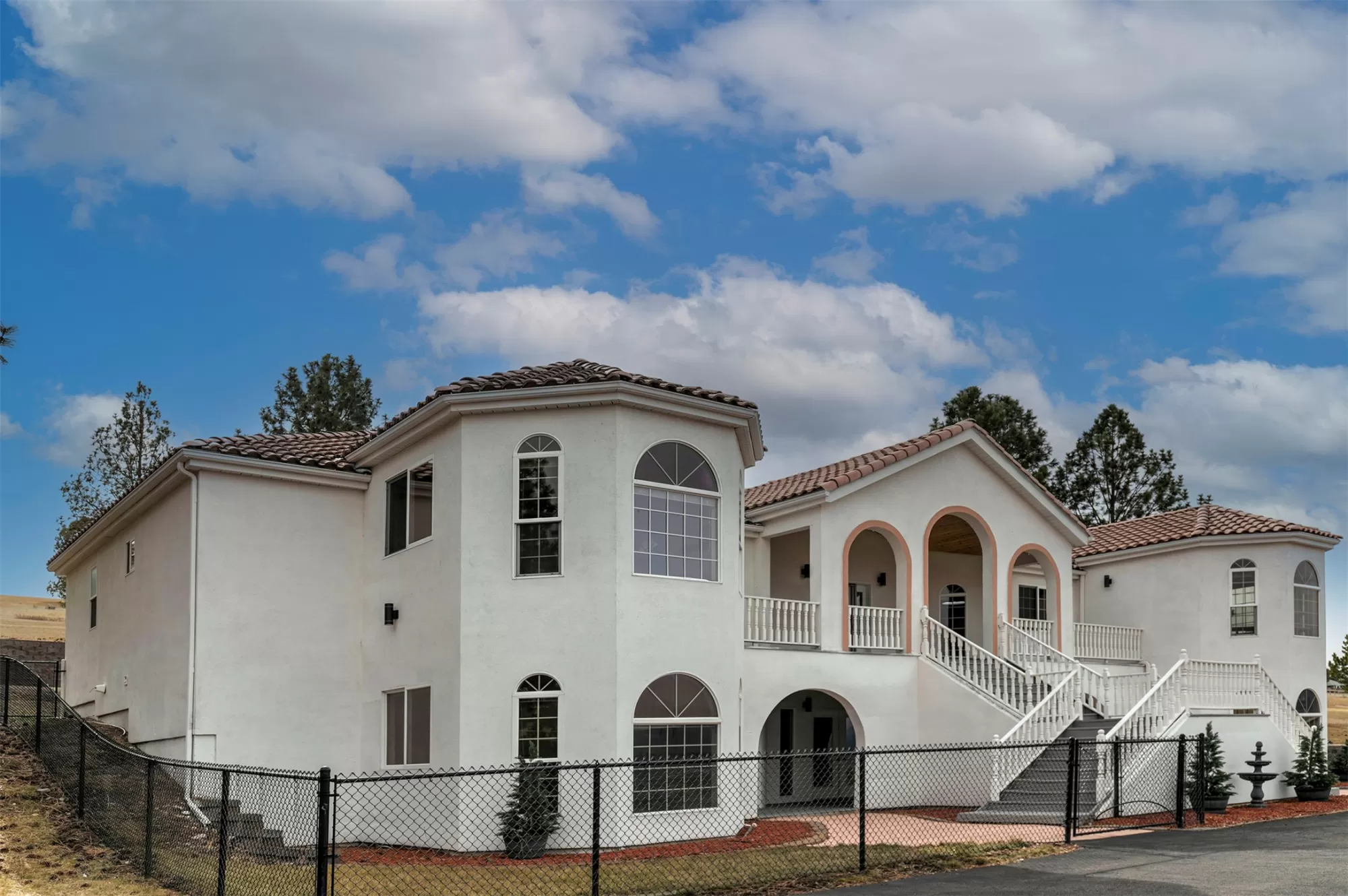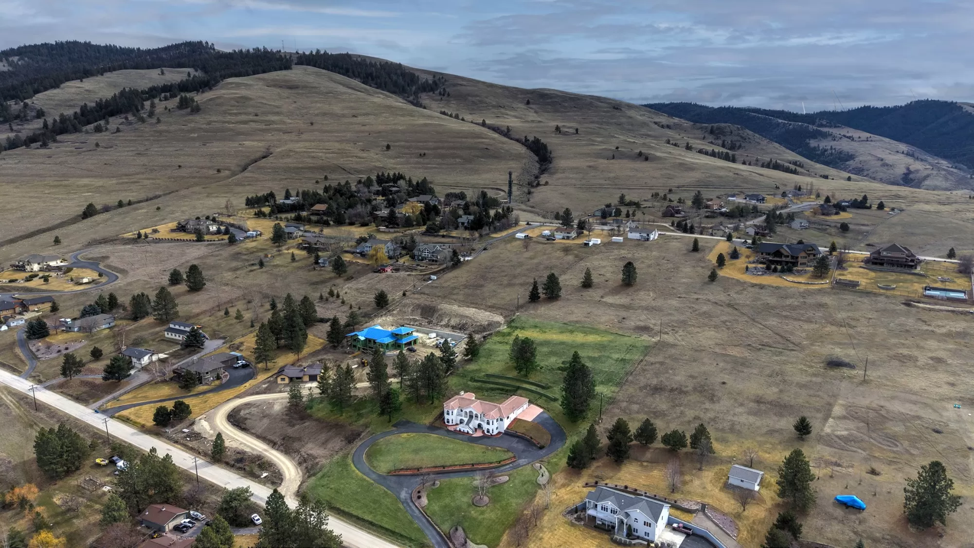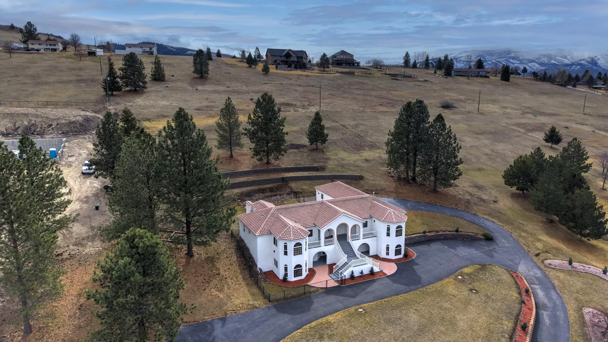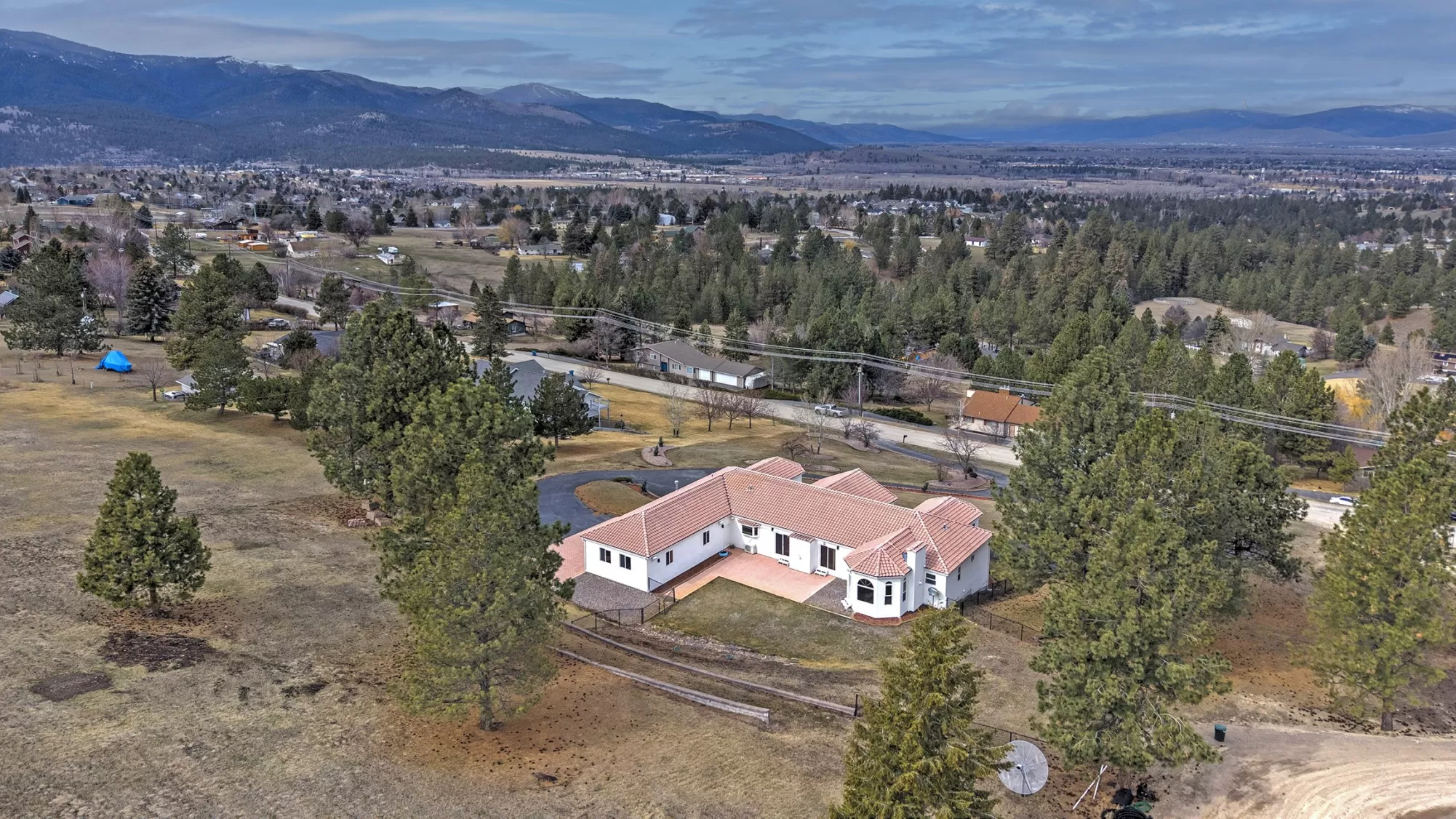 This spacious Spanish Mediterranean style home embodies high end Montana living with timeless architecture, exceptional craftsmanship, and breathtaking views of the surrounding mountains and Missoula Valley. Offering 6 bedrooms, 5 bathrooms, and over 5,500 square feet of well designed living space, the home provides both comfort and elegance on 2.54 beautifully landscaped acres. Classic Spanish design elements are showcased throughout the property, including terracotta roof tiles, graceful arched doorways, and large arched windows that fill the home with natural light while framing expansive valley views. A sweeping driveway lined with solar powered lights leads to the grand entry, where high ceilings and an open concept layout create a bright and inviting atmosphere. Smart home climate control adds modern convenience. The main gourmet kitchen features smart appliances, custom cabinetry, and a large center island, making it ideal for entertaining and family gatherings. The main level also includes an elegant primary suite with private patio access, a walk in closet, a spacious dressing room, and an ensuite bathroom with a soaking tub. The east wing offers a private office with incredible views and a half bathroom, while the west wing includes two additional bedrooms, a bathroom, a laundry room, and a heated three car garage with built in workbenches. The lower level features a private entrance and separate living area ideal for guests, complete with a fitness center, gourmet kitchen, and living room. Additional bedrooms, a second primary suite, bonus rooms, and a utility room provide flexibility and privacy. Outdoor living is just as impressive, with a private back patio perfect for summer evenings and a front balcony offering stunning sunsets. Located on a quiet cul de sac in the desirable Upper Miller Creek neighborhood, the home is just minutes from schools, golf courses, shopping, dining, and outdoor???????????????????????????????????????? recreation.