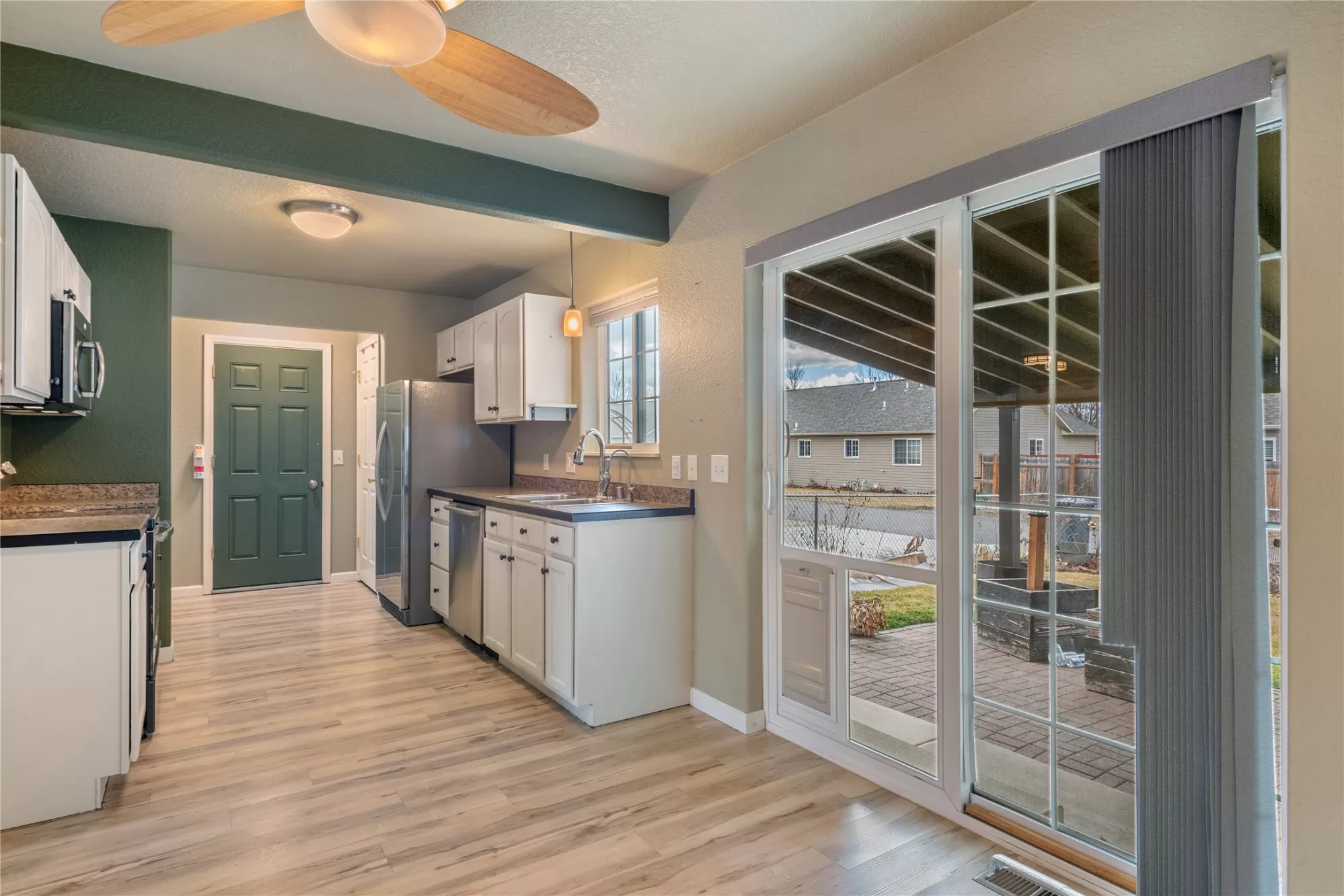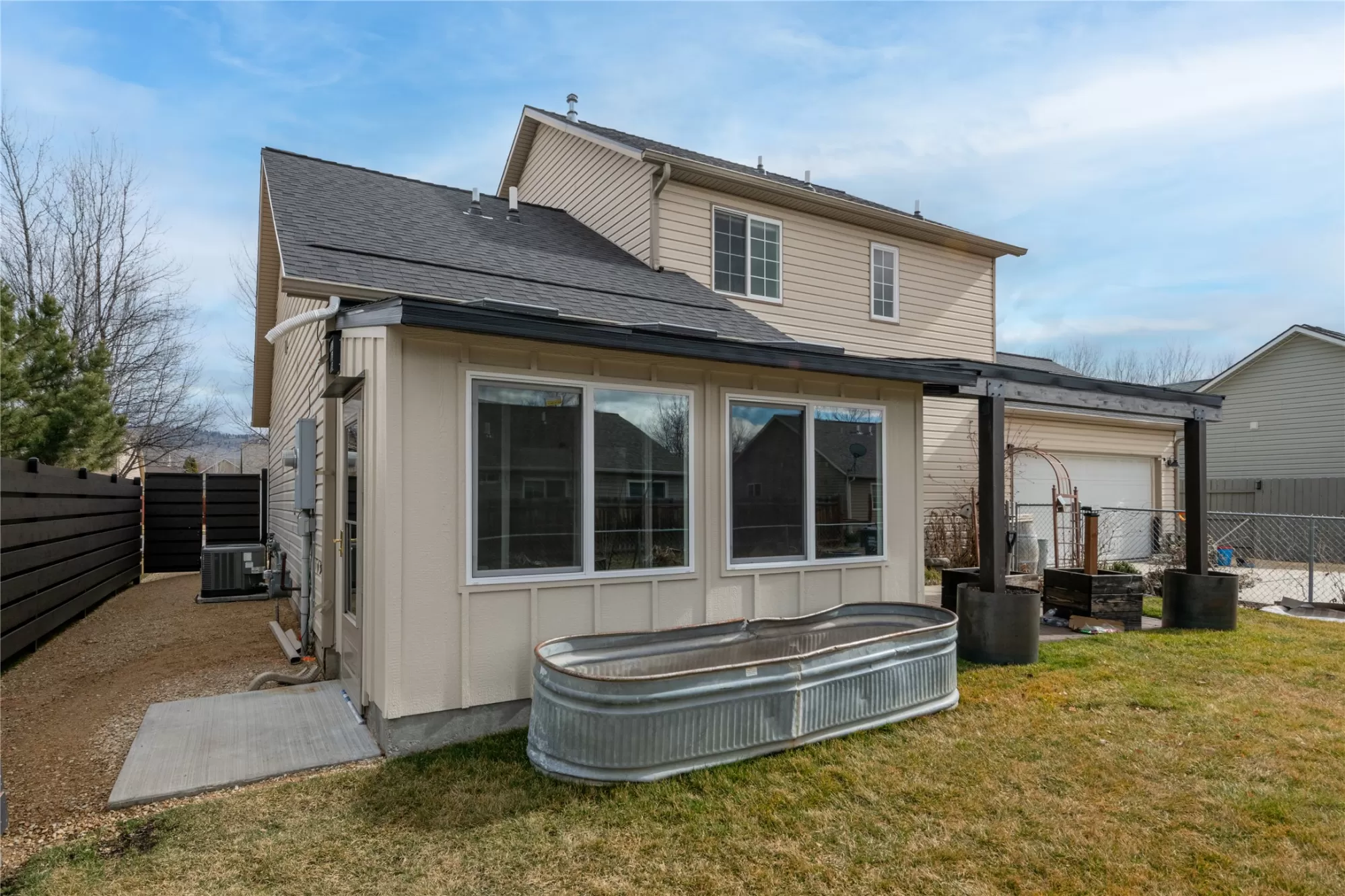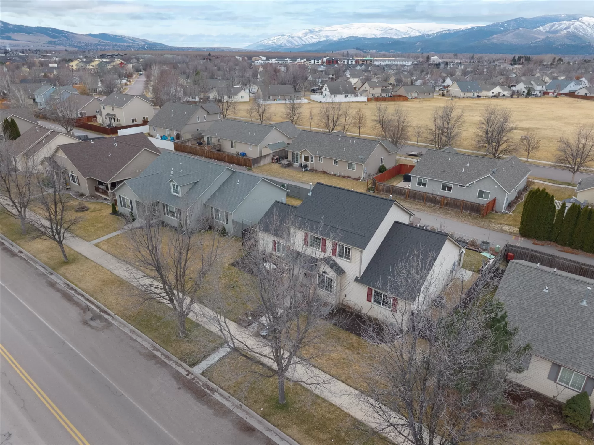 Welcome to this wonderful two-story home in Missoula's desirable Pleasant View neighborhood Just one block from a neighborhood park and minutes from Snowbowl Ski Area, shopping, and restaurants, this move-in ready four-bedroom, two-bathroom home offers the perfect blend of comfort and convenience. The main level features an updated kitchen with plenty of storage, a pantry, dishwasher, and double sink overlooking the backyard. The dining area flows seamlessly from the kitchen, with a sliding door leading out to a fenced backyard and charming covered brick patio ideal for entertaining or relaxing outdoors. A generous bonus room with vaulted ceilings off the kitchen and dining area provides flexible space perfect for a den, home office, or formal dining room. The newly added attached greenhouse is every gardeners heart song. The ease of access and exceptional quality space allows for year round gardening enjoyment. A main-floor corridor leads to a spacious primary bedroom suite complete with vaulted ceilings, two large closets, and an attached updated bathroom main floor living ideal scenario. Upstairs, you'll find three additional large bedrooms with cozy new carpet carpet and a second full bathroom, offering plenty of room for family, guests, or hobbies. Newer updates include main-floor flooring and upstairs flooring, appliances, and the main-floor bathroom, and partial new fencing. Additional amenities include central air conditioning, a garbage disposal, underground sprinklers, a double attached garage, and off-street parking. Take note of the brand new roof with transferrable warranty too! Don't miss your chance to make this well-maintained Pleasant View home yours!