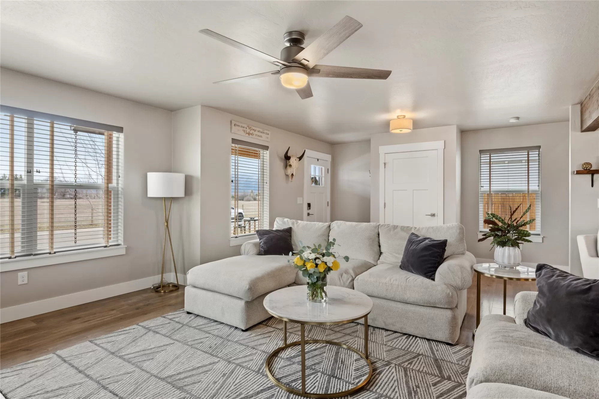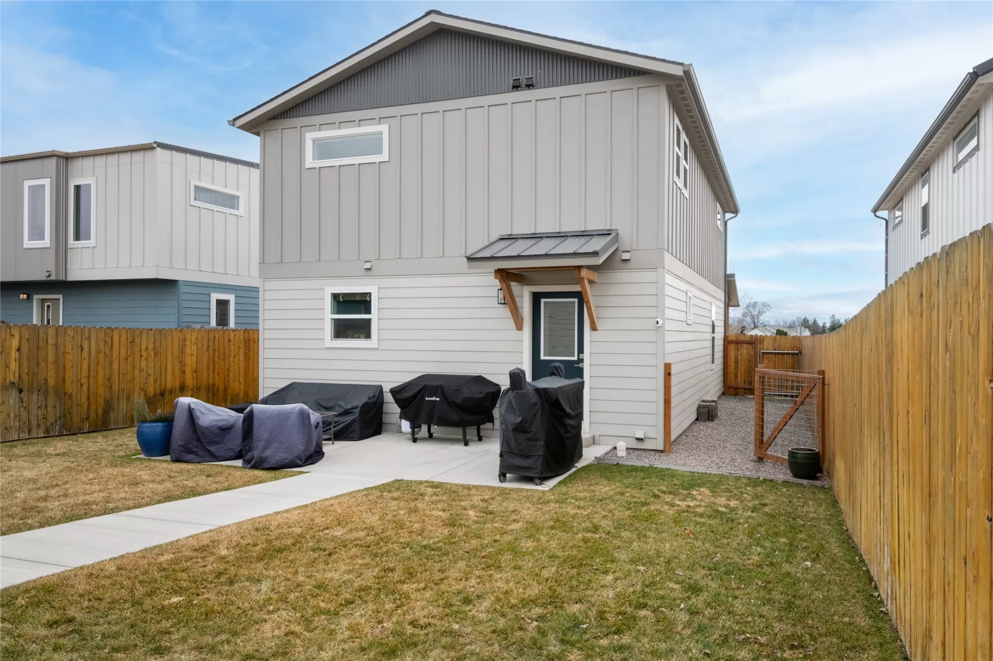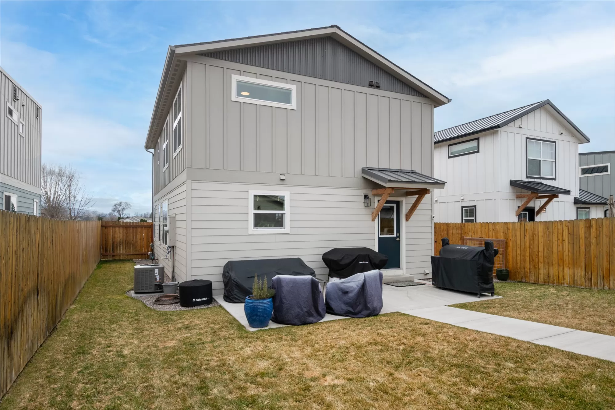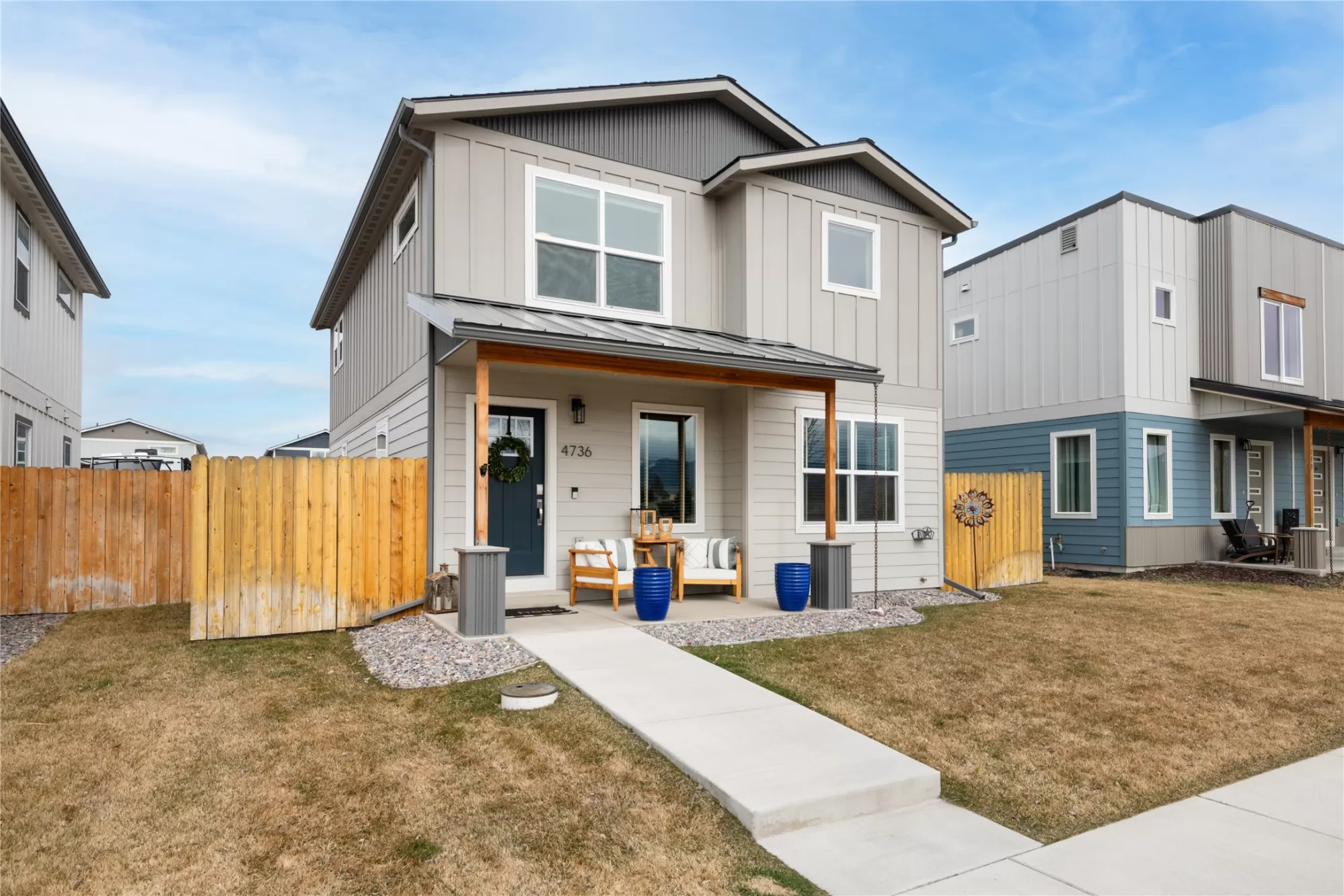 4736 Giada, The Sheridan at Hellgate Gardens. Welcome to Hellgate Gardens! This thoughtfully designed 36-home neighborhood offers a variety of amenities and one street behind from Hellgate Elementary. With a large common-area park, a Garden City Harvest community garden, and beautiful views throughout, this is community-centered Missoula living at its finest. The Sheridan model, the largest and most spacious floor plan in the neighborhood - 3 bedrooms, 2.5 bathrooms, and two levels of thoughtfully designed living space. A charming front porch sets the tone before you even step inside. Through the front door, an open-concept main level greets you with a generous living area, half bath, and a kitchen built around a spacious island perfect for weeknight cooking or casual entertaining. Finishes throughout include hard surface flooring, brand new plush carpeting upstairs, shaker cabinets, and modern touches that give the home a clean, contemporary feel. Upstairs, the primary suite is the showstopper. Fall asleep and wake up to sweeping views of the mountains, watching nature transform the landscape through all four seasons right from your bed. The ensuite bathroom offers a dual-sink vanity, walk-in shower, and a deep closet with ample built-in shelving. Two generous additional bedrooms and a full bath complete the upper level, with mountain and valley views from every window. Many transom style windows offer the best view with ultimate privacy. Out back, a privacy-fenced yard with underground sprinklers and newly created garden and sitting area make for lower maintenance and great entertaining. There is a nicely sized detached two-car garage with alley access for convenience. Want more room for your green thumb. The Garden City Harvest community garden is steps away, a perfect place to dig in and get to know your neighbors. You don't have to sacrifice stunning views for urban convenience. A short drive connects you to everything Reserve Street has to offer: shopping, restaurants, grocery stores, and a hospital. Walkable schools, a connected community, and four seasons of Montana beauty, this is the one.